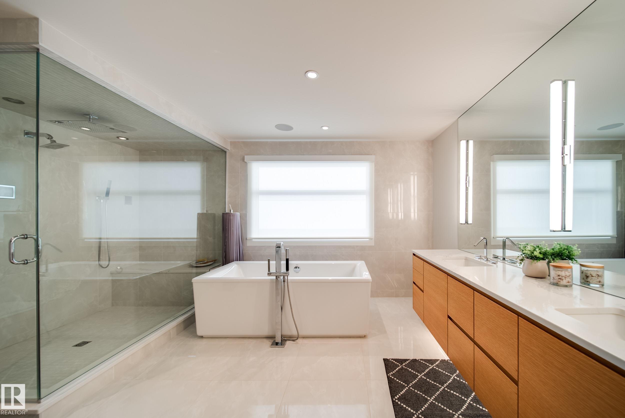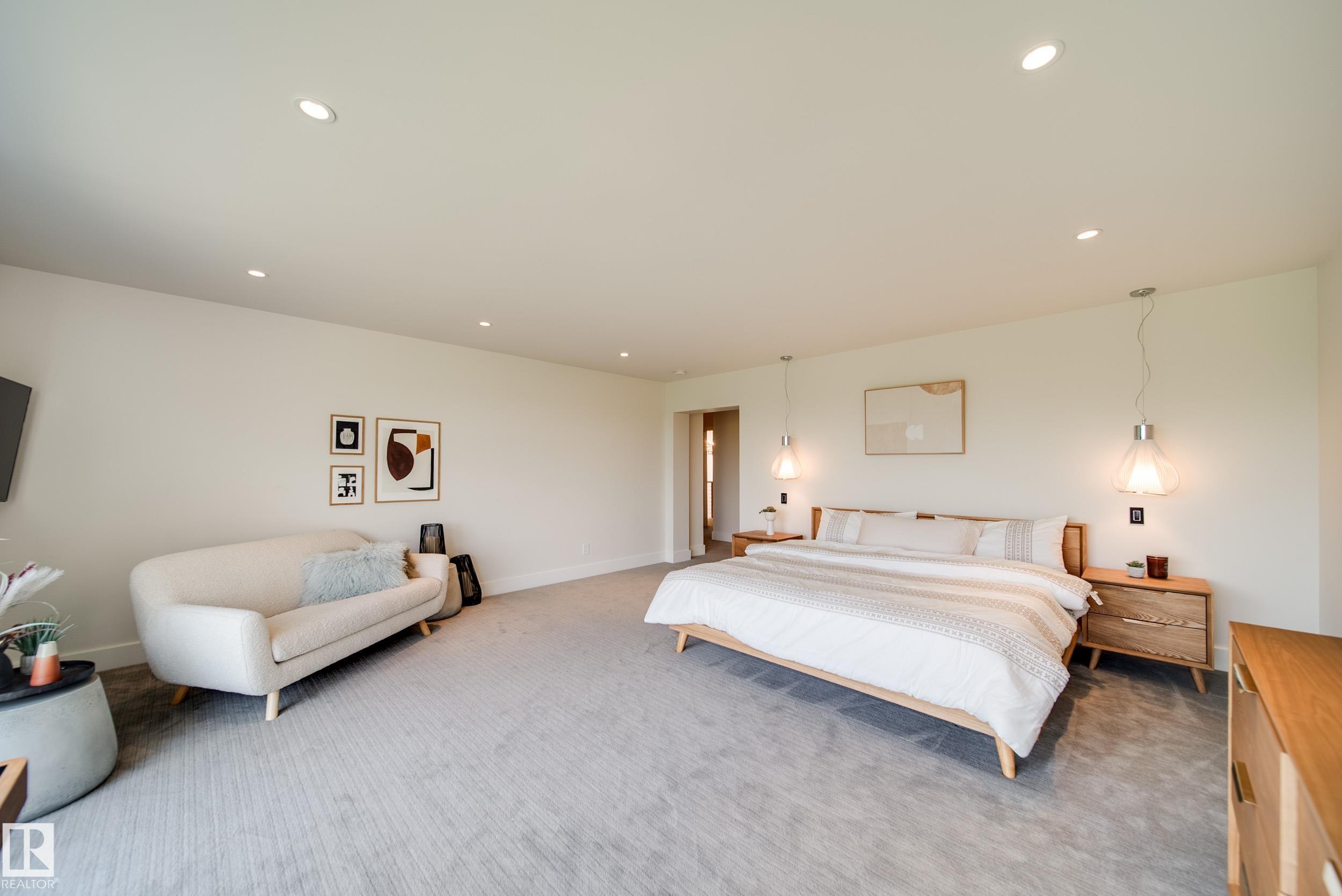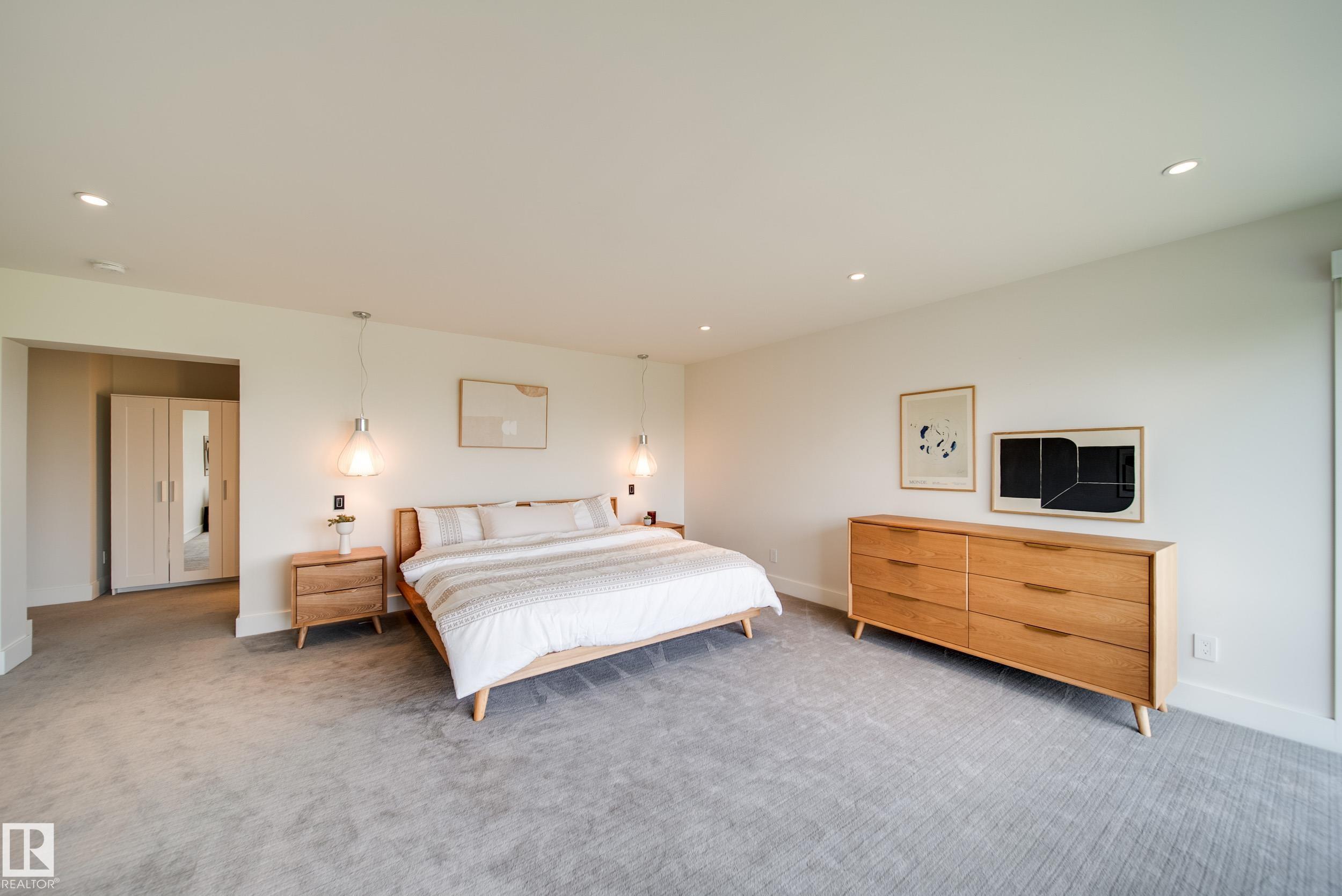 Welcome to the Former Dream Home Lottery Show home in Jagare Ridge! Built by Birkholz. This custom built 2-storey walk out offers over 7,200 sqft of luxury on an a MASSIVE 11,000 sqft RAVINE BACKING LOT! The open concept design impresses with soaring 20' ceilings, custom brick fireplace feature walls, wide plank oak floors & walls of windows bringing in endless natural light. The chef's kitchen is a true standout w/ dual islands, butler's pantry, quartz counters, premium cabinetry, built-in appliances & 4 wall ovens! The home features 5 spacious bedrooms including a main floor bedroom plus 4 bathroom's! GORGEOUS primary suite overlooking the ravine boasts huge WIC & SPA inspired ensuite bath! The fully developed walk out basement is built for entertaining w/ heated floors, a wet bar/games room, wine room, exercise area & walkout access to the covered patio and yard. Complete w/ a rooftop patio w/ panoramic views, complete home automation & a heated triple/tandem garage! Must be seen to appreciate!