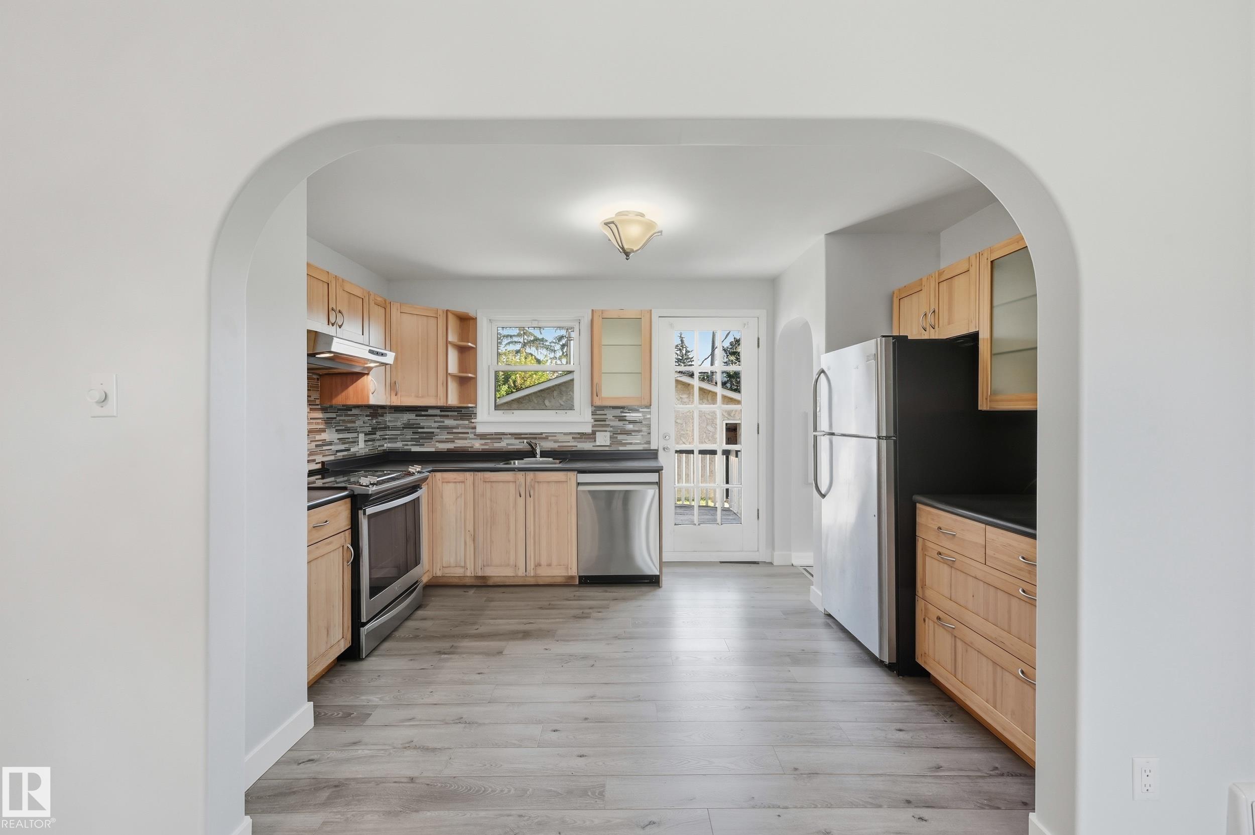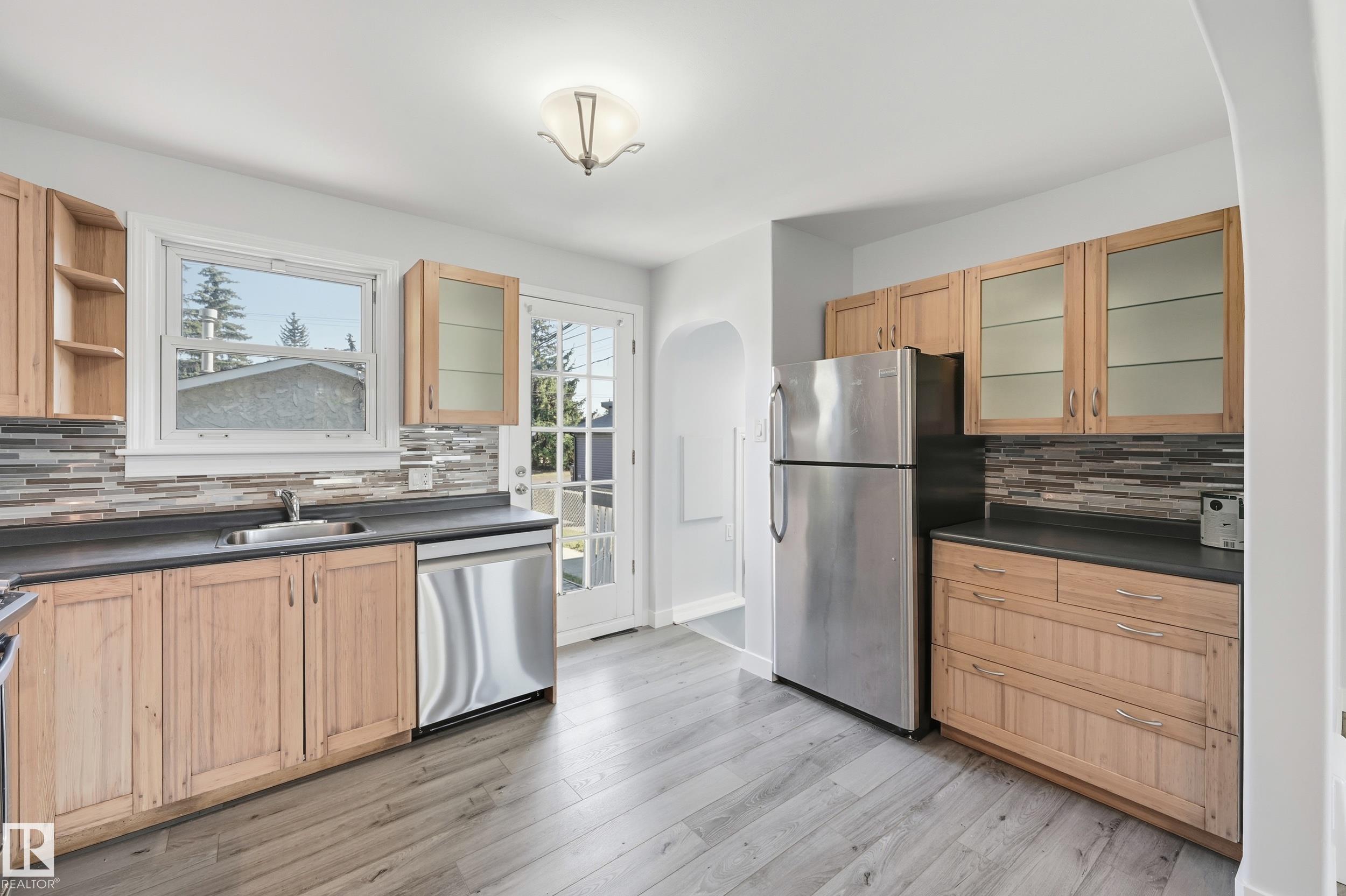 **This is HOME**Centrally located UPDATED character home in Idylwylde! This bungalow sits on a corner lot and offers an open concept living space with a large backyard and fully finished basement. As you enter the bright living room it will make you feel right at home; few steps down is a small yet elegant dining area just steps from the kitchen. Kitchen looks out onto the backyard and offer plenty of counter space for cooking; 3 bedrooms and renovated full bath complete the main floor. The basement has a separate entrance for potential income suite and has received some updates including new flooring and paint; it offers 2 bedrooms, full bath, living room and laundry room. This property has RV parking, a large gazebo for late night hang outs and a double detached garage with plenty of extra parking. Walking distance to new LRT line and Bonnie Doon Mall. Located on a mature street with easy access to downtown and Whyte Avenue.