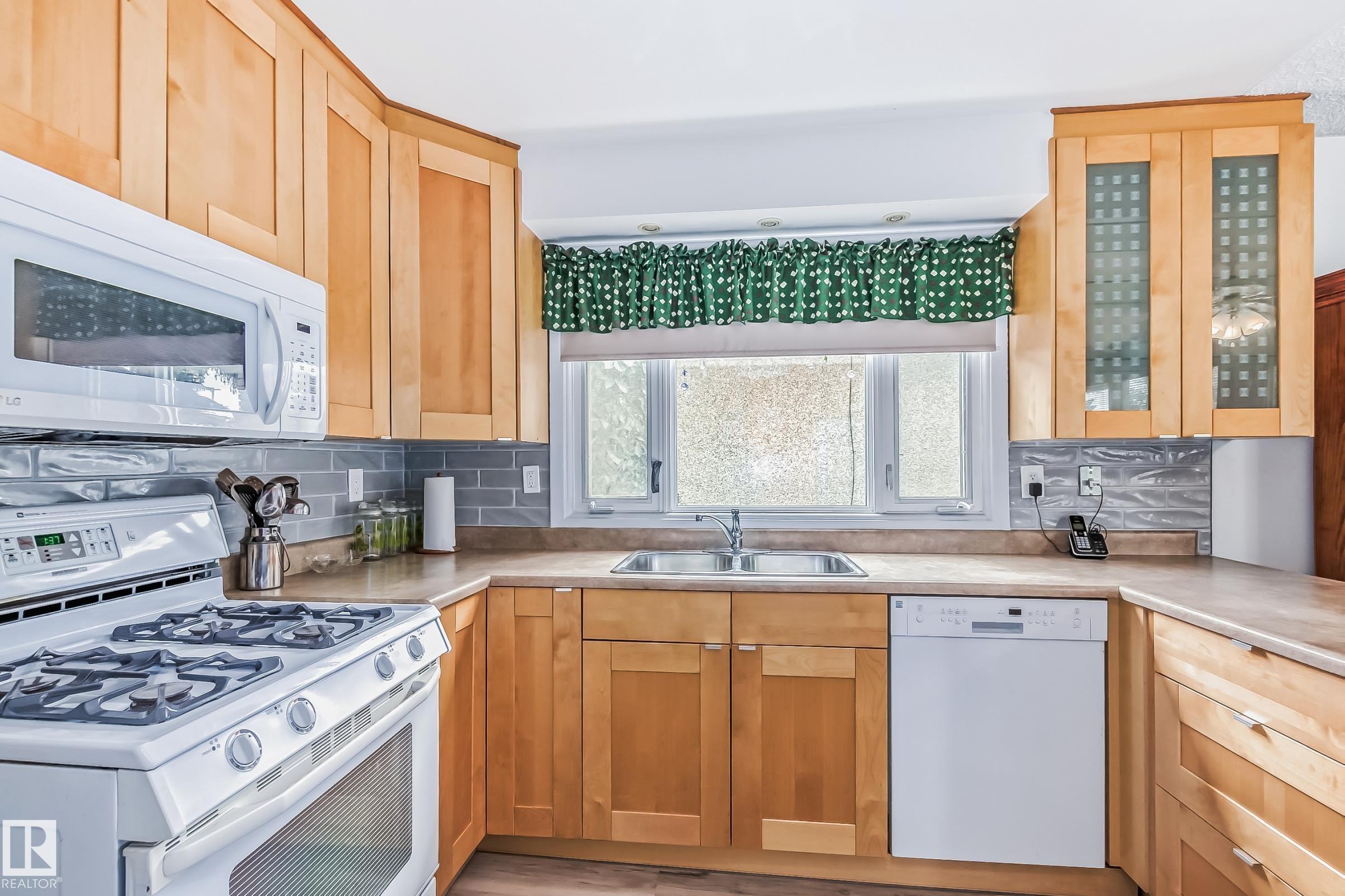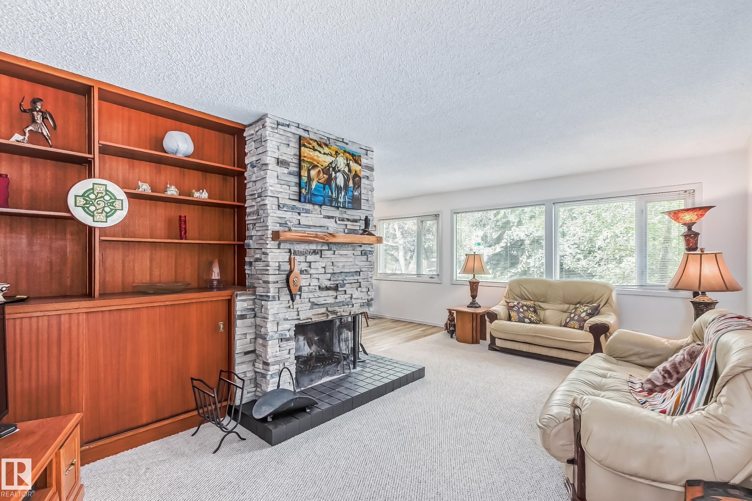 ONE OF A KIND HOME IN KENILWORTH! This beautiful BRICK mid-century home is loaded with upgrades, timeless features & endless space. Situated in one of Edmonton's most desired areas, you will love living close to multiple schools, shopping, transportation, recreation & more! The main floor is brimming w/ mid-century charm, adorned w/ natural light, features 2 living areas, a large upgraded kitchen, spacious dining area & primary bedroom. There is a 2-pc bathroom as well as a 2-pc primary, where you could add a shower. The front living area has a cozy WOOD BURNING FIREPLACE & the rear living area is appointed w/ wood features & offers access to the deck & yard. Upstairs are 2 spacious bedrooms, a full bath & unique sitting area. The bsmt is fully finished w/ bathroom, bedroom & family area. Out back is a large shed, single garage & long driveway. In the front, enjoy a long drive w/ carport & room for 3 cars! OTHER UPGRADES INCLUDE: NEWER HWT, FURNACE, GARAGE ROOF, MOST WINDOWS & MUCH MORE! Don't miss out!