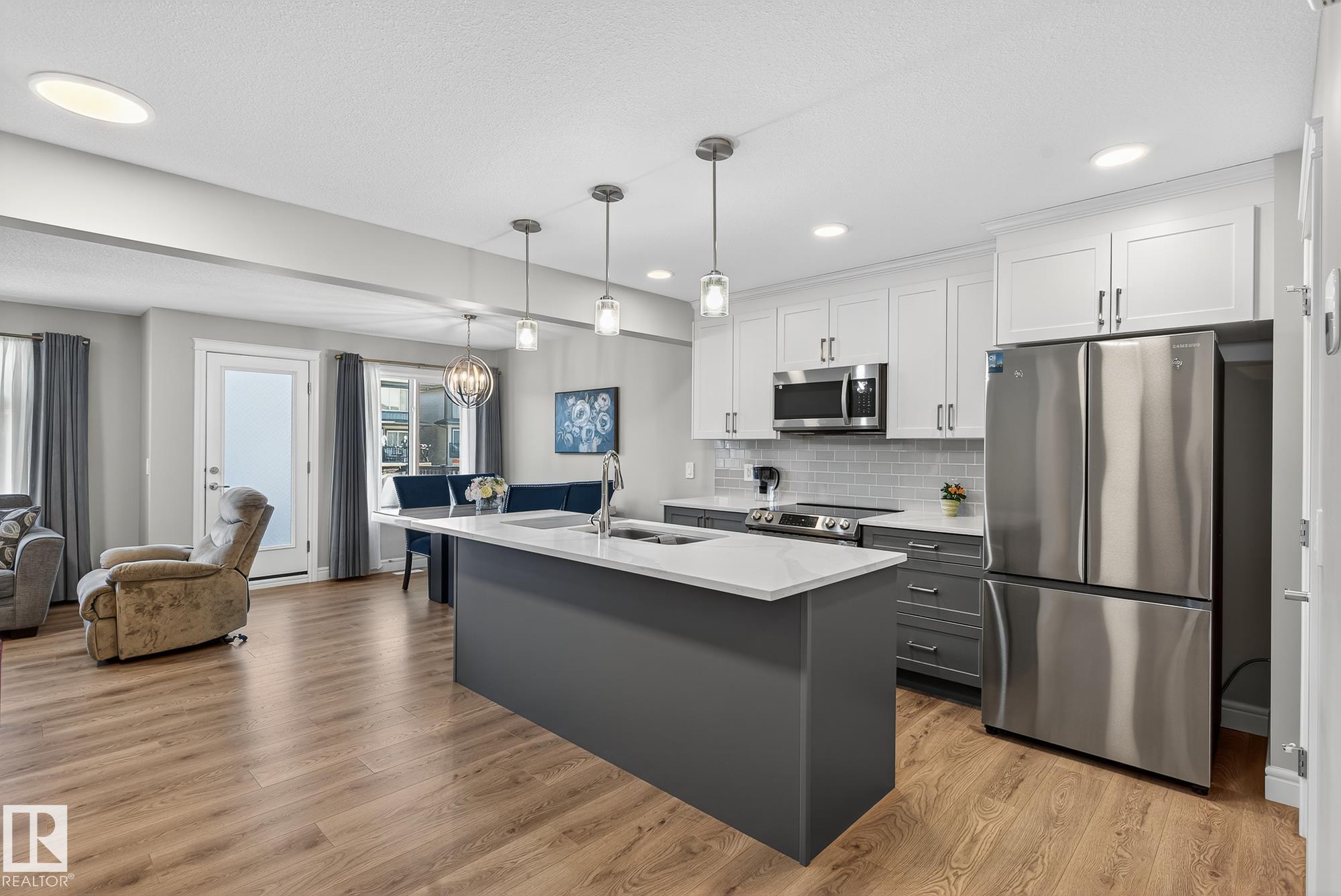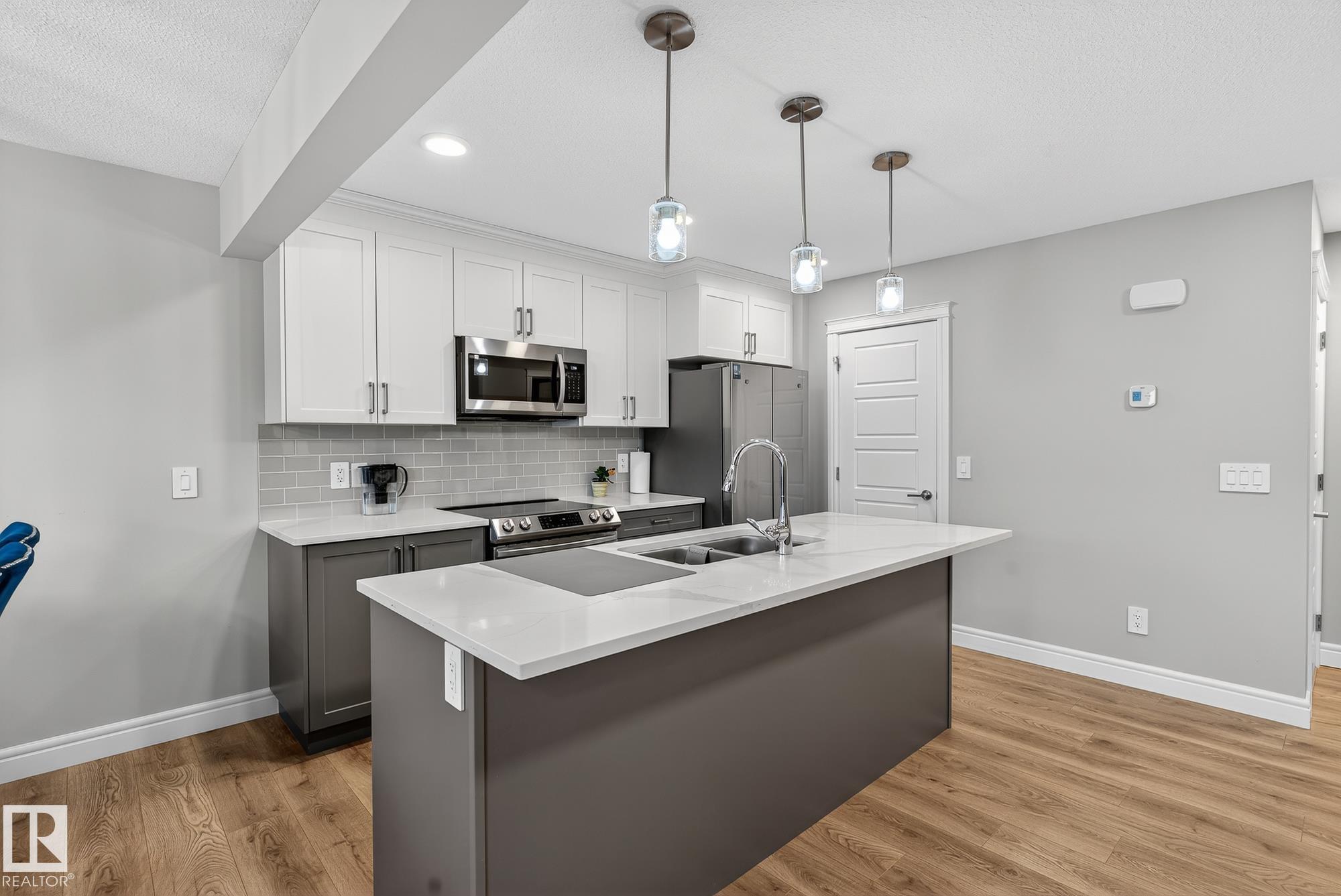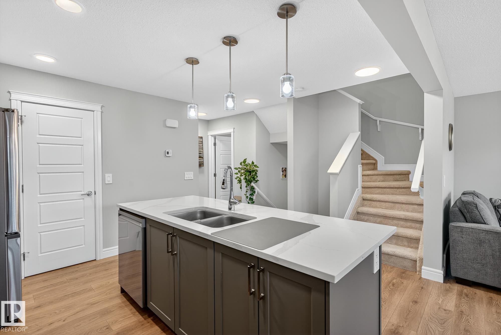 NO CONDO FEES! This well-maintained 3-storey townhome in the desirable community of Keswick offers stylish living and a convenient single-car garage. The ground level welcomes you with a versatile den or home office and ample storage space. The bright and open main floor features a timeless kitchen with dual-toned cabinetry, white marble-inspired stone countertops, and a pantry for added function. The dining area opens to a private deck, perfect for morning coffee or summer BBQs. A 2-piece bath and stackable laundry complete this thoughtfully designed space. Upstairs, you'll find a 4-piece main bathroom and three comfortable bedrooms, including a primary suite with a private 3-piece ensuite--a relaxing retreat at the end of the day. HOA TBD