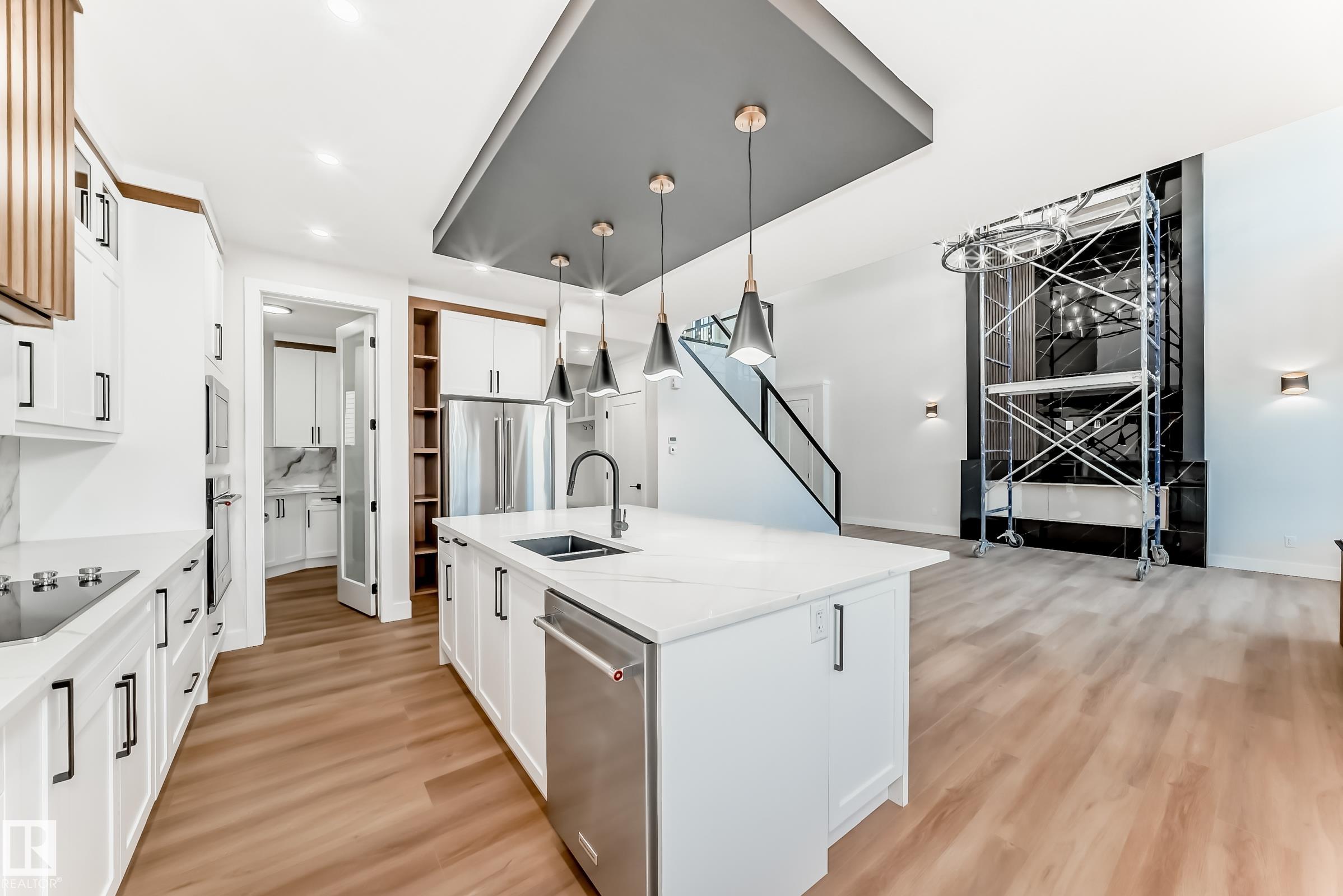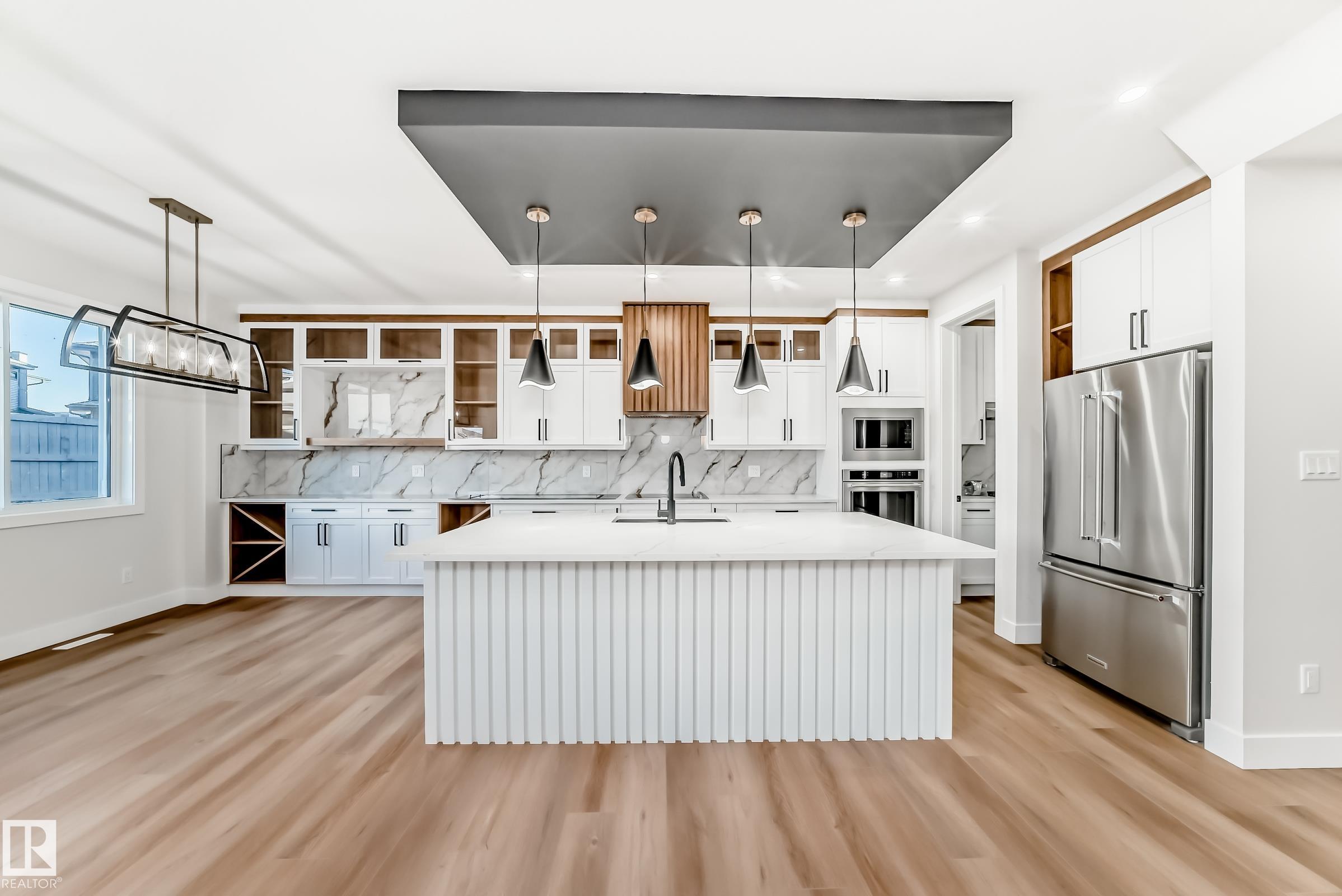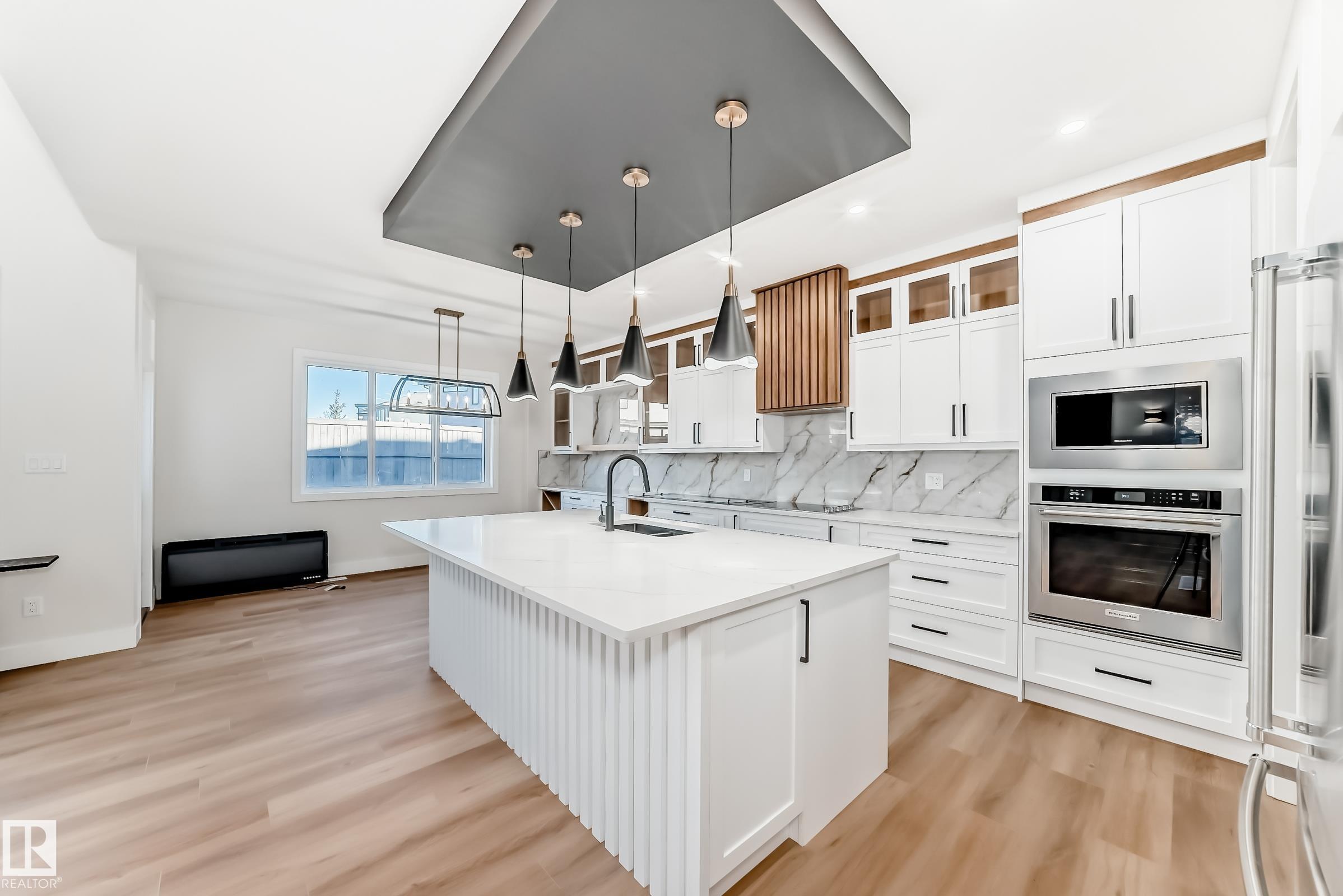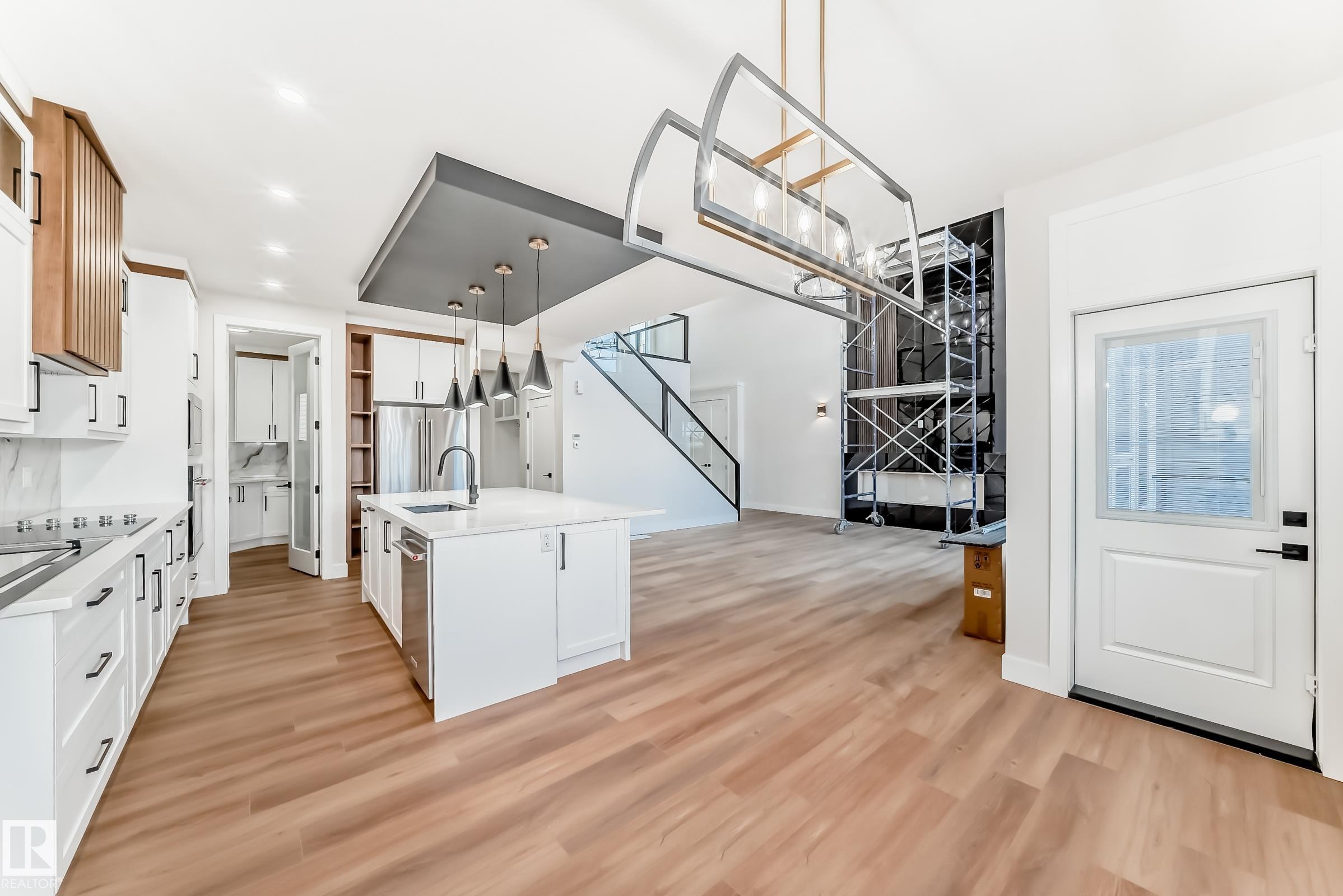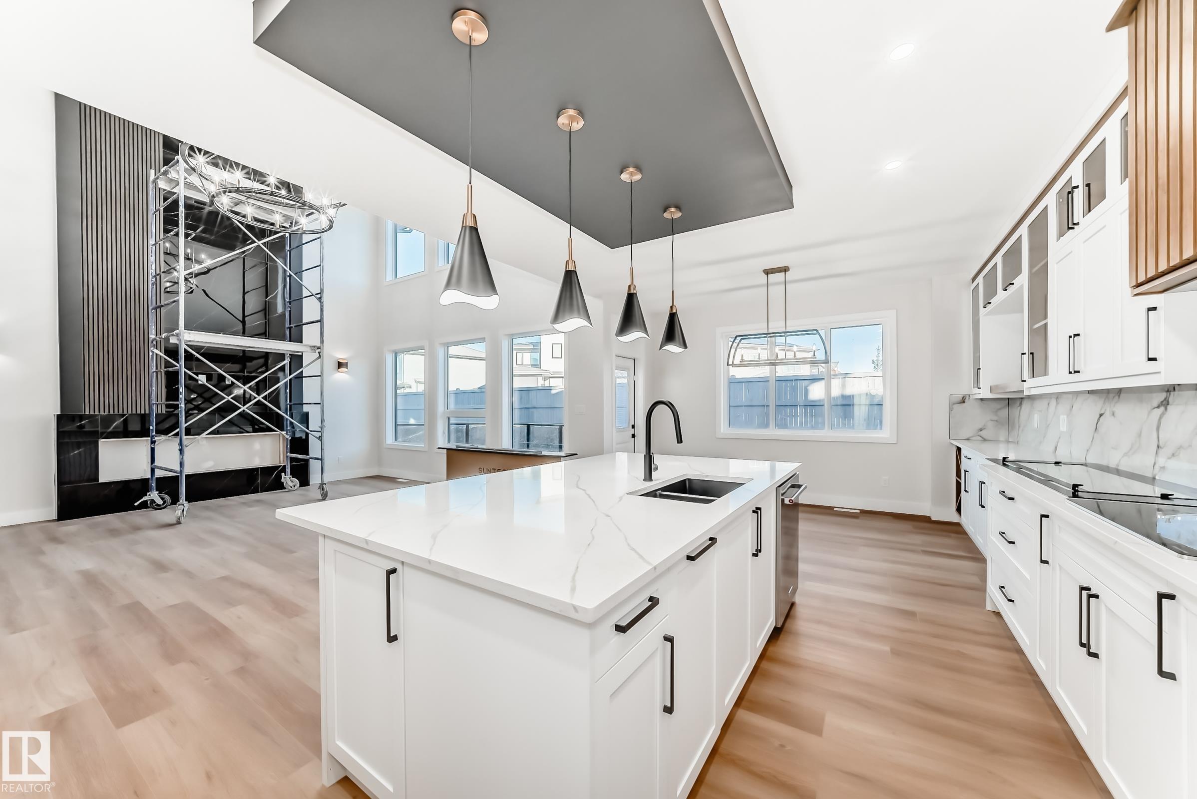Introducing an unparalleled masterpiece of modern design, nestled in the exclusive southwest Edmonton neighborhood of Keswick. Backing on to a walkway. This highly upgraded stunning 4 bedroom with 2 Primary ensuite, 4 full bathroom brand-new construction home is a testament to the exceptional craftsmanship of one of Edmonton's top-notch builders. Open-concept living room, featuring soaring ceilings that stretch up to the second floor. Perfect for entertaining, this expansive space seamlessly blends the living, dining, spice kitchen and main kitchen areas. You'll discover an array of upscale finishes, including premium materials, sleek designs, and meticulous attention to detail. From the gourmet kitchen to the spa-inspired bathrooms, every aspect of this home exudes luxury and sophistication. Come, See, Believe