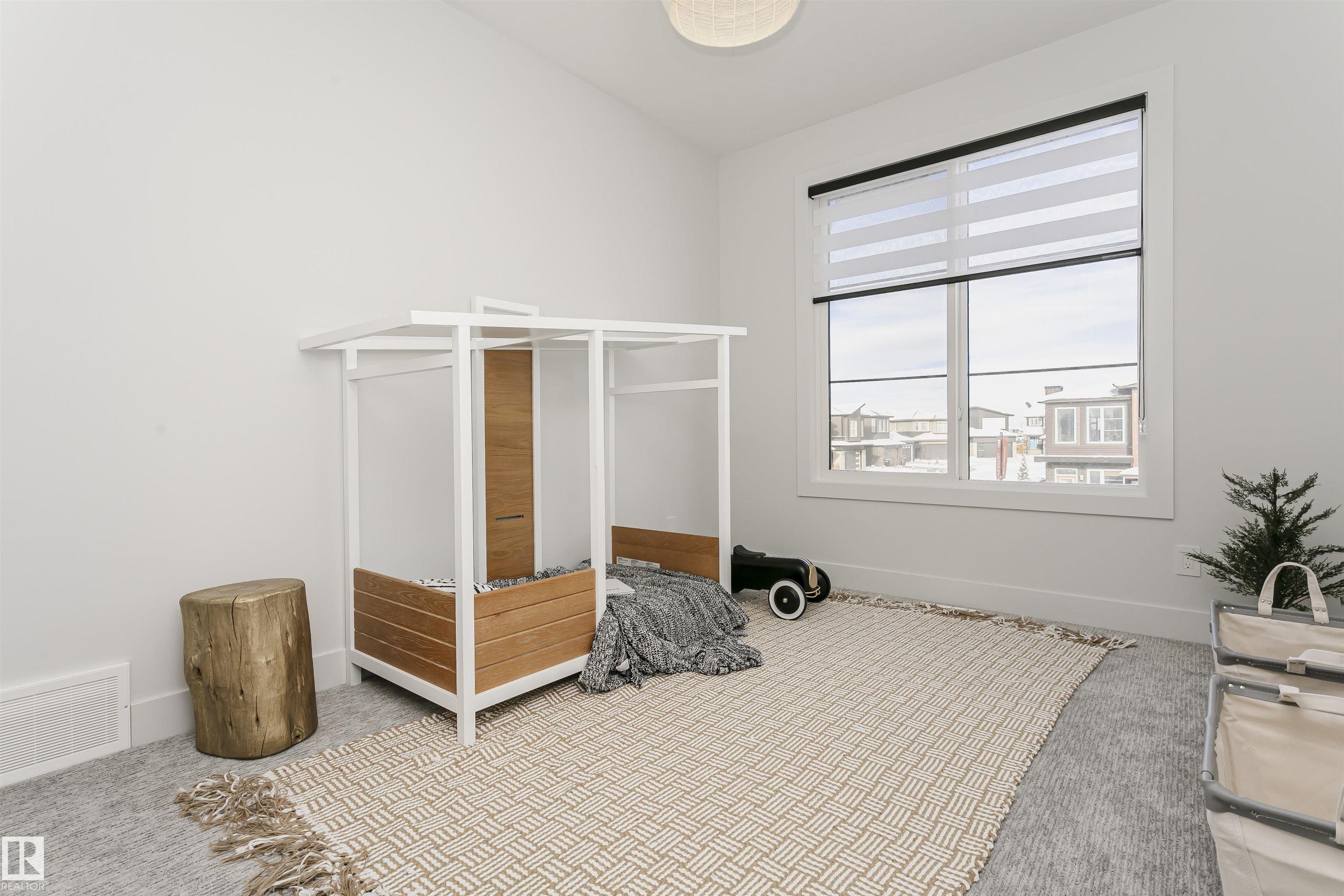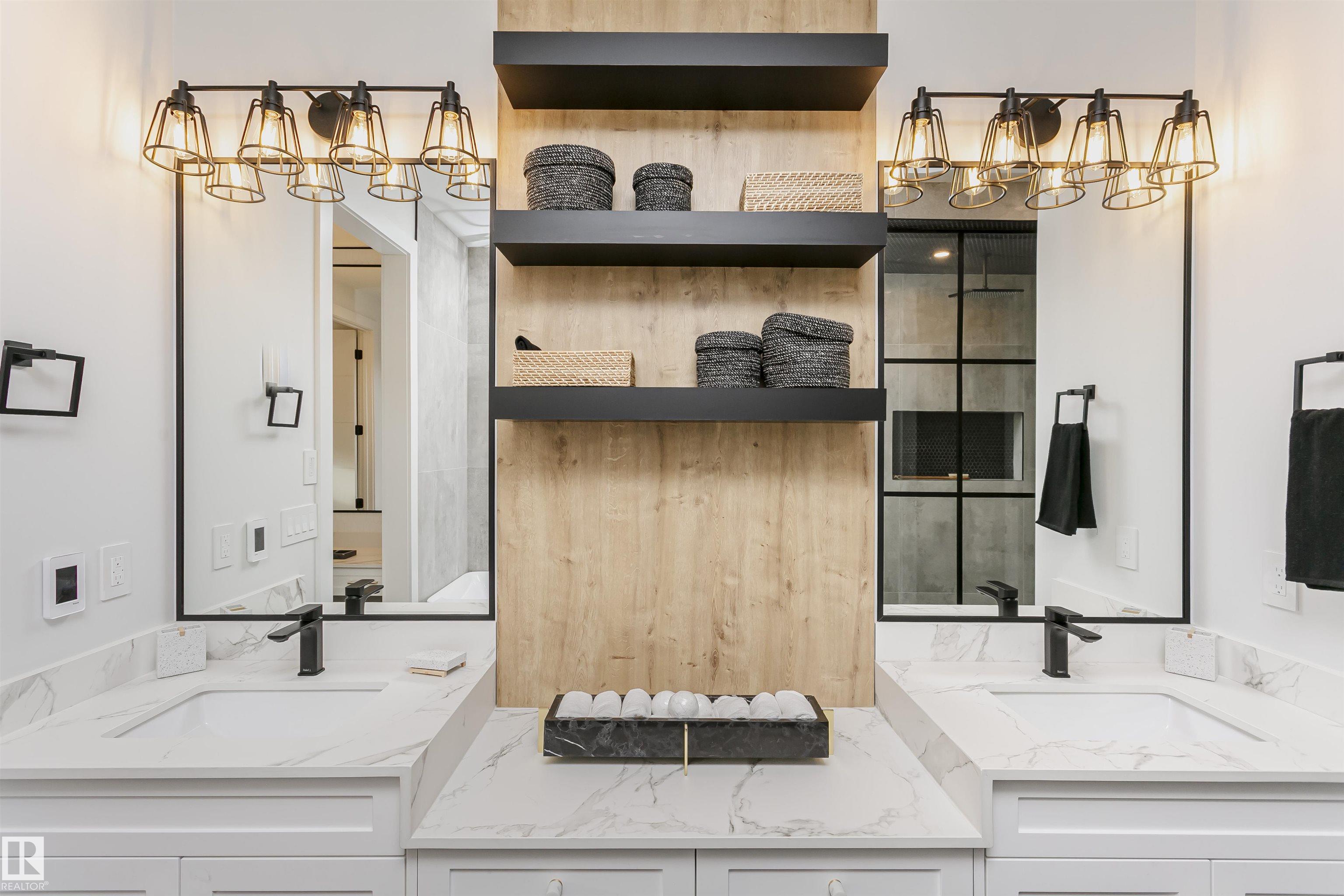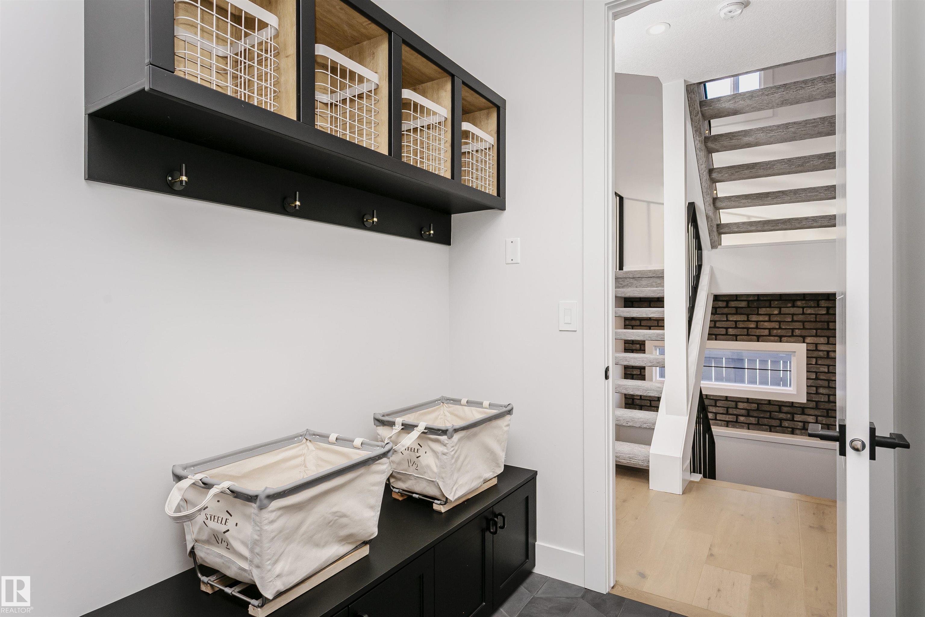 SHOWHOME FOR SALE Exceptional custom-built showhome by ART HOMES with luxury finishes and attention to detail throughout. Main floor features a private office with oversized windows and barn doors, flowing into an open-to-below living room with a unique concrete feature wall. Chef-inspired kitchen with fully upgraded appliances, custom black and white cabinetry, quartz island with double waterfall, warm wood accents, and a striking glass wine wall feature--perfect if you love hosting. Mudroom with custom locker-style cabinets. Upper level offers a luxurious primary suite with heated floors, spa-style custom tiled shower with rain head and body sprays, skylight, private makeup vanity, and custom walk-in closets, along with two additional bedrooms, a full bath, and convenient laundry. Fully finished basement with in-floor heating, guest bedroom and bath, and spacious rec room with bar. Includes air conditioning and is move-in ready with all upgraded appliances.