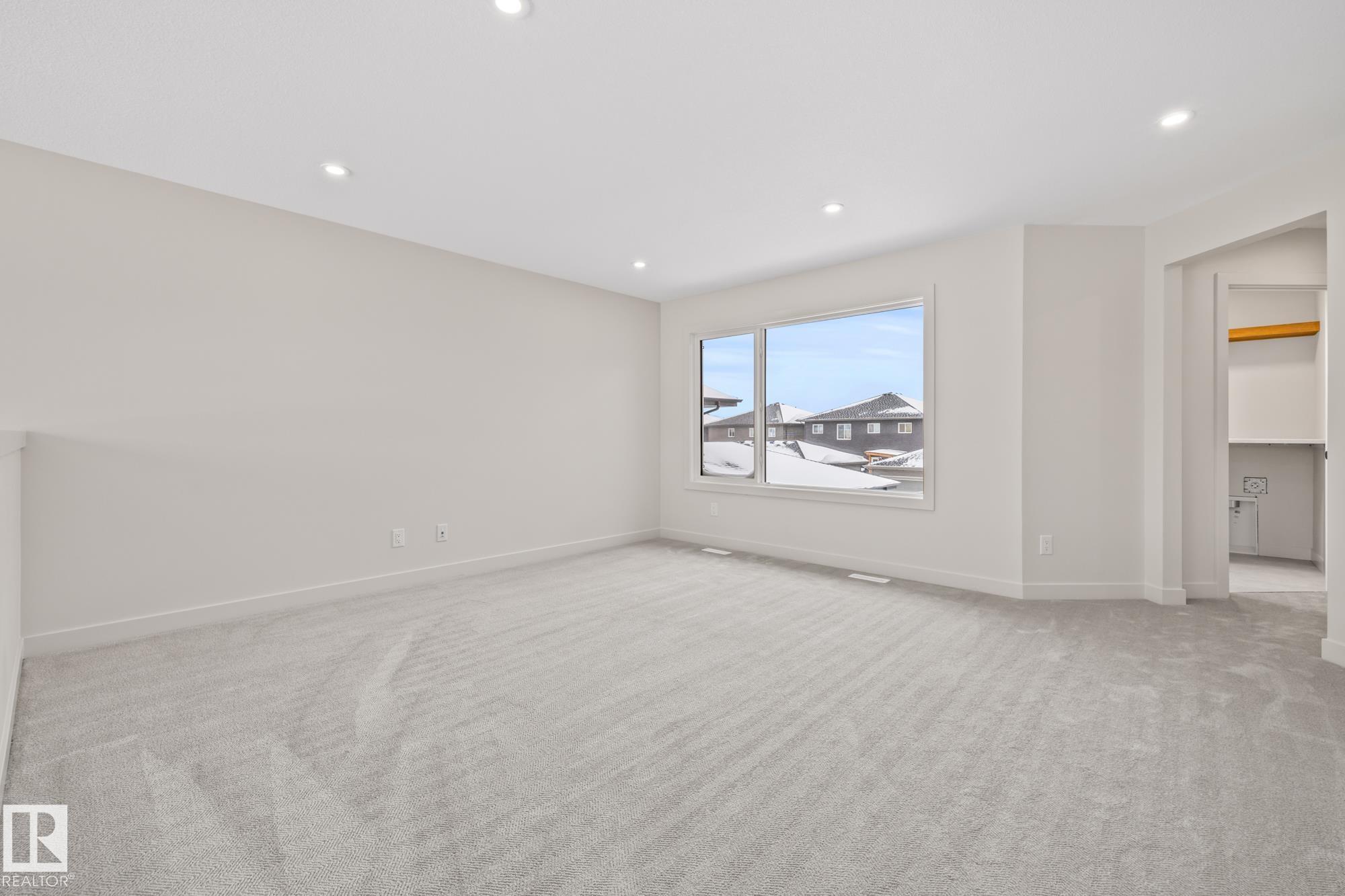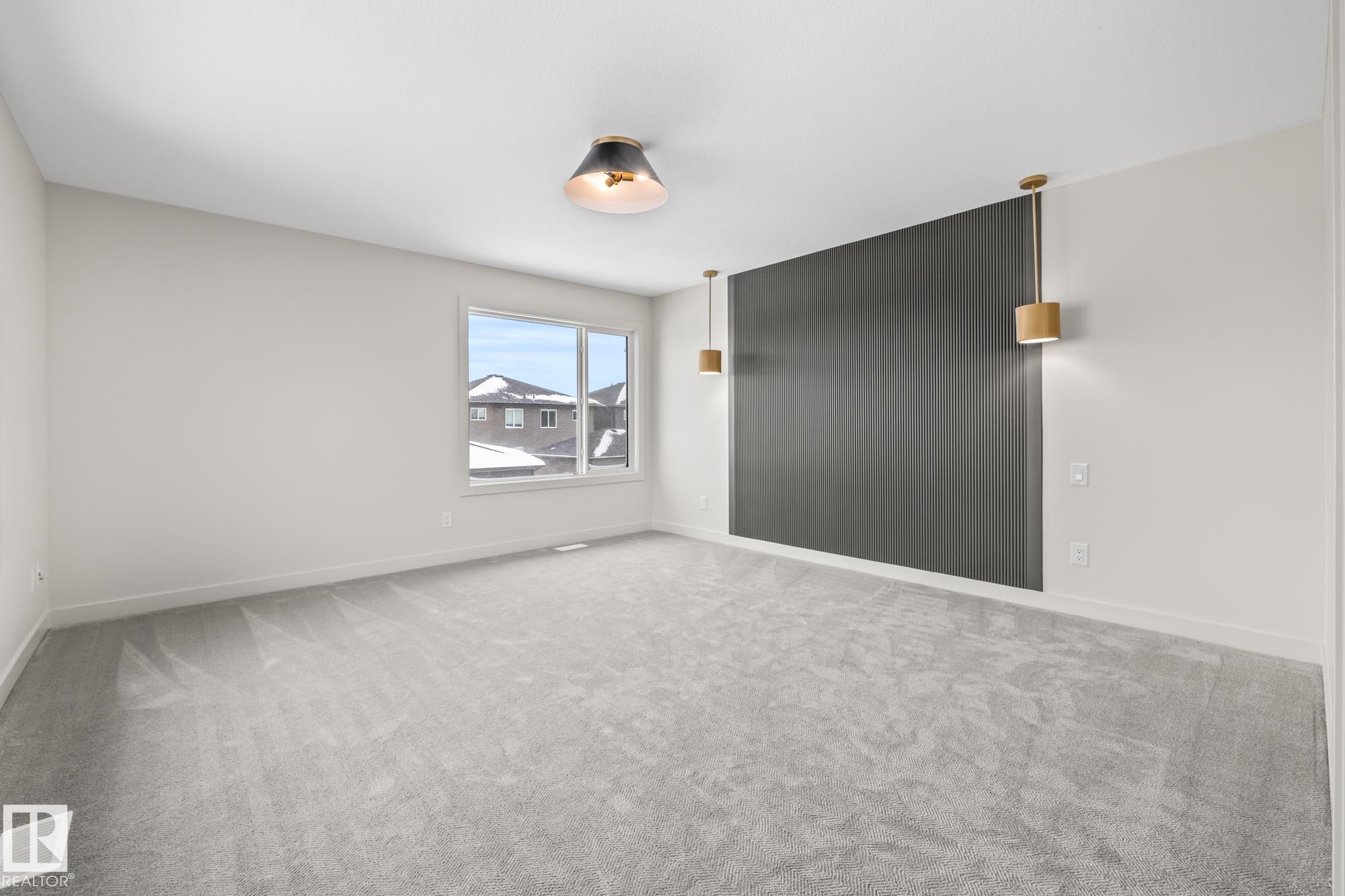 Set in the prestigious Estates of Keswick on the River, this Legacy Signature Homes residence blends timeless design with everyday luxury. With its attached rear garage, the curb appeal is striking and refined, allowing the home's elegant details to shine. The oversized garage with tandem bay offers exceptional space for a workshop, bikes, or additional storage. Inside, a beautifully designed two tone kitchen anchors the main floor, complete with a massive pantry and seamless flow for gathering and entertaining. Evenings are best enjoyed by the elegant fireplace, while the open riser staircase allows natural light to flow freely through the home, creating an airy and elevated feel. Upstairs laundry adds thoughtful convenience to daily living. Facing west, the home captures breathtaking sunset views. Surrounded by river valley trails, ponds, and parks, this is a lifestyle rooted in nature, community, and quiet sophistication, backed by Alberta New Home Warranty for lasting peace of mind.