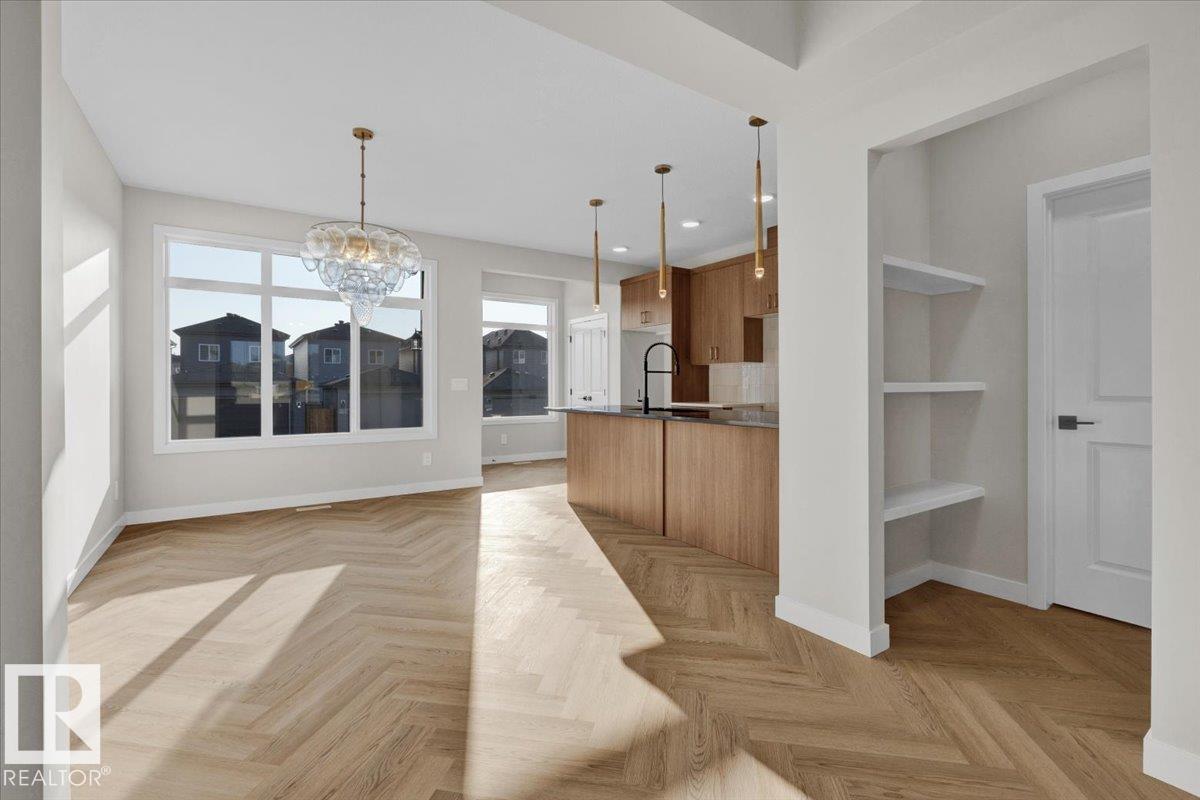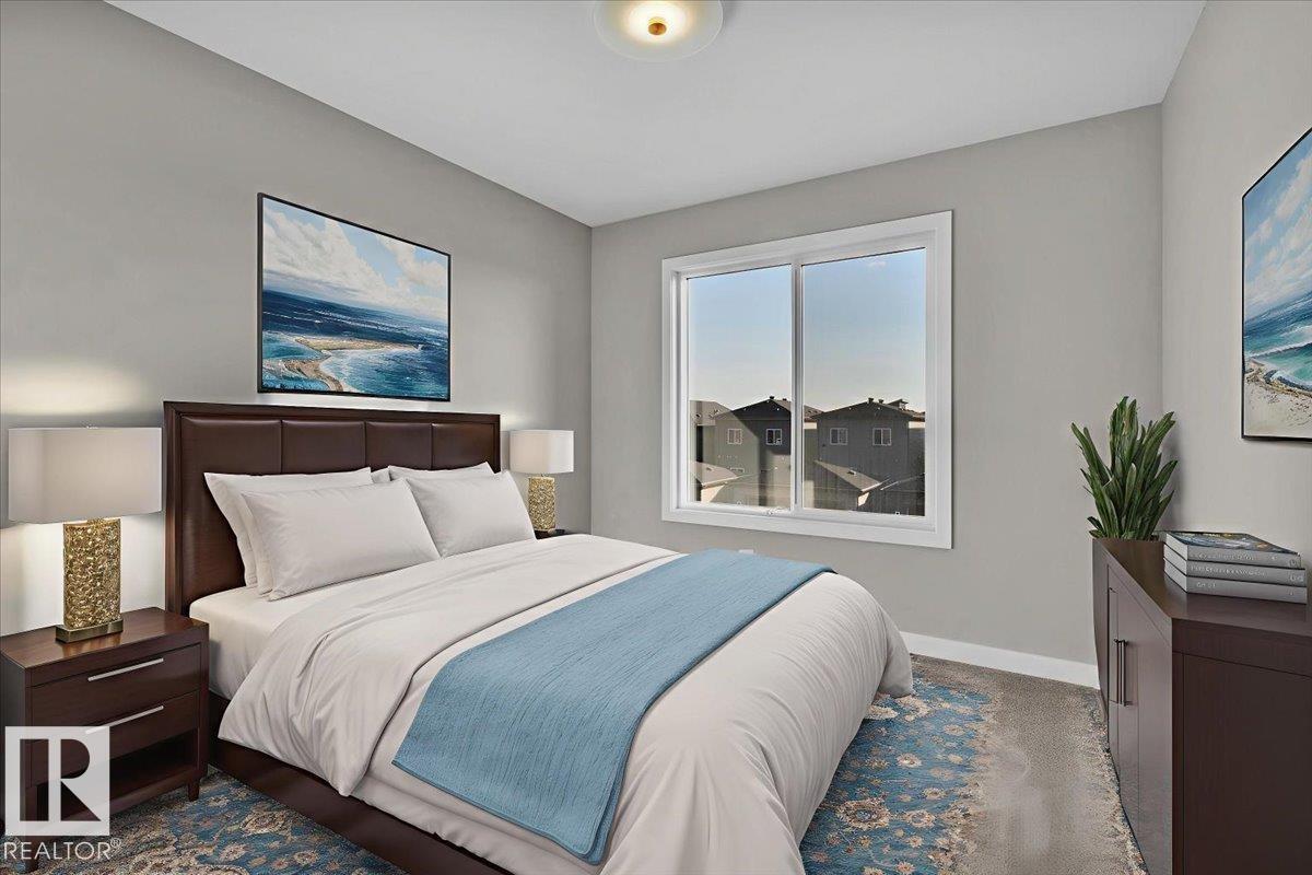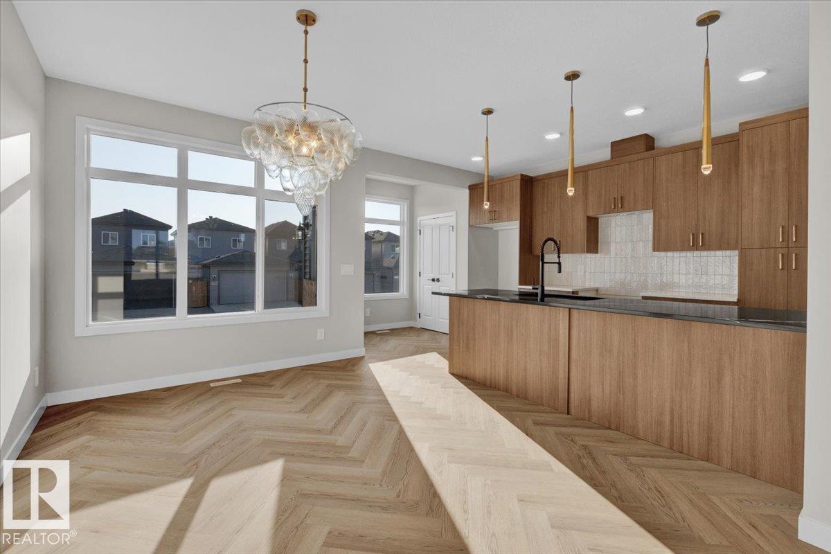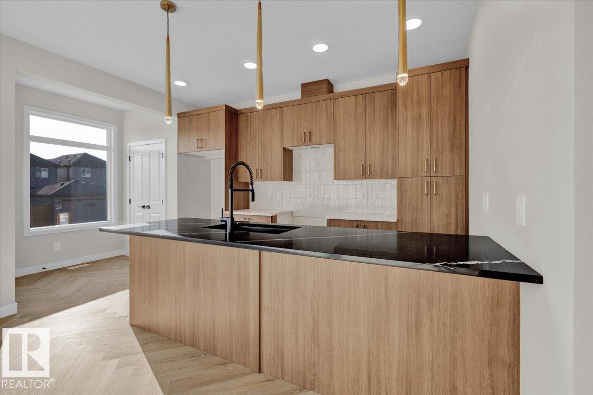 Nestled in the family-friendly Kinglet community, steps from the playground, this stunning single-family QUICK POSSESSION TURN KEY home blends comfort and style effortlessly. The open main floor welcomes you with 9' ceilings, space for a cozy study nook, and a sleek kitchen featuring 3cm dual-toned granite countertops and 42" warm wood cabinets. Upstairs, find laundry, a stylish main bath, and three bedrooms including a calming primary retreat with walk-in closet and a 5-piece ensuite with double sinks. Side entry with legal suite rough-ins adds smart flexibility for the future. Appliances and rough-grading included. Photos from a previous build & may differ; interior colors are represented, upgrades may vary. HOA TBD