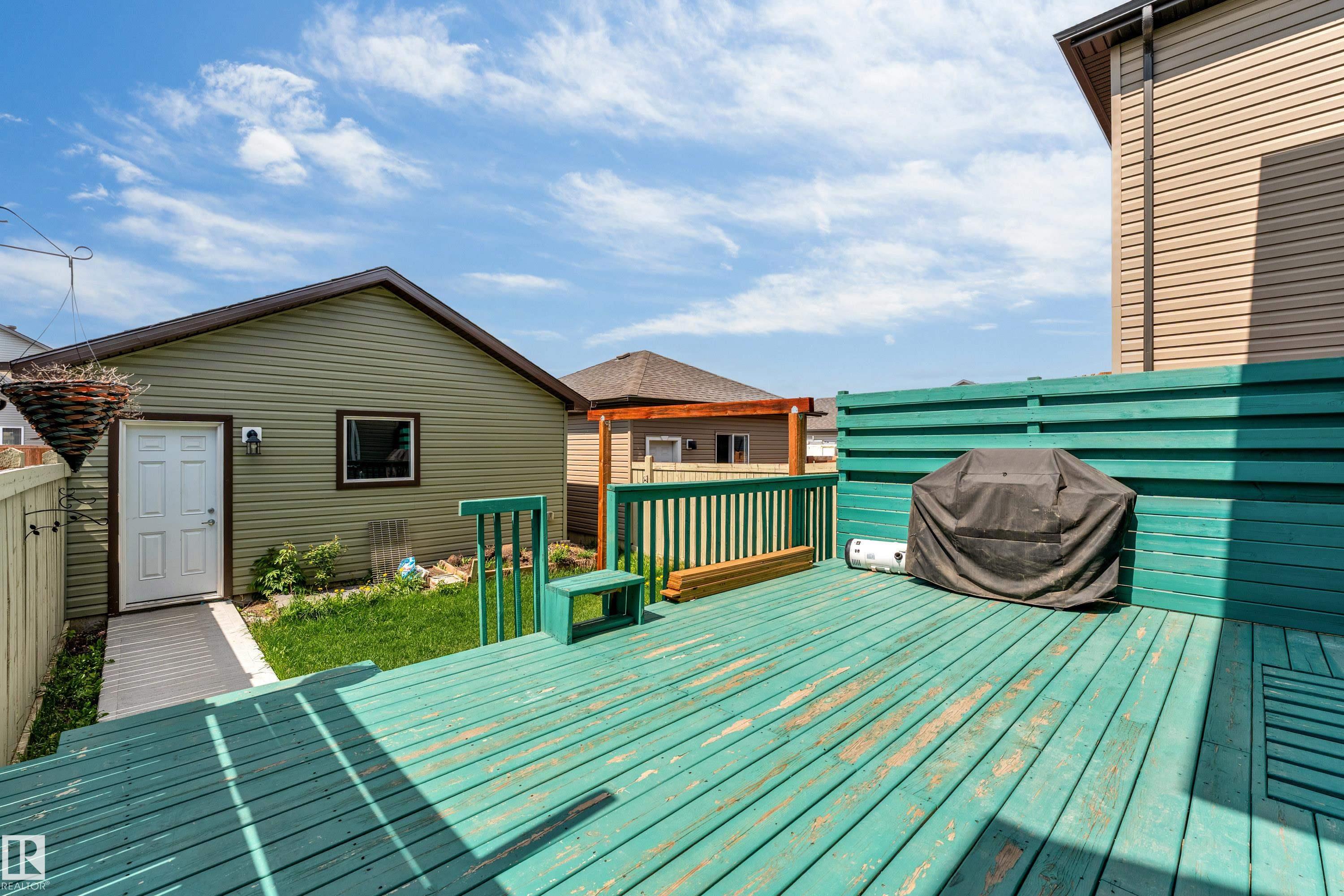 FULLY-FINISHED LEGAL BASEMENT SUITE & DOUBLE DETACHED GARAGE!! Located just steps from Svend Hansen School, this beautiful single-family home offers 2300 sqft of total living space. Featuring 4 bedrooms and 3.5 bathrooms, the home is fully landscaped and fenced, with a massive deck and an insulated double detached garage. Large windows throughout the main floor fill the space with natural light, and the kitchen is designed with modern finishes, white cabinetry, granite countertops, and a functional cabinet pantry. Upstairs, the spacious primary bedroom easily fits a king-size bed and is accompanied by two additional bedrooms, a 4-piece bathroom, and a convenient laundry room. The legal basement suite includes a separate entrance, second kitchen, bedroom, bathroom, and a cozy living area --a fantastic opportunity as a mortgage helper. With easy access to public transit, Anthony Henday, shopping, and all amenities, this home is a must-see!!