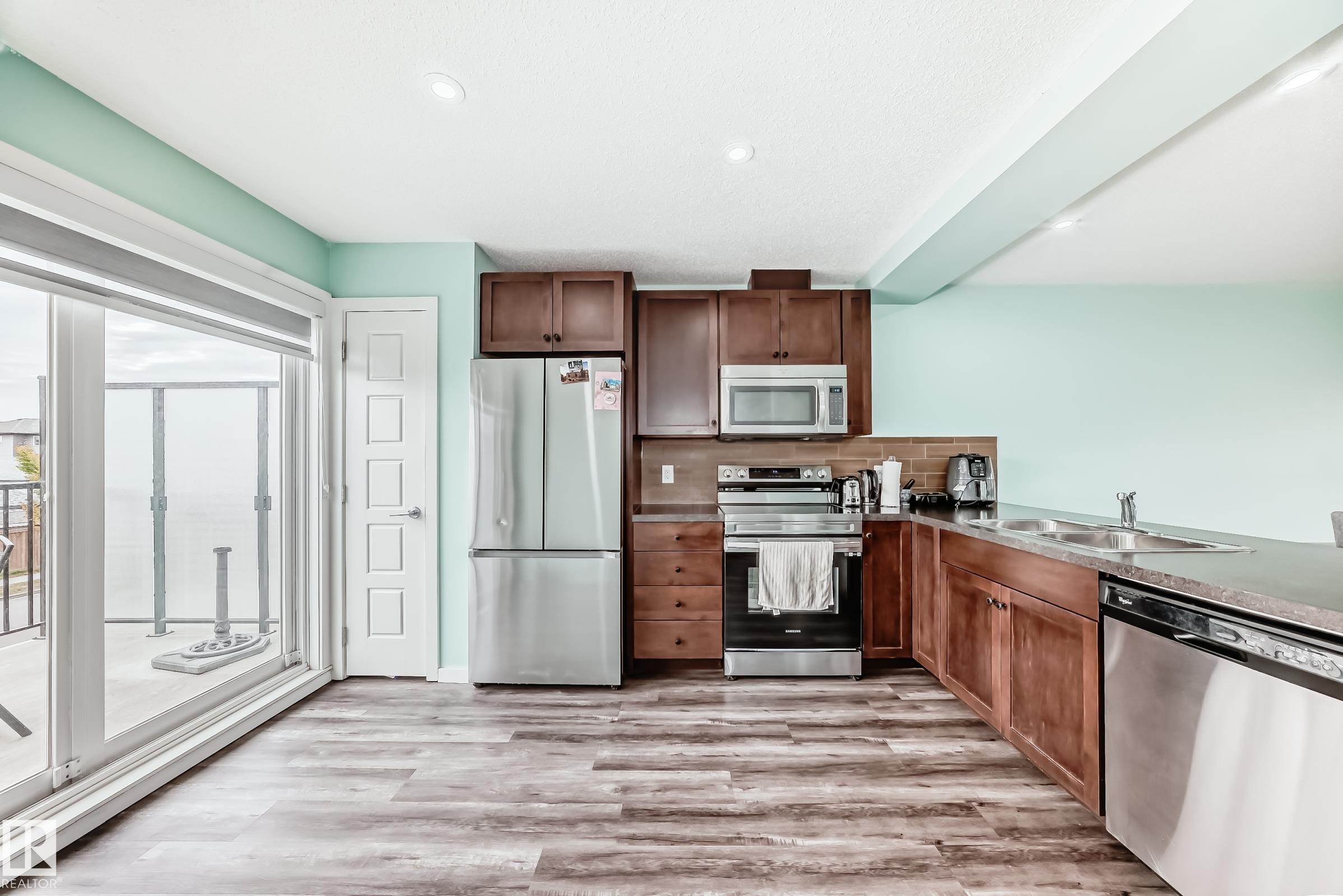 LOCATION ,LOCATION,LOCATION ! Newly renovated townhome features vinyl and carpet flooring throughout,along with fresh interior paint,creating a bright and modren look. This CORNER unit features PLENTY OF LARGE WINDOWS that fill the home with natural SUNLIGHT. The entry level features a versatile den/home office with access to a covered patio, along with an attached double garage for secure parking and storage. Upstairs, an open-concept main floor includes a bright living room, dining area, and a generous kitchen with direct access to a sunny balcony--perfect for spring and summer entertaining. A convenient 2-piece bathroom is also located on this level. The top floor offers a primary retreat with 4-piece ensuite, plus two additional bedrooms that share another full bathroom. Laundry is also located upstairs for added convenience. Located close to shopping, schools, public transit, and major commuting routes, this property offers a comfortable ,updated and practical lifestyle in desireable location.