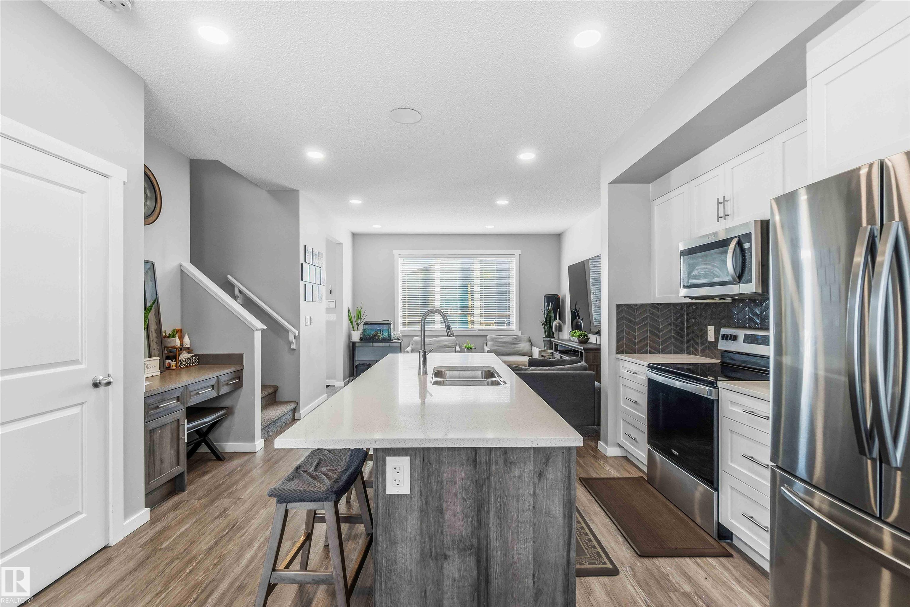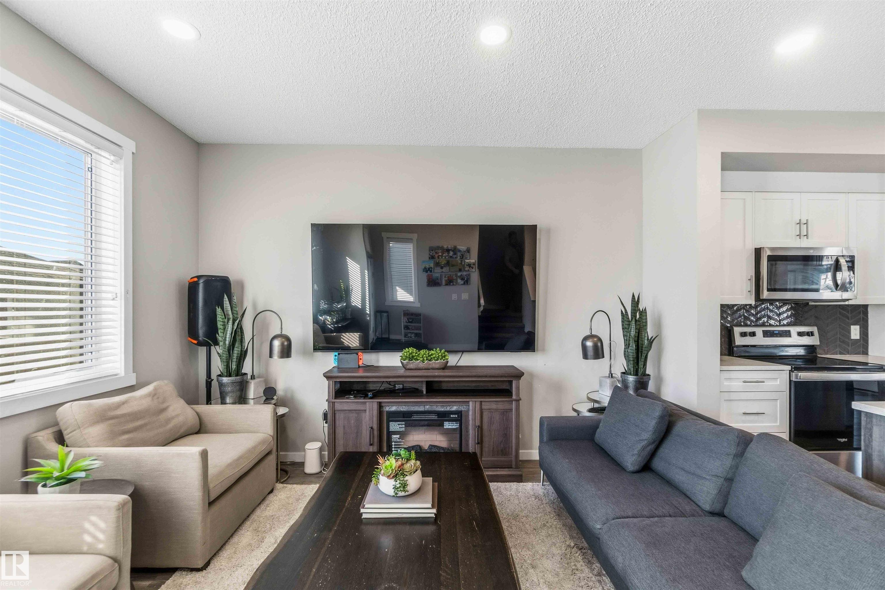 This former Homes by Avi showhome sits on a premium greenspace lot in the sought-after community of Laurel Green, offering style, space, and privacy in one exceptional package. The home features 3 spacious bedrooms, 2.5 bathrooms, and a bright, open main floor with 9' ceilings and luxurious vinyl plank flooring throughout. The chef-inspired kitchen is finished with quartz countertops and a stainless steel appliance package, perfect for both everyday living and entertaining. Outside, enjoy the convenience of a double detached garage, full professional landscaping, and complete fencing--everything already done, just move in and enjoy. home has central air.