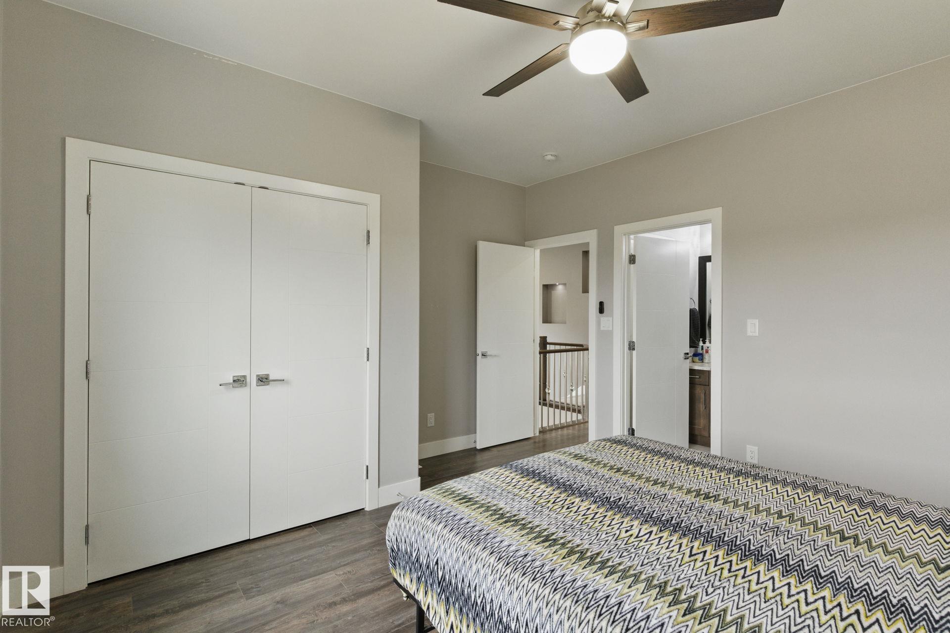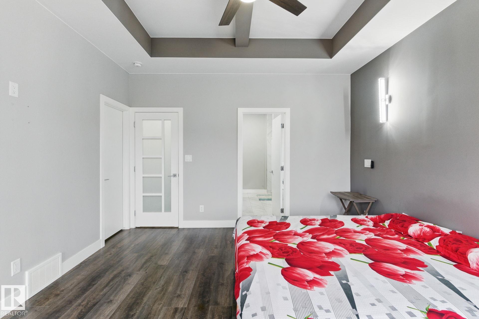 Northeast-facing 2334 SqFt home on a 38' pocket lot backing onto a park in Laurel! Features a 4-car heated tandem garage, solar panels, central A/C, water purifier & softener, plus a 2-bedroom legal basement suite with separate entrance. Main floor includes a bedroom with full ensuite (seat shower). Upgraded throughout with 19' open-to-above living room, spice kitchen with gas stove & built-ins, extended kitchen with all-fridge/all-freezer, quartz counters, soft-close cabinets to ceiling, and under-cabinet lighting. Enjoy 9' ceilings on all levels, 10' in primary BR, ceramic tile on main, luxury laminate upstairs, crystal LED lights, ceiling fans in all rooms, zebra blinds, illuminated stairs, and tile fireplace. Exterior offers 16x12 concrete patio, sidewalk, landscaping, privacy fence, and premium siding. Walking distance to Svend Hansen School. Flexible possession available!
