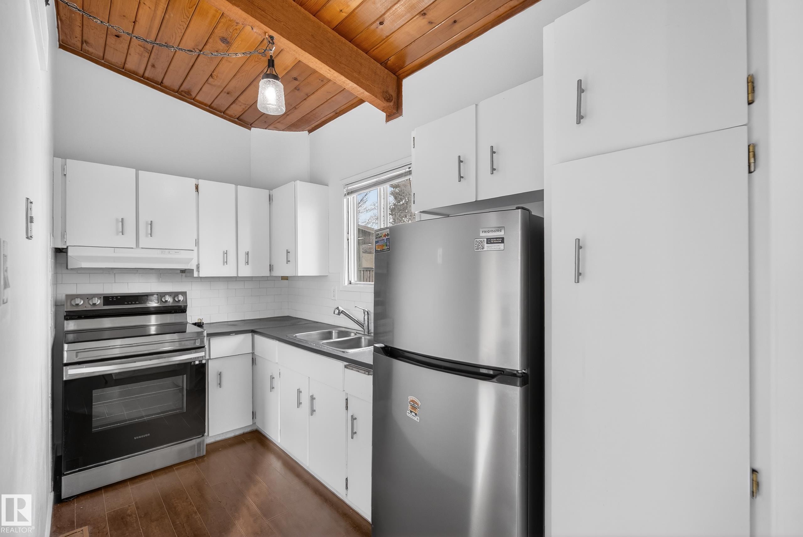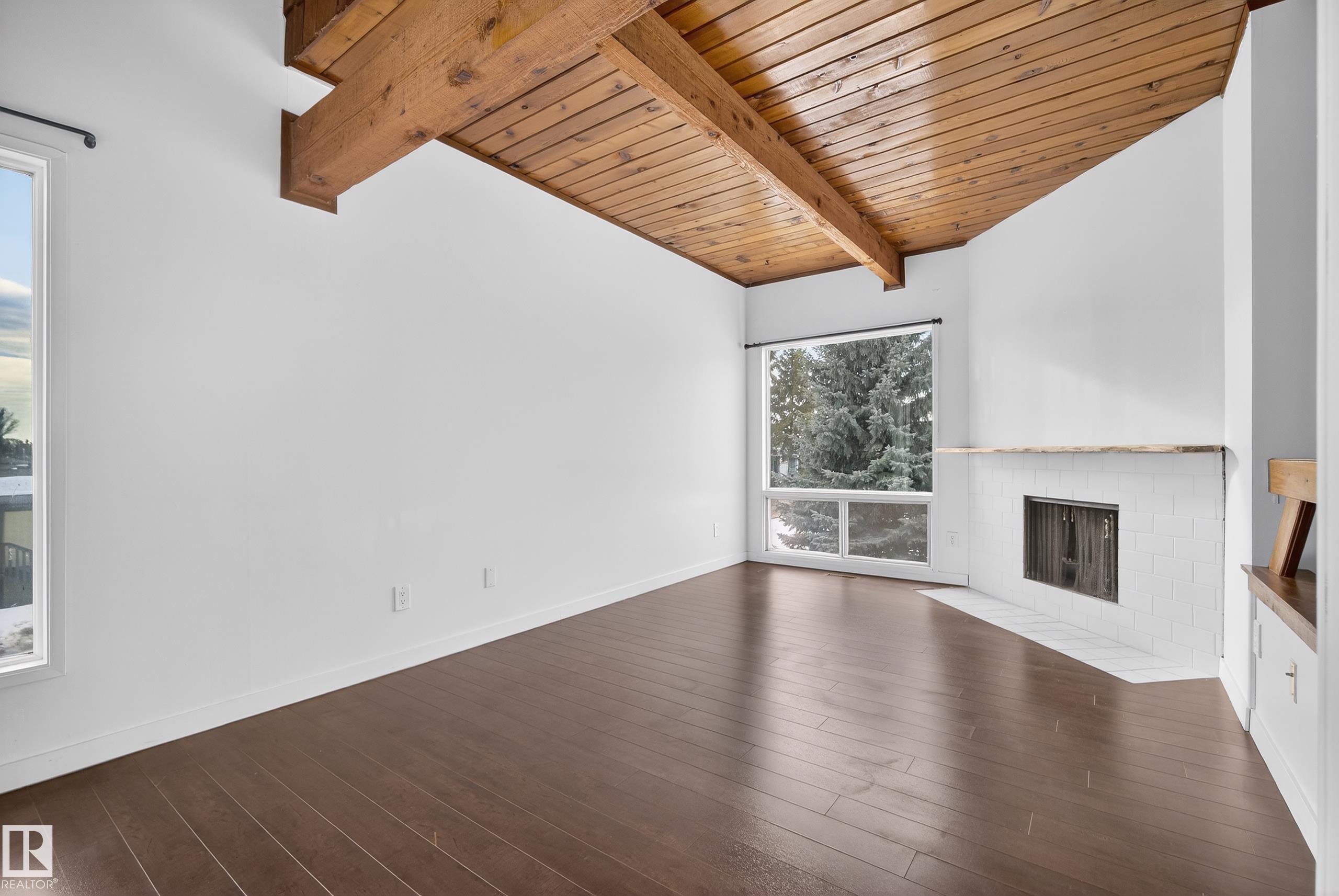 Welcome to your new home in Mill Woods! Nestled in a peaceful CORNER location, this BI-LEVEL HALF-DUPLEX townhome offers comfort, style, and convenience. The FULLY FINISHED BASEMENT features 2 SPACIOUS BEDROOMS plus a generous STORAGE/LAUNDRY ROOM, while the main level boasts a RENOVATED 5-PIECE BATH. The kitchen is thoughtfully positioned at the back, overlooking the peaceful courtyard. Relax by the cozy FIREPLACE, enjoy the soaring VAULTED CEILINGS, and step onto your private DECK for morning coffee or evening unwinding. A dedicated PARKING STALL adds everyday convenience. Recent upgrades include a HOT WATER TANK (2024), APPLIANCES (2024), and modern LIGHT FIXTURES (2024), giving you peace of mind and a fresh, updated feel. Even better--NO WATER BILL to pay! Ideally located close to shopping, restaurants, Grey Nuns Hospital, the new LRT station, transit, gyms, Whitemud, and Anthony Henday. Comfort and functionality harmonize beautifully--your perfect haven awaits!