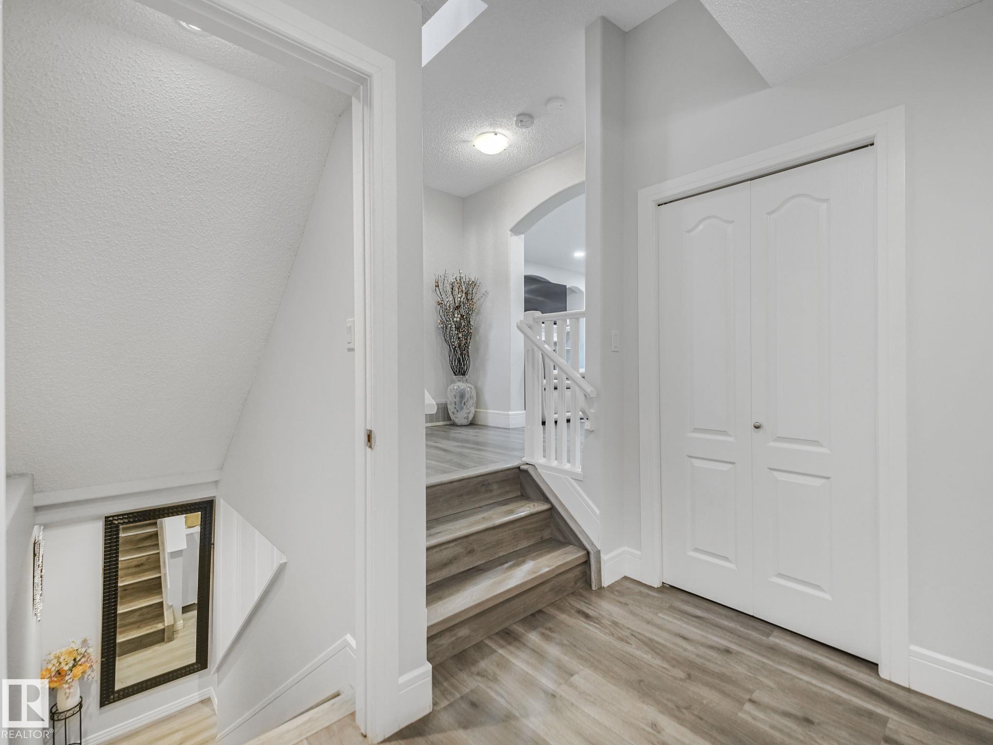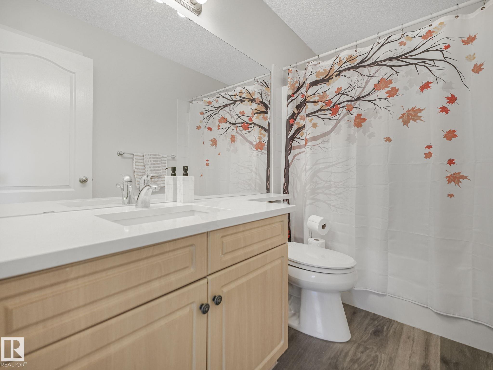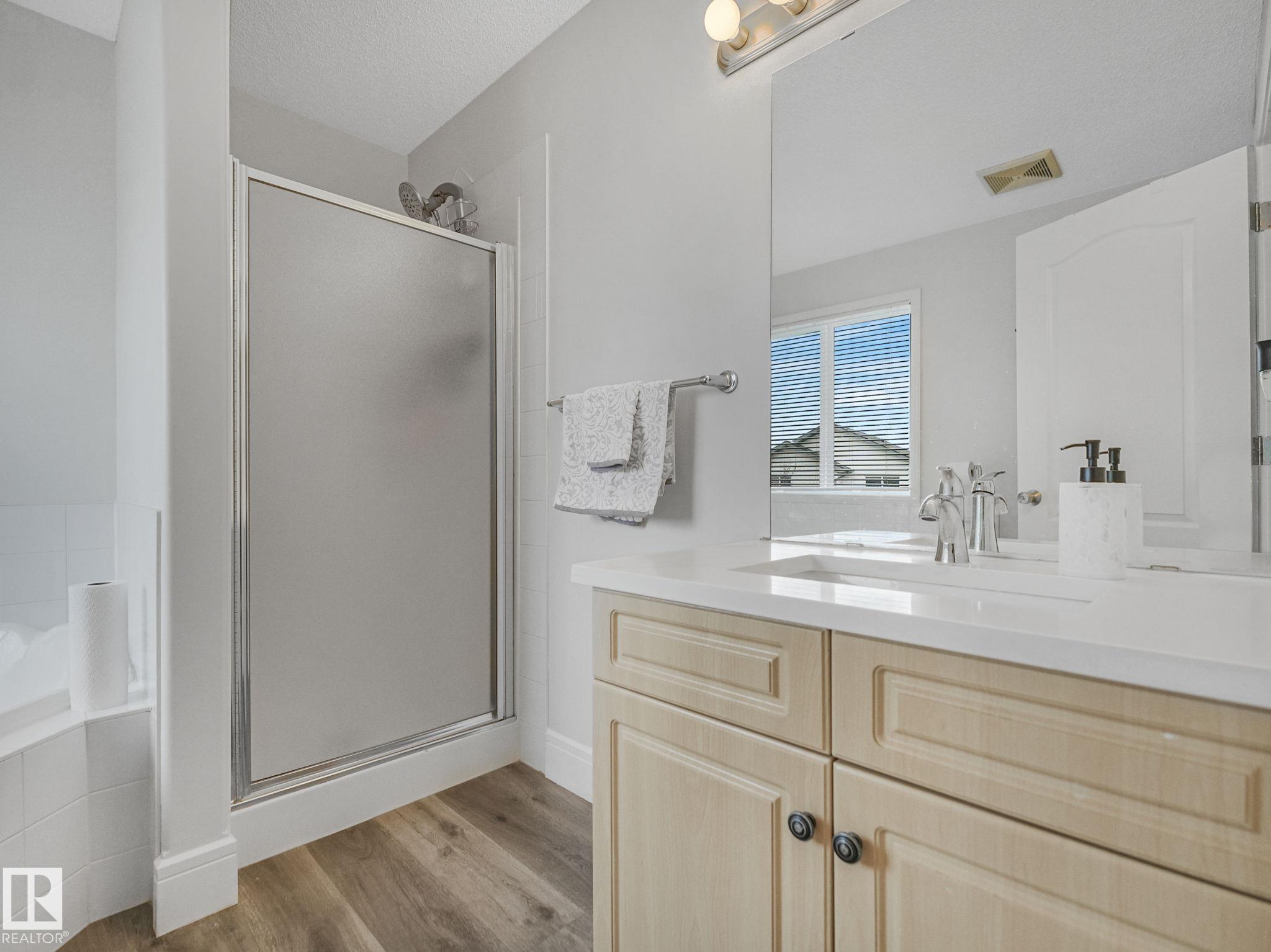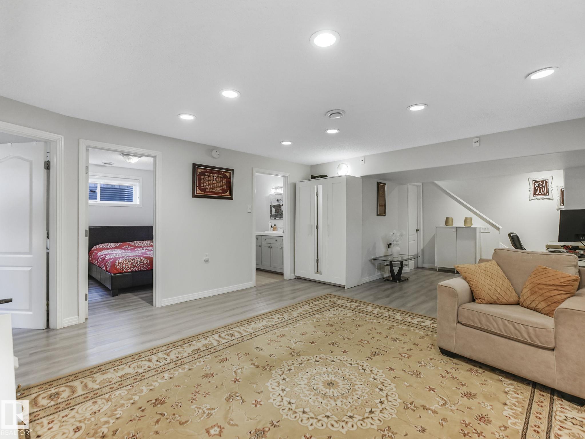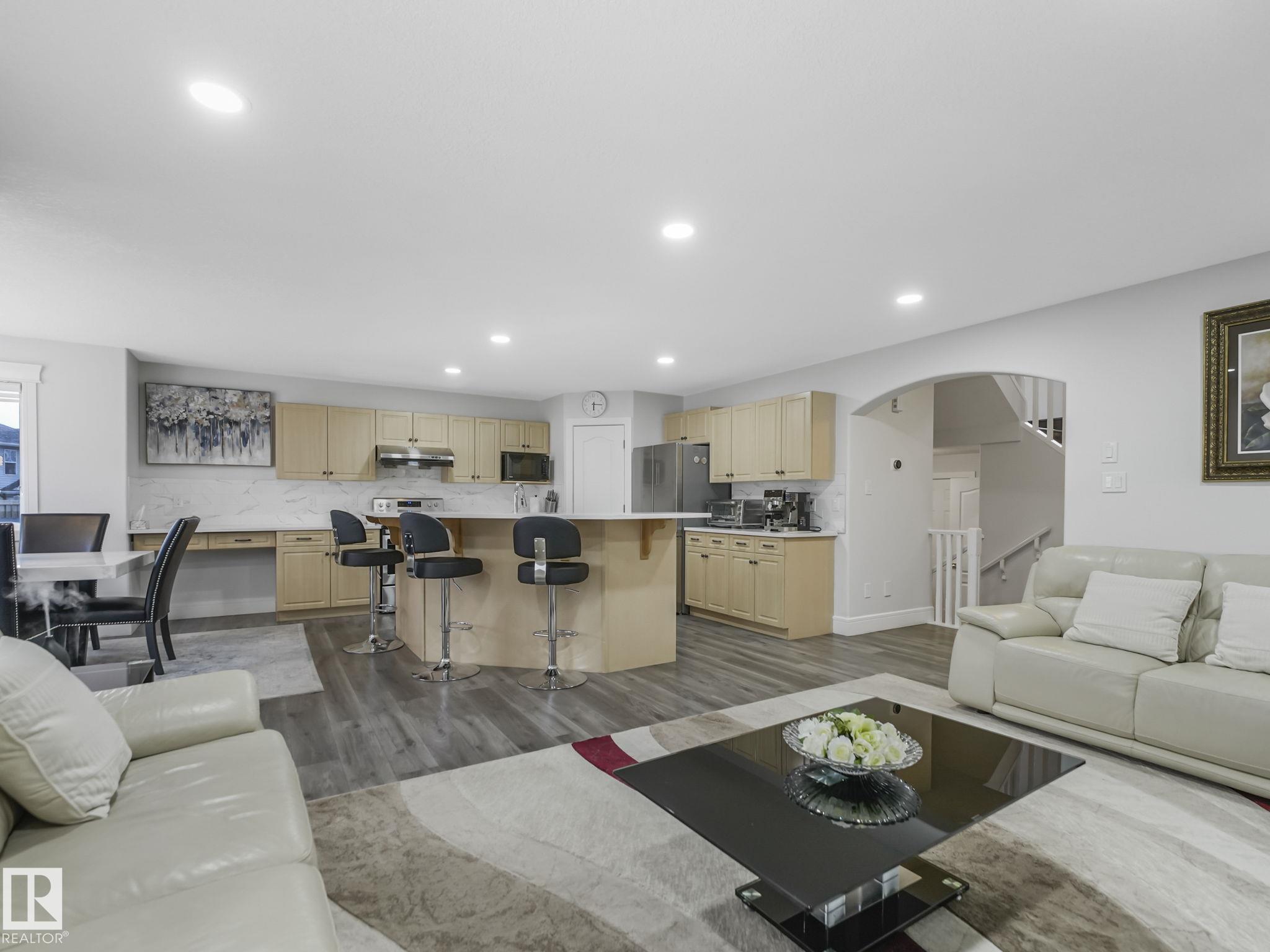 Welcome to this beautifully updated family home tucked into a quiet cul-de-sac in sought-after MacEwan! With over $88,000 in renos, this bright open-concept main floor features a cozy fireplace, large windows, and new vinyl flooring throughout. The spacious kitchen offers maple cabinetry, pantry, island with double sinks, and overlooks the dining area and huge, professionally landscaped pie-shaped yard--perfect for kids and entertaining. Main floor also includes laundry and a 2pc bath. Upstairs you'll find a bonus family room, 3 generous bedrooms, including a primary suite with walk-in closet and 4pc ensuite with jetted tub. Fully finished basement adds 2 bedrooms and a full bath. Extensive upgrades: granite counters, backsplash, appliances, furnace, hot water tank, garage door, garage heater, lighting, blinds, and fresh paint. Close to schools, parks, LRT, Anthony Henday & shopping. Move-in ready!