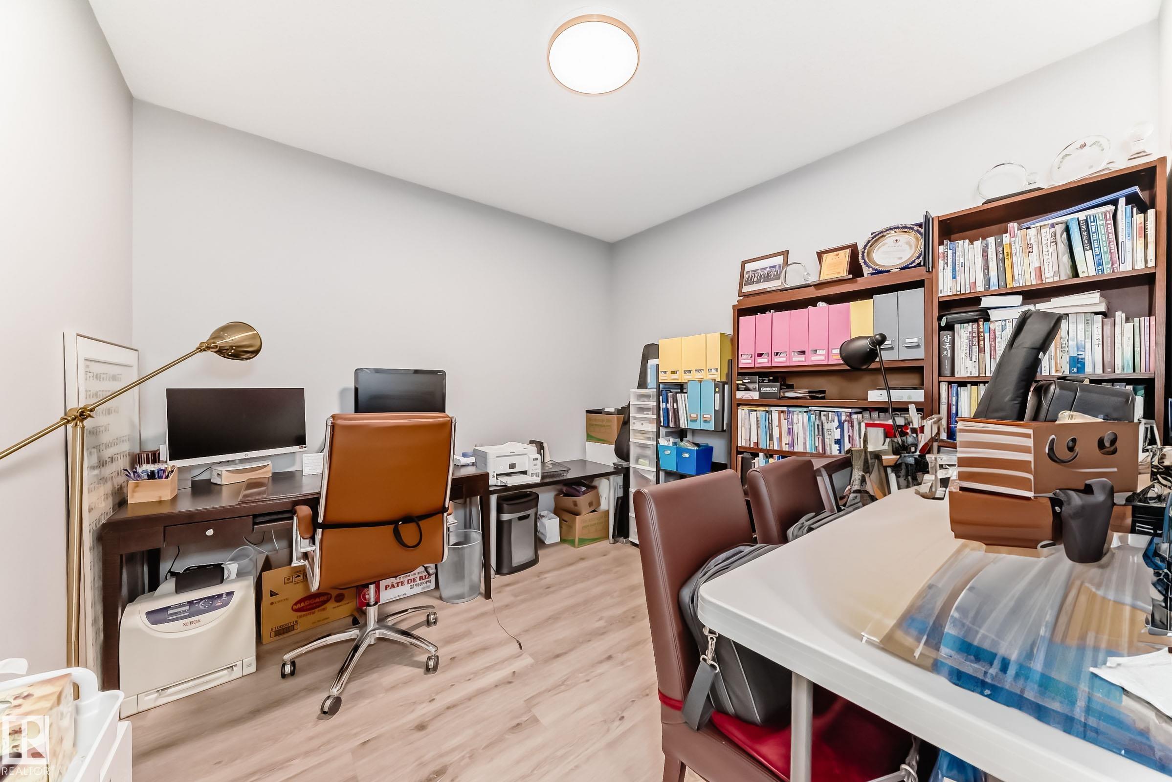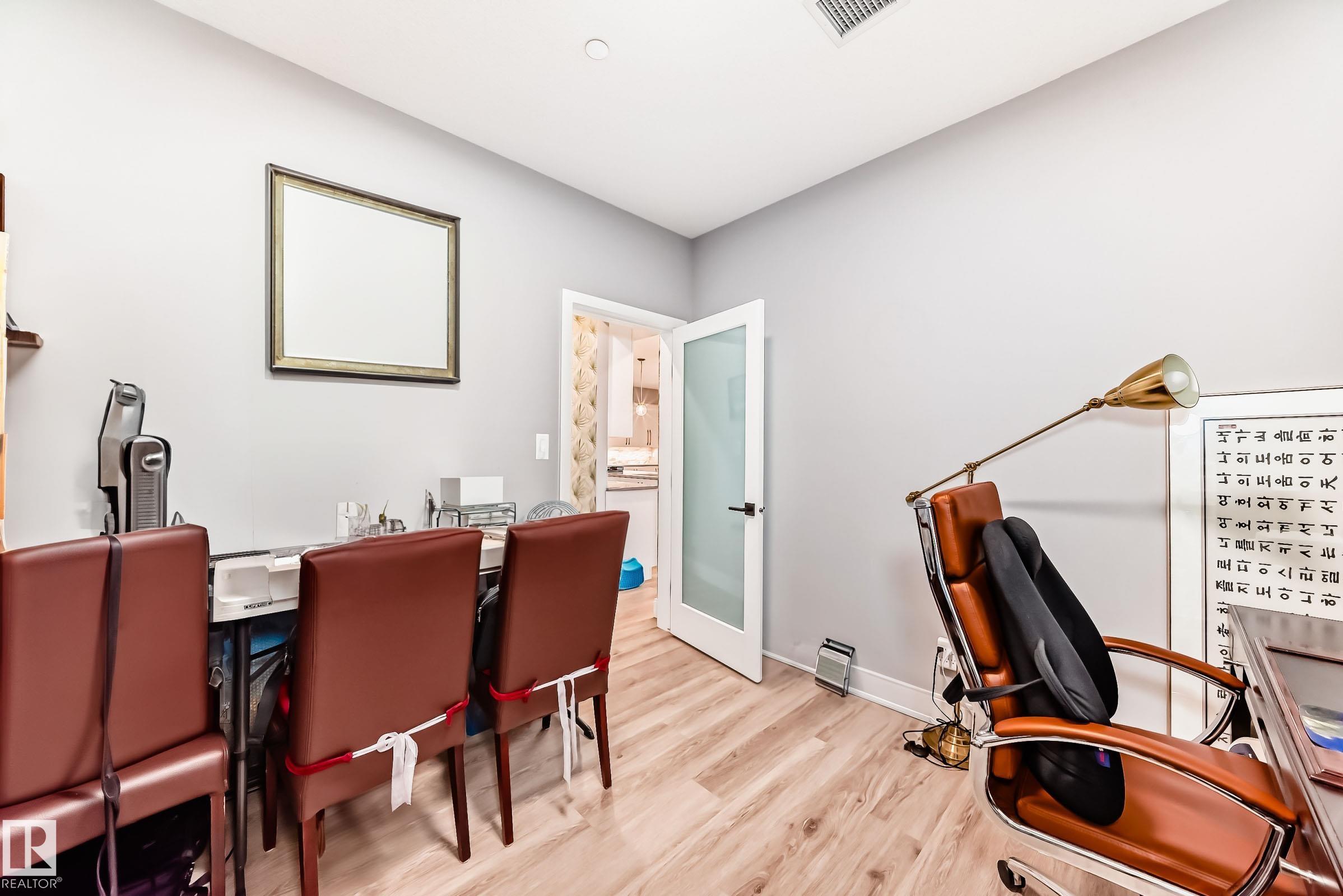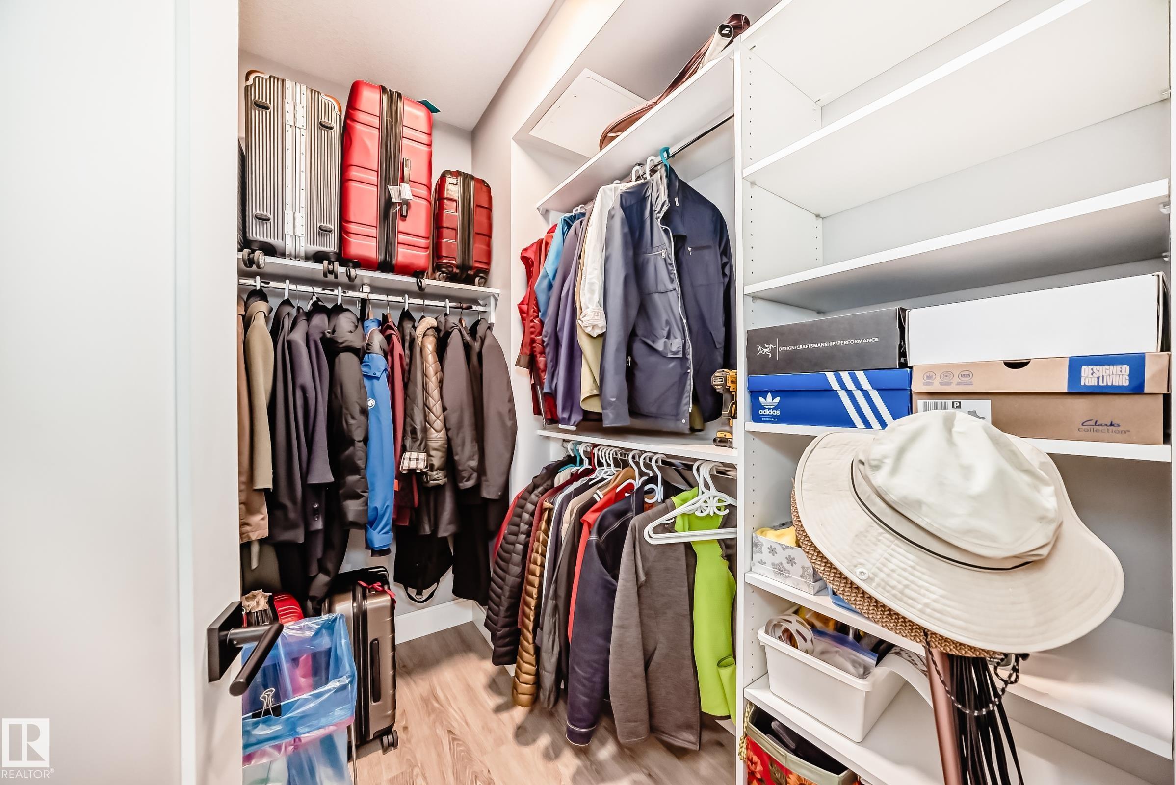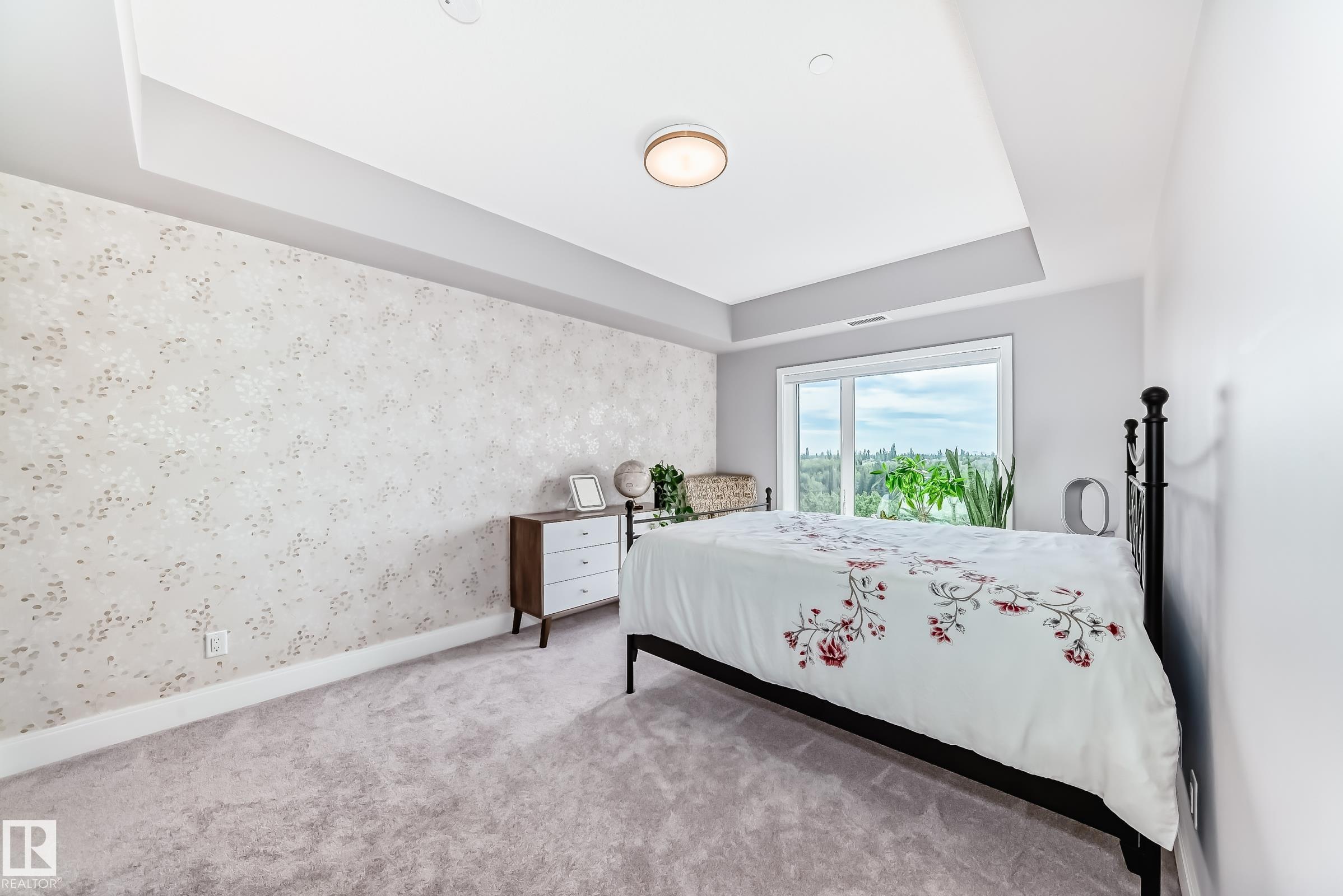 Experience Unrivaled Luxury and Ravine Living in this stunning 1,700+ sqft. condo, perfectly positioned with rare Southeast Whitemud Creek Ravine views. Located in prestigious Magrath Heights at Edge at Larch Park, this immaculate, pet-free home features 2 spacious bedrooms, a versatile office/den, 2 full baths, 9' ceilings, and a gourmet kitchen with a large island, gas cooktop, and wall oven. Relax in the bright living room with its stylish fireplace, or step out onto the expansive balcony for peaceful ravine scenery. The primary suite boasts a walk-in closet and spa-like ensuite, while the second bedroom also has a walk-in closet. Enjoy 2 underground parking stalls (a $25,000 EV charging station upgrade) and a large storage room for added convenience. World-class building amenities include a Chef's Kitchen & Lounge, yoga and meditation rooms, art/craft spaces, library, conference room, pet wash, and outdoor firepit. Incredible opportunity--luxury, comfort, and nature await!