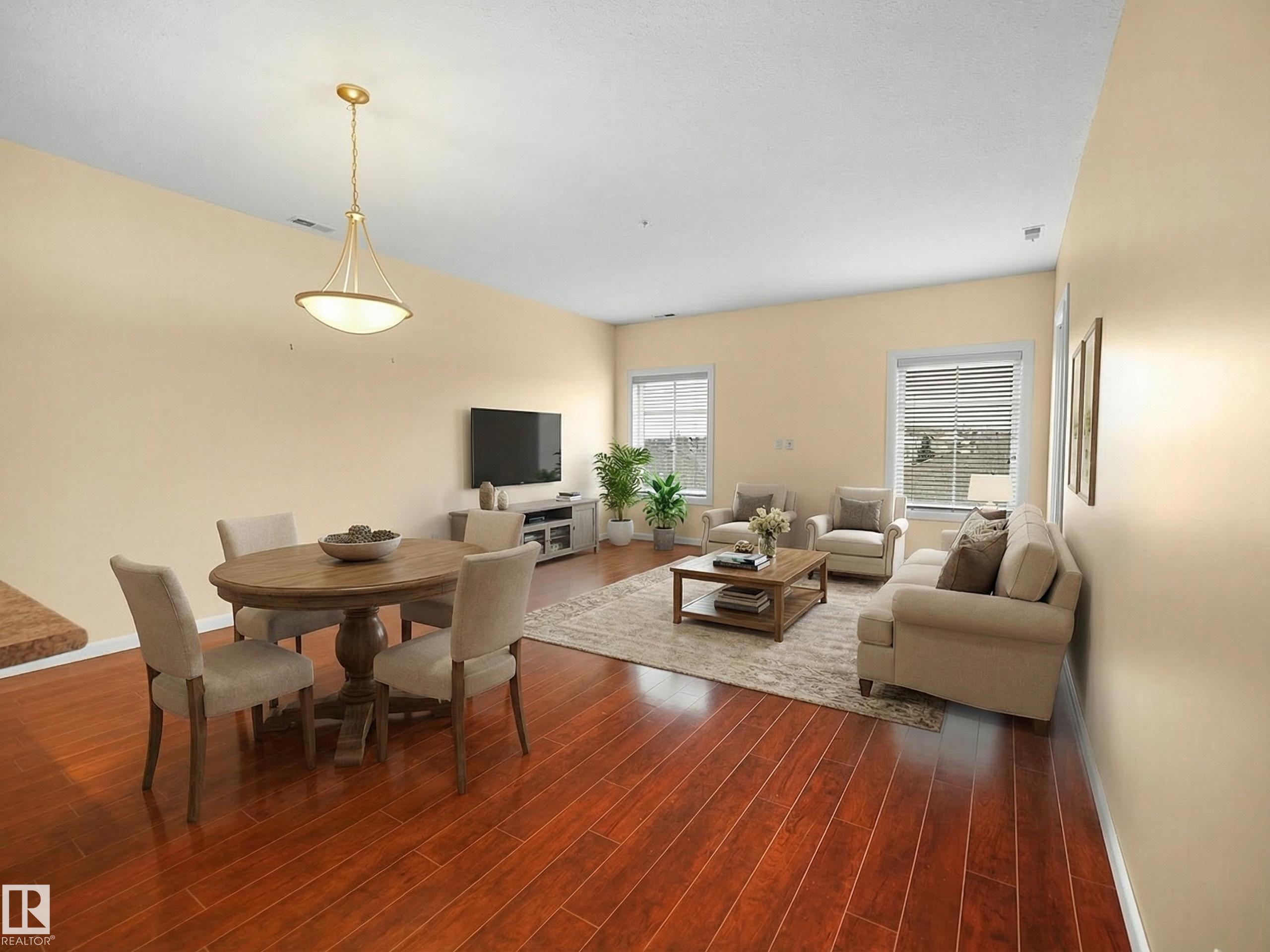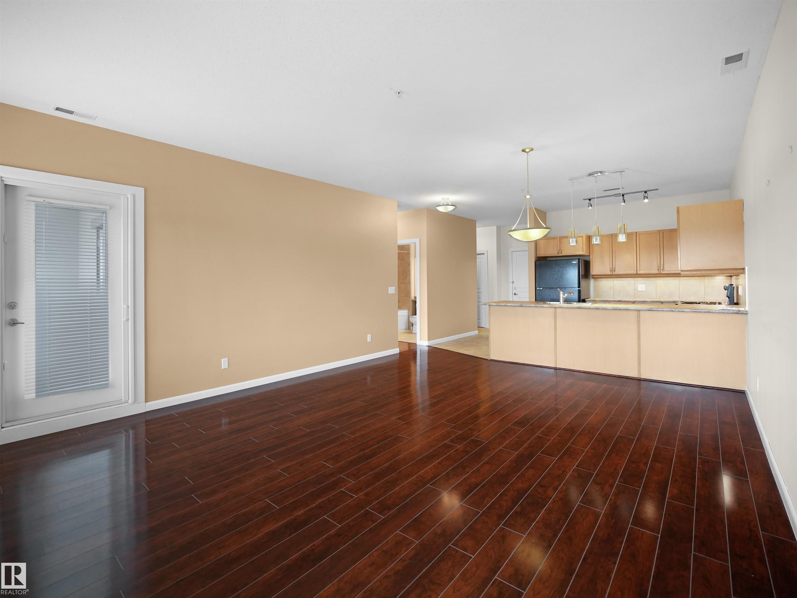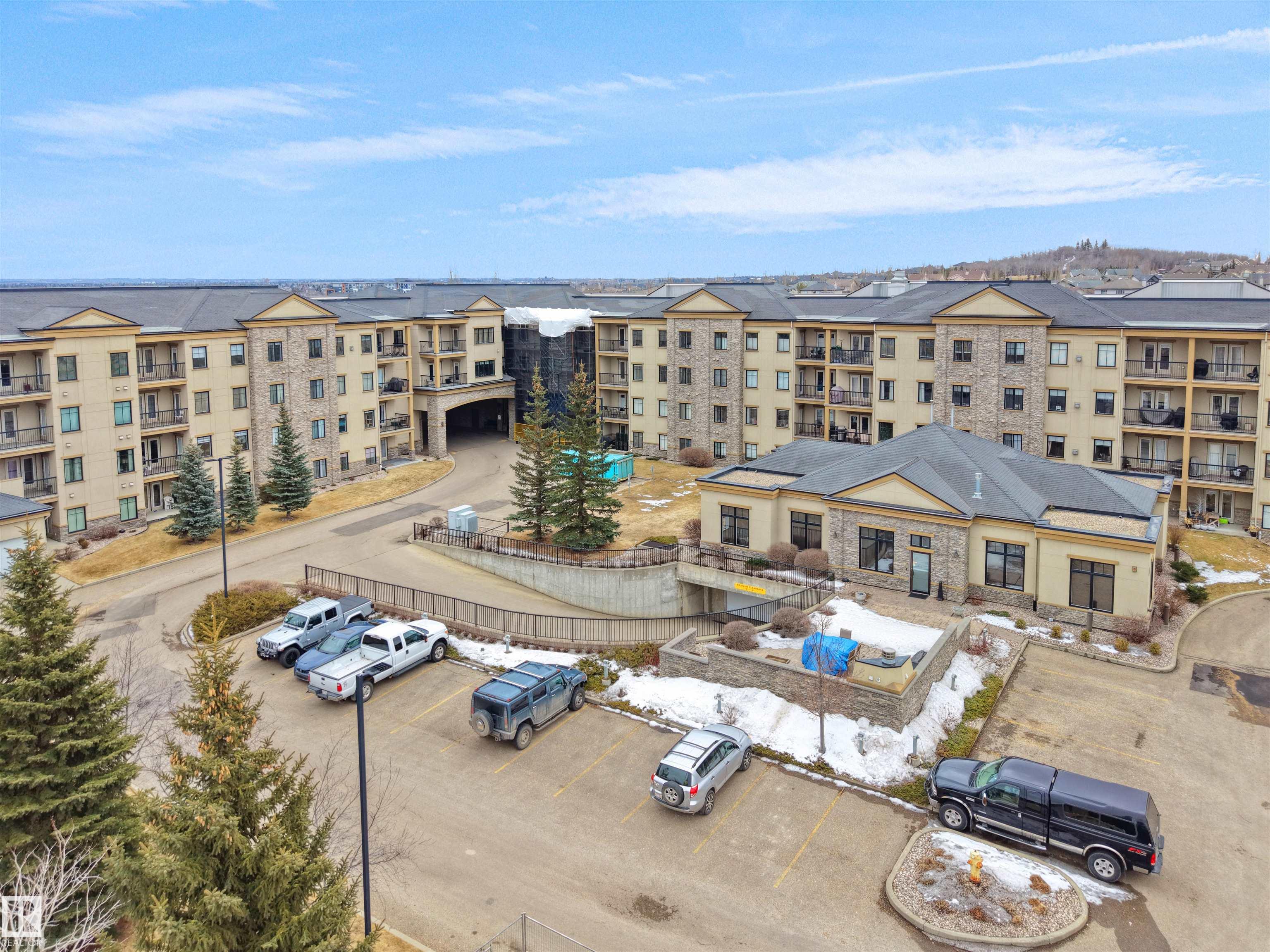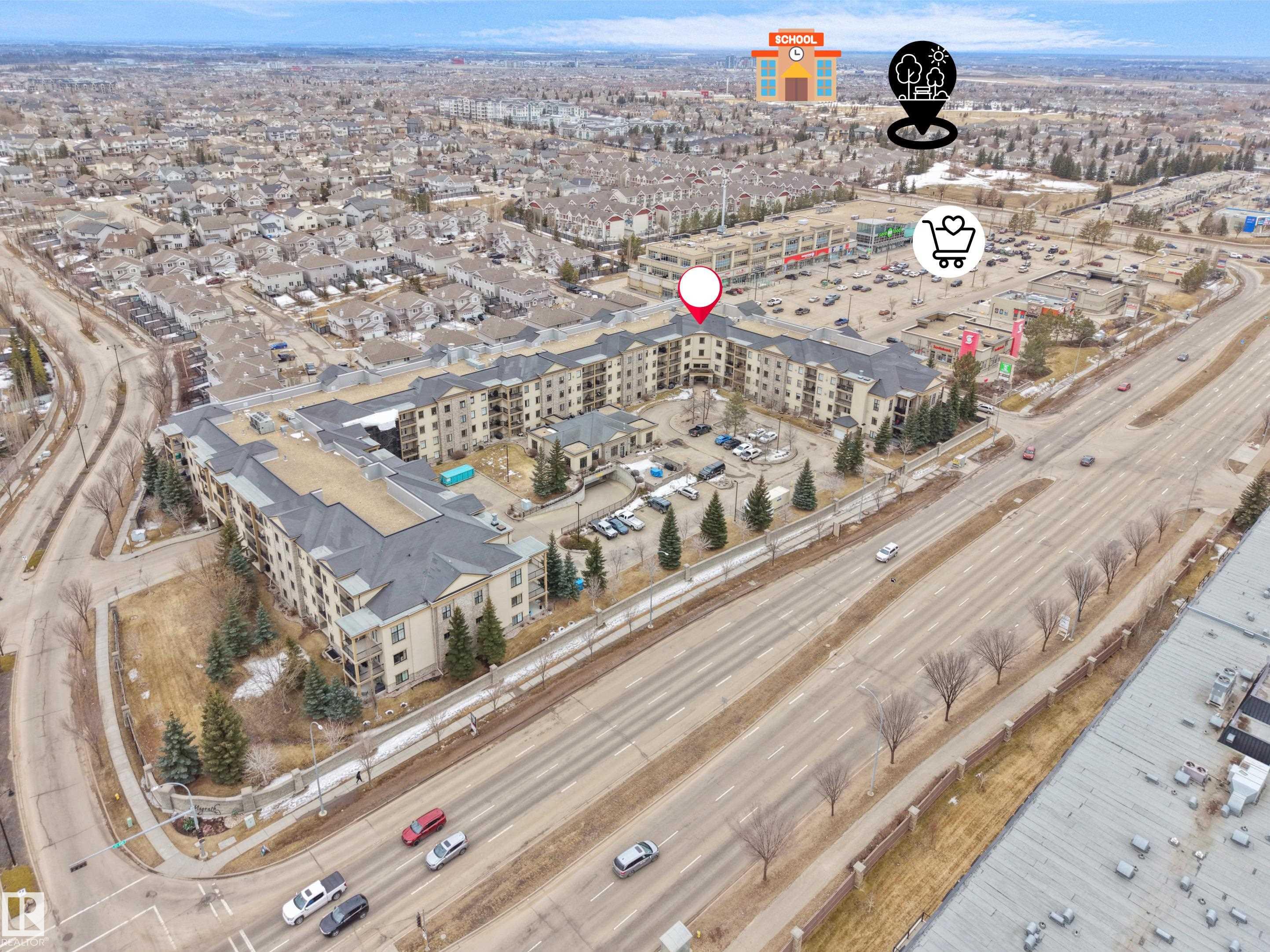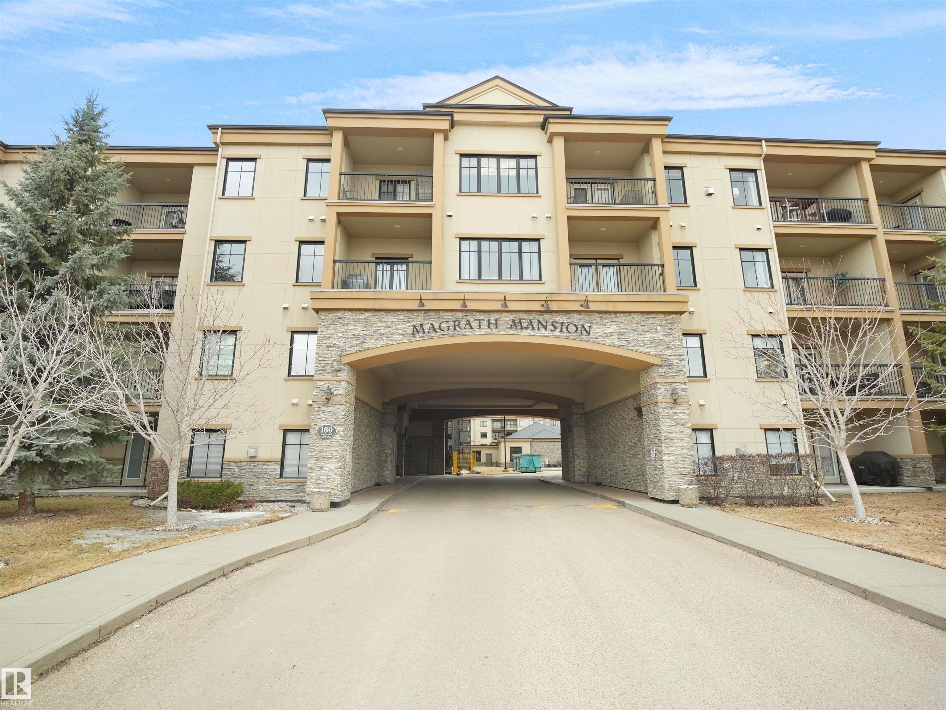 Beautiful TOP FLOOR, AIR-CONDITIONED 1 bedroom + den unit in SOUGHT-AFTER MAGRATH MANSION. This well-maintained condo offers a SPACIOUS KITCHEN with ample cabinetry and countertop space, open to the dining and living areas. The PRIMARY BEDROOM is generously sized and features a WALK-IN CLOSET AND DIRECT ACCESS TO THE BALCONY. The full bathroom includes a JETTED TUB, and the den provides a perfect space for a home office, Guest Bedroom or an additional storage. The unit also includes a large entryway, IN-SUITE AIR CONDITIONING, and one UNDERGROUND PARKING STALL WITH A STORAGE CAGE. Magrath Mansion offers excellent amenities including a SOCIAL ROOM WITH KITCHEN, POOL TABLE & LIBRARY, FITNESS CENTRE WITH HOT TUB AND STEAM ROOM, THEATRE ROOM, AND A CAR WASH BAY WITH VACUUM. Conveniently LOCATED ACROSS FROM A PARK AND WALKING PATHS LEADING TO A RAVINE, and walking distance to shopping, multiple schools, public transportation. Easy access to Anthony Henday, Whitemud Drive, and the Terwillegar Recreation Centre.