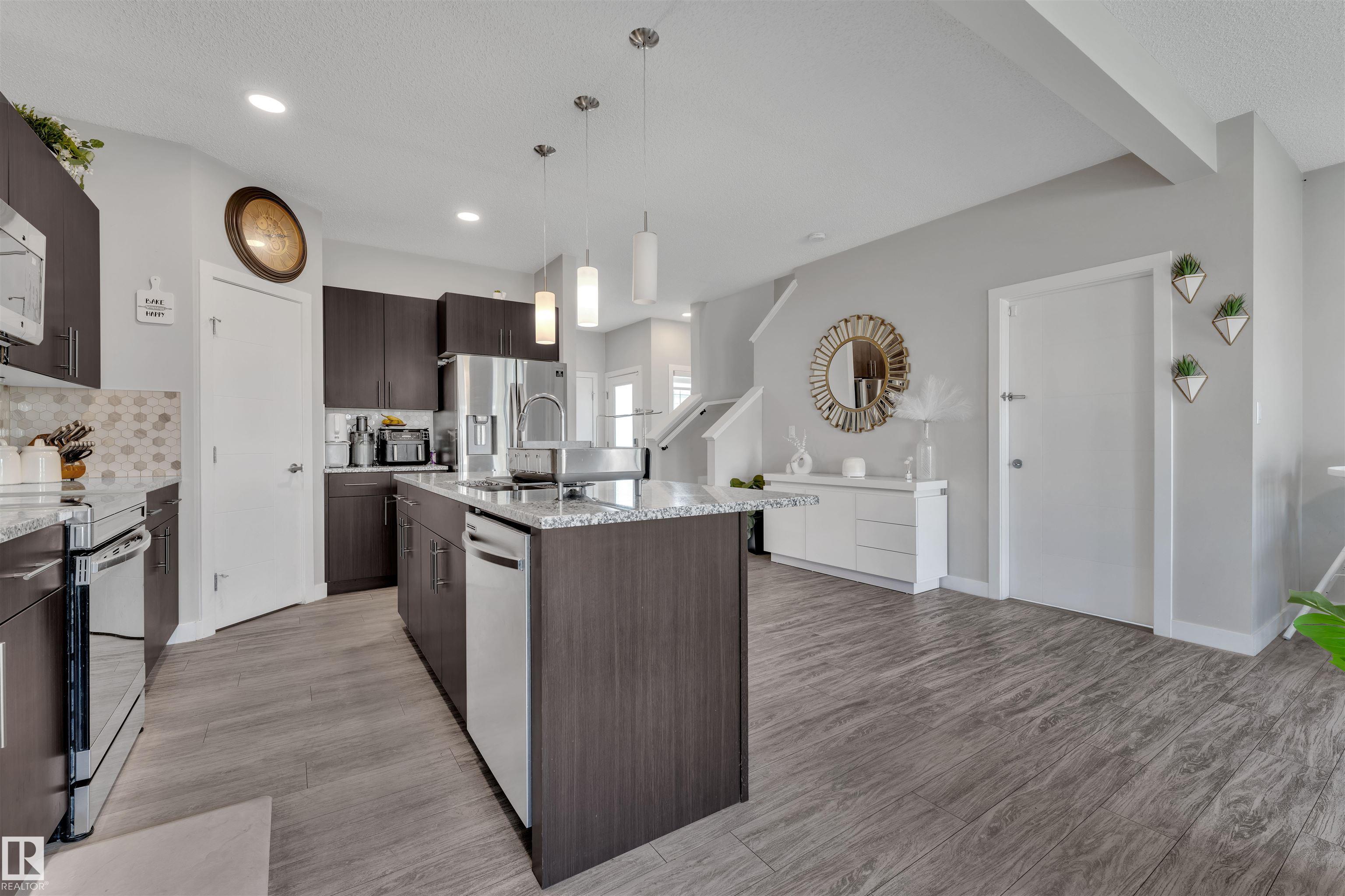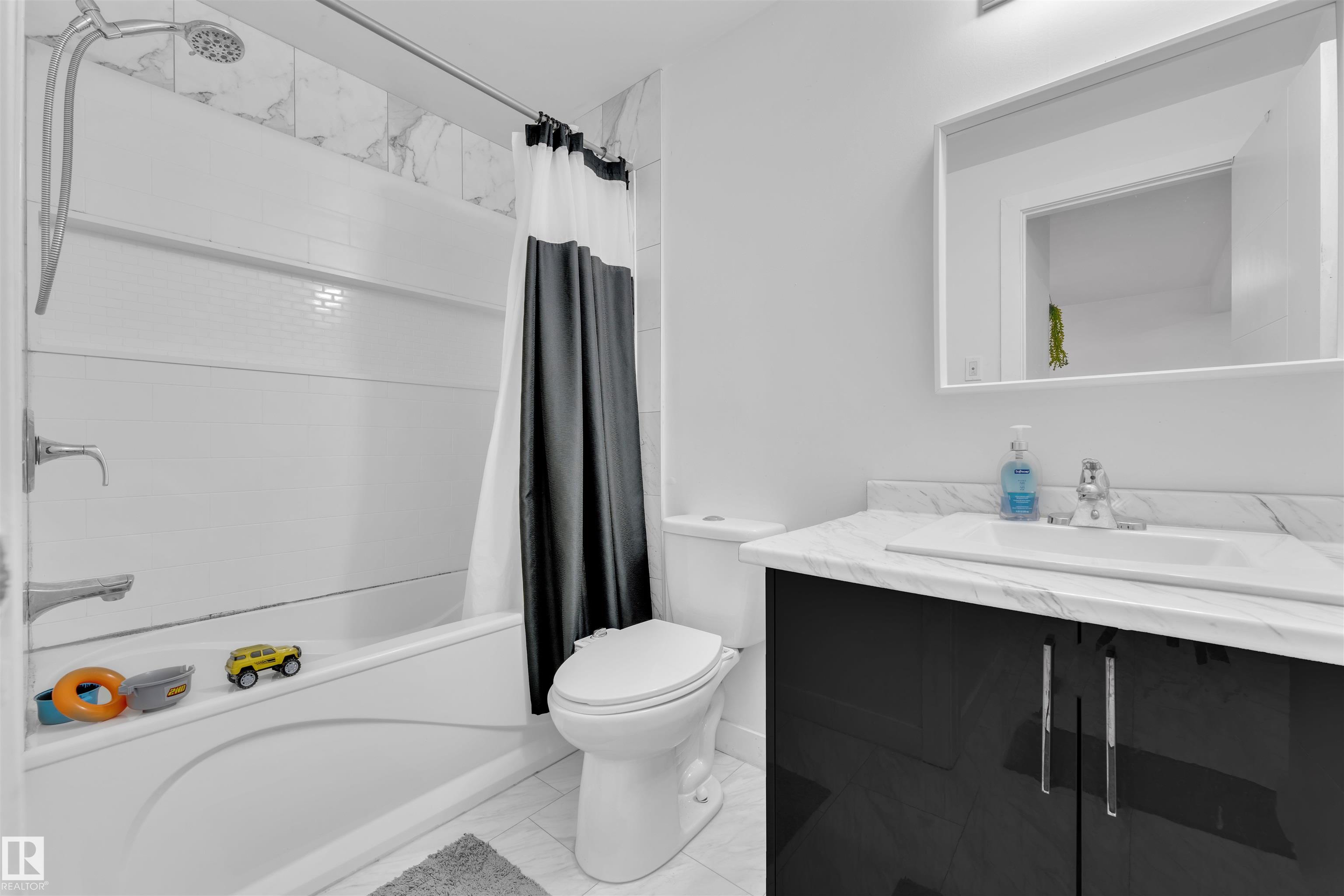 Welcome to this beautiful upgraded duplex with FINISHED Basement that perfectly blends modern style with comfort and convenience. Enjoy the convenience of a SEPARATE ENTRANCE to the BASEMENT with a SECOND KITCHEN & a Separate Laundry--ideal for extended family. Main floor features a spacious living room with a cozy electric fireplace, dining Area , Elegant kitchen with pantry and stainless steel appliances. Upstairs features 3 bedrooms including the primary with an ensuite bathroom and walk in closet. Convenient second floor laundry, BONUS room and two other good sized bedrooms and full 3 pc bath. Close to all amenities including shopping center, movie theatre, Rec Center, Restaurants, and MAJOR transportation Highway routes like the Anthony Henday and the Whitemud.