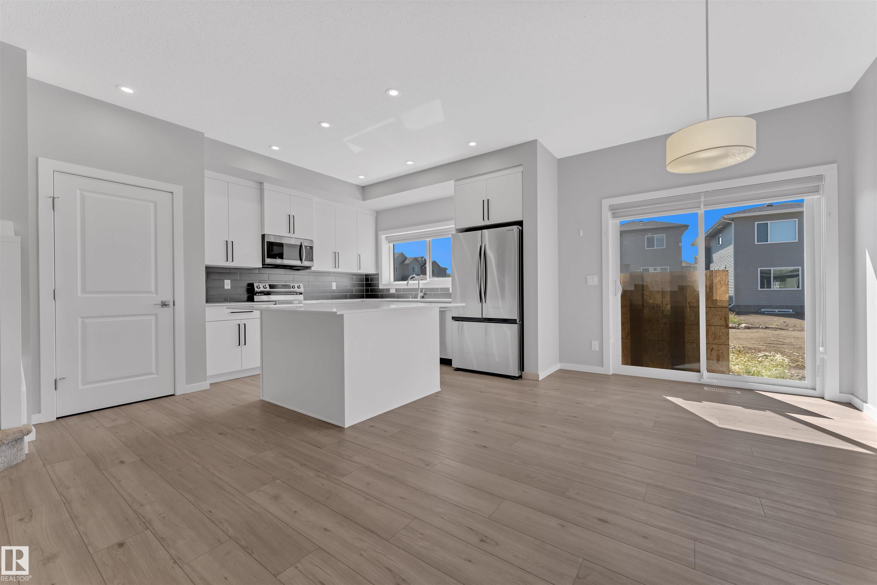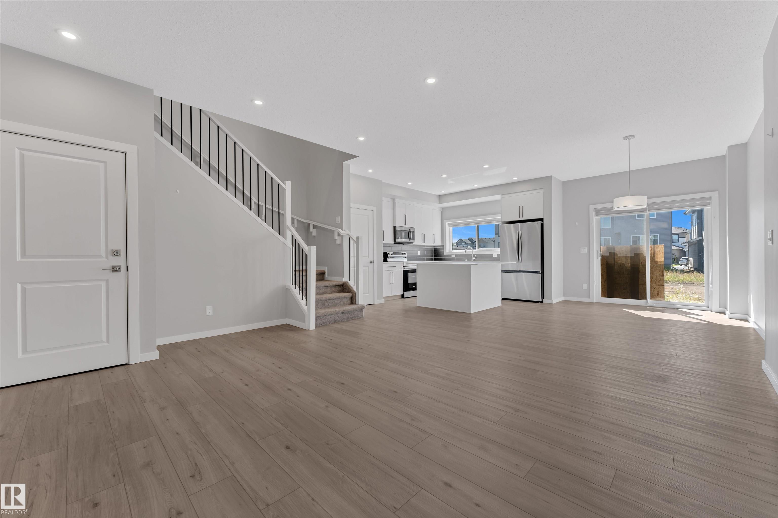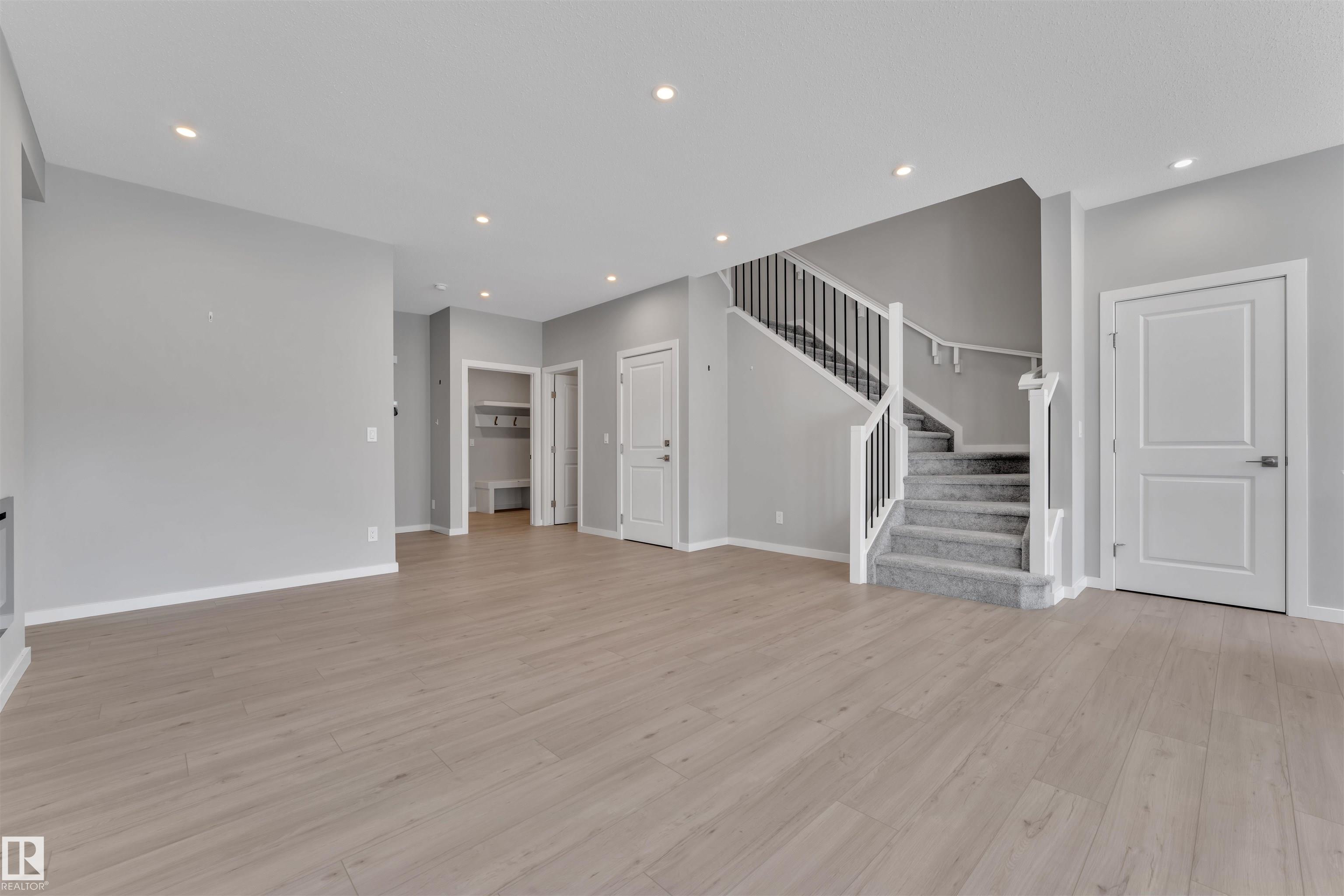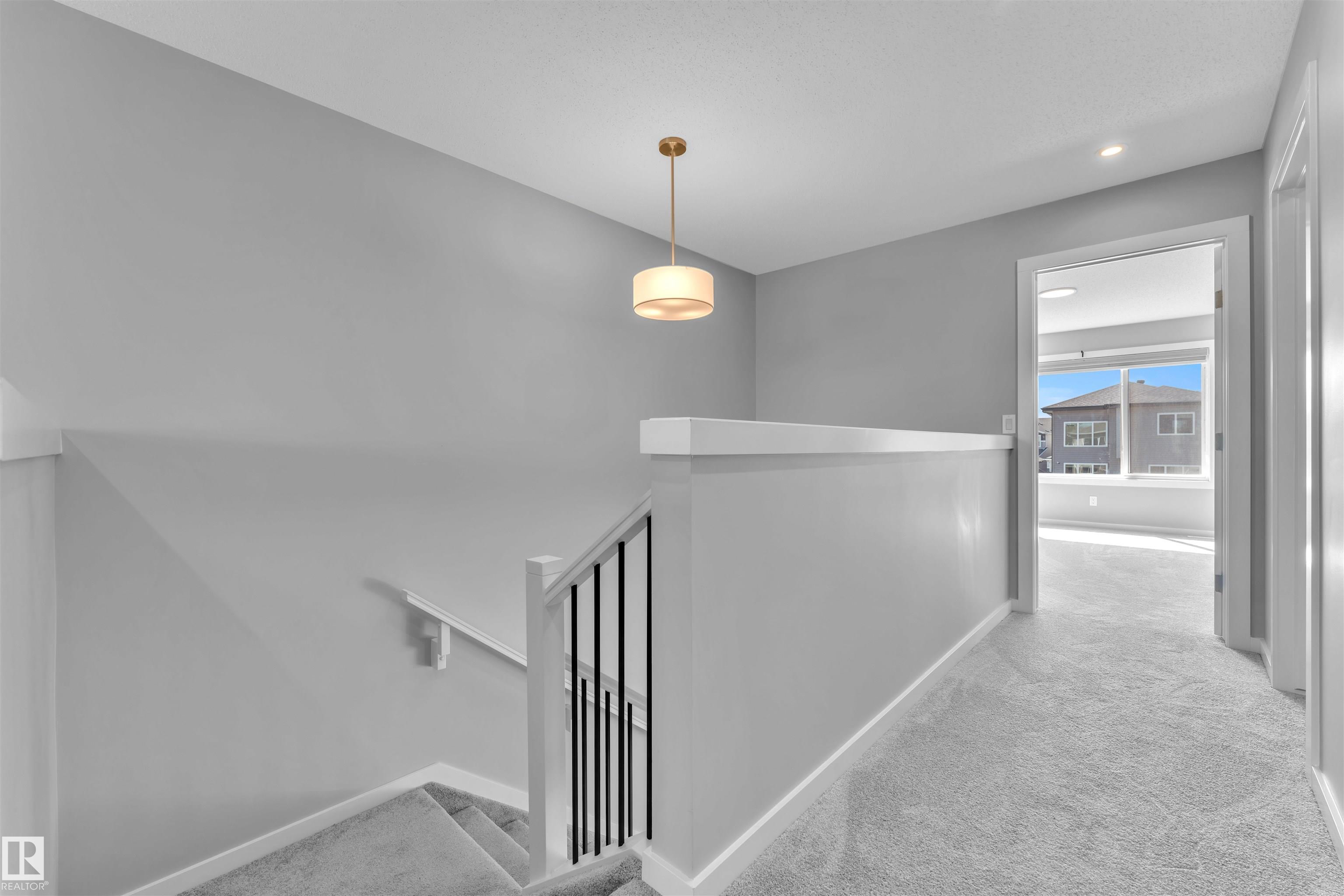 **MAPLE CREST**SOUTH EDMONTON**BUILDER - Bedrock Homes Walk through the foyer and into the large open great room, watch how it flows to your corner kitchen and dining area. Enjoy the view of your backyard as you wash the dishes and walk right through to the deck from your dining room. Upstairs you'll find secondary rooms at the front of the house, a central bonus room, and a large primary suite towards the back of the home. Your primary suite includes a large four-piece ensuite with a water closet. Through your ensuite you will discover a large walk-in closet that leads directly into your upstairs laundry room. Other features include a side entrance, SMART Alexa technology, main floor railing, and a bench, organizers and hooks in the mud room.