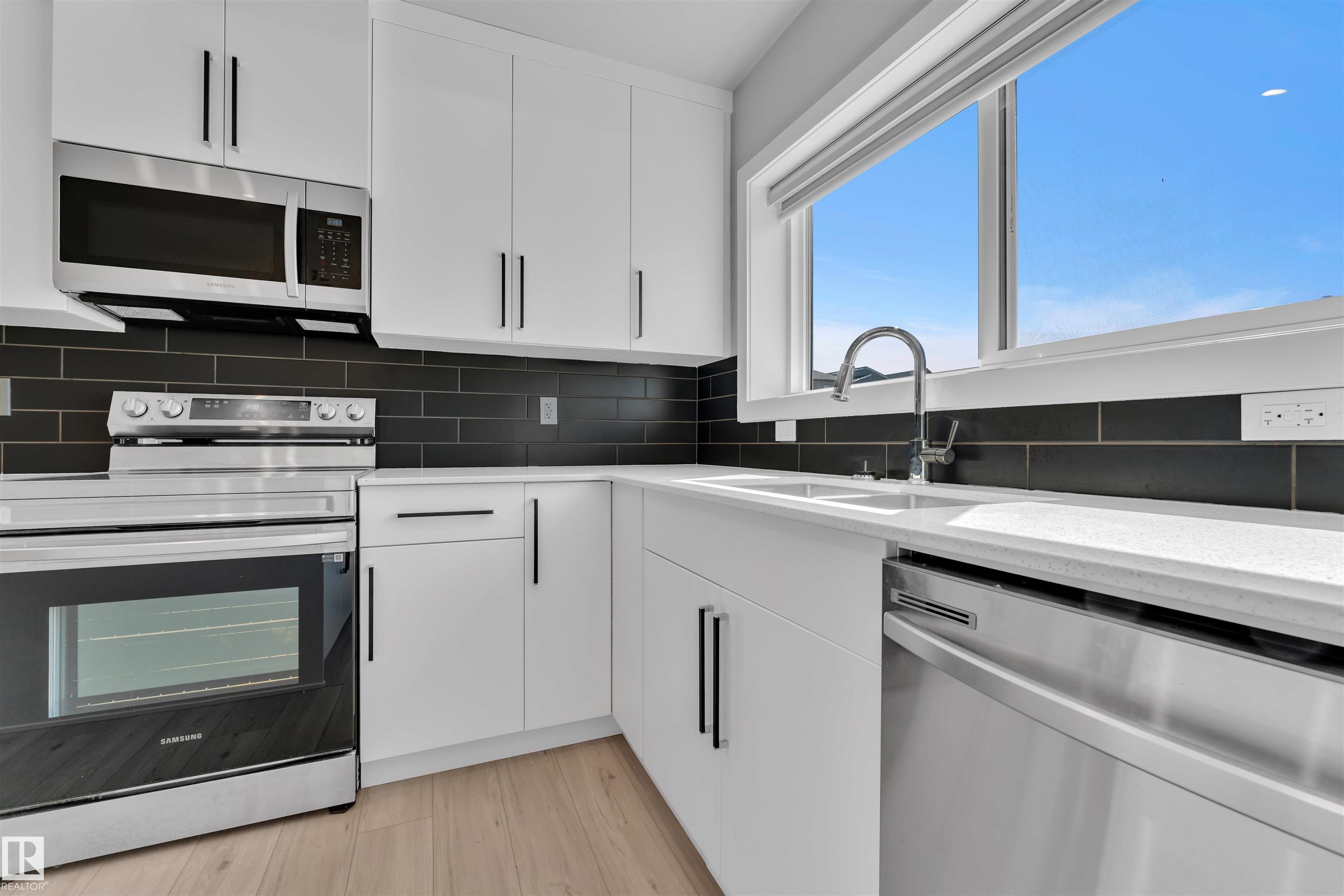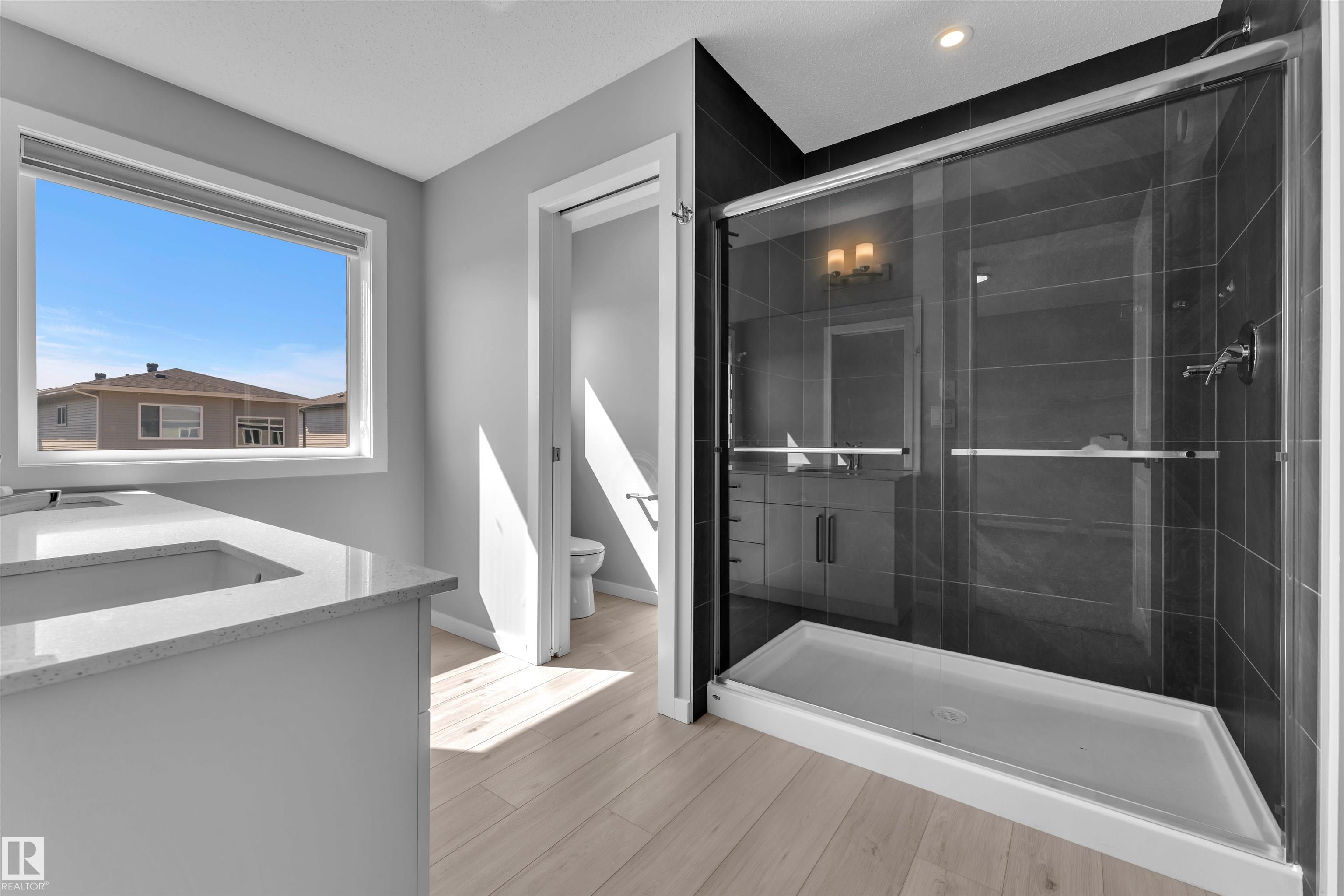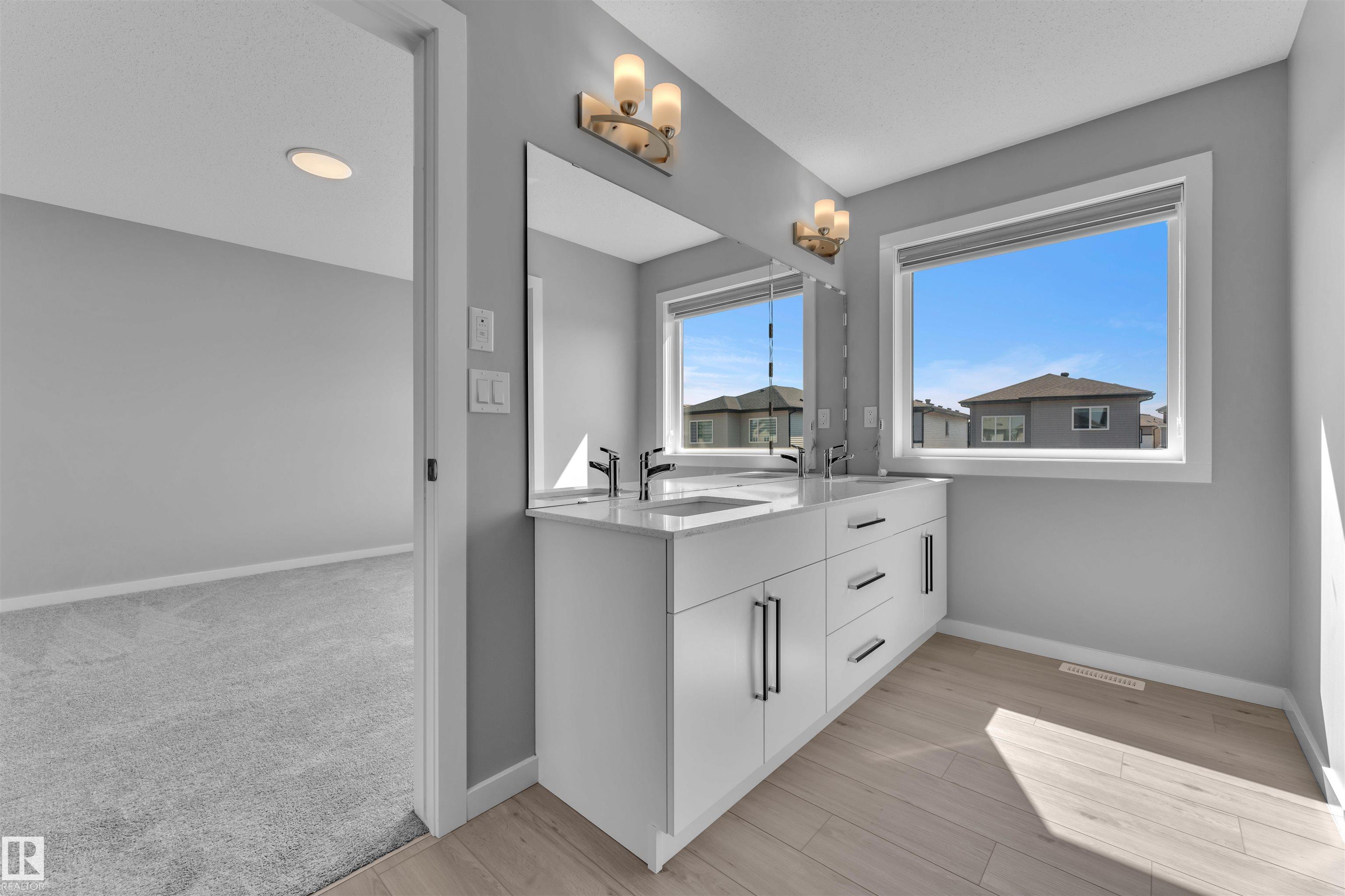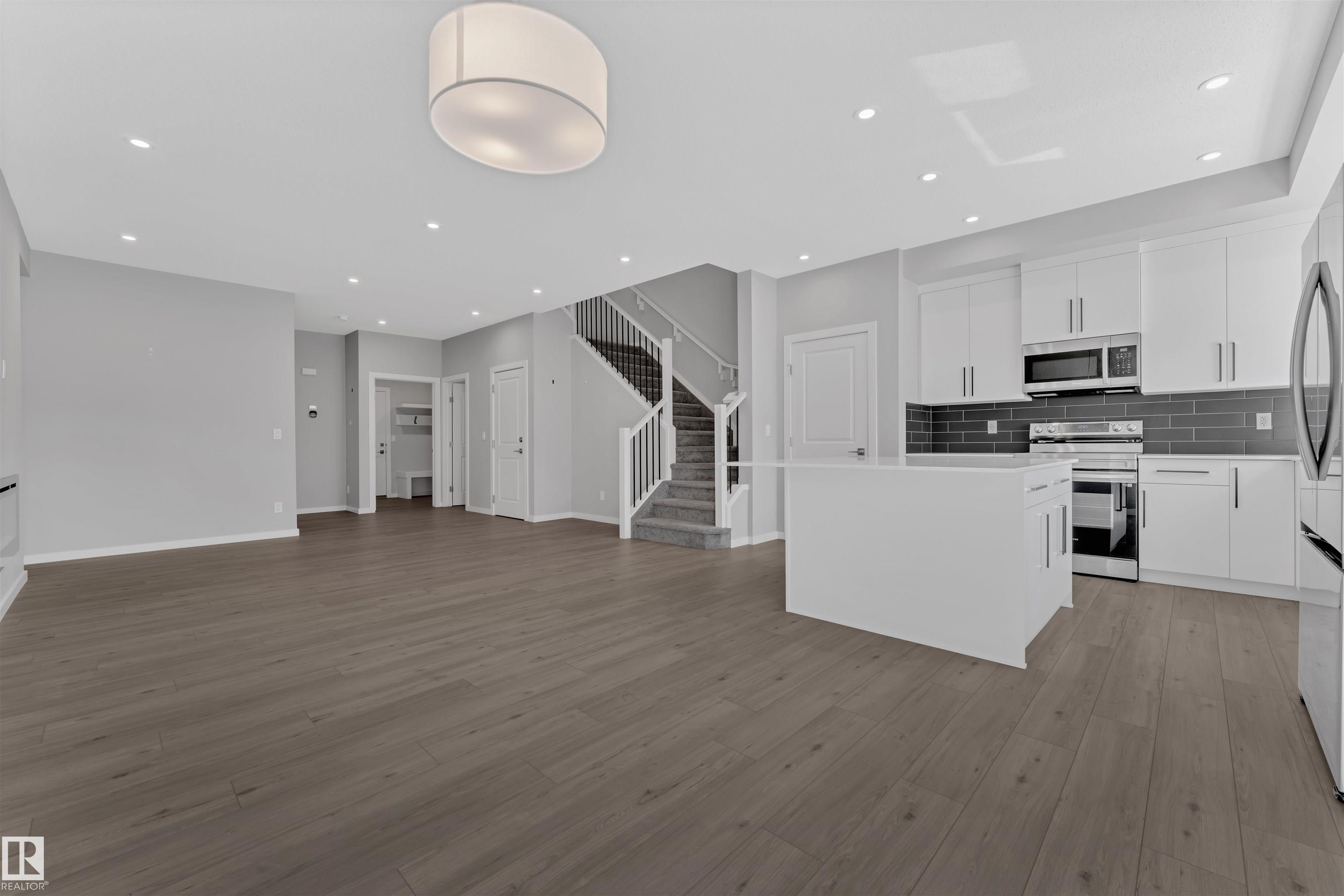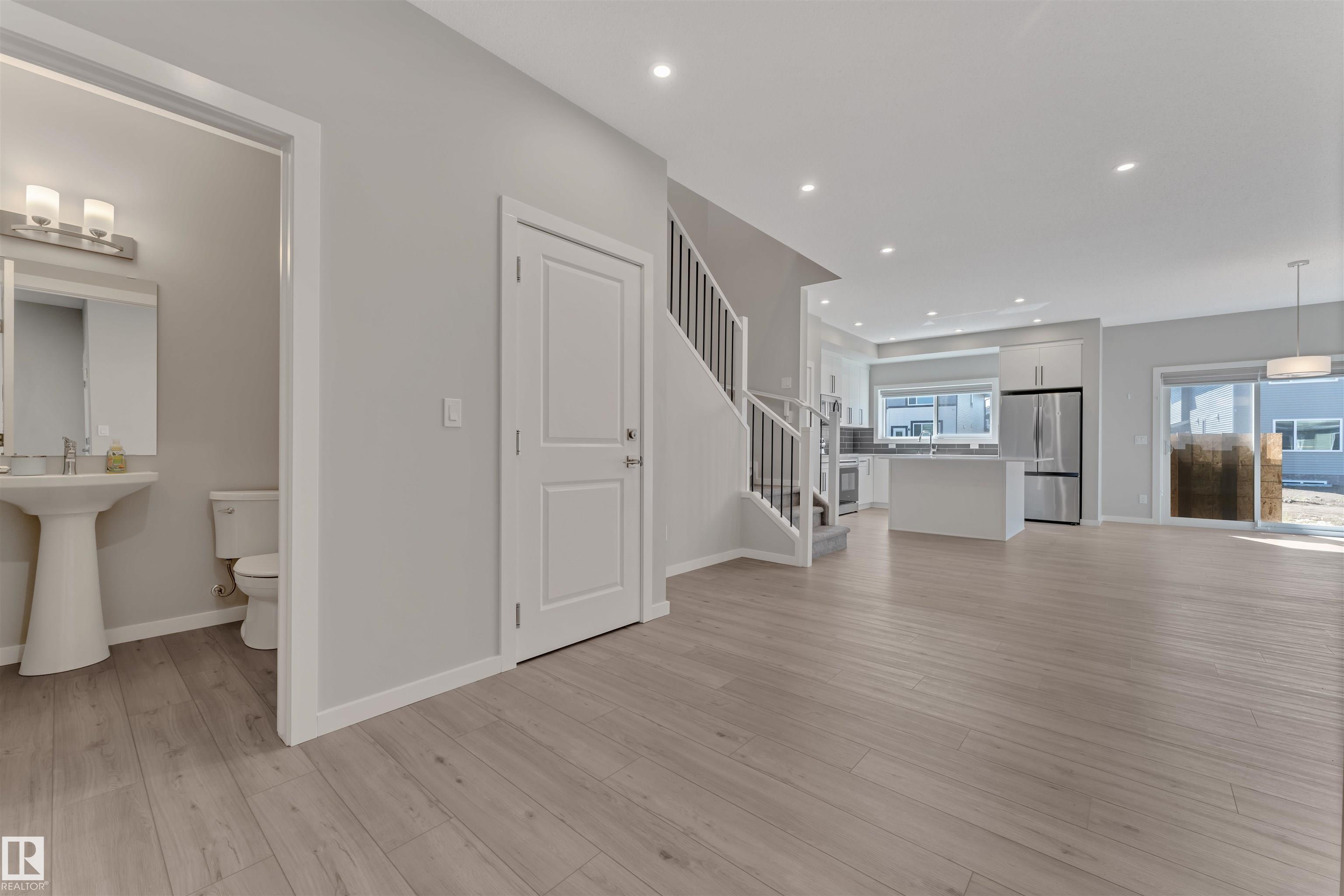**MAPLE CREST**SOUTH EDMONTON**BUILDER - Bedrock Homes Walk through the foyer and into the large open great room, watch how it flows to your corner kitchen and dining area. Enjoy the view of your backyard as you wash the dishes and walk right through to the deck from your dining room. Upstairs you'll find secondary rooms at the front of the house, a central bonus room, and a large primary suite towards the back of the home. Your primary suite includes a large four-piece ensuite with a water closet. Through your ensuite you will discover a large walk-in closet that leads directly into your upstairs laundry room. Other features include a side entrance, SMART Alexa technology, main floor railing, and a bench, organizers and hooks in the mud room.