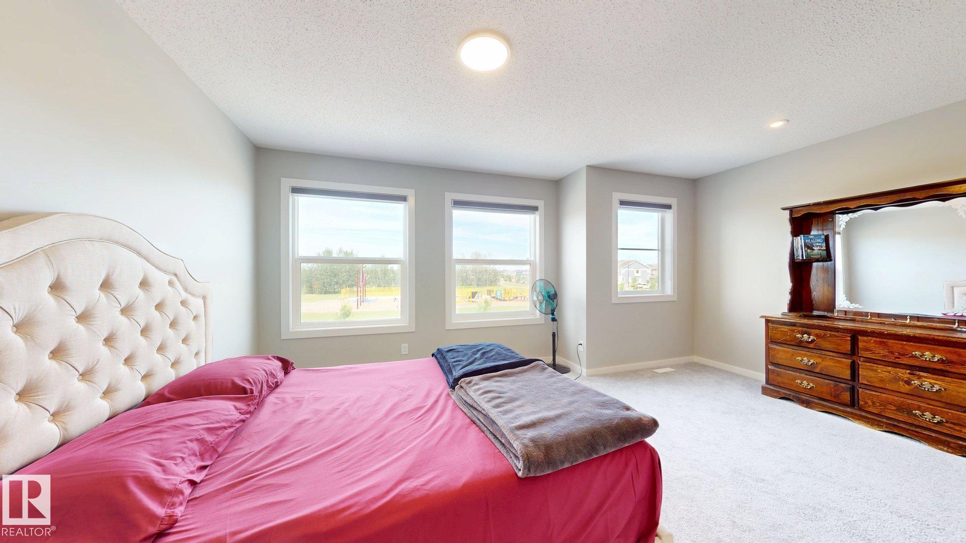 Welcome to this beautifully designed home Across from the PARK , offering elegance and a functional layout. A striking open-to-above staircase creates a grand entry, enhanced by 9' ceilings and abundant natural light. The modern kitchen features quartz countertops and flows seamlessly into the dining area and spacious family room--perfect for everyday living and entertaining. A 2-piece powder room, walkthrough pantry, and mudroom complete the main floor, while upgraded railings add a refined touch. Upstairs, the primary suite offers a spa-like 4-piece ensuite with dual sinks and a tiled shower. Two additional bedrooms, a full 3-piece bath, bonus room, and upper-floor laundry add convenience. The unfinished basement offers great potential. A front-attached double garage with floor drain completes this exceptional home.
