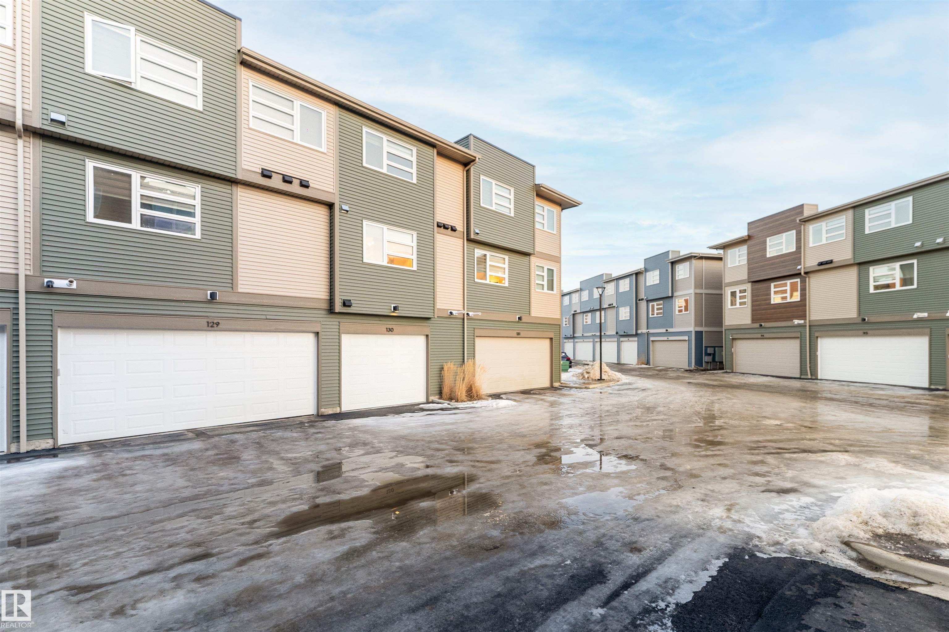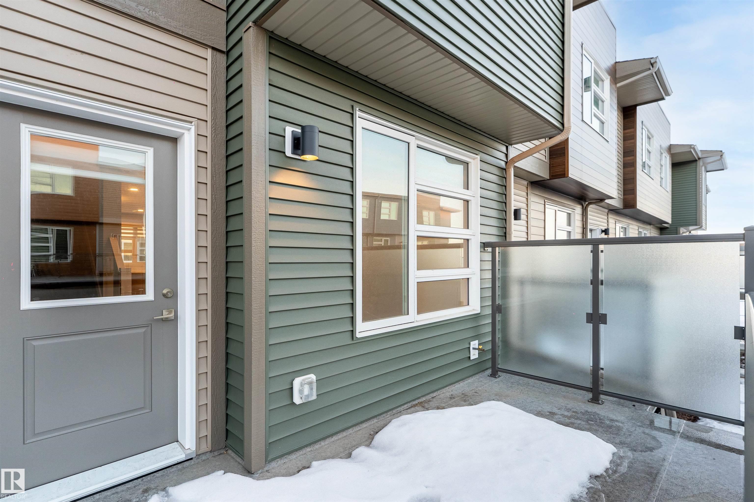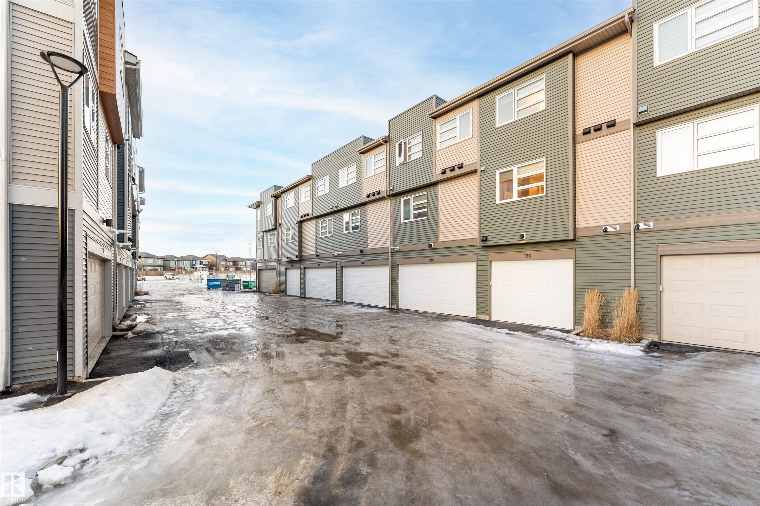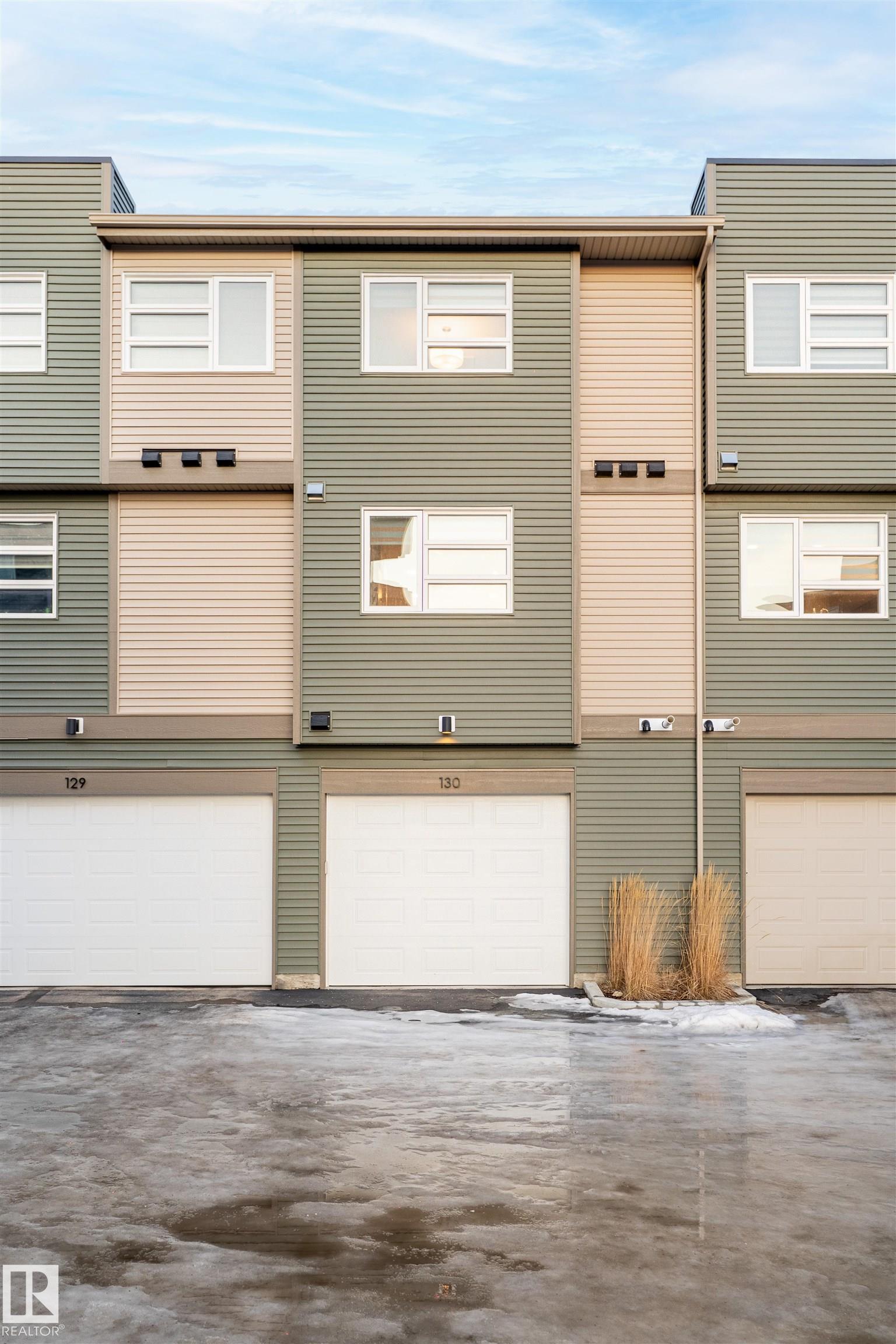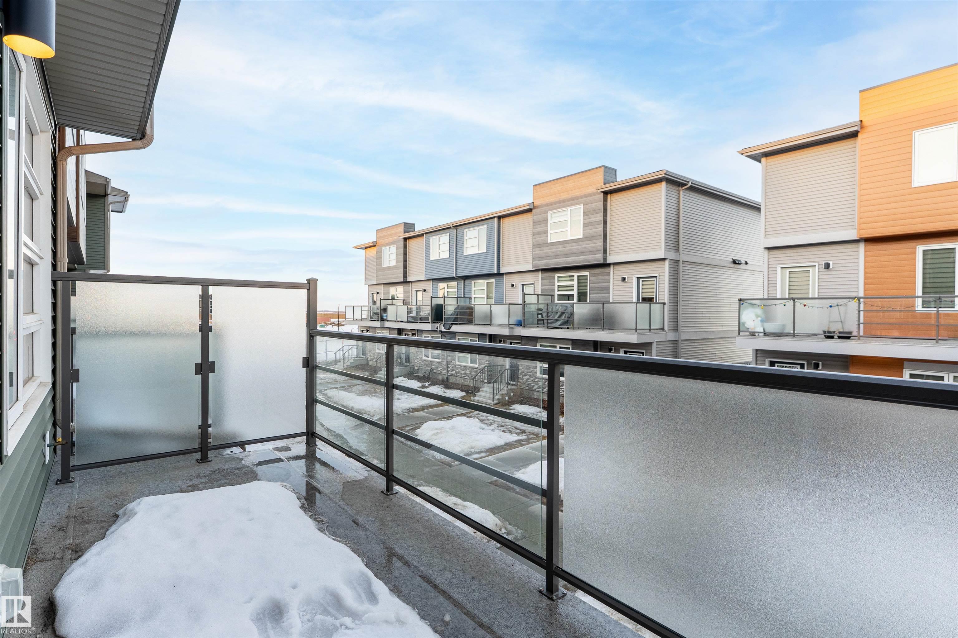 Welcome home to this 3 storey low condo fees townhome in McConachie, exceptionally well cared for with a new home look and feel. The ground level features an attached garage, convenient laundry, and a versatile flex space that works great as a home office, TV area, or gym. Upstairs, the bright open concept main floor offers 9 ft ceilings, large windows, and a spacious living room highlighted by an electric fireplace. The kitchen features quartz countertops, soft close cabinetry, and a generous pantry, plus a large dining area for everyday meals or hosting friends. Step out to the northeast facing balcony that gets great sunlight and includes a gas line for your BBQ. A half bath on this level adds extra convenience. On the top floor you'll find two bedrooms, each with a walk in closet and its own ensuite, offering privacy for guests or a roommate setup. One ensuite includes a stand up shower. Close to parks, schools, shopping, transit, and quick access to major routes.