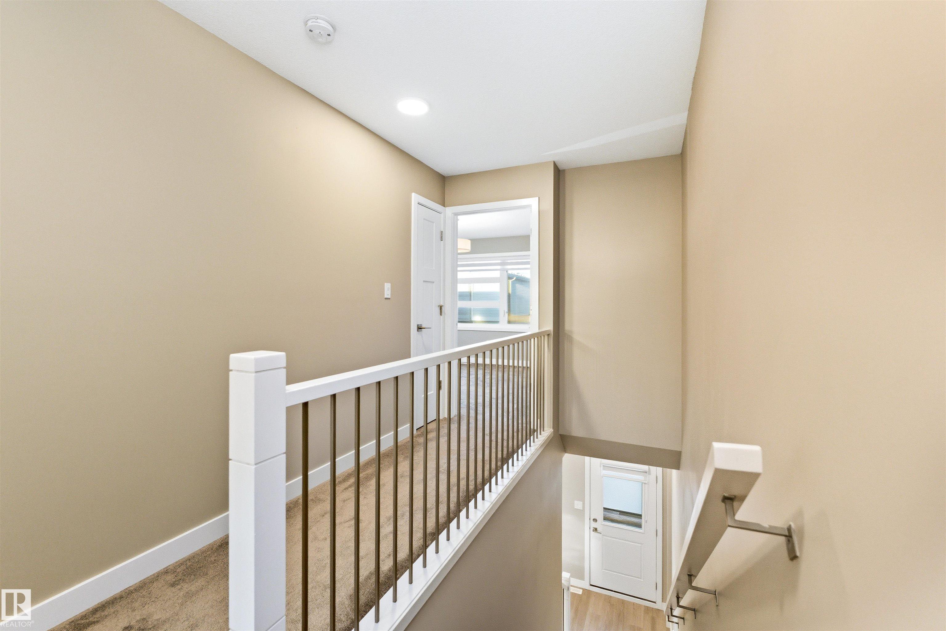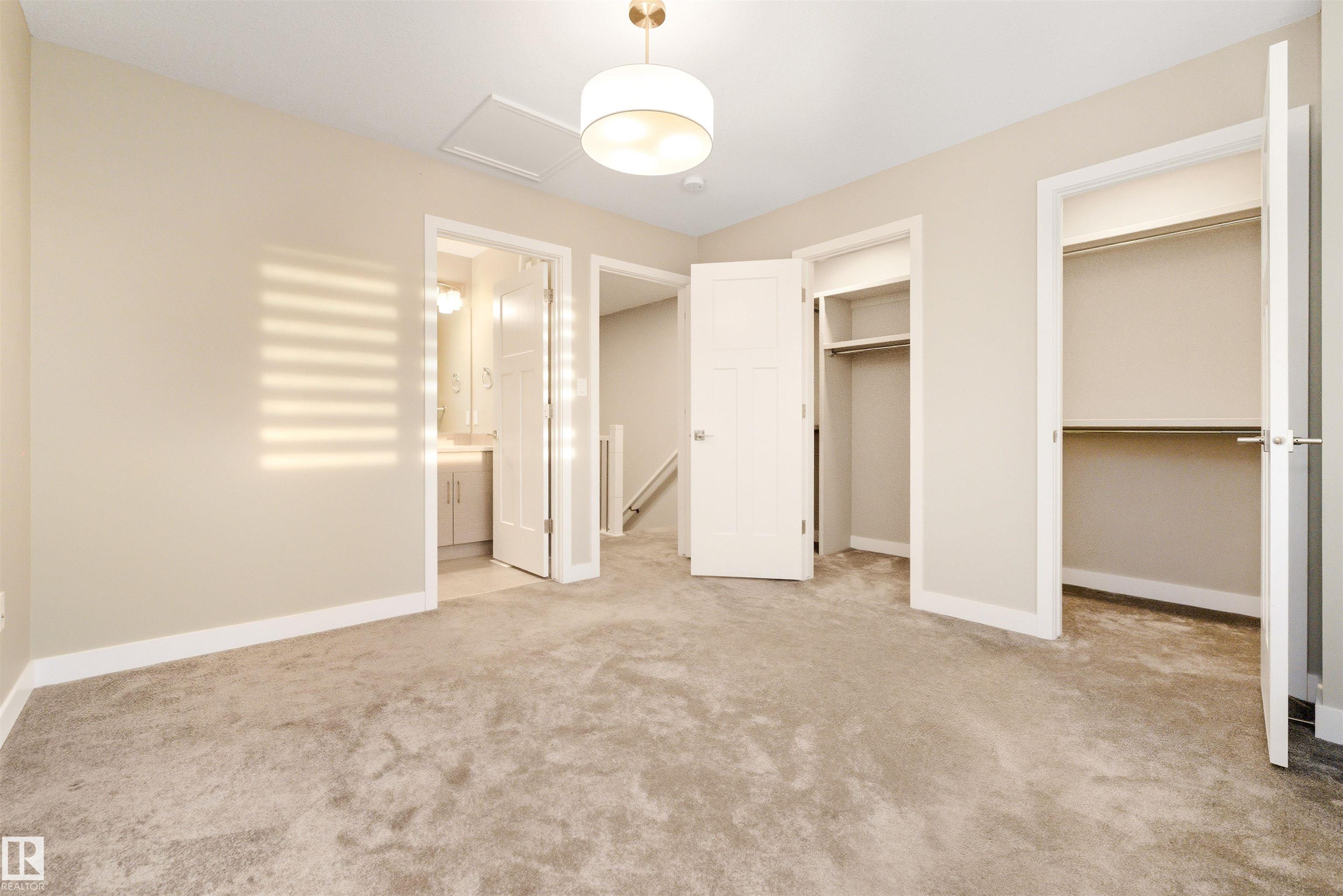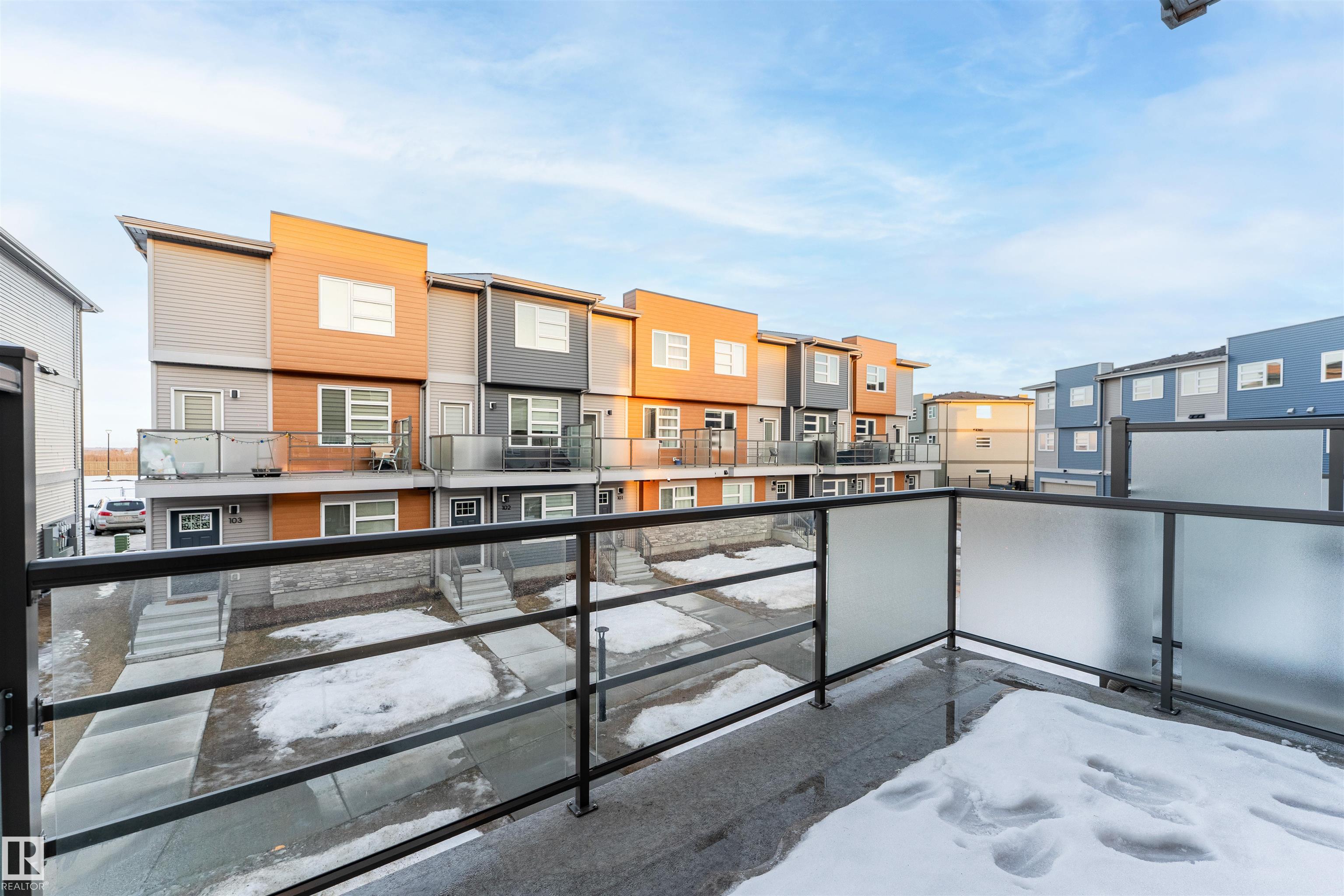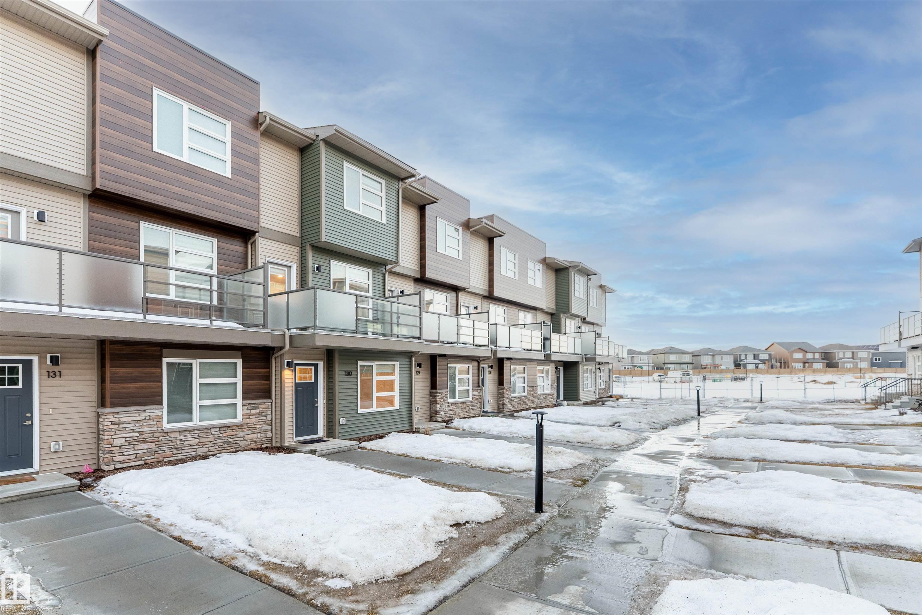 Welcome home to this 3 storey low condo fees townhome in McConachie, exceptionally well cared for with a new home look and feel. The ground level features an attached garage, convenient laundry, and a versatile flex space that works great as a home office, TV area, or gym. Upstairs, the bright open concept main floor offers 9 ft ceilings, large windows, and a spacious living room highlighted by an electric fireplace. The kitchen features quartz countertops, soft close cabinetry, and a generous pantry, plus a large dining area for everyday meals or hosting friends. Step out to the northeast facing balcony that gets great sunlight and includes a gas line for your BBQ. A half bath on this level adds extra convenience. On the top floor you'll find two bedrooms, each with a walk in closet and its own ensuite, offering privacy for guests or a roommate setup. One ensuite includes a stand up shower. Close to parks, schools, shopping, transit, and quick access to major routes.