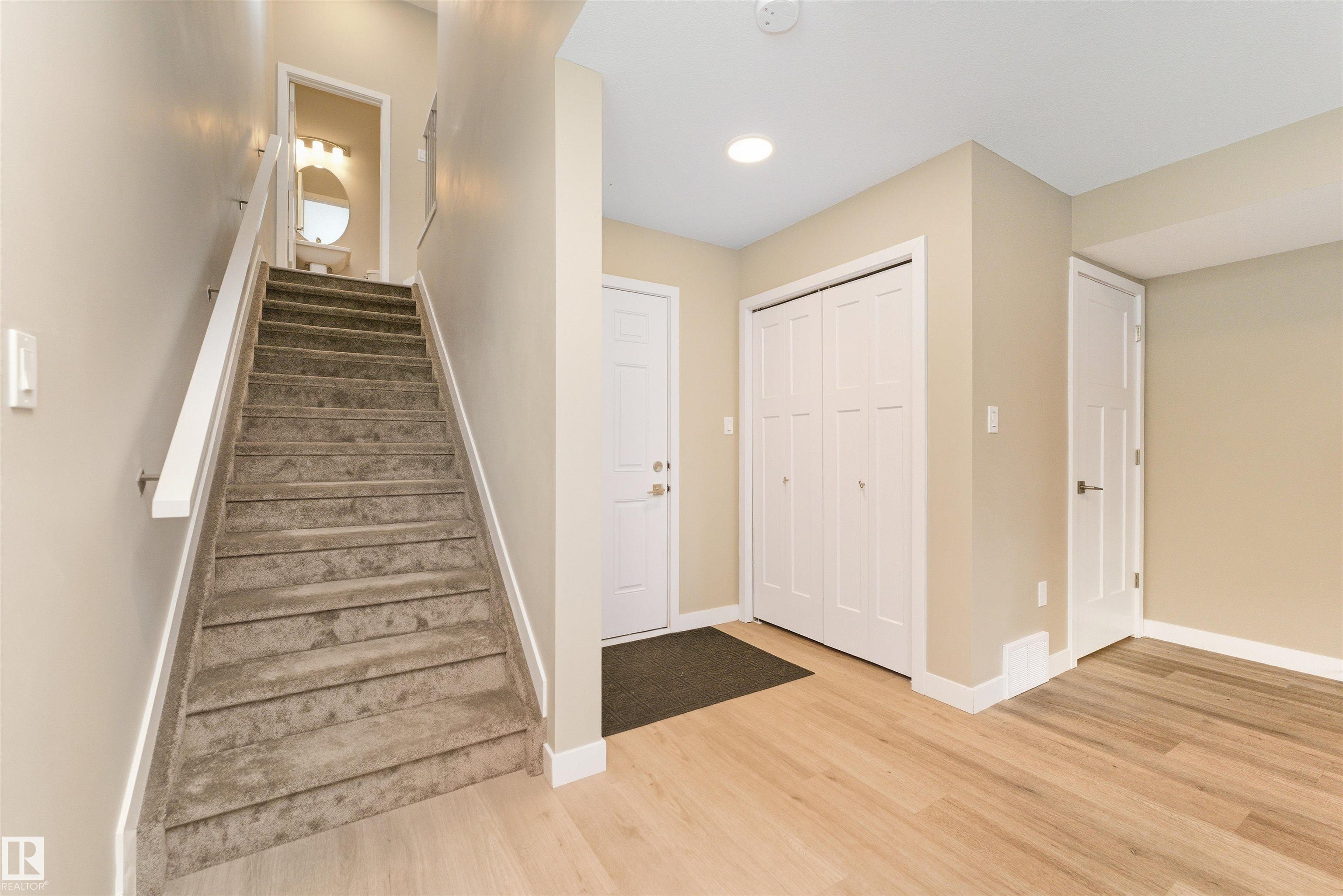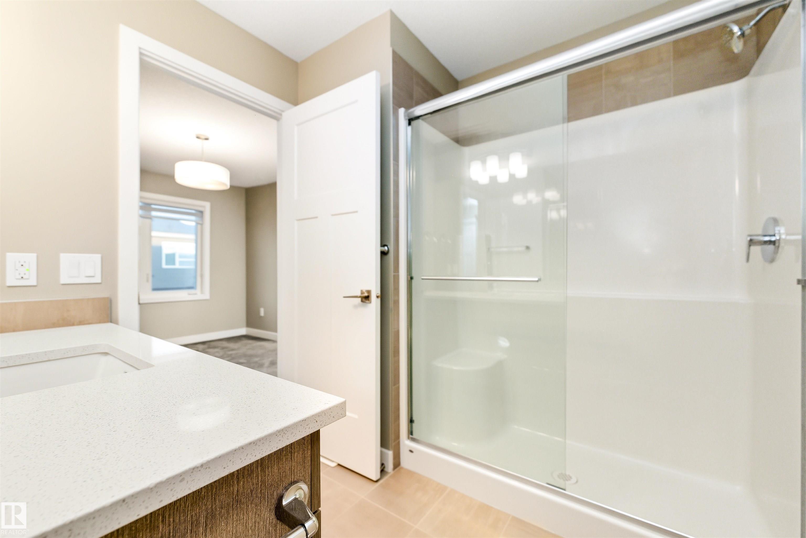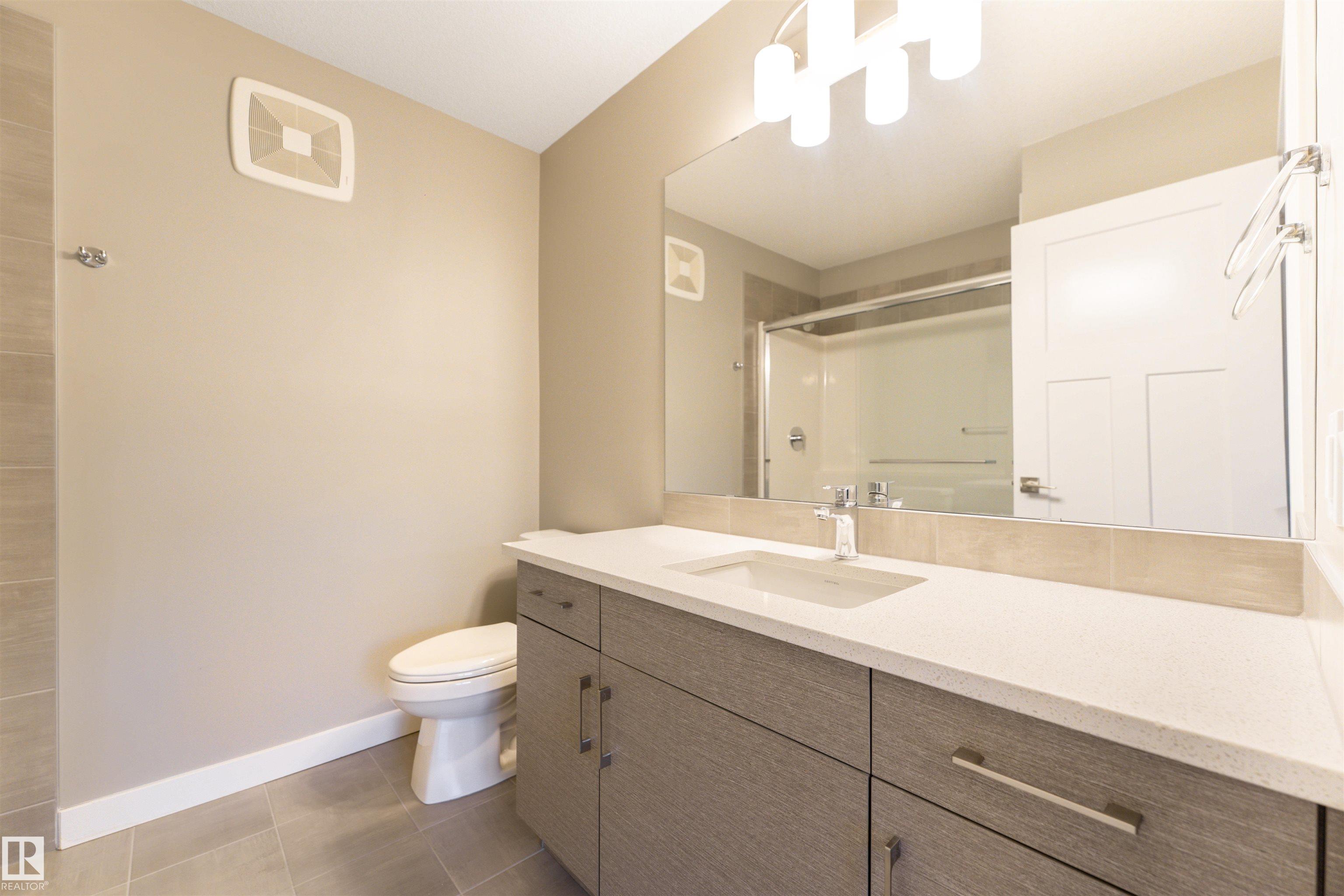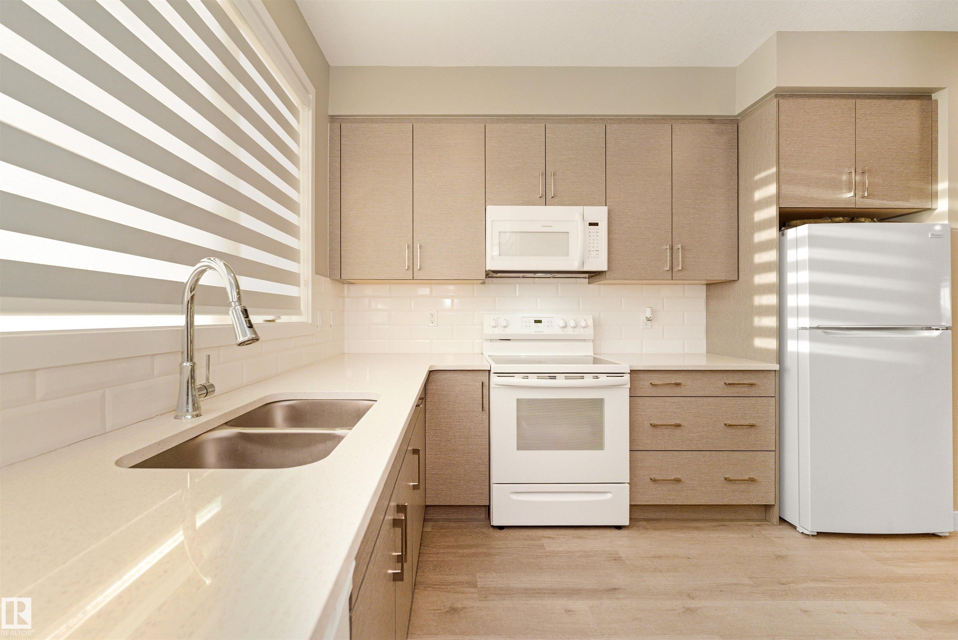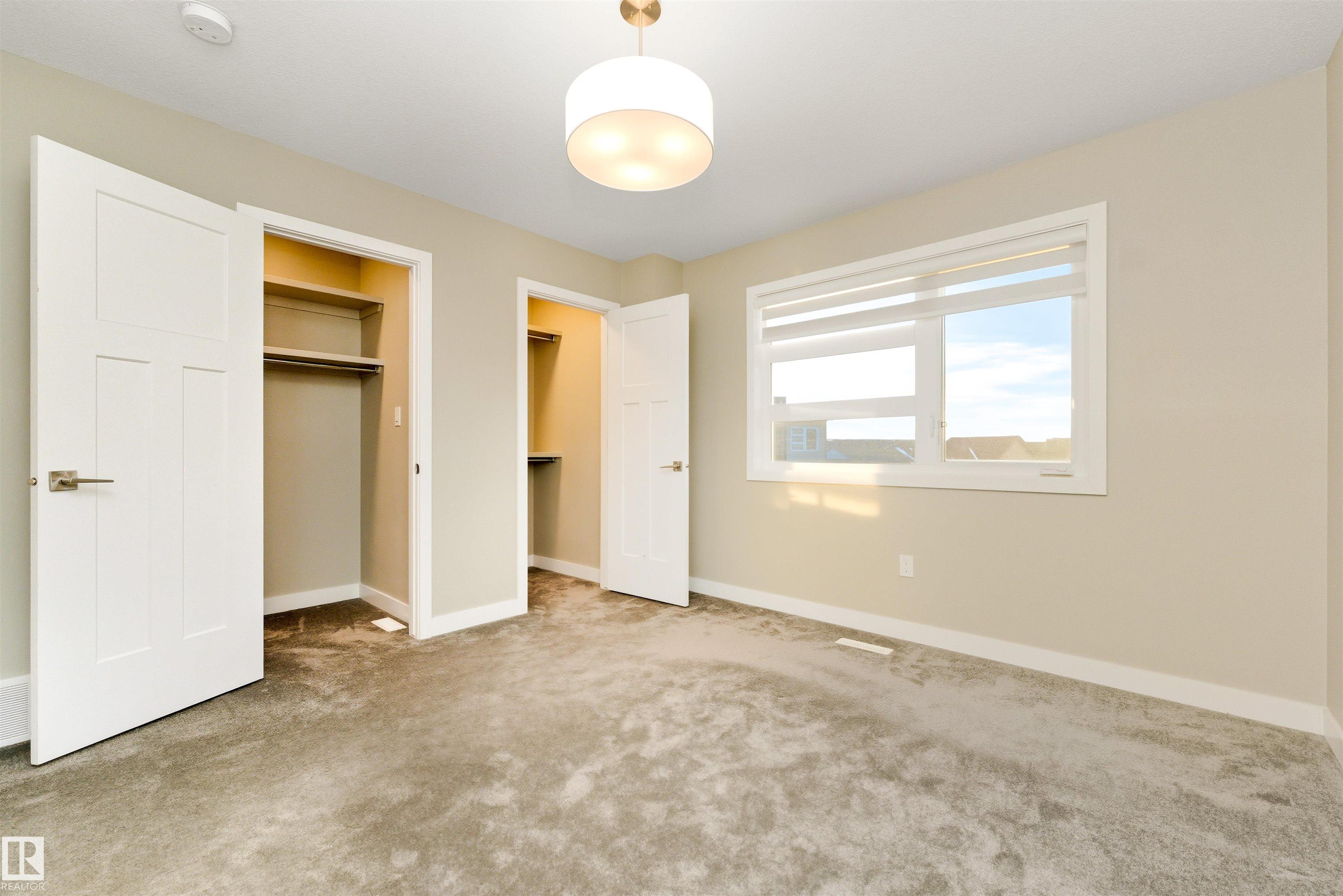 Welcome home to this 3 storey low condo fees townhome in McConachie, exceptionally well cared for with a new home look and feel. The ground level features an attached garage, convenient laundry, and a versatile flex space that works great as a home office, TV area, or gym. Upstairs, the bright open concept main floor offers 9 ft ceilings, large windows, and a spacious living room highlighted by an electric fireplace. The kitchen features quartz countertops, soft close cabinetry, and a generous pantry, plus a large dining area for everyday meals or hosting friends. Step out to the northeast facing balcony that gets great sunlight and includes a gas line for your BBQ. A half bath on this level adds extra convenience. On the top floor you'll find two bedrooms, each with a walk in closet and its own ensuite, offering privacy for guests or a roommate setup. One ensuite includes a stand up shower. Close to parks, schools, shopping, transit, and quick access to major routes.