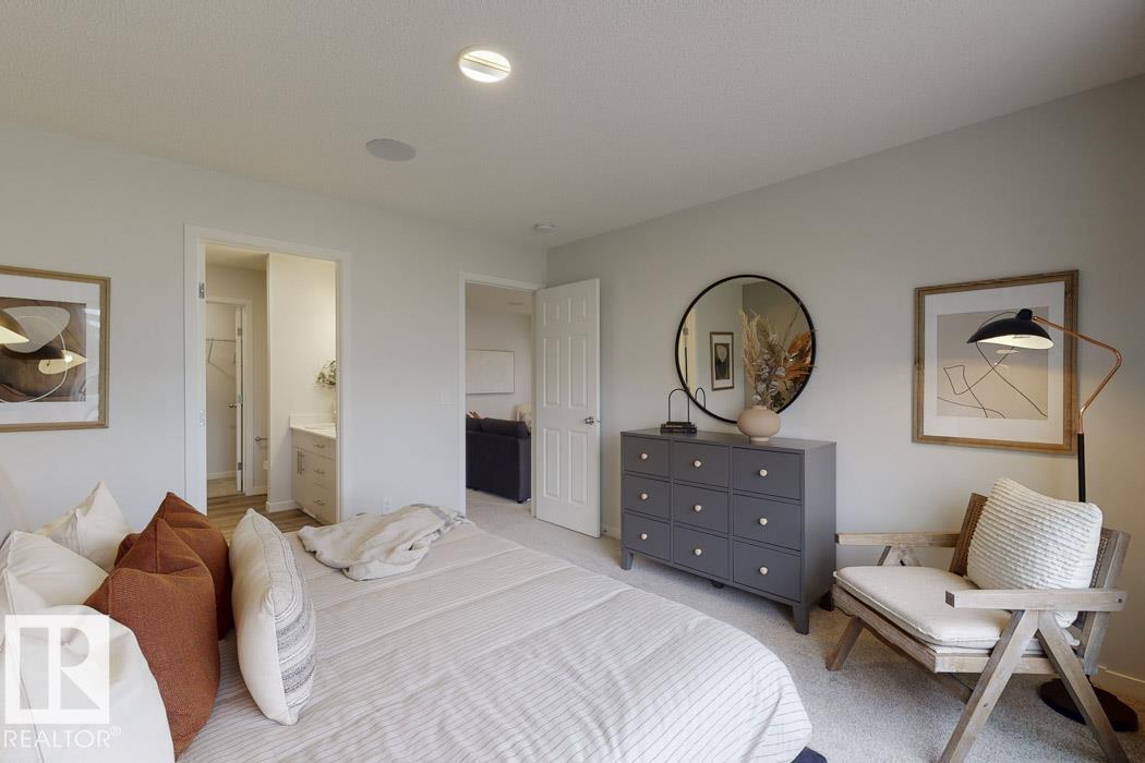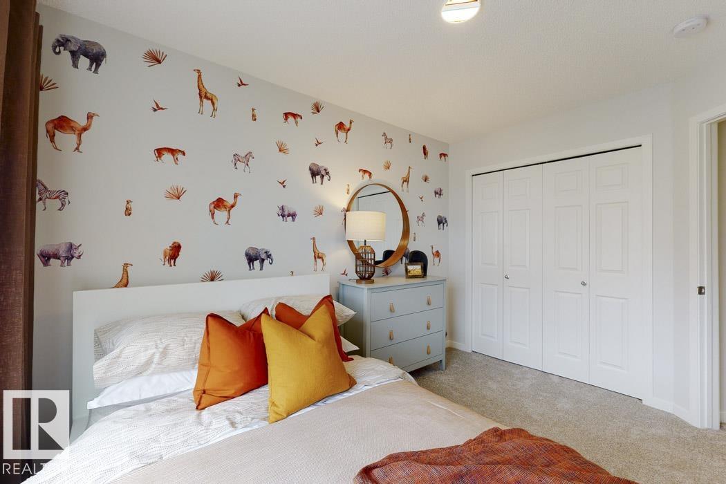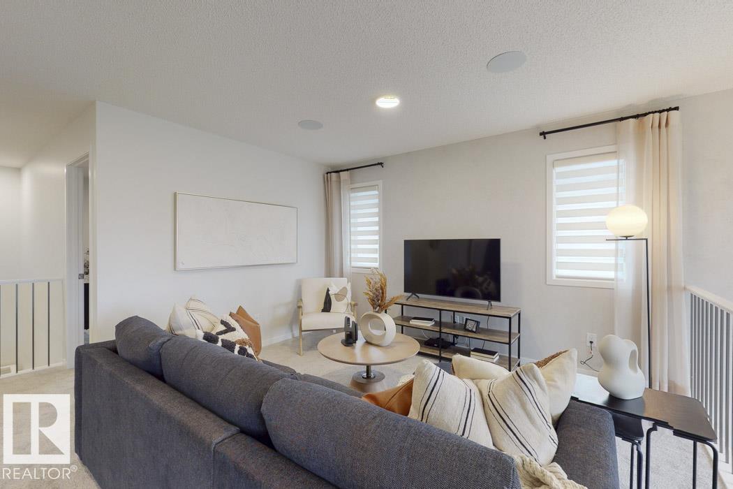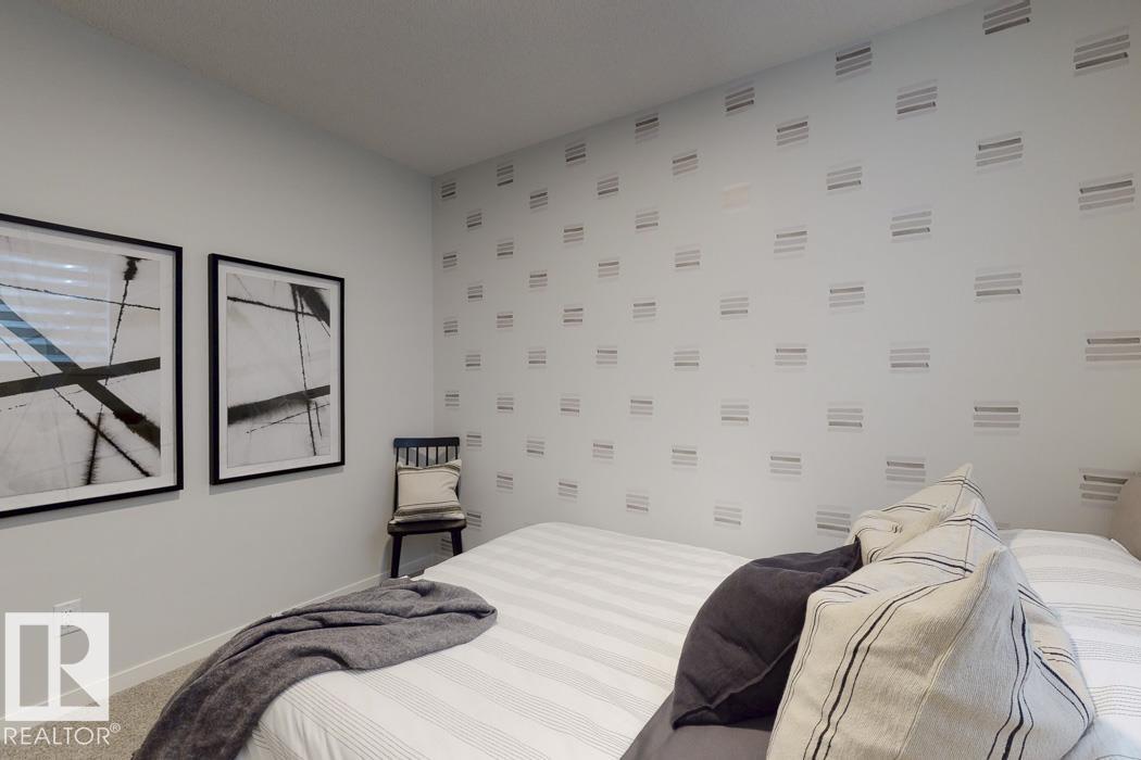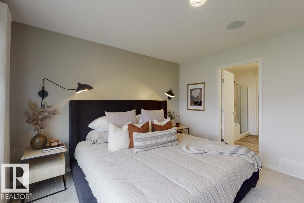 Built by Sterling Homes, this front-attached home in McConachie offers bright, modern living in a family-friendly community. Triple pane windows and 9' ceilings create an open feel on the main floor, where a welcoming foyer leads to a stylish kitchen with quartz counters, large island, ceiling-height cabinetry, chimney hood fan, built-in microwave, and walk-through pantry connected to the mudroom. The great room features an electric fireplace and large windows, with patio doors off the dining nook opening to the backyard. A half bath completes the main floor. Upstairs offers a primary suite with walk-in closet and 5-piece ensuite, a central bonus room, upper-floor laundry, full bath, and two additional bedrooms. Luxury vinyl plank flooring, upgraded railings, side entrance, double garage with floor drain, and basement rough-ins add comfort and convenience.