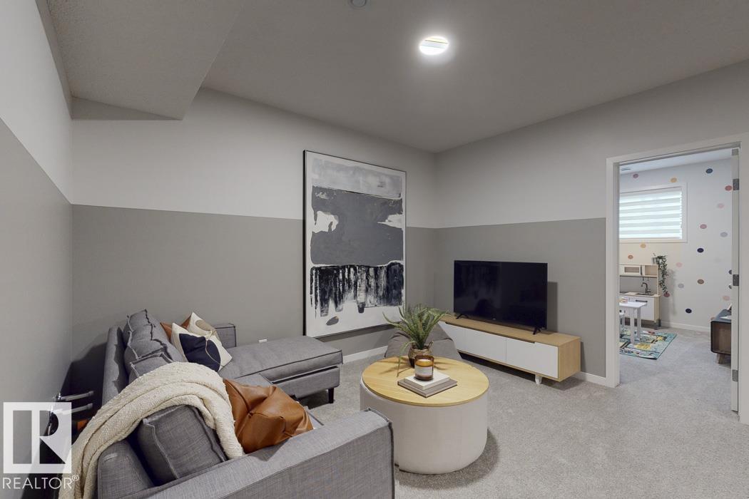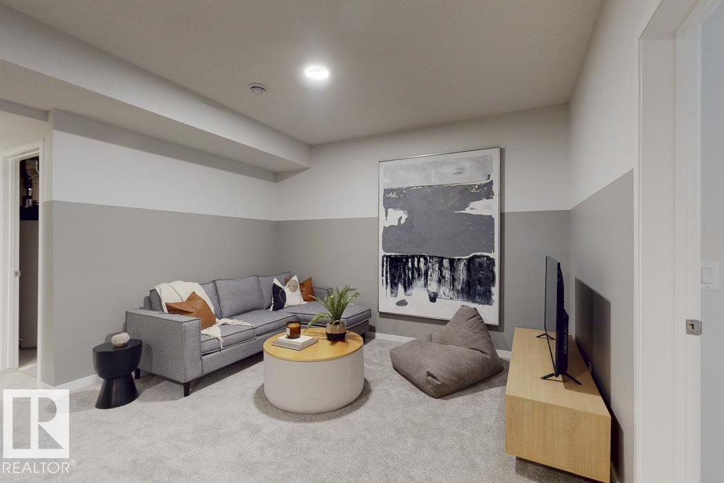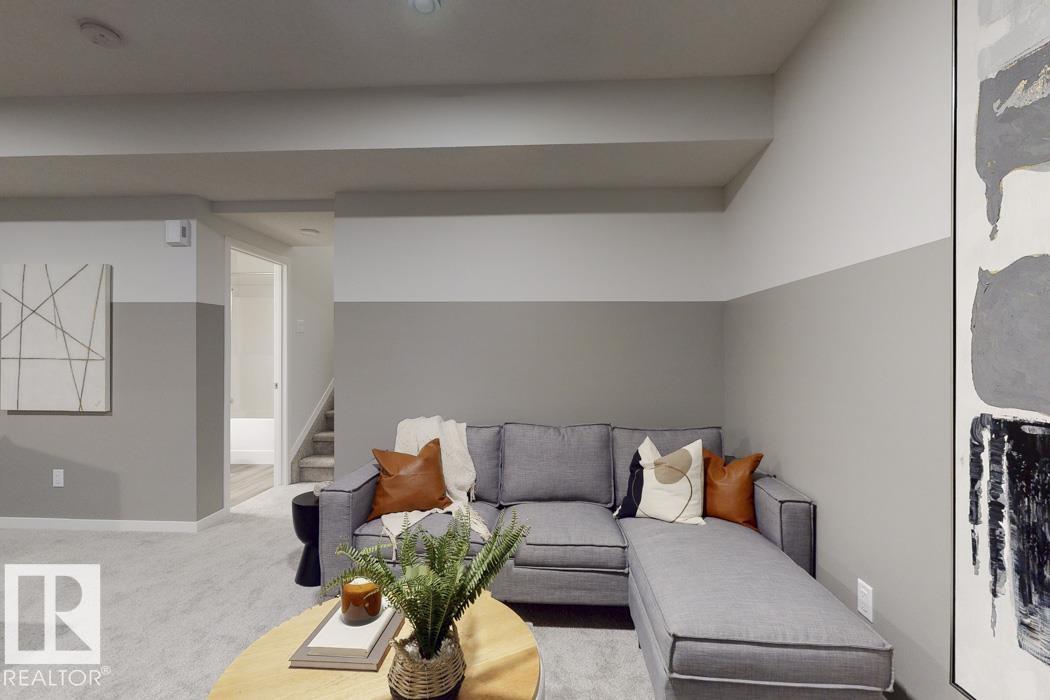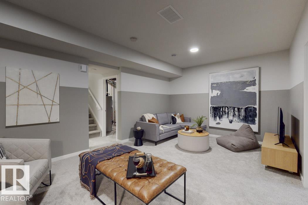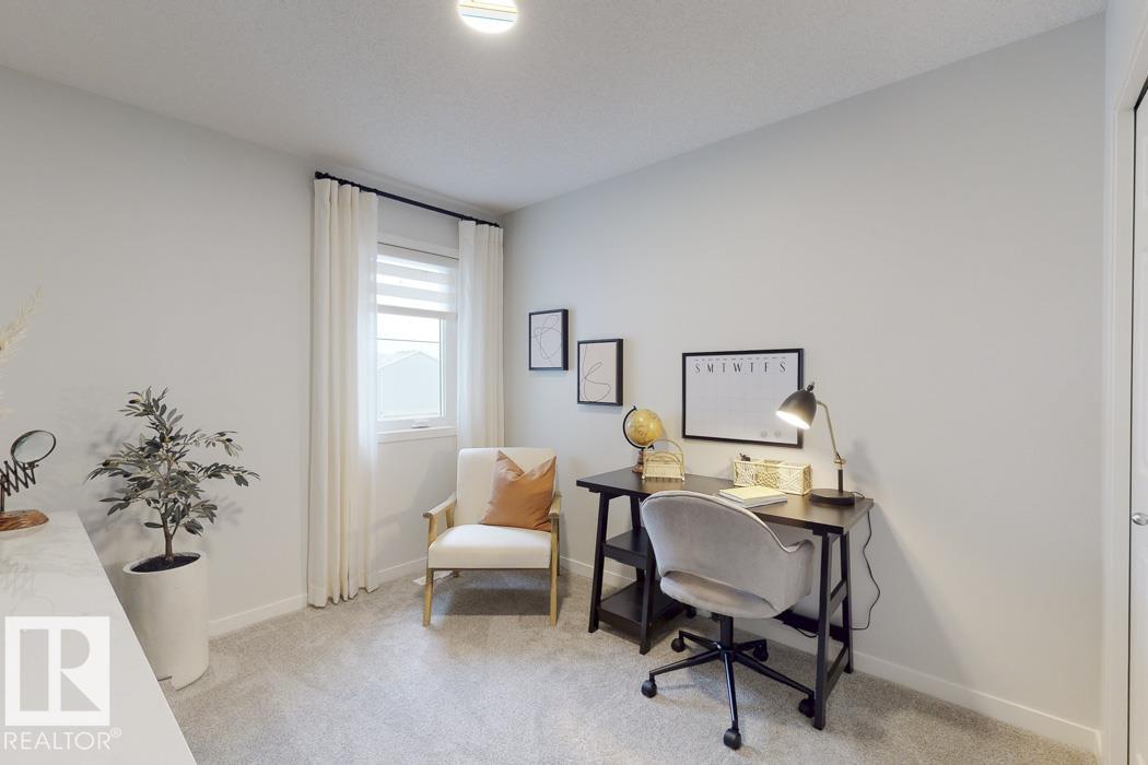 Built by Sterling Homes, this front-attached home in McConachie offers bright, modern living in a family-friendly community. Triple pane windows and 9' ceilings create an open feel on the main floor, where a welcoming foyer leads to a stylish kitchen with quartz counters, large island, ceiling-height cabinetry, chimney hood fan, built-in microwave, and walk-through pantry connected to the mudroom. The great room features an electric fireplace and large windows, with patio doors off the dining nook opening to the backyard. A half bath completes the main floor. Upstairs offers a primary suite with walk-in closet and 5-piece ensuite, a central bonus room, upper-floor laundry, full bath, and two additional bedrooms. Luxury vinyl plank flooring, upgraded railings, side entrance, double garage with floor drain, and basement rough-ins add comfort and convenience.