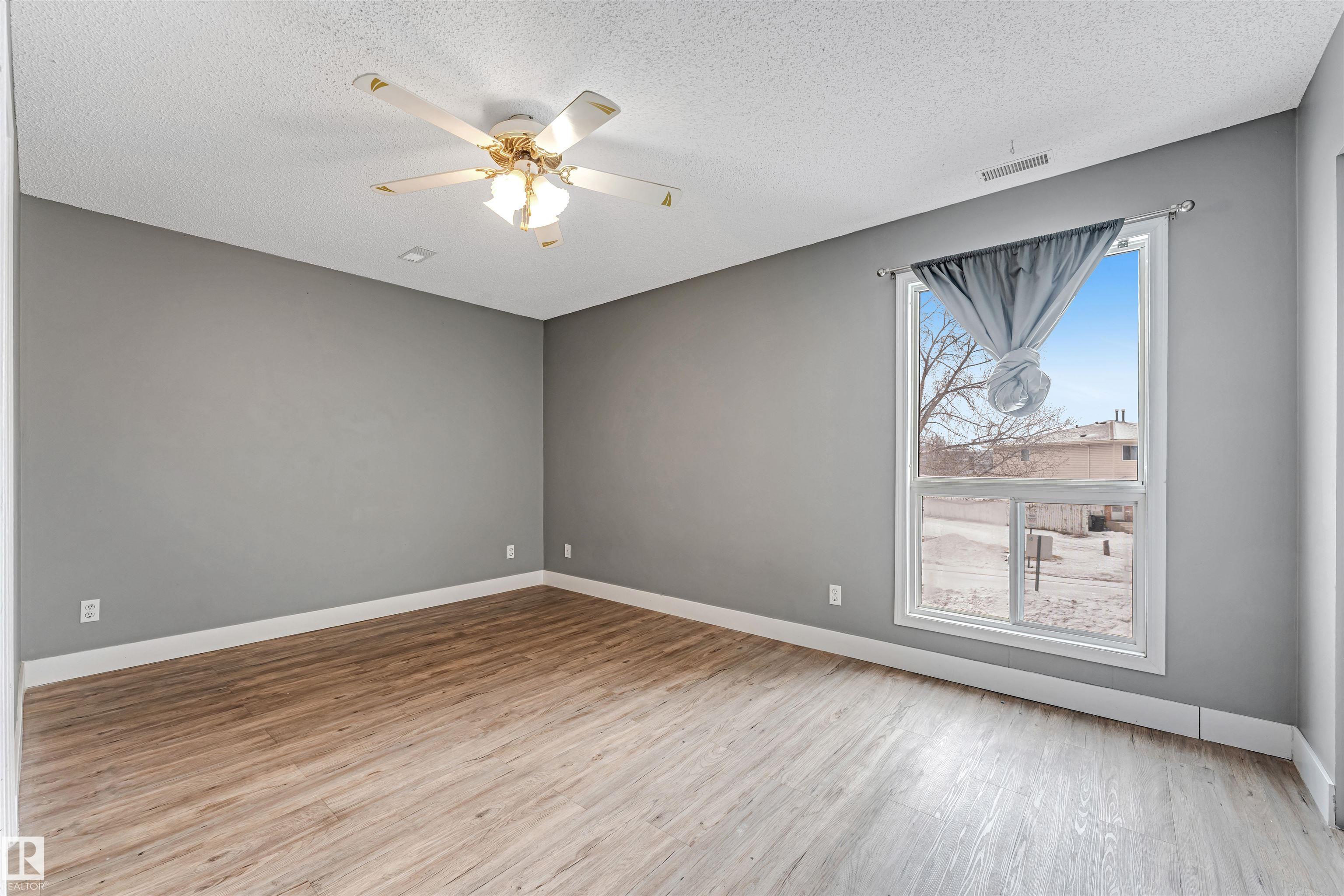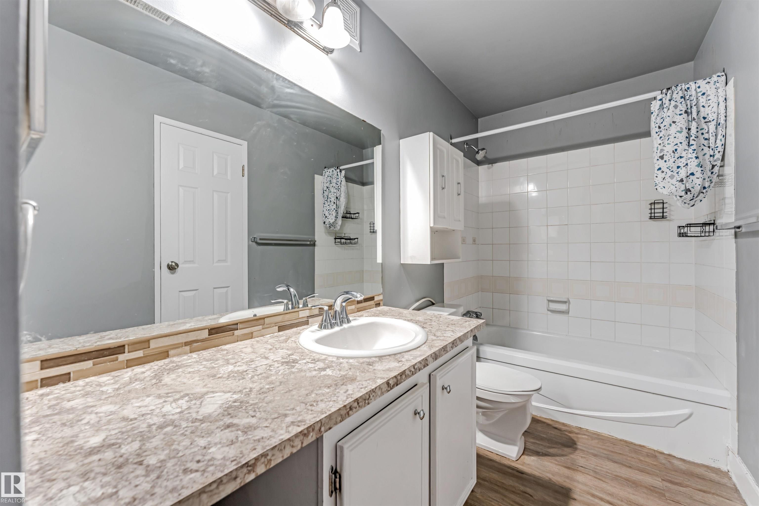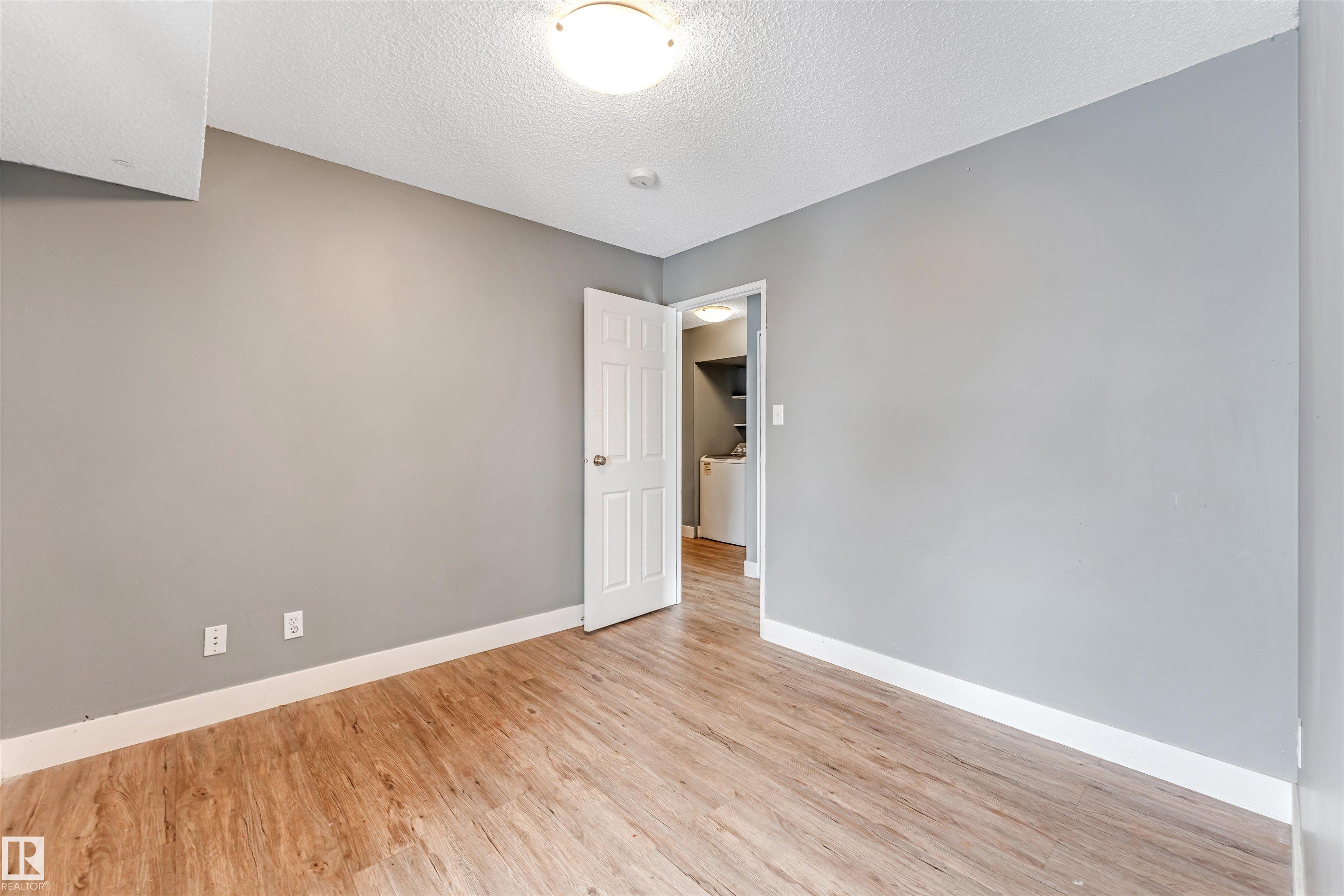 Spacious corner upper unit featuring 3 bedrooms and 1 bathroom. Enjoy a private balcony, exterior storage, and an assigned electrified parking stall, with ample street parking available. Inside, the home offers easy-maintenance vinyl plank flooring throughout. The kitchen showcases white cabinetry, mainly stainless steel appliances, and a walk-in pantry providing excellent storage. The bright living room is highlighted by a cozy fireplace. The primary bedroom includes a generous walk-in closet and convenient dual access to the bathroom. This end unit overlooks a peaceful green space with mature trees and is ideally located close to shopping, parks, schools, and everyday amenities. With excellent access to Gateway Blvd, Calgary Trail, Whitemud Drive, and Anthony Henday, plus a future LRT station nearby, commuting throughout the city is simple and convenient.