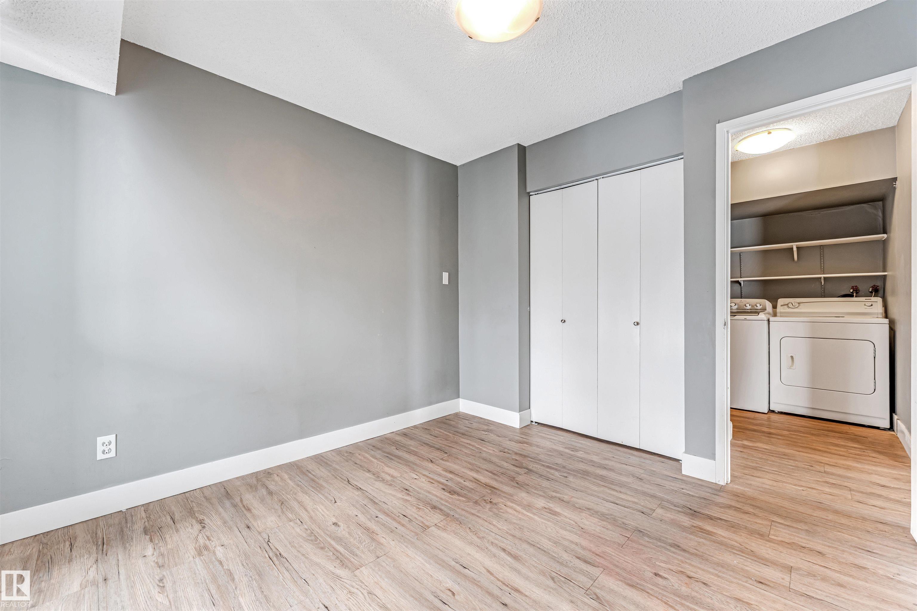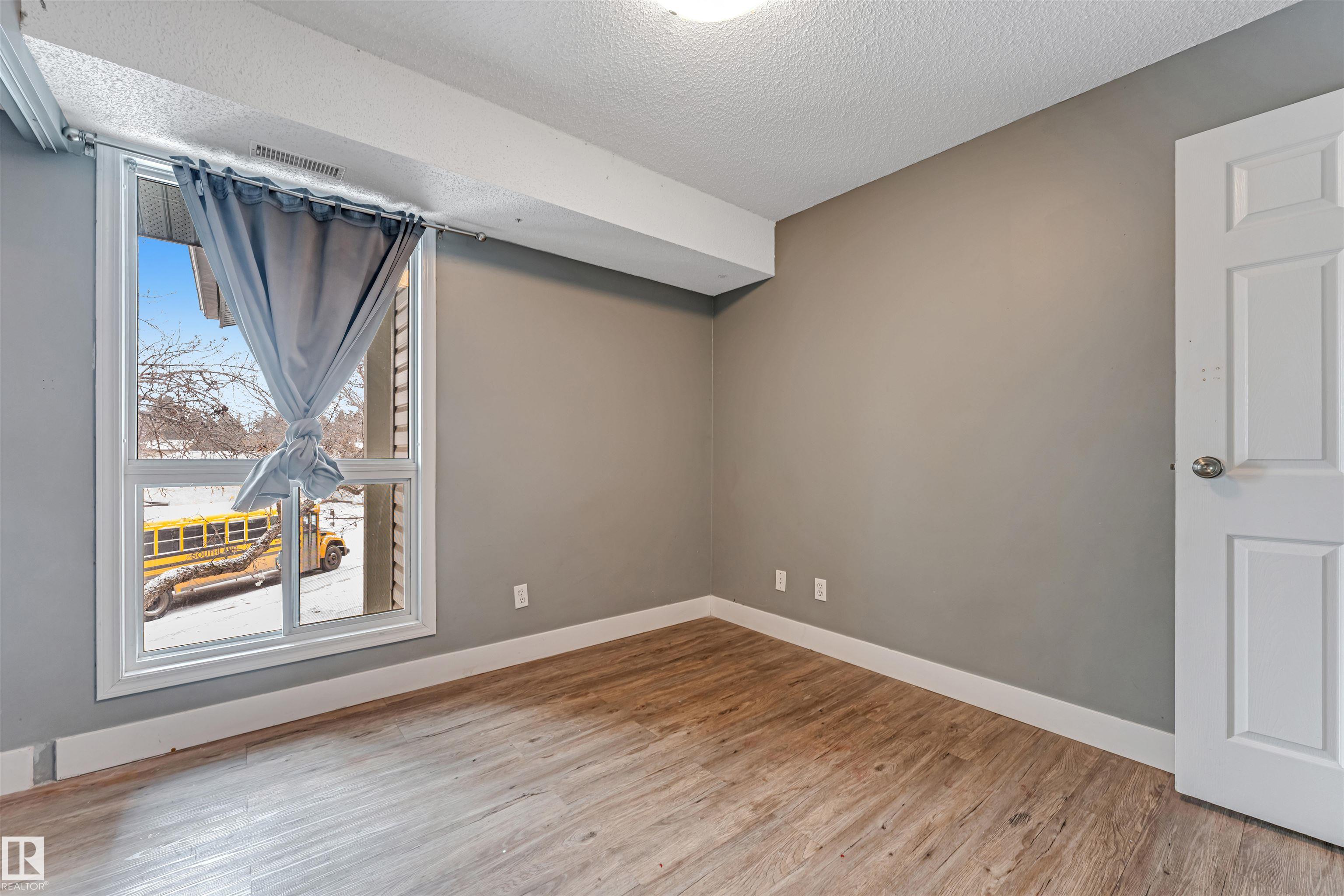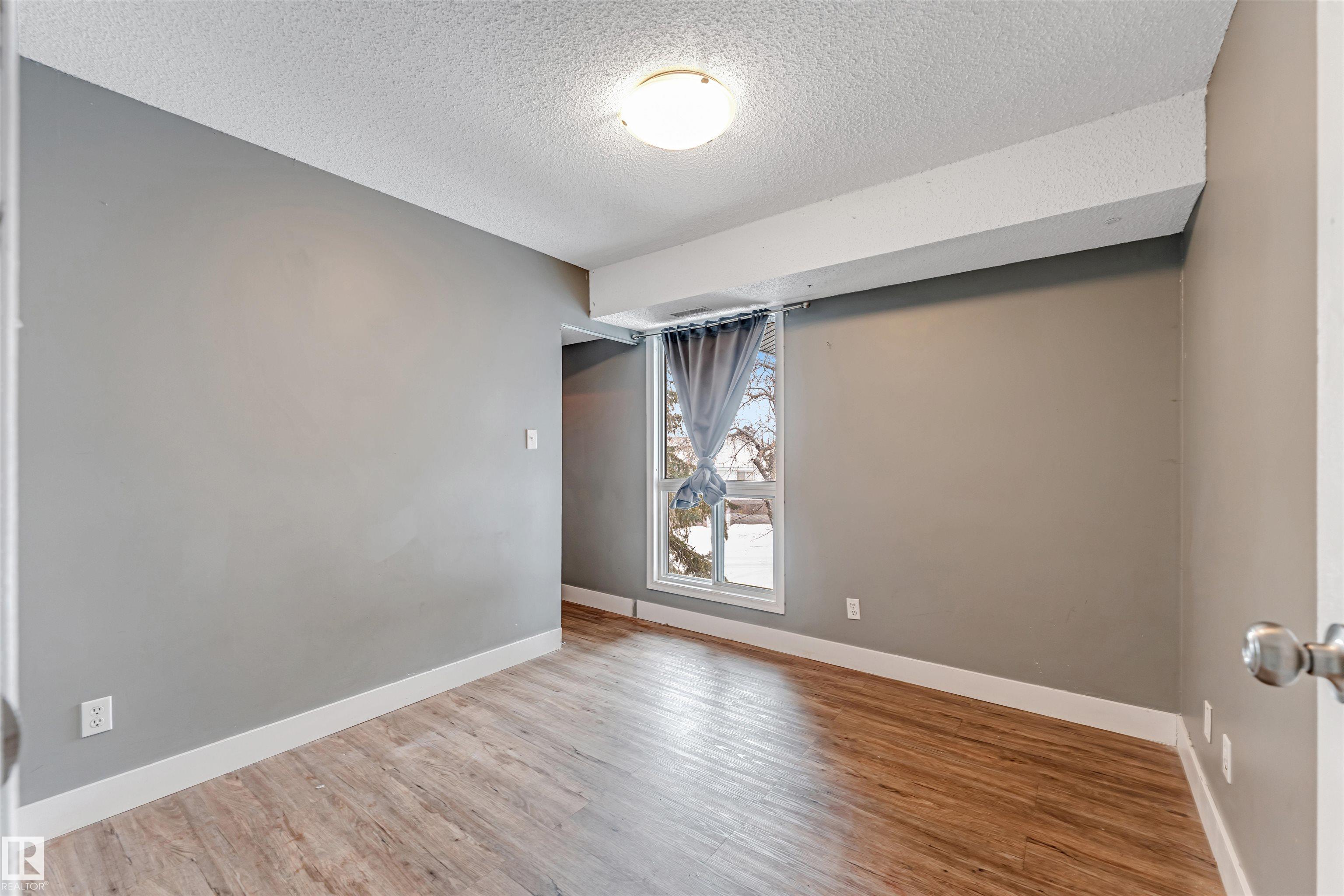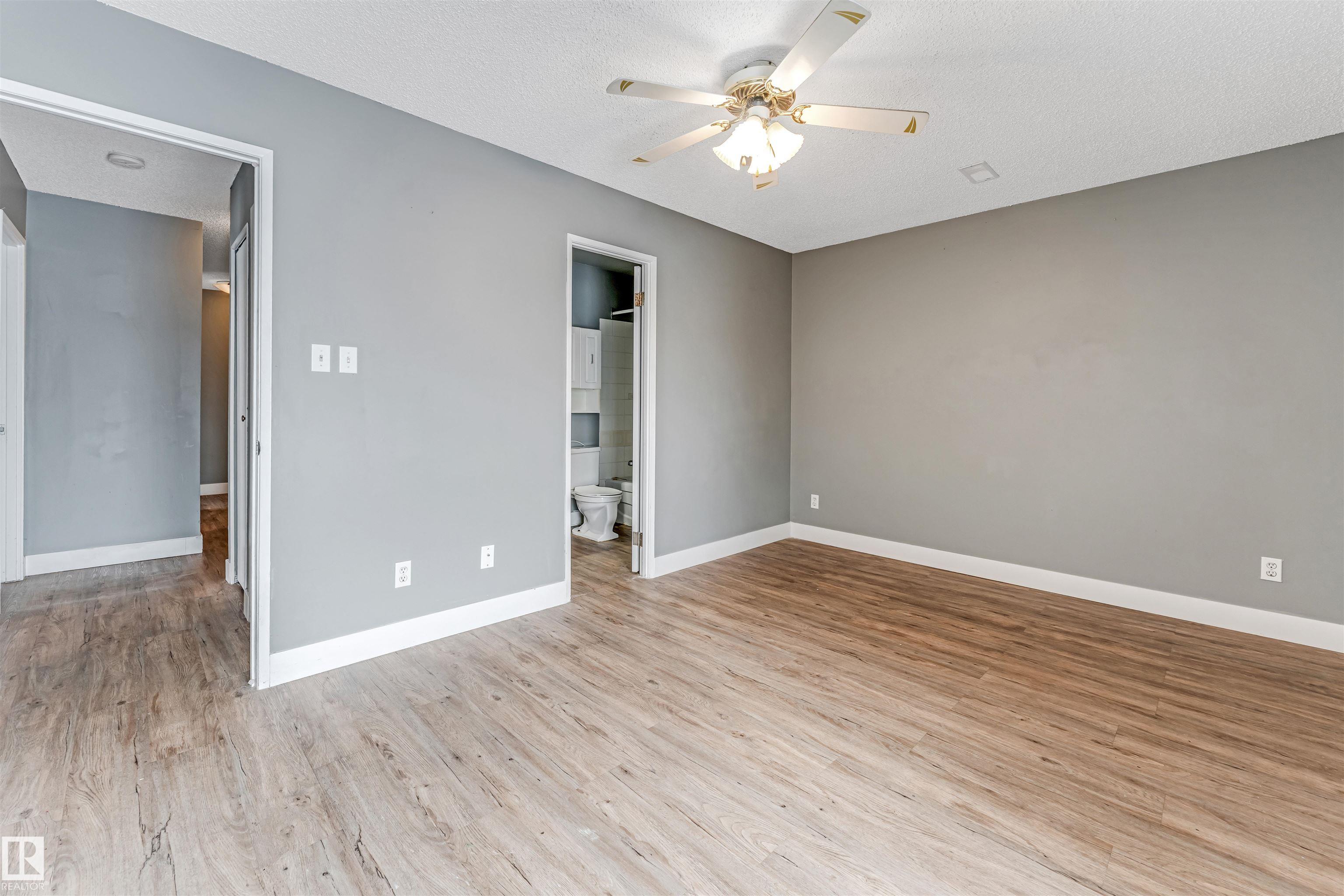 Spacious corner upper unit featuring 3 bedrooms and 1 bathroom. Enjoy a private balcony, exterior storage, and an assigned electrified parking stall, with ample street parking available. Inside, the home offers easy-maintenance vinyl plank flooring throughout. The kitchen showcases white cabinetry, mainly stainless steel appliances, and a walk-in pantry providing excellent storage. The bright living room is highlighted by a cozy fireplace. The primary bedroom includes a generous walk-in closet and convenient dual access to the bathroom. This end unit overlooks a peaceful green space with mature trees and is ideally located close to shopping, parks, schools, and everyday amenities. With excellent access to Gateway Blvd, Calgary Trail, Whitemud Drive, and Anthony Henday, plus a future LRT station nearby, commuting throughout the city is simple and convenient.