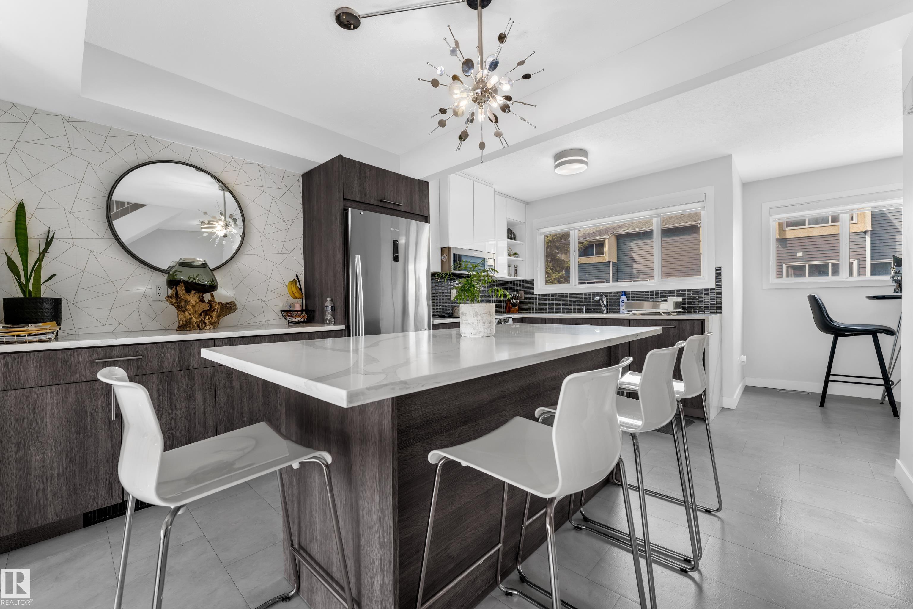Tucked into the established southeast community of Michaels Park, this beautifully updated Condo offers a perfect blend of modern style and everyday comfort. The fully renovated kitchen is a true centerpiece, featuring stainless steel appliances, sleek cabinetry, and a large island ideal for meal prep, casual dining, and entertaining. The spacious living room impresses with soaring high ceilings and a cozy fireplace, creating a bright and inviting atmosphere for relaxing or hosting guests. Upstairs, you'll find three well-sized bedrooms thoughtfully laid out alongside a full three-piece bathroom, offering functional family living. Completing the home is a single attached garage and a layout designed for both convenience and comfort. An excellent opportunity to own in a mature, well-connected neighborhood close to schools, parks, transit and amenities.