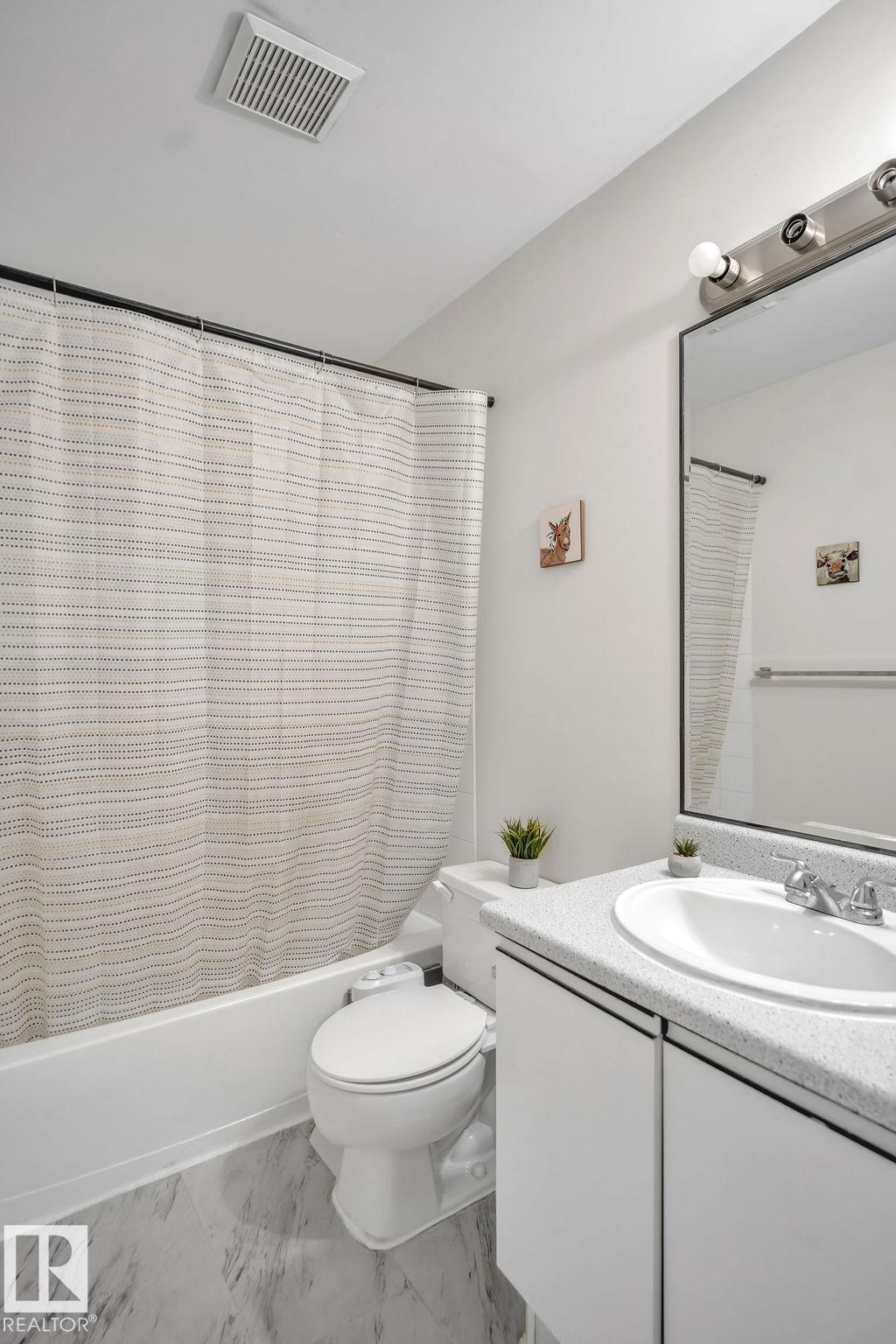 Spacious 2 Bed+1 Den and 2 Bath Condo in the Heart of Millwoods! Welcome to this bright and spacious 2 bedroom, 2 full bathroom main floor condo offering over 1100 sq ft of comfortable living space. The open-concept layout includes a functional kitchen with a breakfast bar, a large dining area, and a cozy living room that opens onto a private covered patio. Both bedrooms are generously sized and can accommodate king-sized beds. The primary bedroom features a walk-through closet and its own full ensuite. One Assigned Parking stall also comes with the unit for extra convenience. Additional highlights include in-suite laundry, ample storage, and a convenient location just steps from Millwoods Town Centre, the LRT station, Grey Nuns Hospital, parks, schools, and public transit. Ideal for first-time buyers, down sizers, or investors!