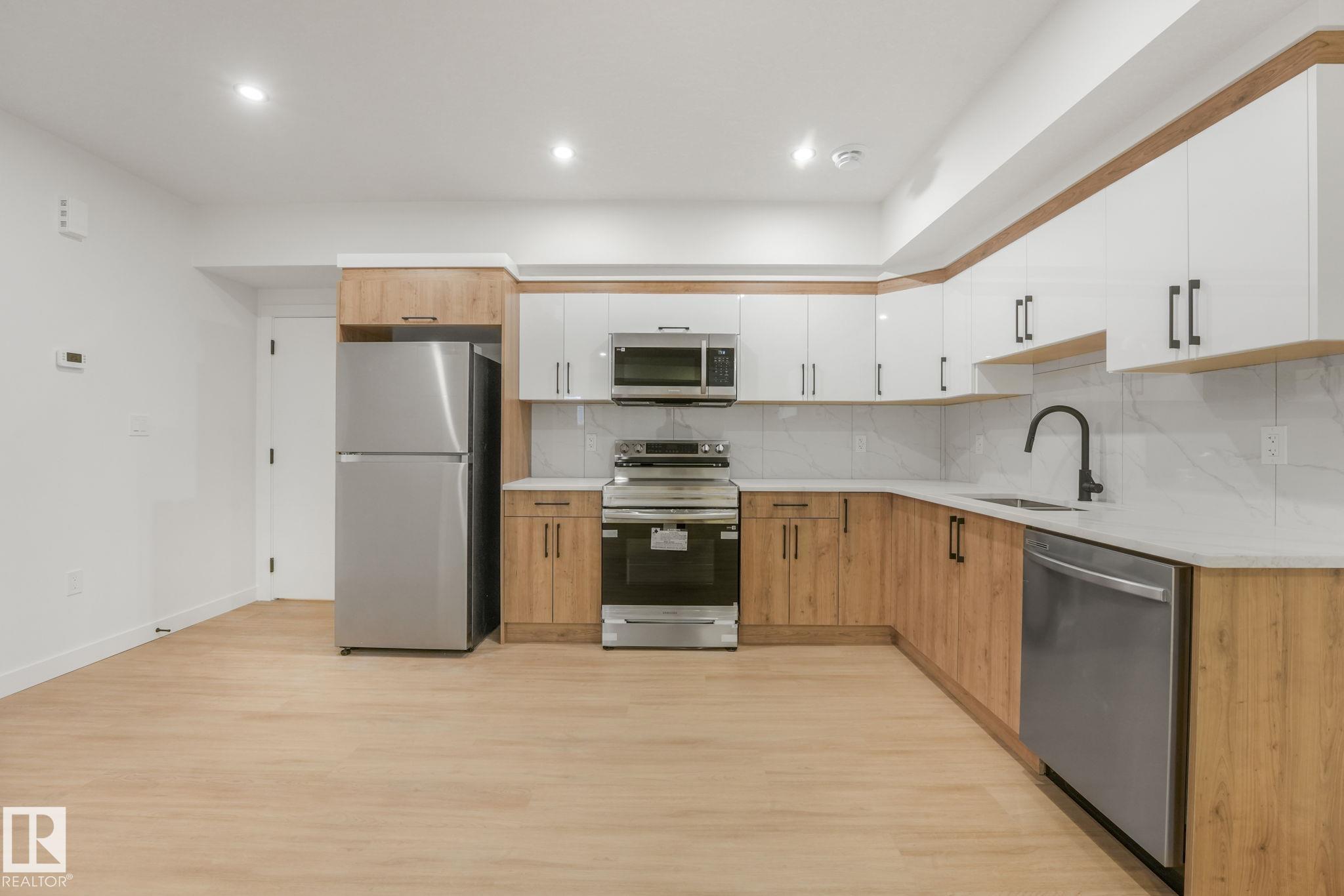 Live Up. Rent Down, WIN Big. This home features a 2 BDRM LEGAL SUITE w/separate entrance, stainless steel appl's incl: dishwasher & full stacked laundry. Ideal mortgage helper--let your tenant help pay the bills while you enjoy this brand-new 1965 sqft 2 Storey HOME! This gem seamlessly blends modern design with ultimate comfort. Boasting 6 bdrms,4 baths & an open-concept living space & double detached garage. This home offers a versatile office/bdrm on the main flr. The chef-inspired kitchen has high-end stainless steel appl's, quartz countertops, tiled backsplash, center island perfect for entertaining. Flawless finishes are evident throughout w/triple pane windows for natural sunlight, 9-ft ceilings on the main & bsmt levels, luxury vinyl plank flring on the main flr & carpet/tiles on the second flr, walk-in closet in the mudrm. The mstr bdrm has 2 closets, full laundry rm w/sink & bonus rm. Close to Downtown, Universities, schools, & easy access to Yellowhead. Comes w/rough grade & AB new home warranty