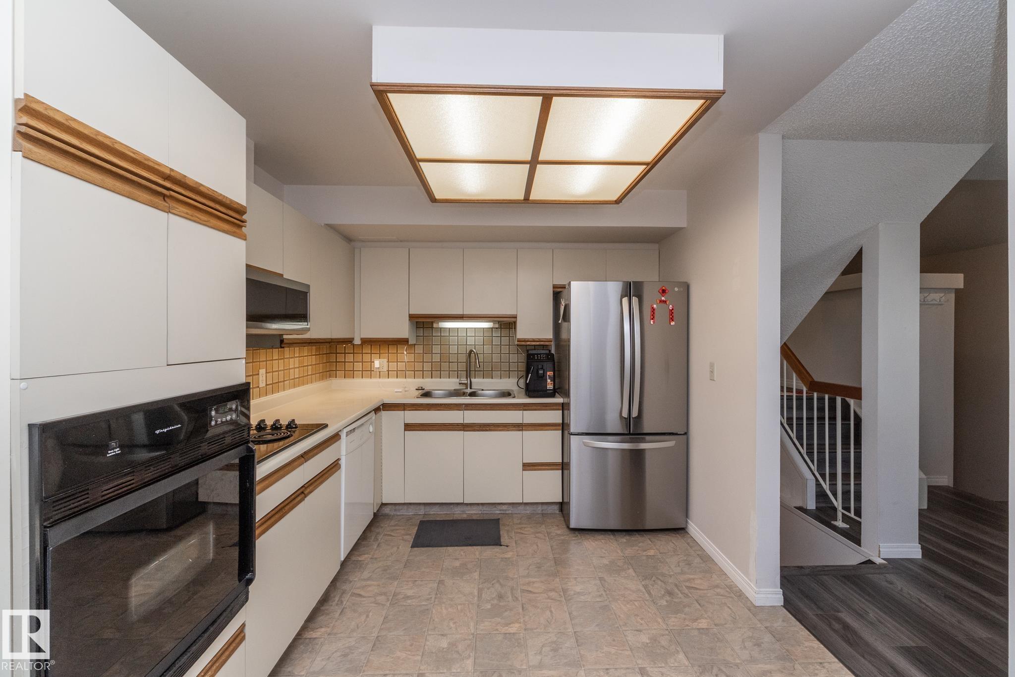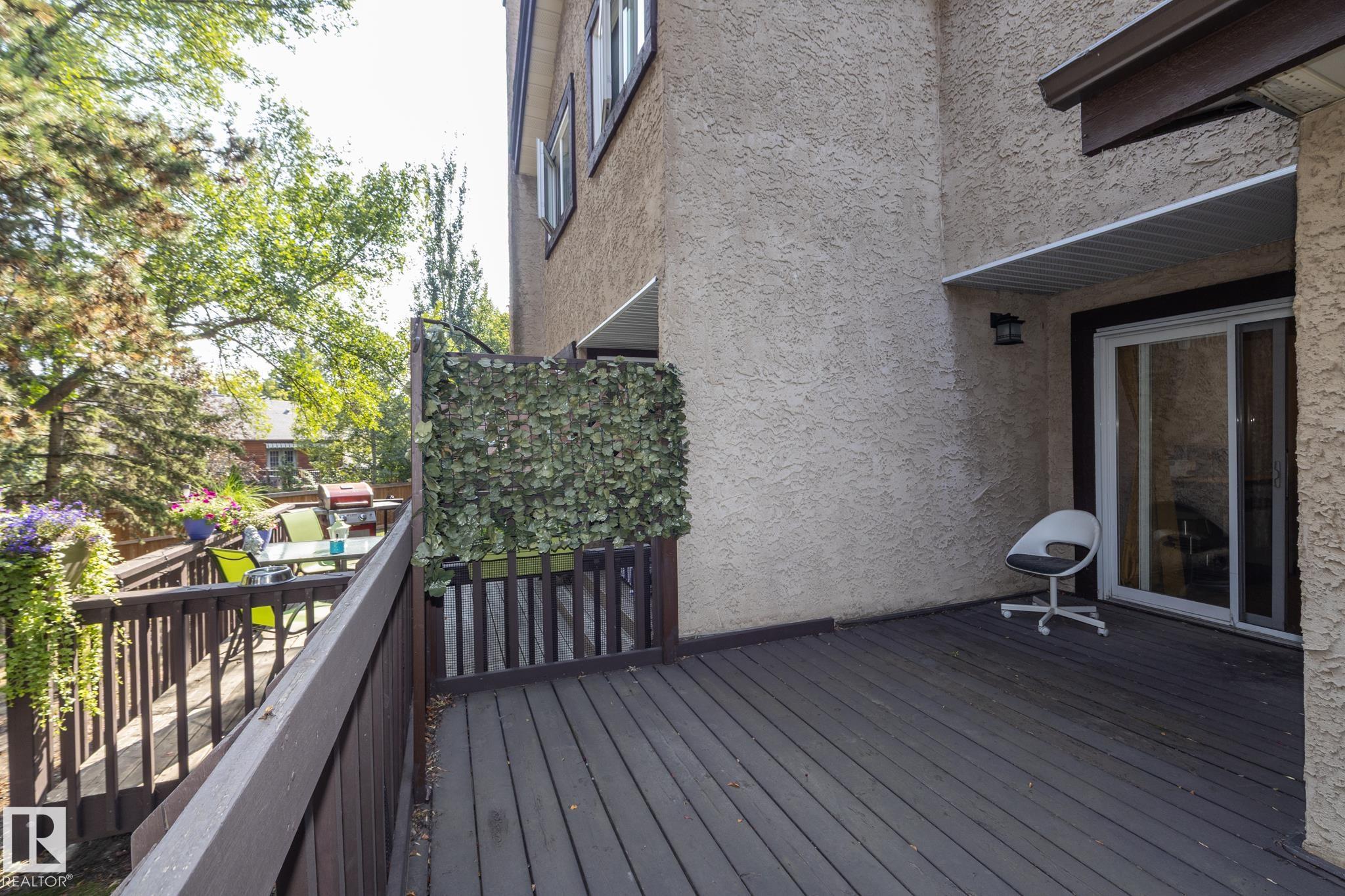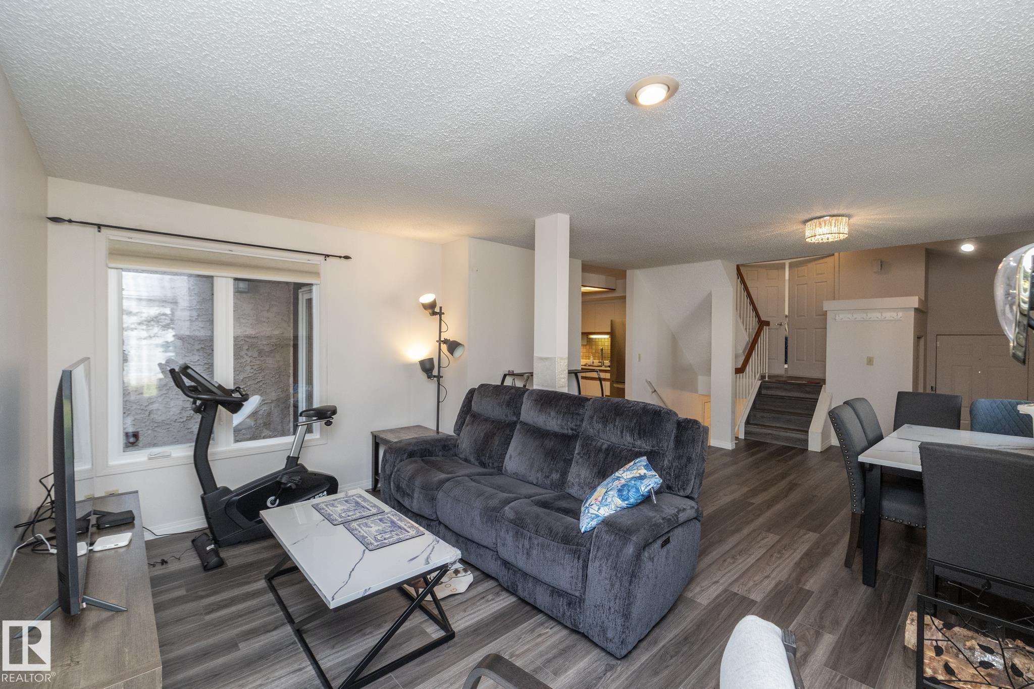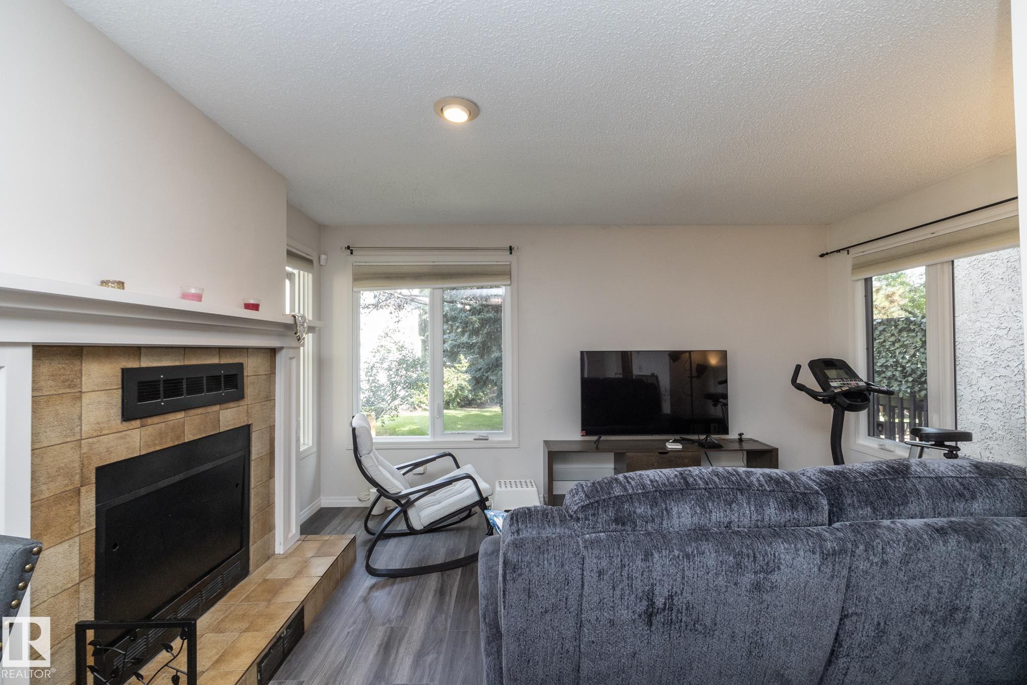 Welcome to this beautifully updated townhouse in the heart of Riverbend. The main floor features a bright living room with a cozy fireplace, a functional kitchen with ample cabinet space, and a dining area that opens to a private patio, perfect for relaxing or entertaining. Recent updates include new flooring, a hot water tank, fridge, and microwave hood fan (2024), making the home move-in ready. Upstairs, the spacious primary bedroom boasts a full ensuite bath, while the bright and versatile second bedroom is ideal for family, guests, or a home office, with a full bathroom conveniently located just steps away. The open basement provides plenty of potential for a rec room, gym, or office. Situated in a quiet, well-managed complex close to schools, parks, shopping, and with quick access to Whitemud Drive, this home is perfect for first-time buyers, downsizers, or investors.