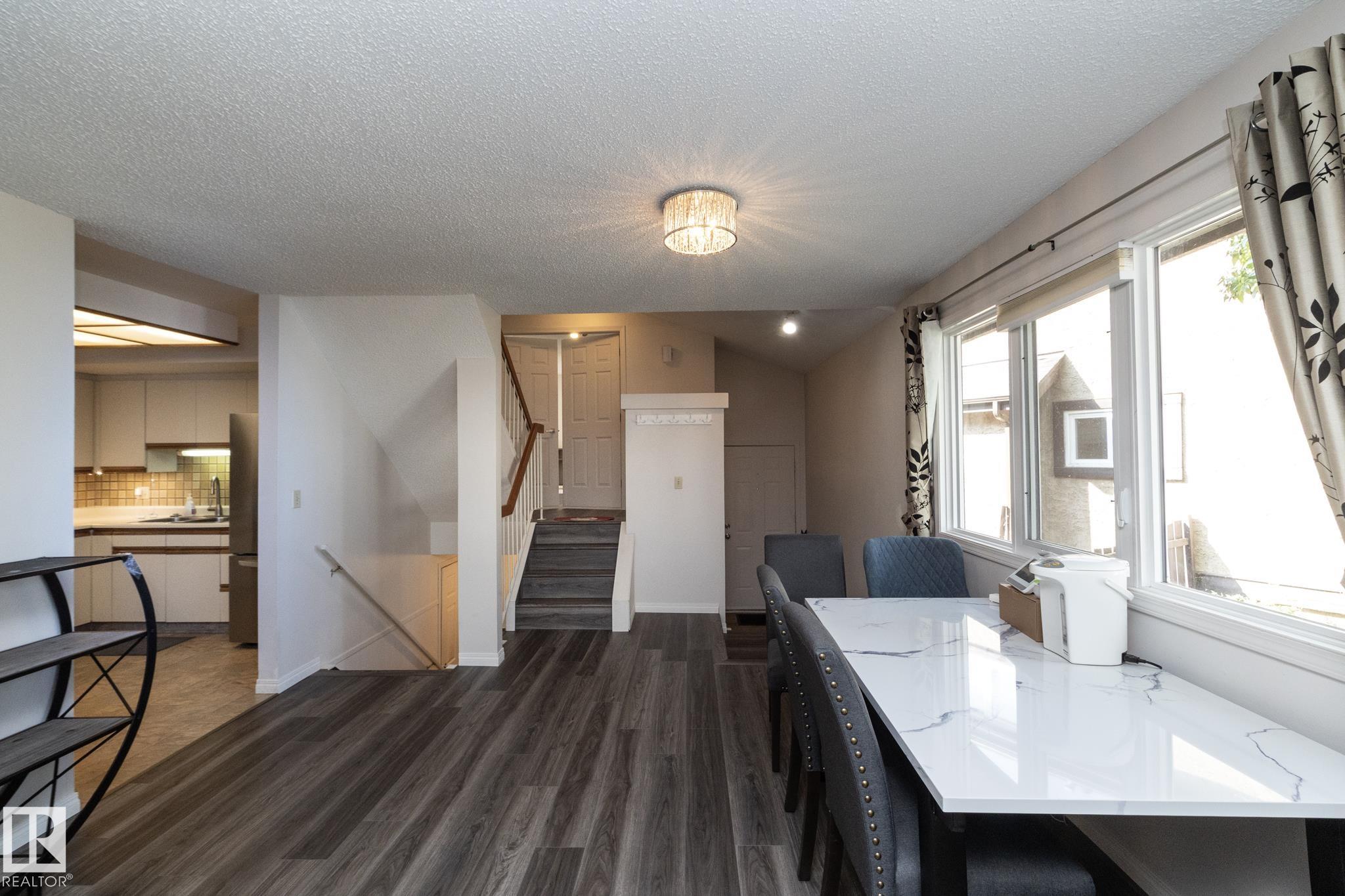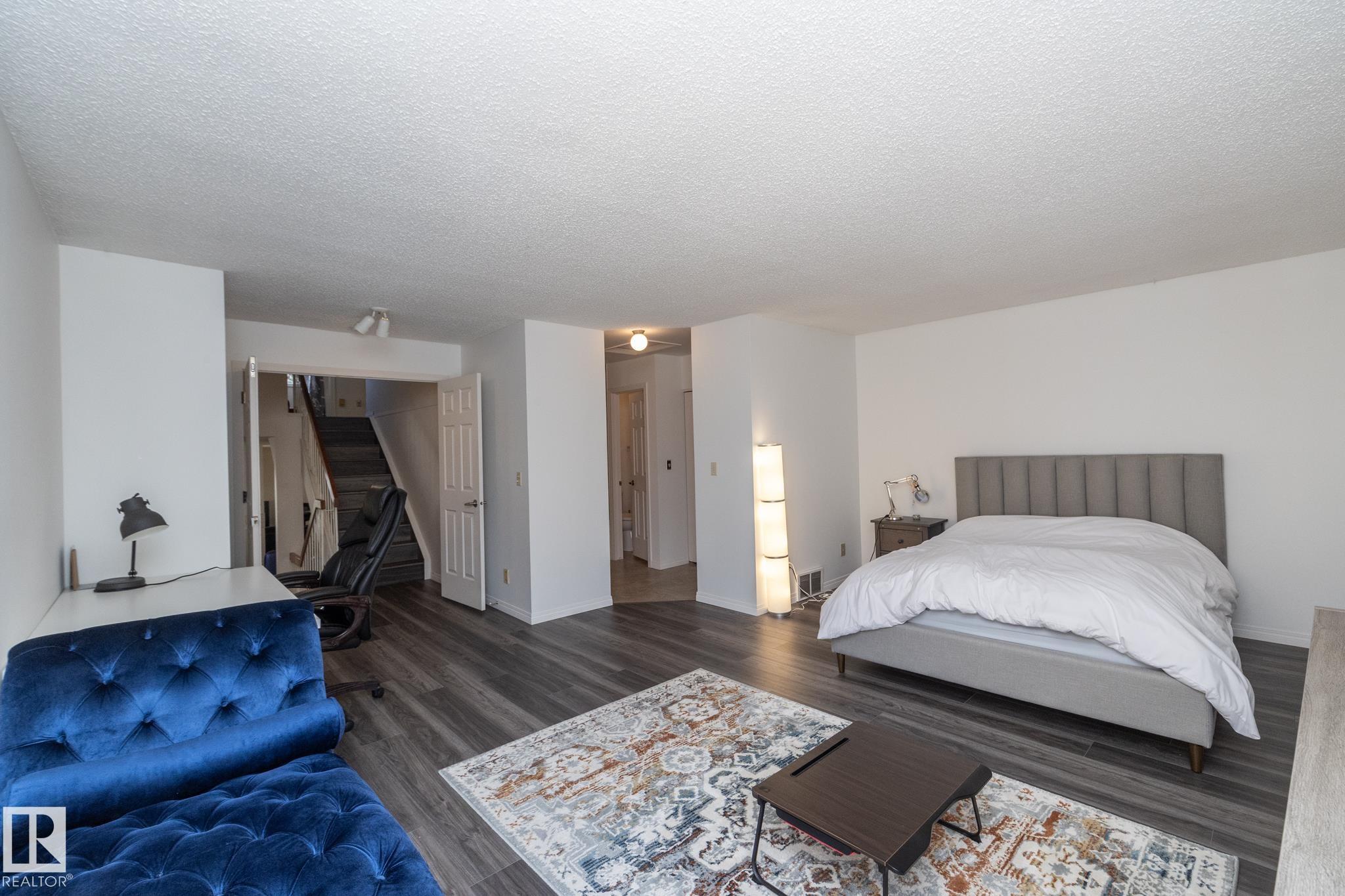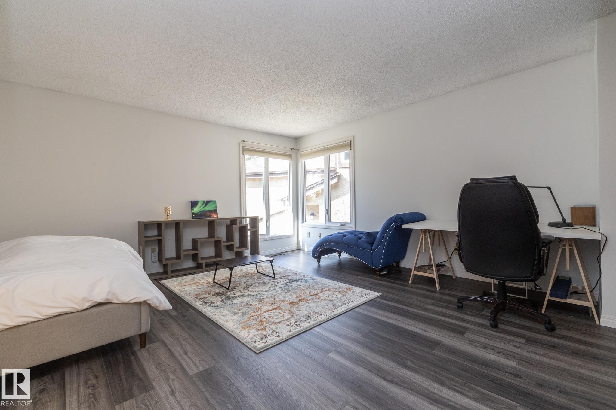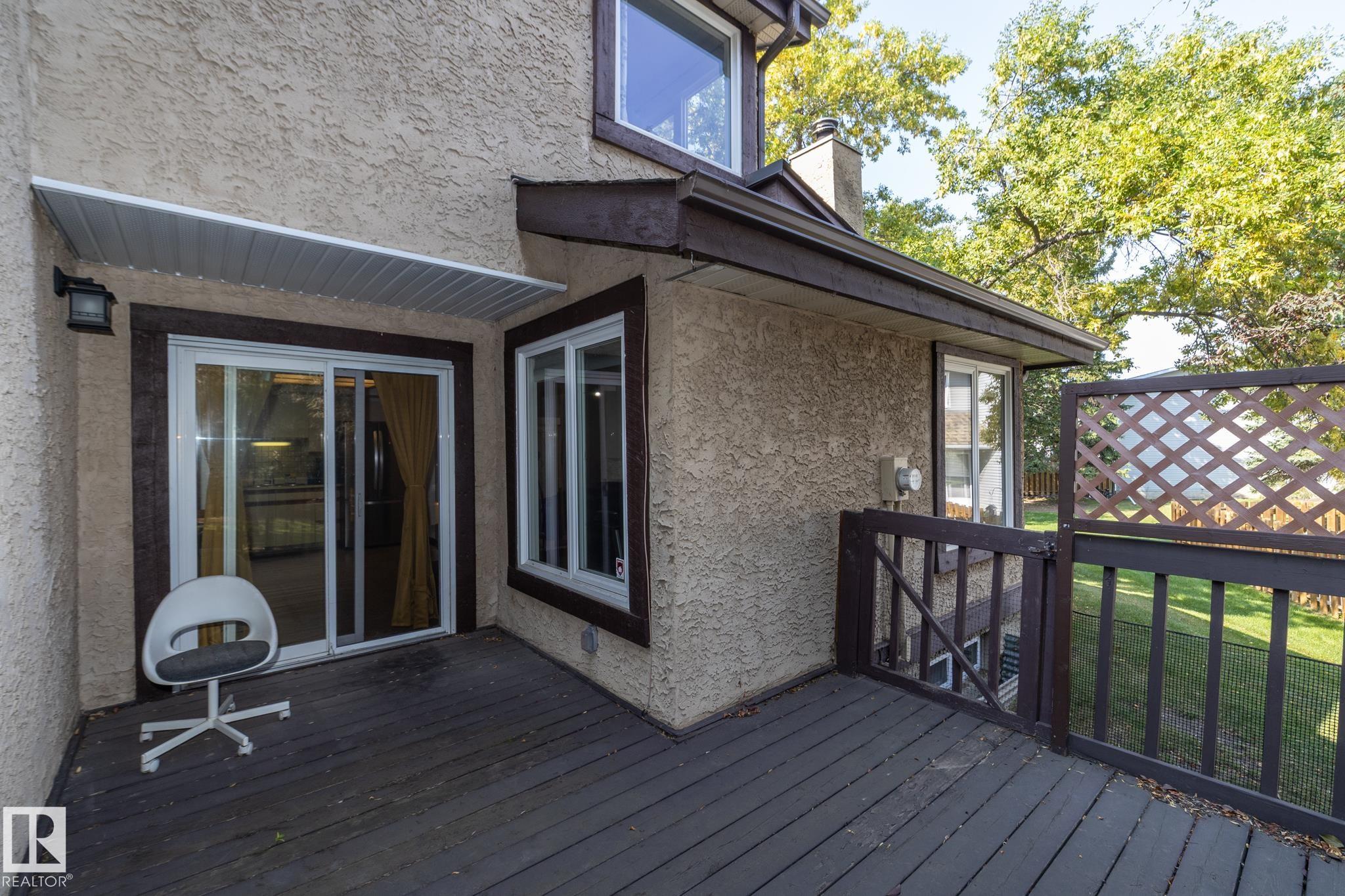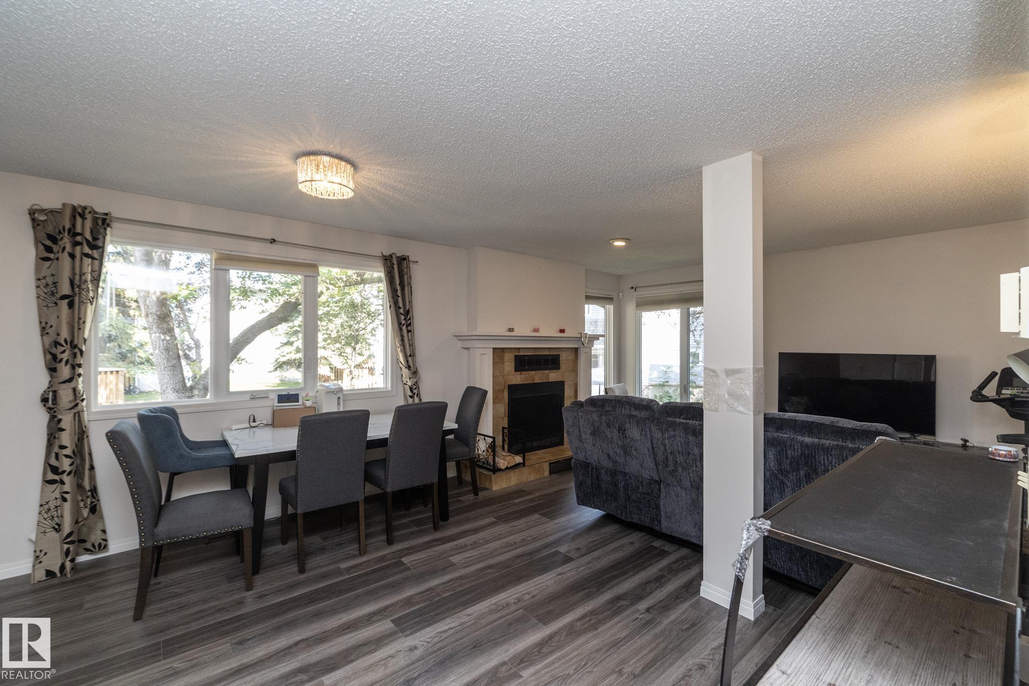 Welcome to this beautifully updated townhouse in the heart of Riverbend. The main floor features a bright living room with a cozy fireplace, a functional kitchen with ample cabinet space, and a dining area that opens to a private patio, perfect for relaxing or entertaining. Recent updates include new flooring, a hot water tank, fridge, and microwave hood fan (2024), making the home move-in ready. Upstairs, the spacious primary bedroom boasts a full ensuite bath, while the bright and versatile second bedroom is ideal for family, guests, or a home office, with a full bathroom conveniently located just steps away. The open basement provides plenty of potential for a rec room, gym, or office. Situated in a quiet, well-managed complex close to schools, parks, shopping, and with quick access to Whitemud Drive, this home is perfect for first-time buyers, downsizers, or investors.