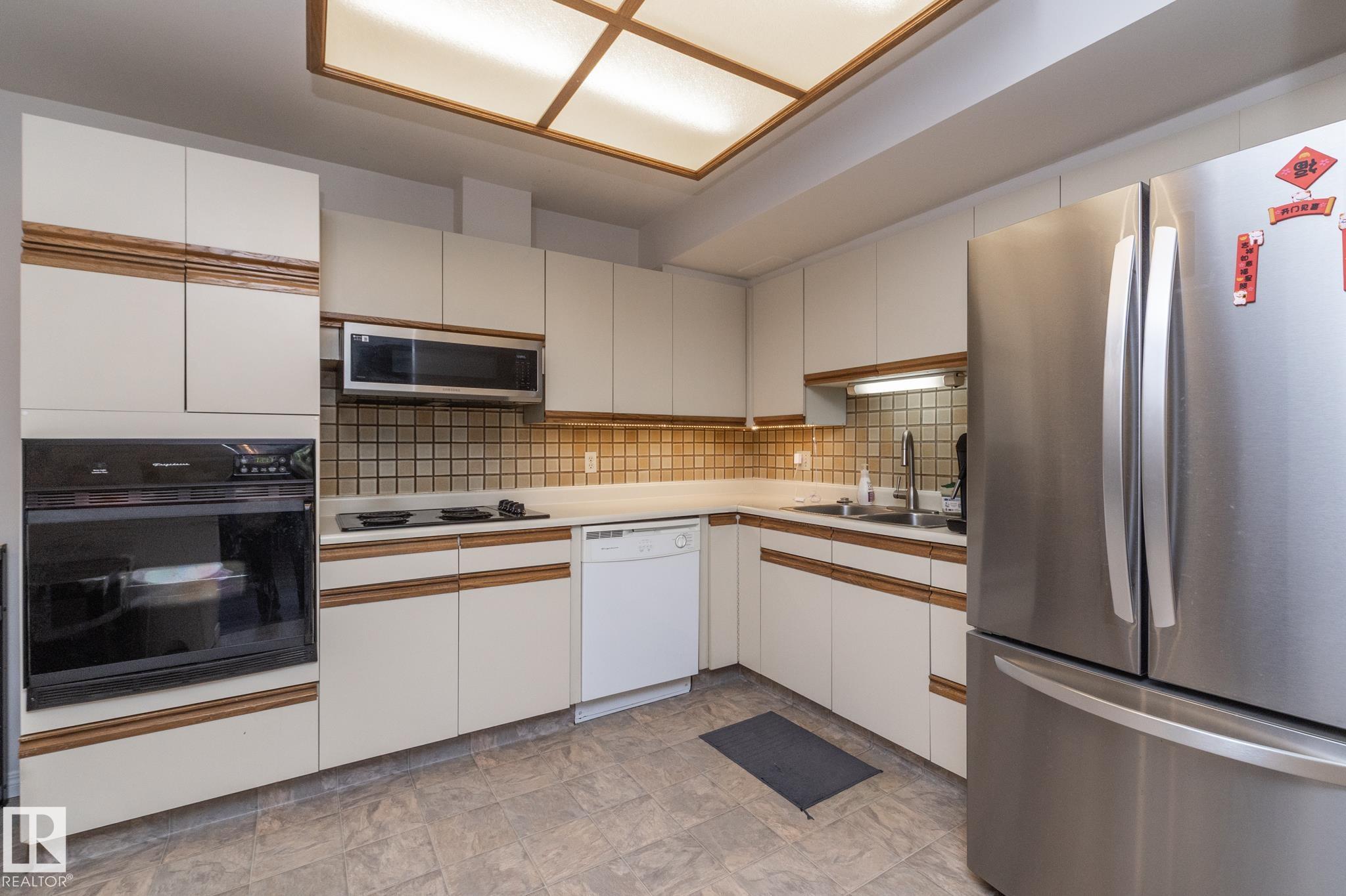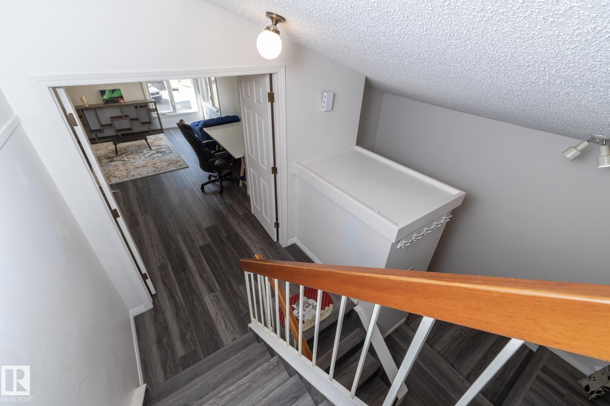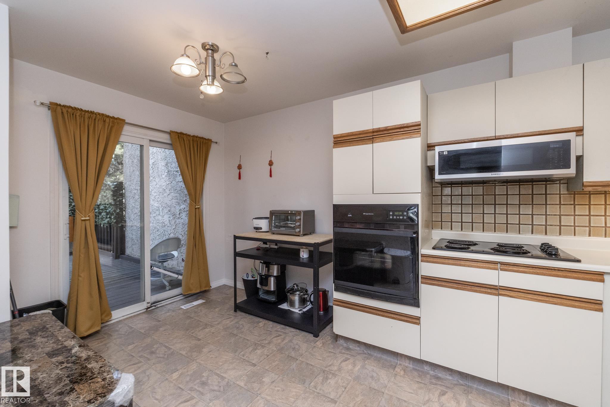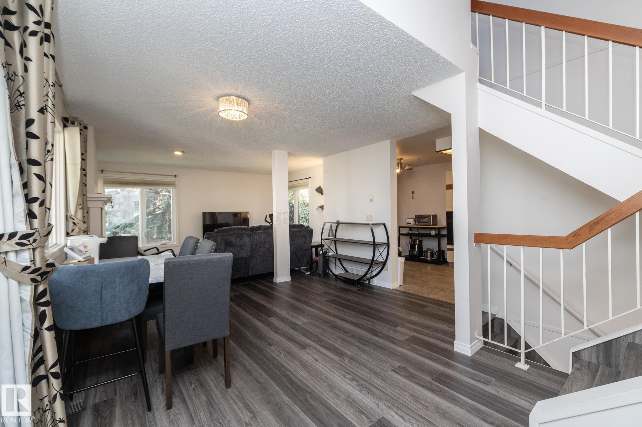 Welcome to this beautifully updated townhouse in the heart of Riverbend. The main floor features a bright living room with a cozy fireplace, a functional kitchen with ample cabinet space, and a dining area that opens to a private patio, perfect for relaxing or entertaining. Recent updates include new flooring, a hot water tank, fridge, and microwave hood fan (2024), making the home move-in ready. Upstairs, the spacious primary bedroom boasts a full ensuite bath, while the bright and versatile second bedroom is ideal for family, guests, or a home office, with a full bathroom conveniently located just steps away. The open basement provides plenty of potential for a rec room, gym, or office. Situated in a quiet, well-managed complex close to schools, parks, shopping, and with quick access to Whitemud Drive, this home is perfect for first-time buyers, downsizers, or investors.