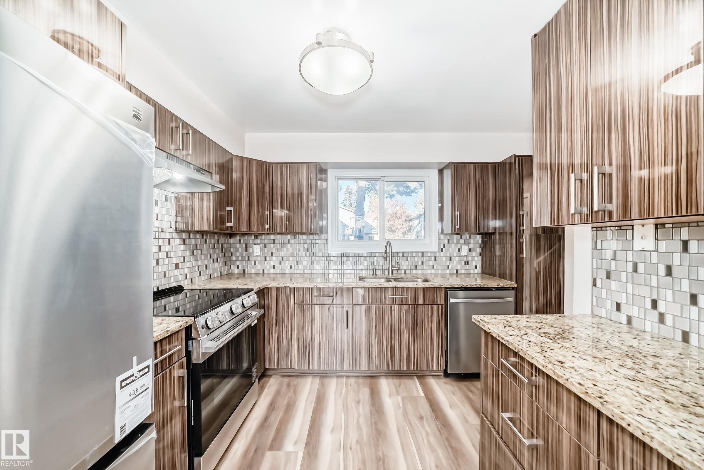 Fully Renovated and in tip-top shape!! This move-in-ready townhouse located in the prestigious Ramsay Heights Community is a perfect home for families /investors. Every inch of this home has been refreshed, offering a perfect combination of modern upgrades, comfort and functionality. Brand new flooring, paint, lights and fixtures, appliances, name it and you have it. Gorgeous kitchen featuring modern granite counter tops, stainless steel appliances, modern tile backsplash, open shelving and ample cabinet space. All bedrooms feature finished closets. Fully upgraded powder room on main level and upper level features a fully upgraded wash with him/her sink. Basement offers a room perfect for gym/office or recreation. Enjoy the large, enclosed yard with a newer fence and concrete patio--perfect to enjoy the sunny days. Comes with one outdoor parking stall. Located steps from school, Riverbend Square, parks and 24/7 ETS transit service. Carefully priced. 3D Tour LINK: https://3dtour.listsimple.com/p/dIj9SGaL