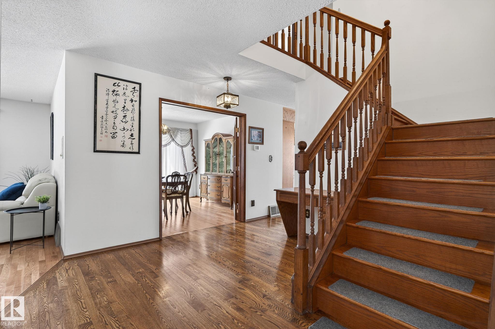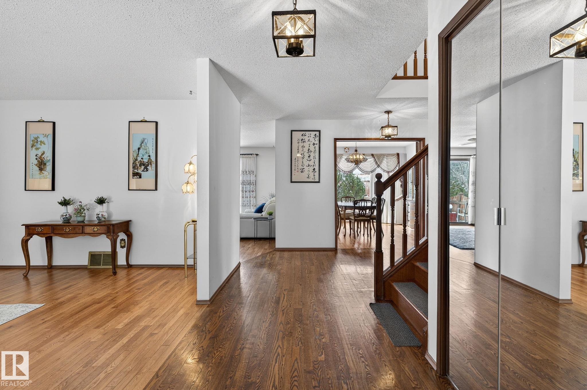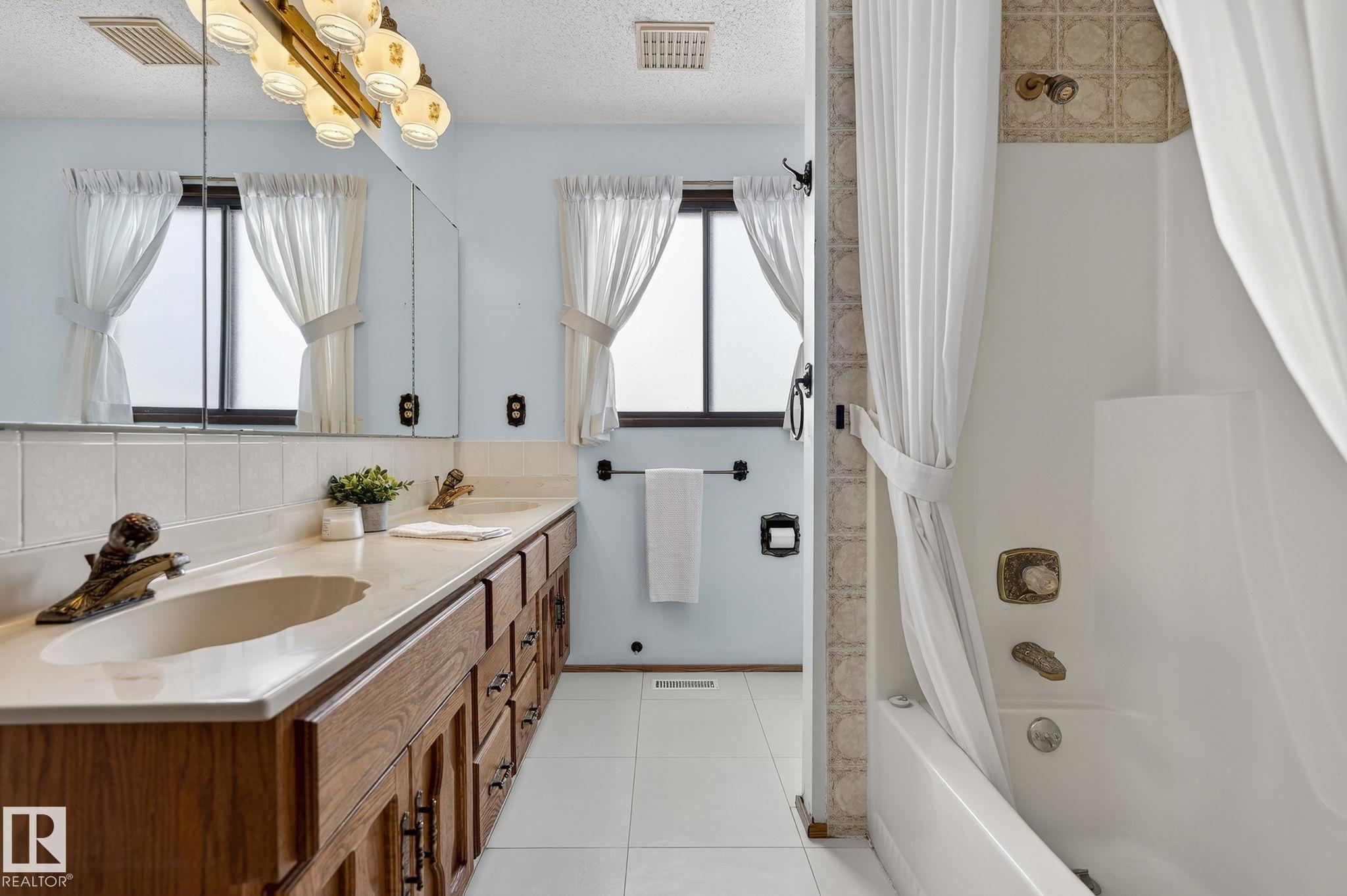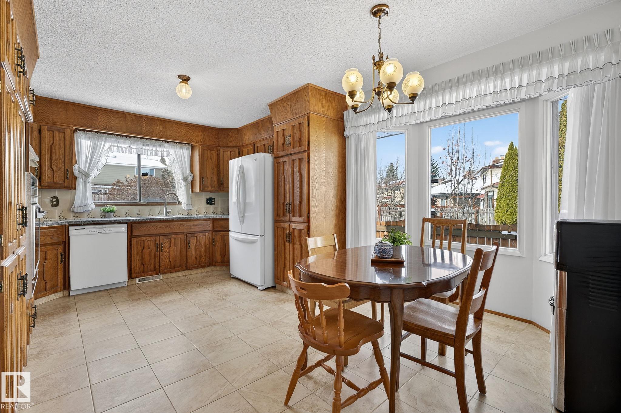 Home Sweet Home! Welcome to this classic Ace Lange built family home in the highly sought after neighbourhood of Ramsay Heights! Lovingly maintained by the current owner for the past 33 years. Main floor boasts an inviting foyer. Spacious living room with large bow windows. Cozy family room has brick featured fireplace & built-in shelvings, patio door onto the deck. A sun-lit formal dining room with double french door & bay window overlooking the huge private fenced yard. Kitchen has ample cabinets & garden window over the sink. Bright and cheery eating nook with another bay window. Conveniently located laundry room with window that is adjacent to the mud room, a full bath and side door. Upper level features an enormous master bedroom with a jacuzzi ensuite. Three more spacious bedrooms at the back (2 w/double closets) & a main bath. Lower level is nicely finished w/ an entertaining size rec room, beautiful wet bar & a washroom (R/I for shower) . Close to all amenities w/easy access onto the Whitemud.