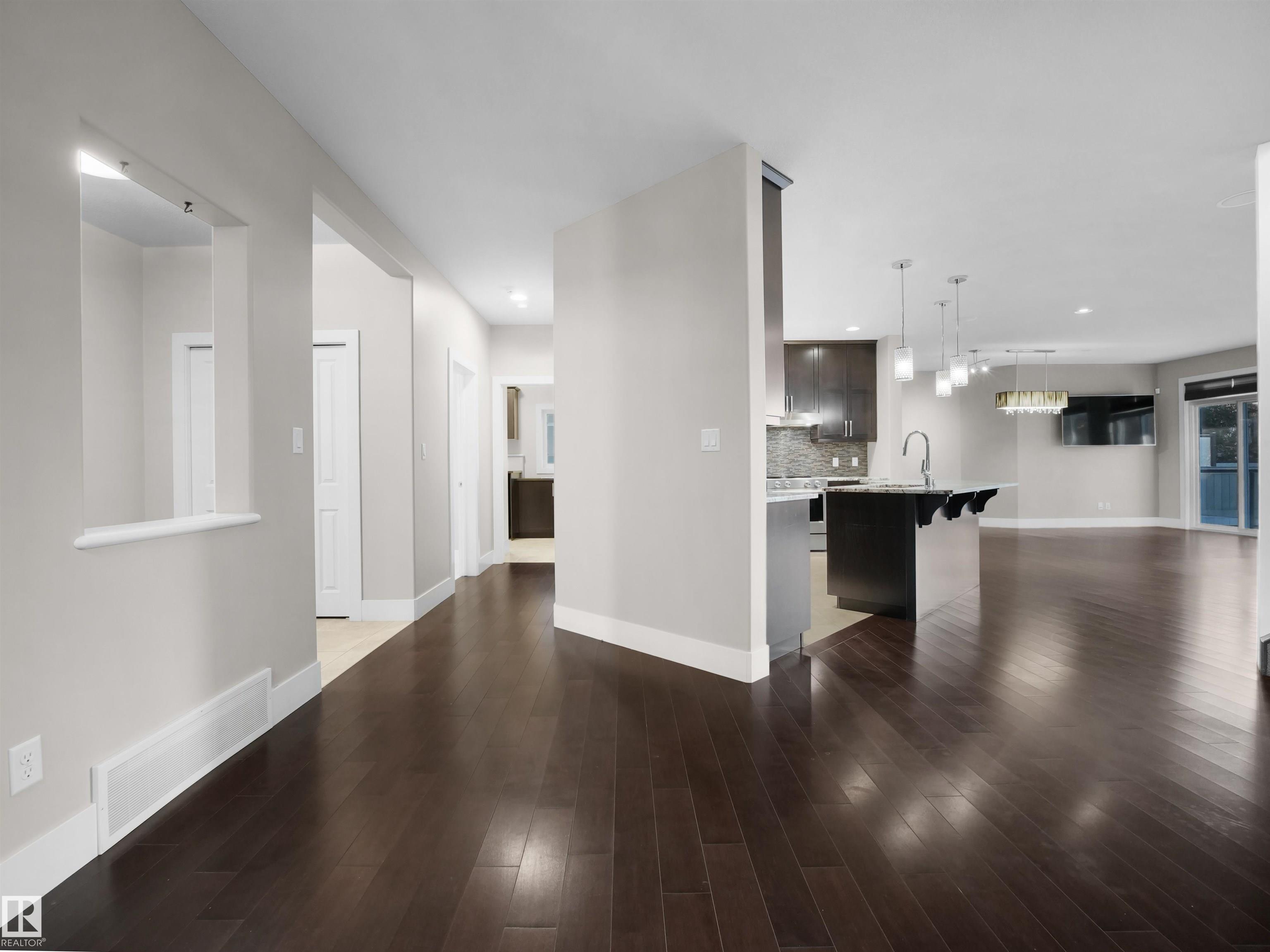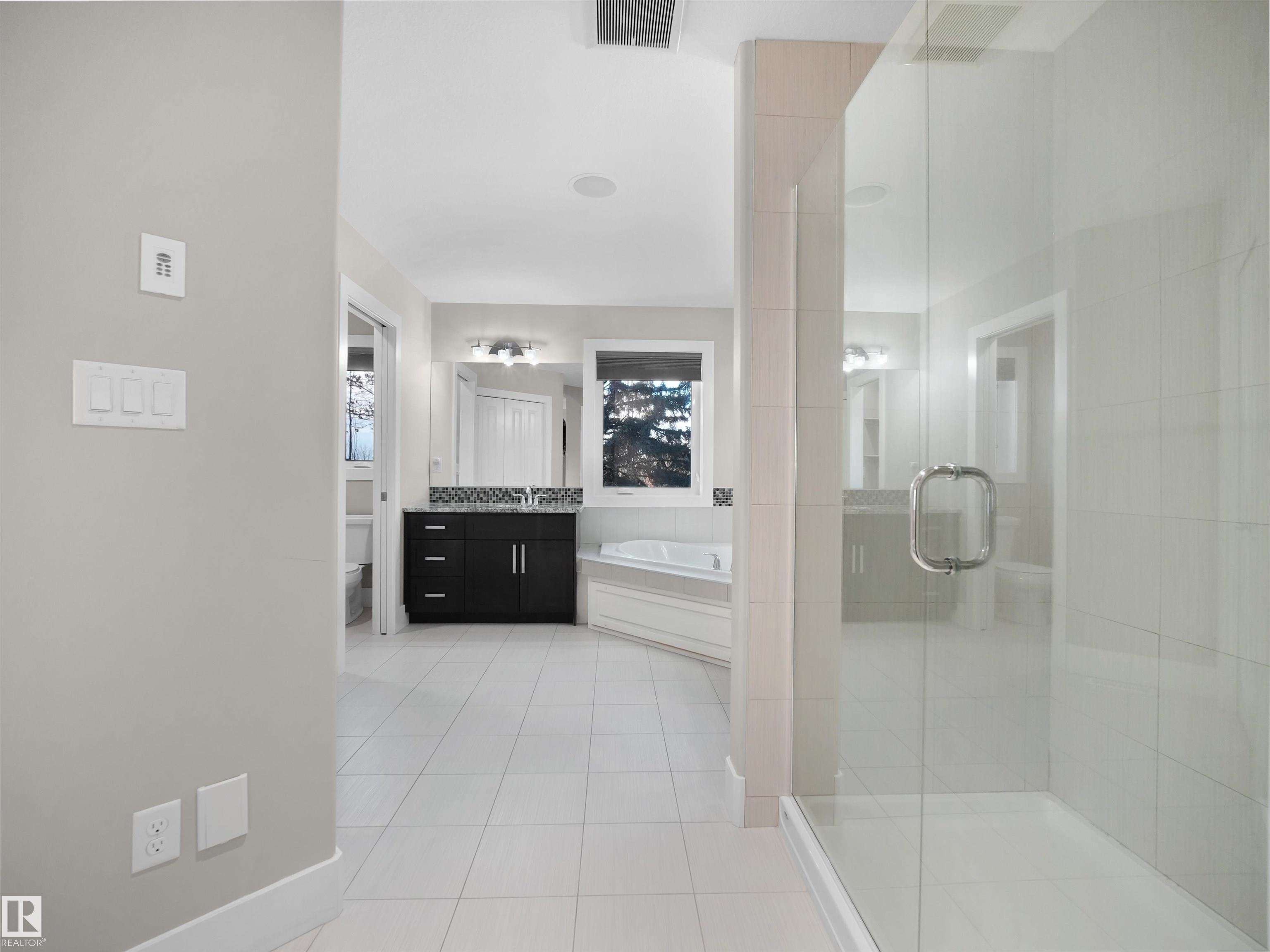RARE FIND in an EXCLUSIVE GATED COMMUNITY close to EVERYTHING! This home offers almost 5,000sqft of exceptional living SPACE, PRIVACY, and MULTI-GENERATIONAL FLEXIBILITY. The LOWER LEVEL features a JUNIOR PRIMARY BEDROOM with FULL BATH. The MAIN LEVEL features a centrally located BONUS ROOM, creating the perfect layout for growing families where kids stay within sight and living spaces flow naturally. Upstairs, the PRIMARY SUITE is paired with TWO ADDITIONAL BEDROOMS connected by a JACK-AND-JILL BATHROOM. The FULLY DEVELOPED BASEMENT includes a WET BAR, THEATRE ROOM, and a HOME GYM. Enjoy a PRIVATE BACKYARD backing onto GREEN TREES with no rear neighbours for a quiet, cozy setting. This home offers a DOUBLE OVERSIZED ATTACHED GARAGE, and an ENTERTAINMENT PACKAGE that includes 4 SMART TVs, a HOME THEATRE SYSTEM with Epson WiFi projector, and a 4-ZONE SONOS SPEAKER SYSTEM. Low condo fees in this SELF-MANAGED community.