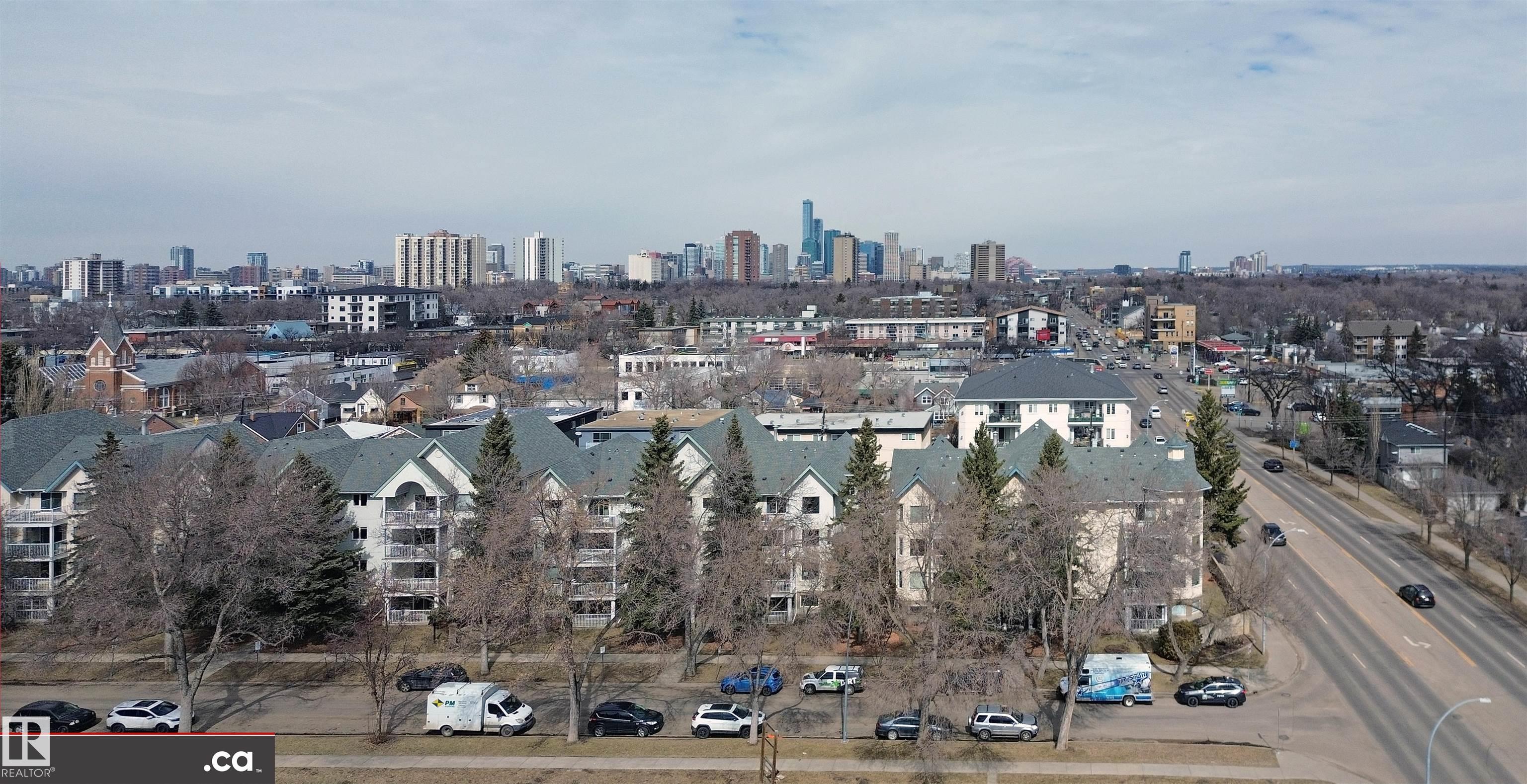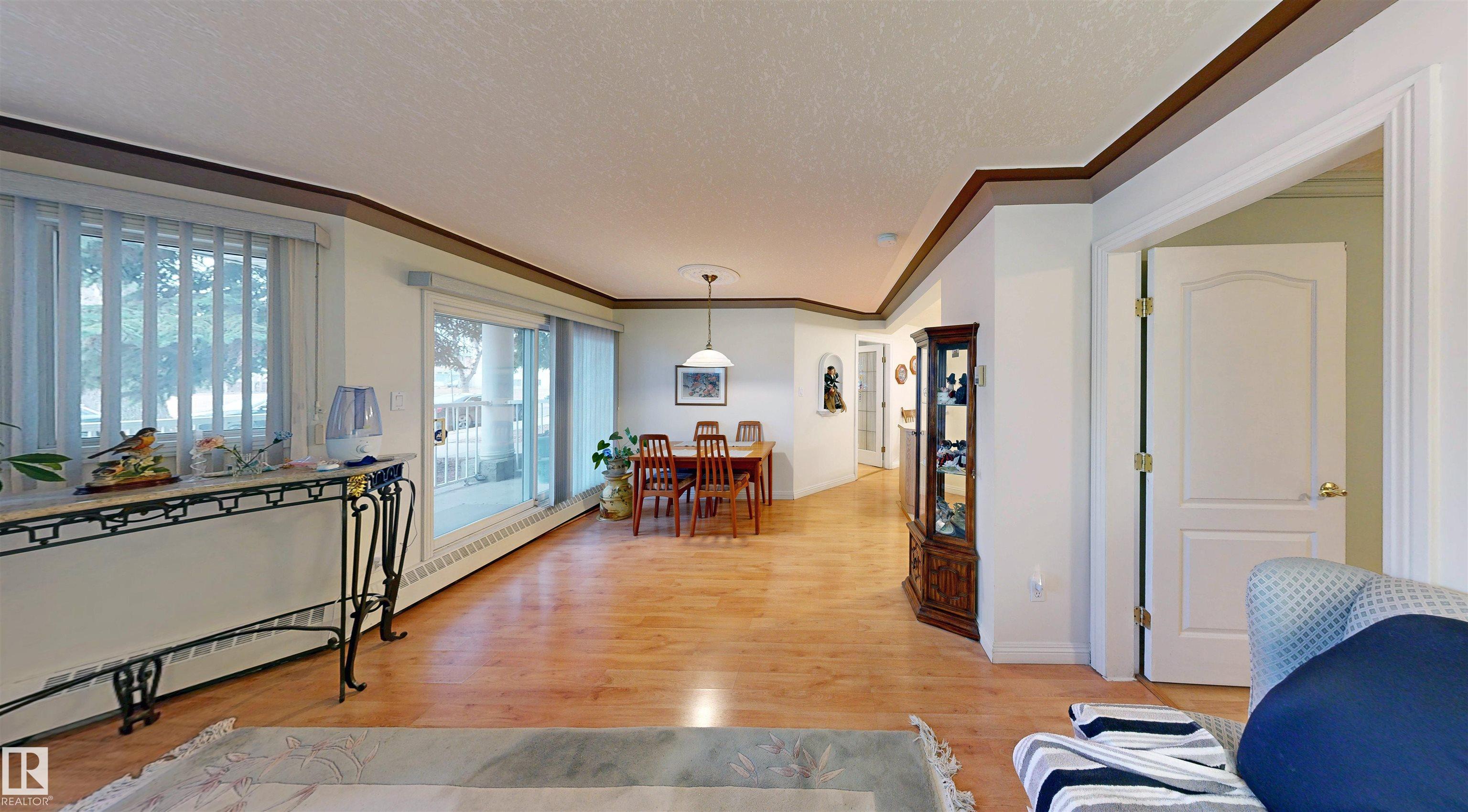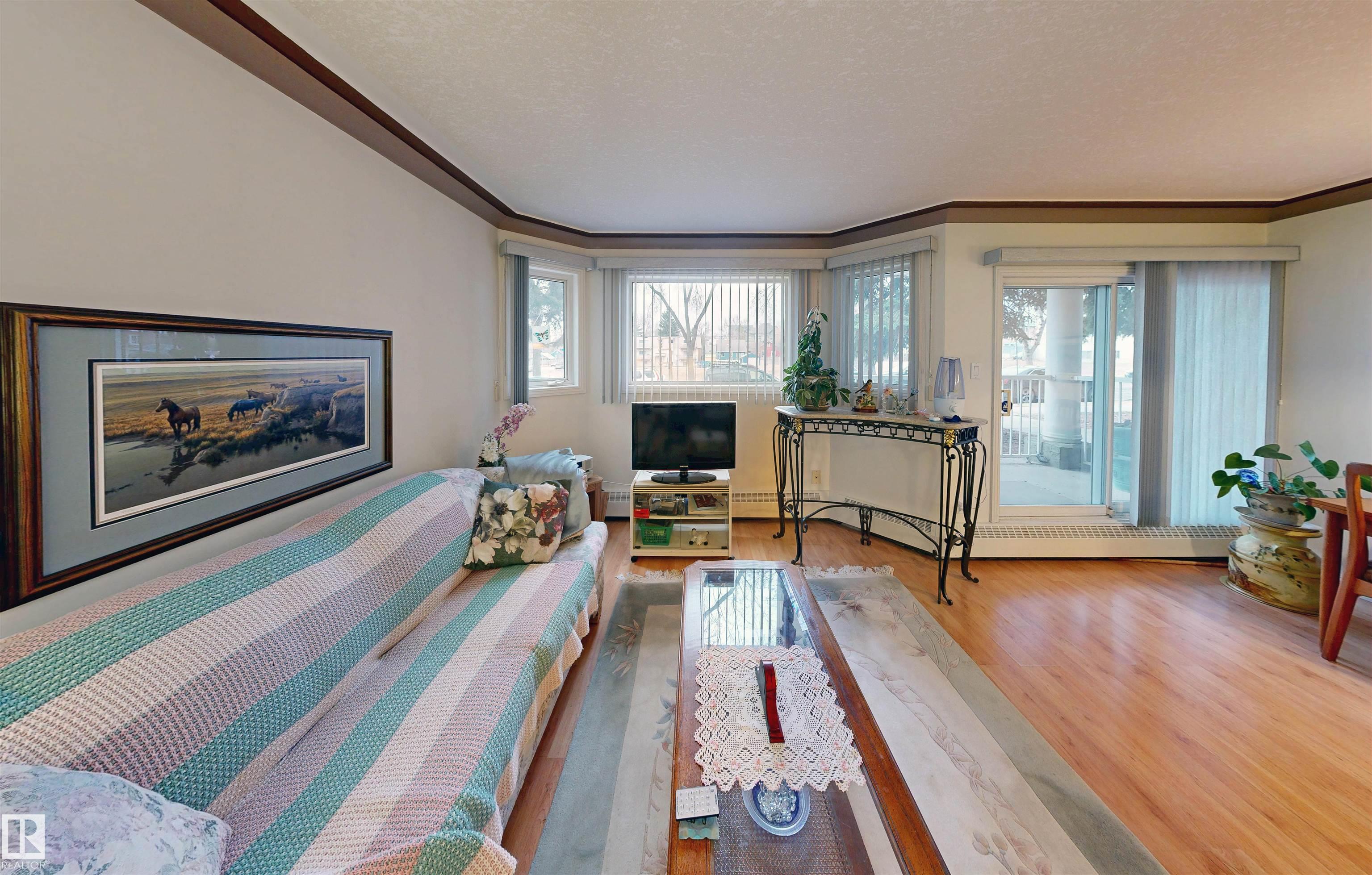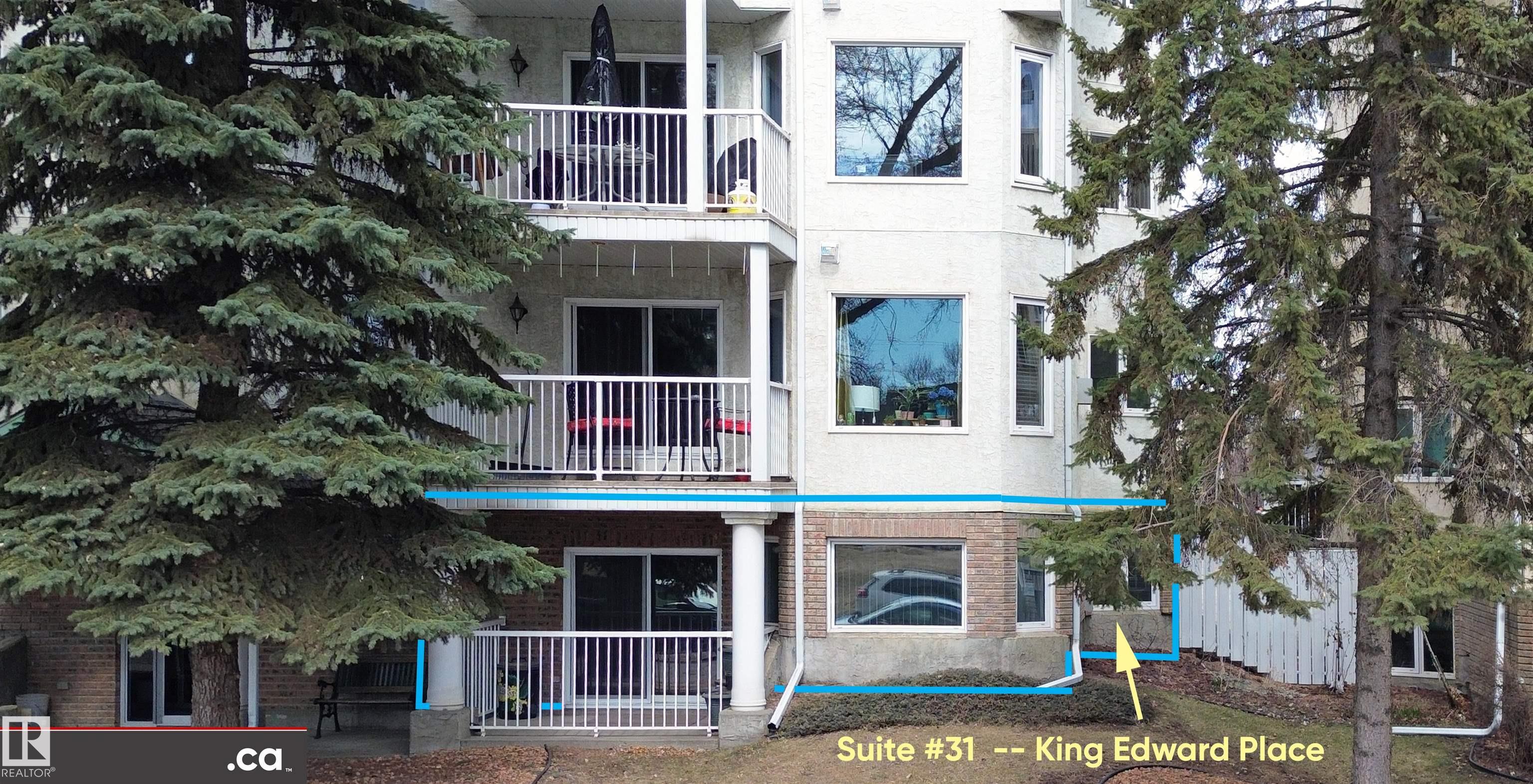 * ATTENTION SENIORS, RESTRICTED-MOBILITY BUYERS, PROFESSIONALS, STUDENTS, & INVESTORS: EXCELLENT CONDITION MAIN LEVEL UNIT NOW AVAILABLE IN KING EDWARD PLACE! A palette of suite features: * Very nice corner kitchen with island & white appliances * Spacious dinette accessing South-facing balcony * Living room corner gas fireplace & bay window * Large-sized primary bedroom plus full en suite bath * 2nd guest bedroom / office with desk & Murphy bed * Full 2nd bath beside medium-sized laundry / storage room. KING EDWARD PLACE is a low-rise apartment condominium complex divided into four separate buildings: * Suite #31 is adjacent to front entrance, lobby area, & mailboxes * Included: assigned parking stall #66 & storage locker #31 * Condo documents package on order for Buyer review * Restricted to Adult Living & No Pets for a quieter & tidier building * Prof. managed by KDM Mgmt. Located SE Edmonton -- Ritchie close to 99 St., Whyte Ave., transit, U of A, shopping, Downtown, recreation, & River Valley Parks!!