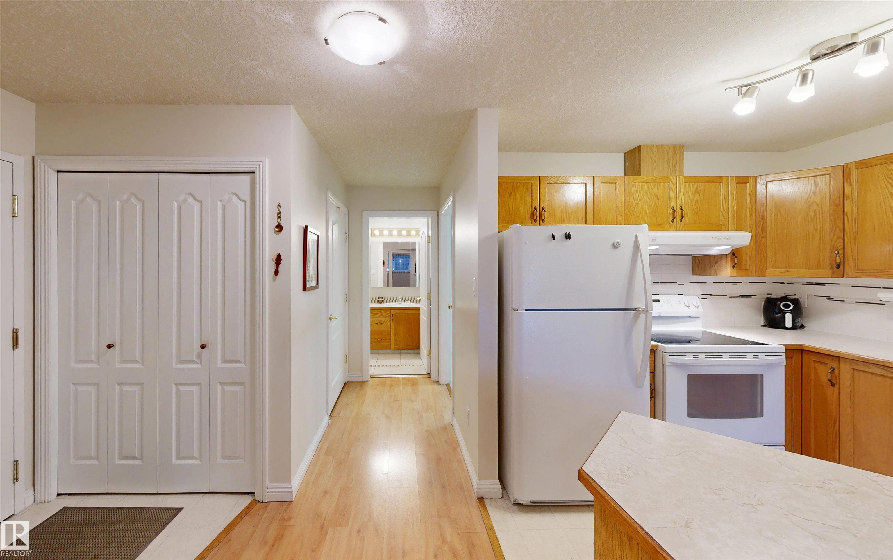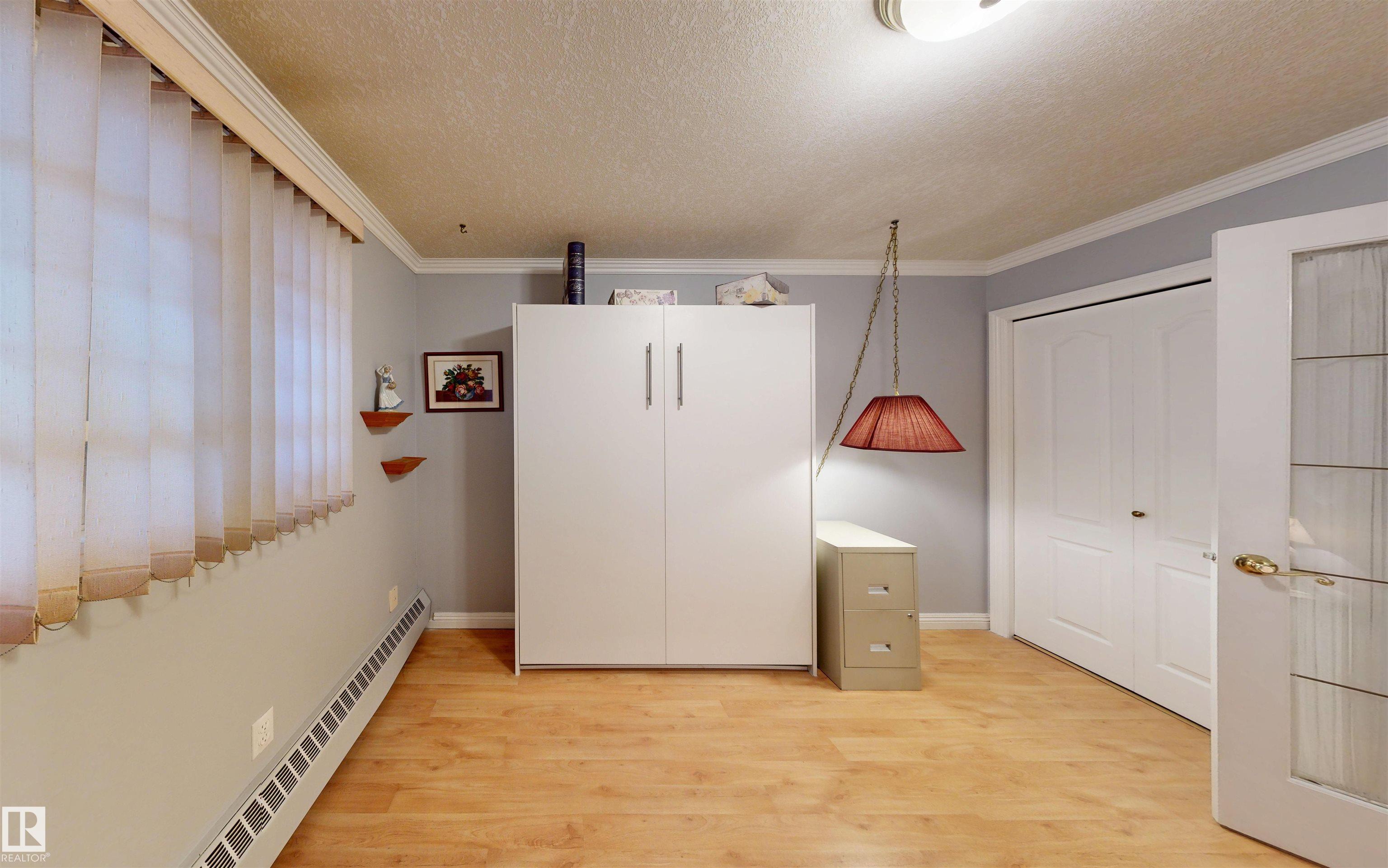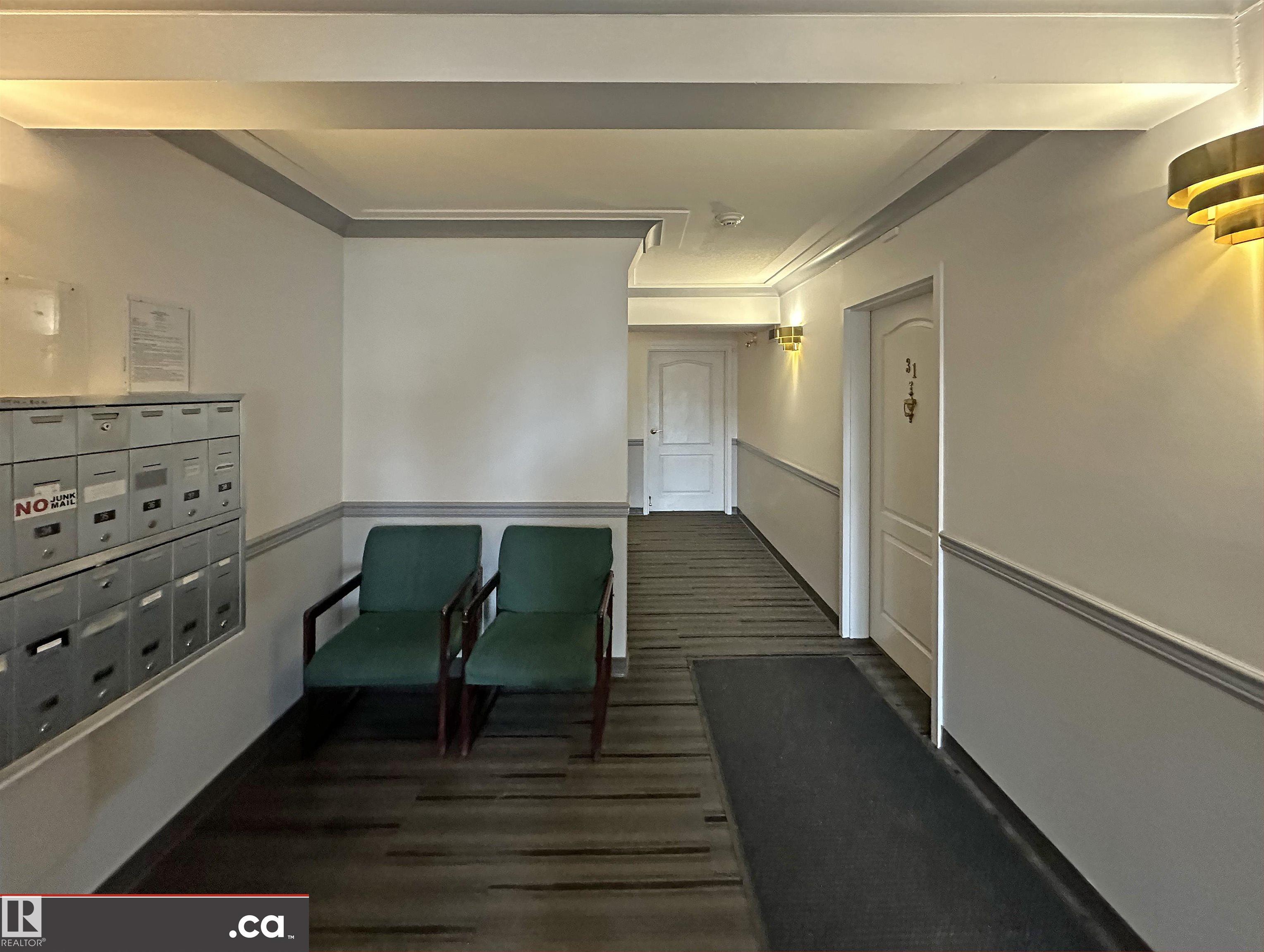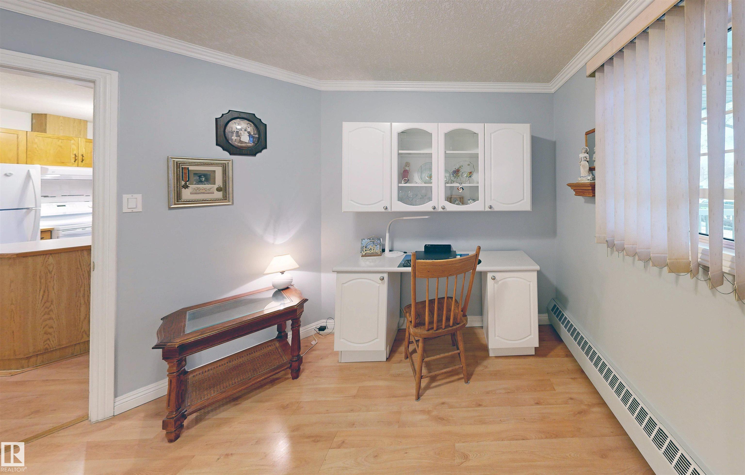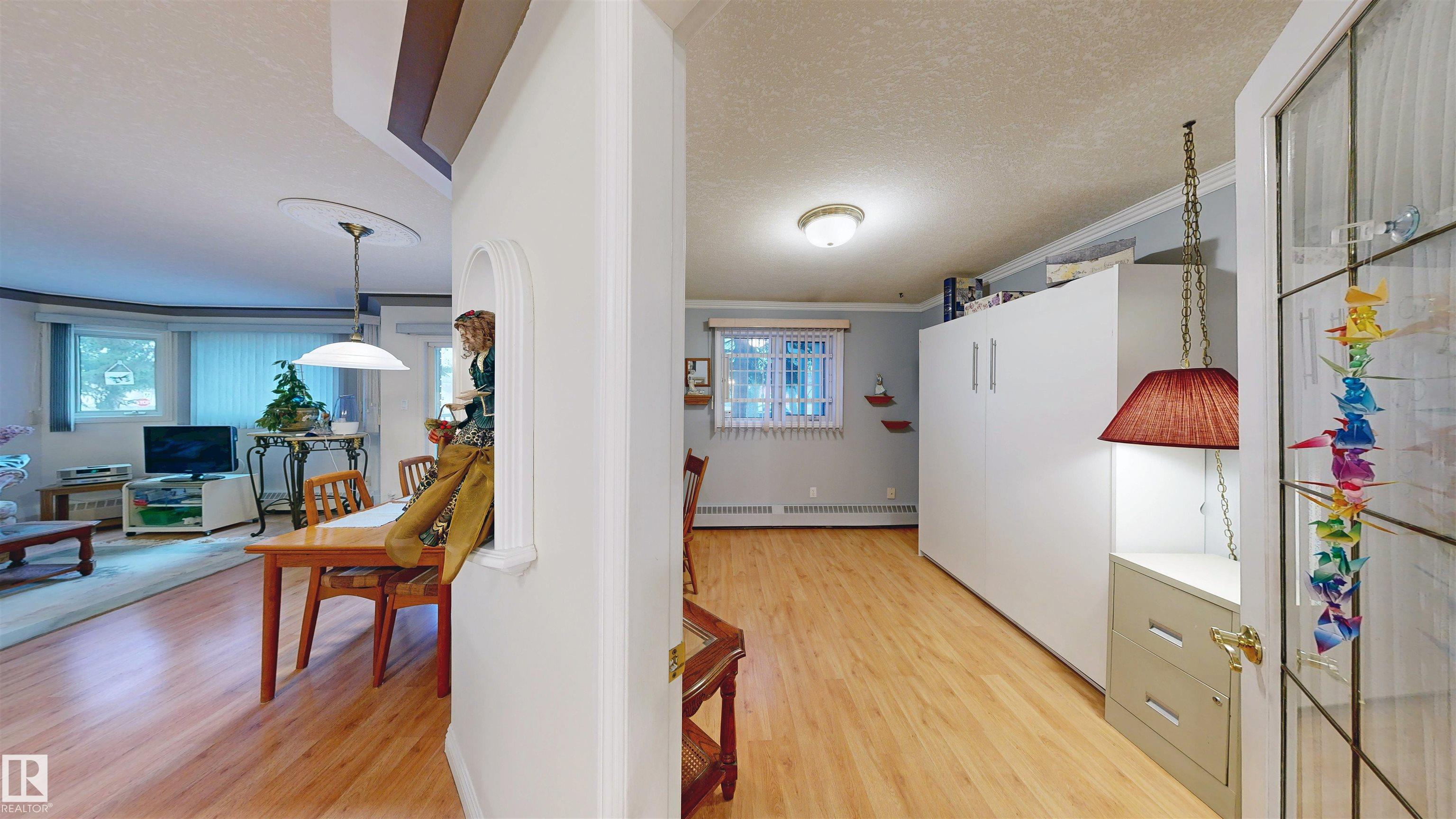 * ATTENTION SENIORS, RESTRICTED-MOBILITY BUYERS, PROFESSIONALS, STUDENTS, & INVESTORS: EXCELLENT CONDITION MAIN LEVEL UNIT NOW AVAILABLE IN KING EDWARD PLACE! A palette of suite features: * Very nice corner kitchen with island & white appliances * Spacious dinette accessing South-facing balcony * Living room corner gas fireplace & bay window * Large-sized primary bedroom plus full en suite bath * 2nd guest bedroom / office with desk & Murphy bed * Full 2nd bath beside medium-sized laundry / storage room. KING EDWARD PLACE is a low-rise apartment condominium complex divided into four separate buildings: * Suite #31 is adjacent to front entrance, lobby area, & mailboxes * Included: assigned parking stall #66 & storage locker #31 * Condo documents package on order for Buyer review * Restricted to Adult Living & No Pets for a quieter & tidier building * Prof. managed by KDM Mgmt. Located SE Edmonton -- Ritchie close to 99 St., Whyte Ave., transit, U of A, shopping, Downtown, recreation, & River Valley Parks!!