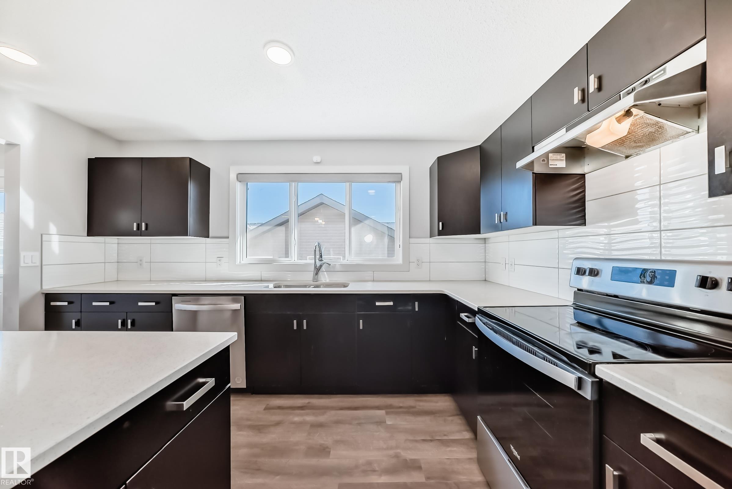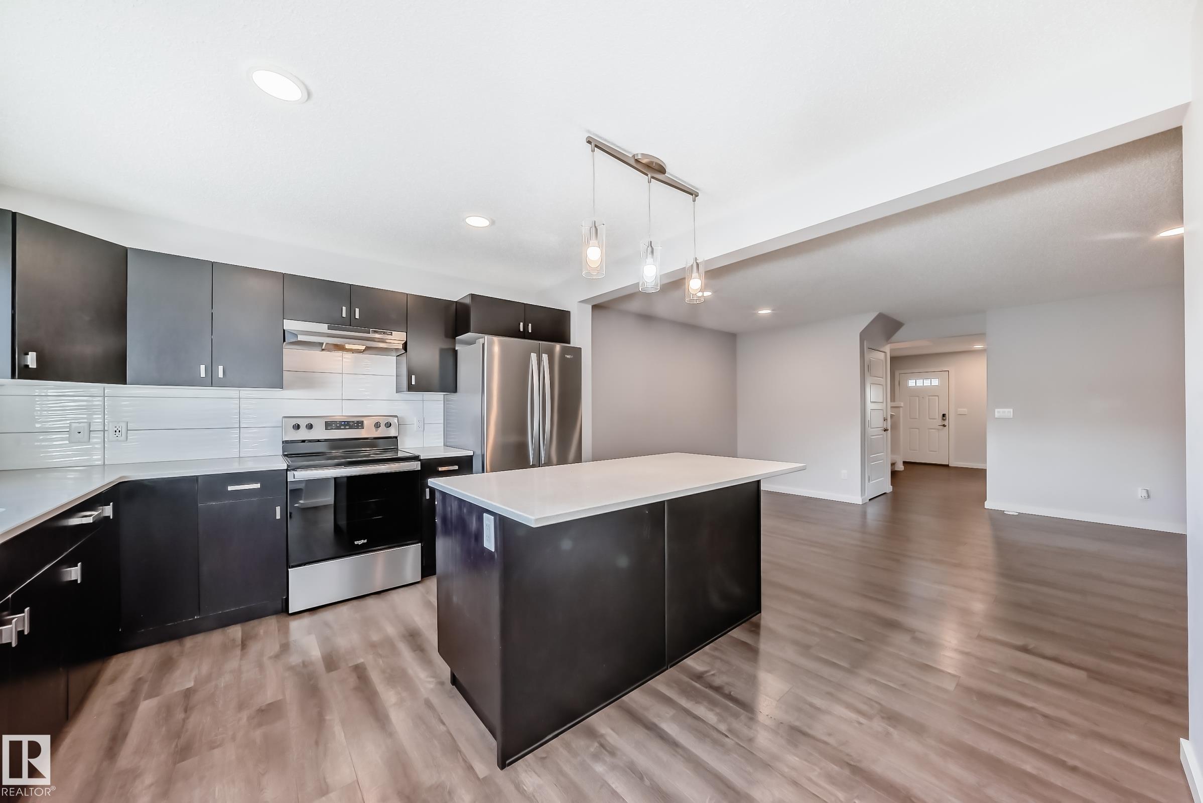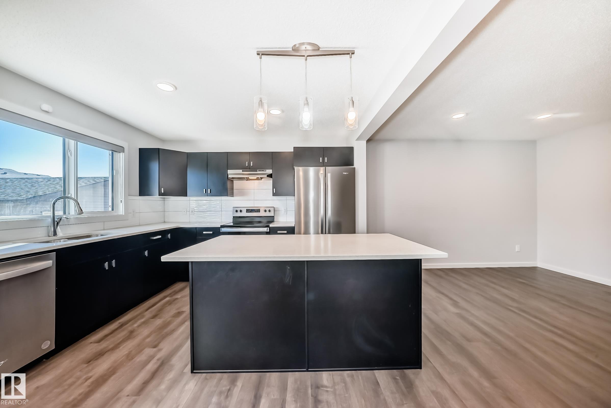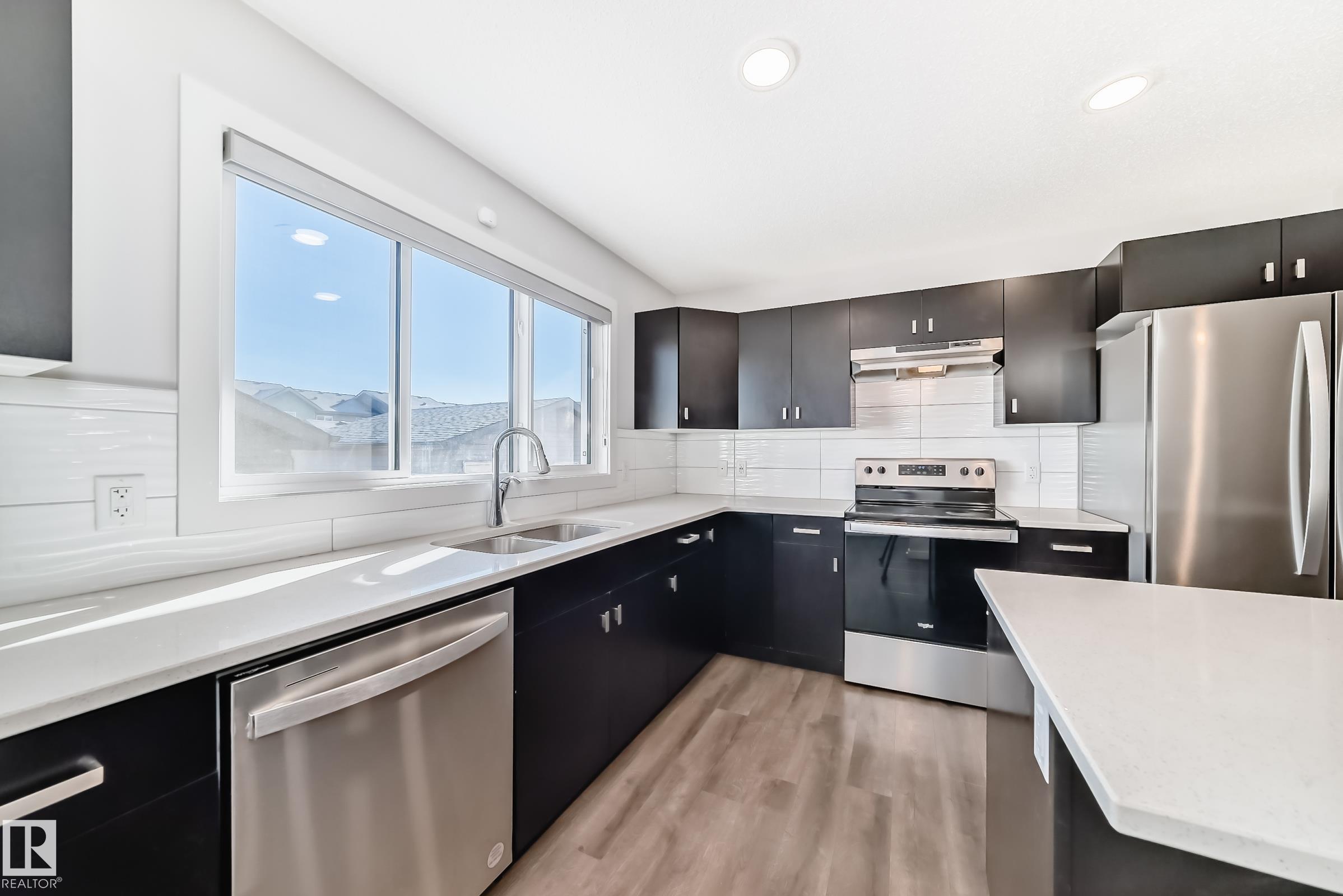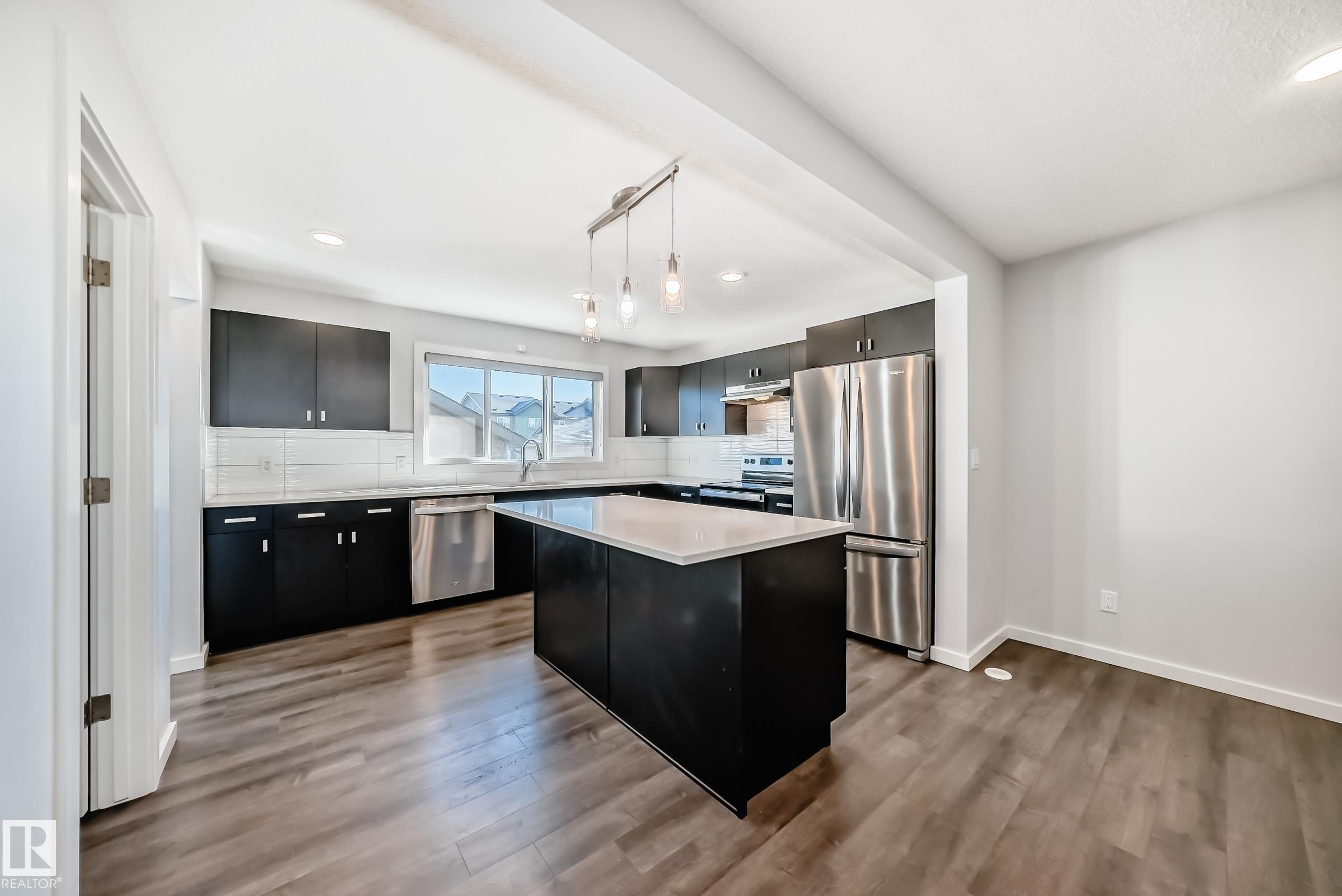 Welcome to the desirable community of Rosenthal. This stylish home offers a convenient layout with a warm living room flowing seamlessly into the spacious kitchen & dining area. Some features include 9' ceilings, beautiful tall kitchen cabinets, a large island w/Quartz countertops & SS appliances. Upstairs, you'll find a roomy primary bedroom with a walk-in closet & ensuite. The secondary bedrooms provide ample space. Your fully finished basement c/w separate entrance is professionally developed w/full kitchen & serves as a mortgage helper. Central air conditioning, double detached garage, fully fenced & landscaped backyard. Close to all amenities, including future LRT, schools, shopping, medical, Anthony Henday, and the serene walking trails of the community. STOP waiting, START living!