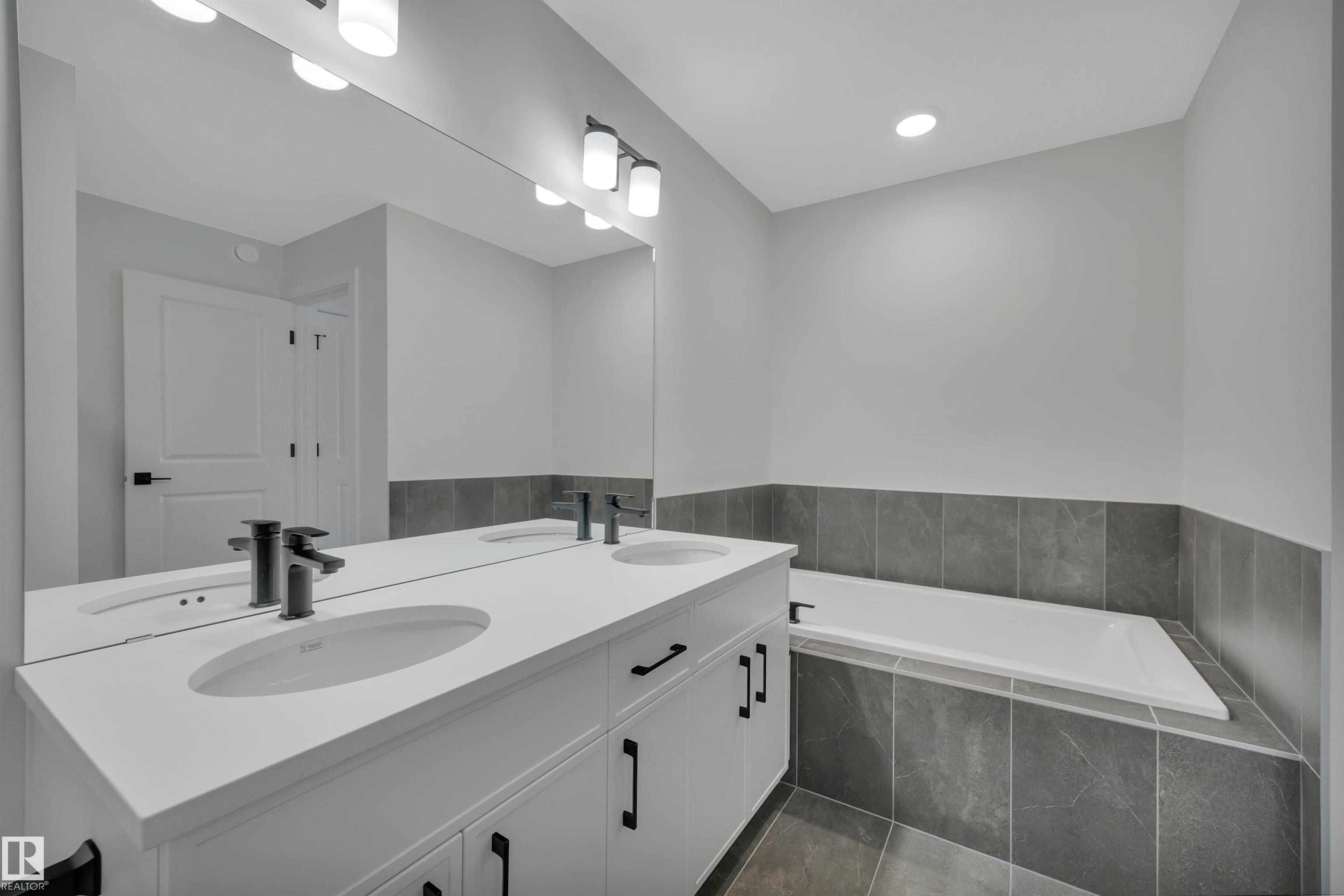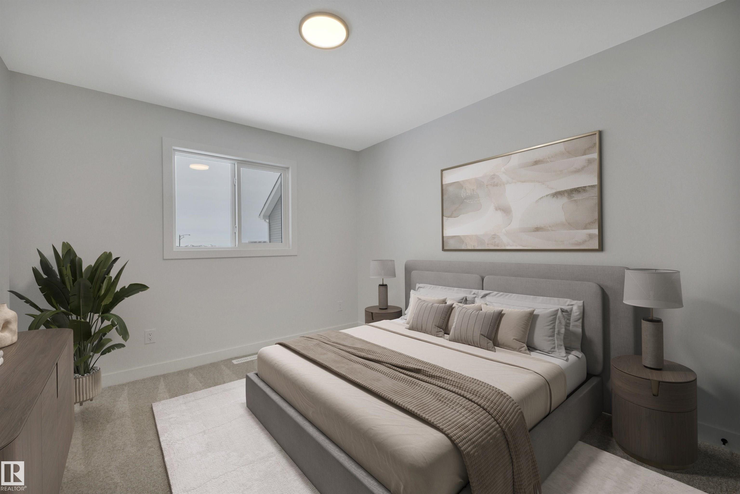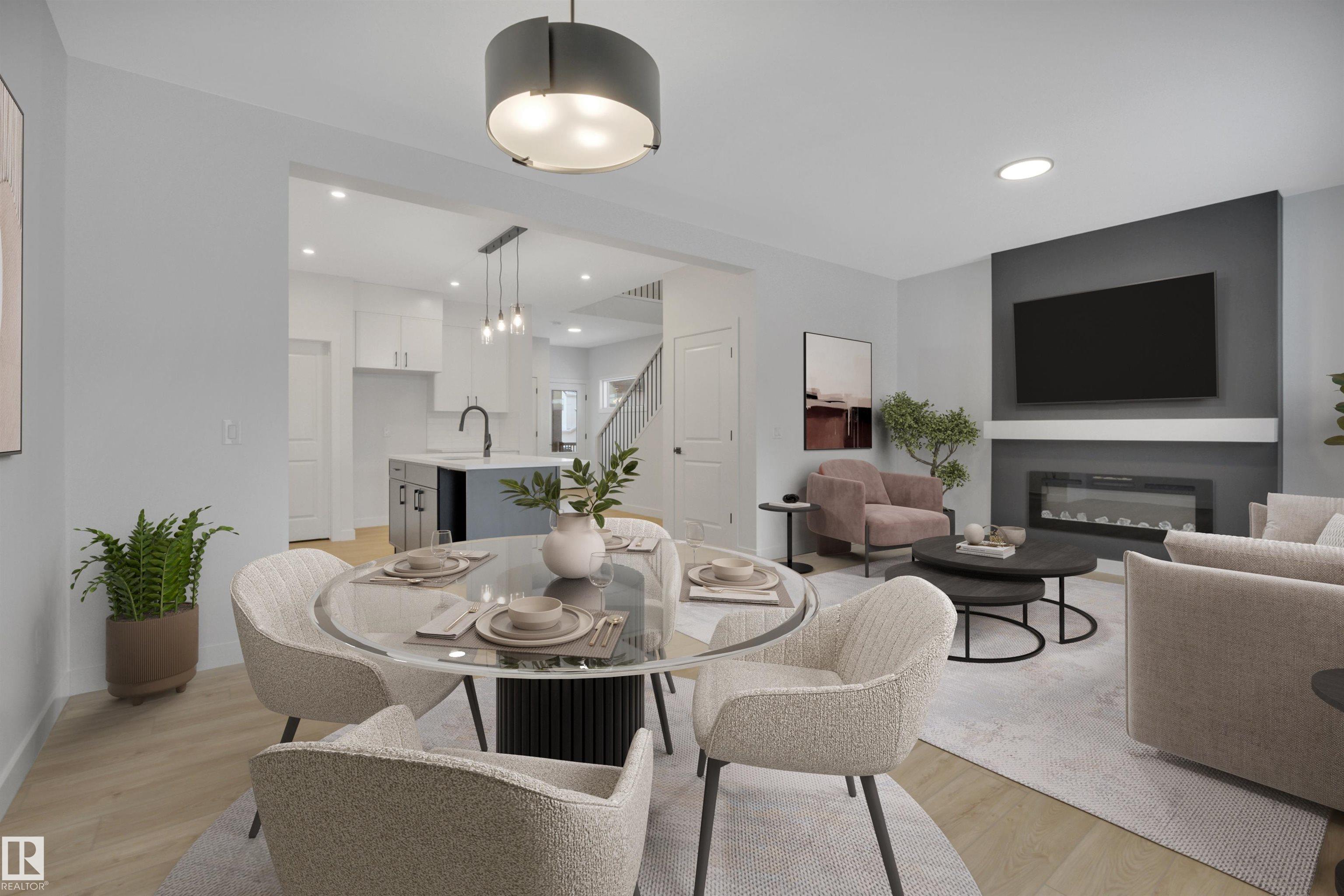 The Durnin model with 9' ceilings, SW backing, presents an impressive 1,900 sq ft of family-oriented space, featuring 3 bdrms/ 2.5 baths. Main floor boasts a generous, open-concept design, centered around a stylish kitchen, dinette, & great room, perfect for both hosting & daily routines. On the upper level, the spacious owner's suite includes a luxury 5pc ensuite, along with 2 bdrms, another full bath, multifunctional bonus room, & upstairs laundry. The residence is equipped with a large double garage, side entry with potential legal suite below with 9' ceilings, & 200AMP electrical for future EV/Central AC demands. Expansive windows throughout enhance natural light, while premium finishes reflect San Rufo Homes' dedication to quality. Situated in the vibrant Rosenthal/Rosemont community in West Edmonton, you'll have access to parks, schools, & essential amenities, with proximity to new Lewis Farms Rec Center, Anthony Henday Ring Road, Whitemud Freeway, Yellowhead Trail, Costco, and West Edmonton Mall.