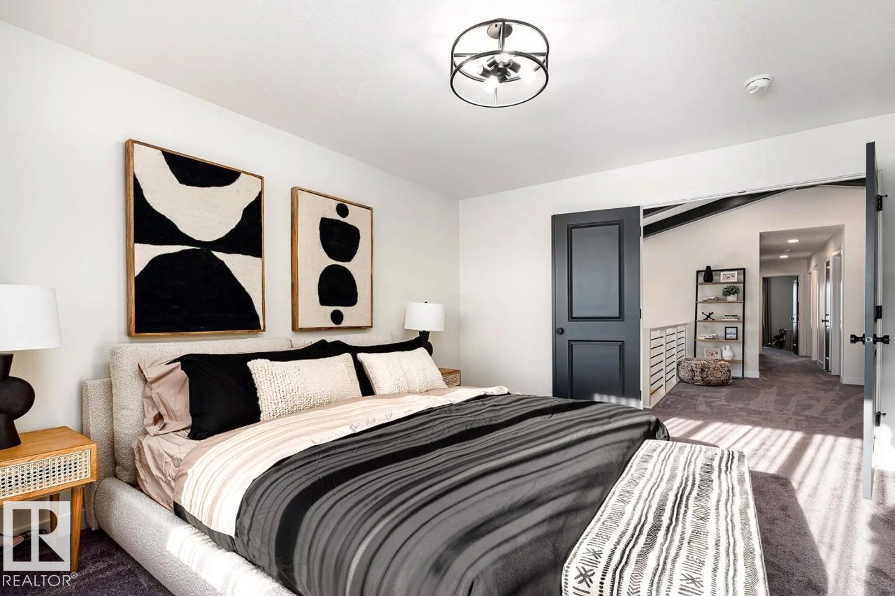 Quick possession, listed by the show home. The Evan model offers 2,244 sq ft of beautifully designed living space with 3 bedrooms and 2.5 bathrooms. The open-concept main floor connects the kitchen, dining, and great room for a bright, welcoming layout that's perfect for family life and entertaining. A 9' foundation and side entry provide flexibility for potential future basement development. Upstairs, the owner's bedroom features a 4pc ensuite, complemented by two additional bedrooms, a full bath, and a convenient laundry area. Large windows fill the home with natural light, and San Rufo Homes' quality finishes ensure comfort and style throughout. Located in Rosemont, a family-oriented community with access to parks, schools, and nearby amenities. Built with San Rufo Homes' trusted craftsmanship and attention to detail. Photos are representative.