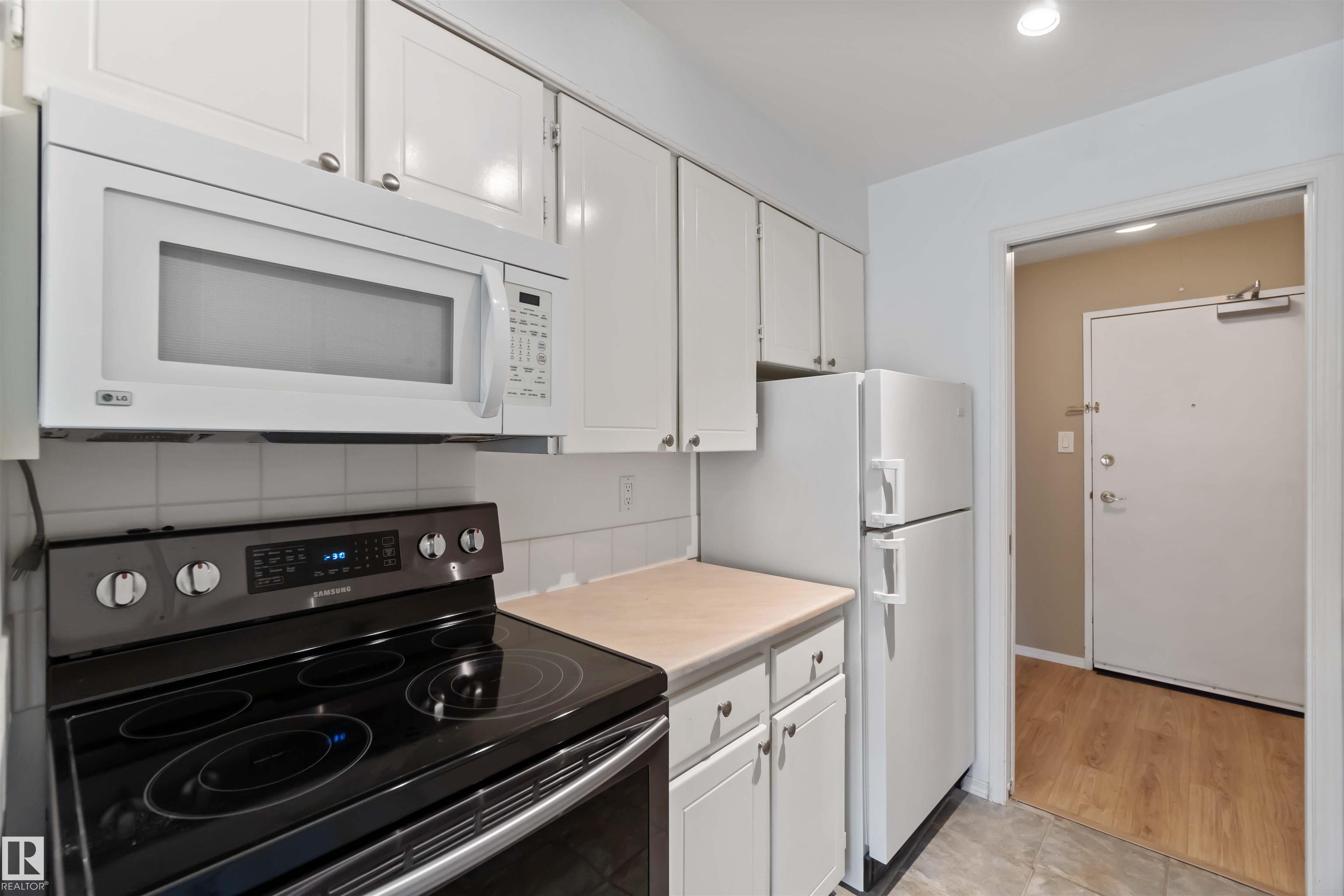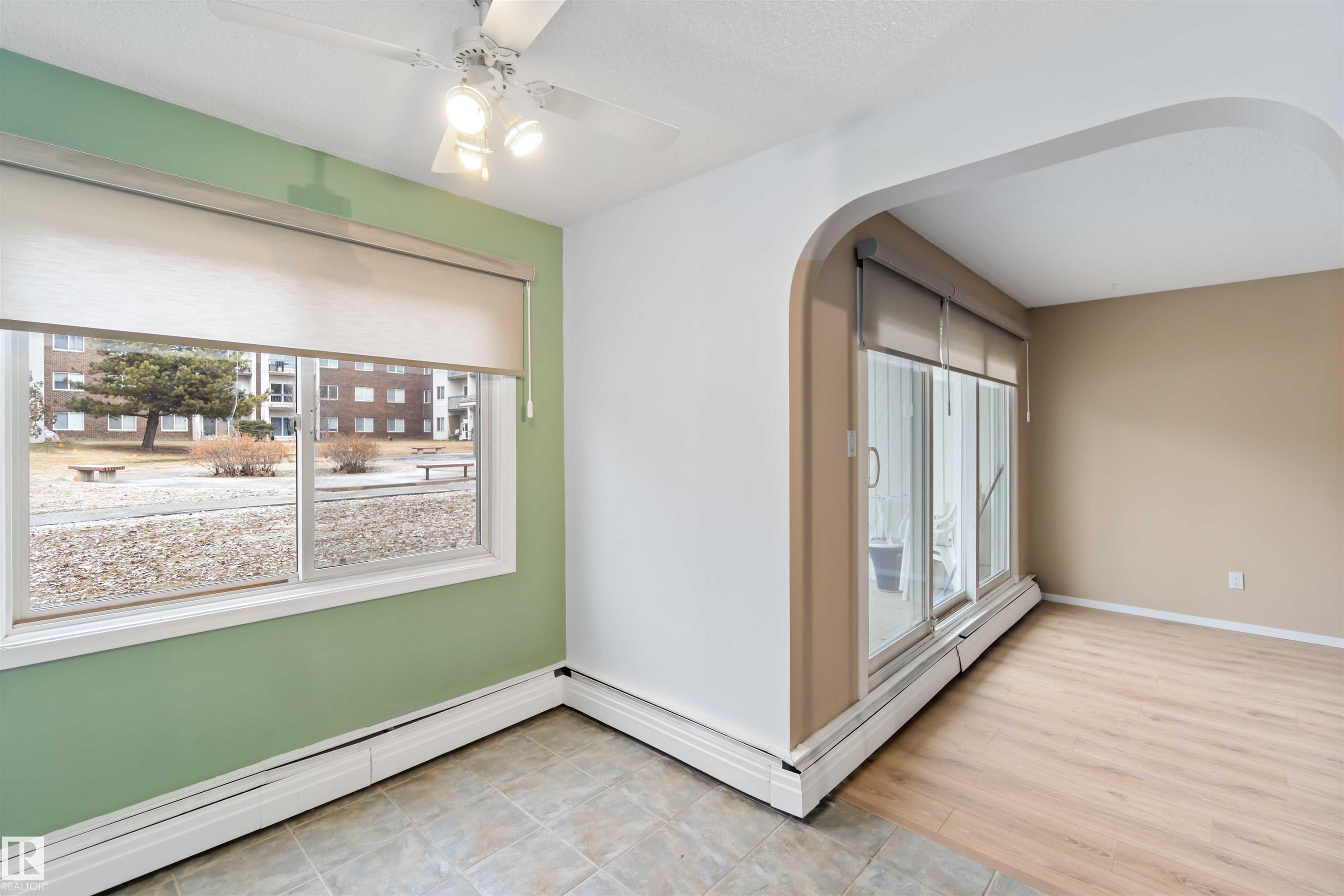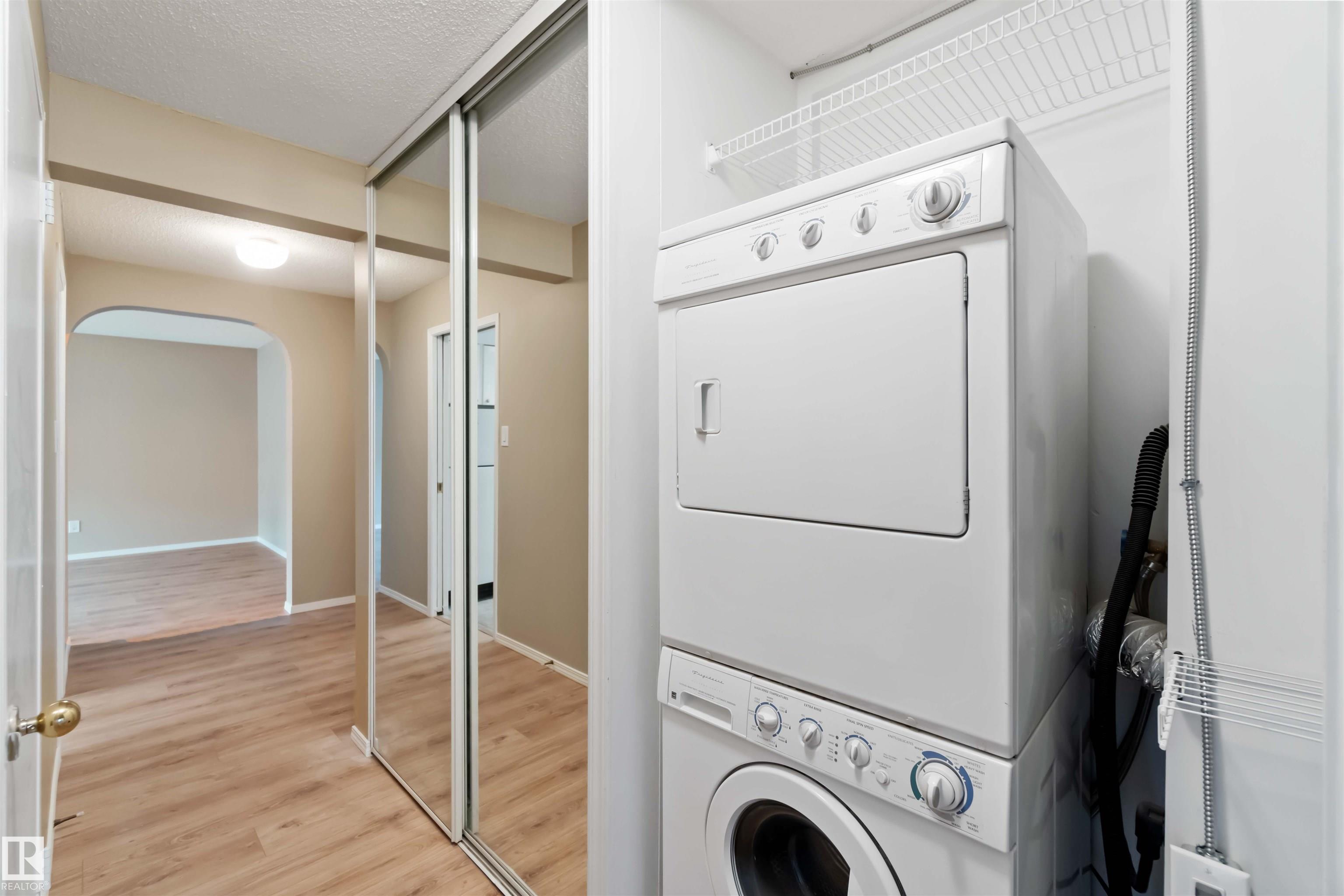 Two bedroom, updated bathroom, ground floor condo with 1 TITLED parking stall included. This spacious and bright unit allows 2pets with board approval . In suite washer and dryer, newer appliances, new flooring, new paint and electric blinds on all windows, plus lots of storage, really proves the amazing value here! There is a large newly outfitted gym within this building for use, a small key fee applies, as well as a rental suite for when your special company comes to visit. The neighborhood has a grocery store and other great shopping across the street, there are schools within walking distance, and is situated on a main bus route, and located in the sought after Royal Gardens area. Easy to view.
