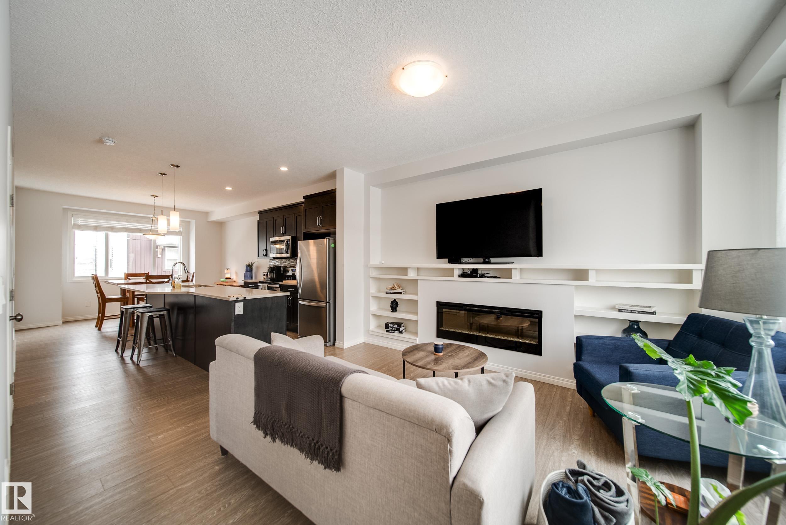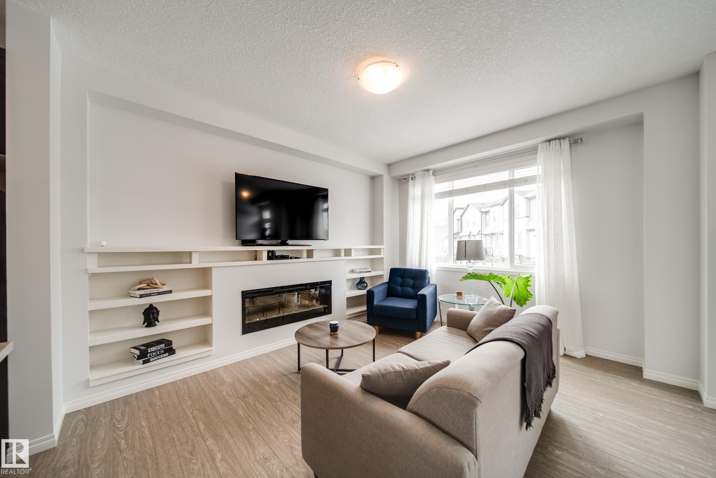 This stunning townhome delivers style, comfort, and functionality in every detail. Step inside to an abundance of natural light streaming through oversized living and dining room windows, creating a bright, warm, and inviting atmosphere. The main floor showcases 9 foot ceilings, beautiful wood cabinets, QUARTZ countertops and tile backsplash. Walk into your custom pantry. The spacious living area centered around a sleek electric fireplace and mantel, perfect for both everyday living and entertaining. A dedicated main floor laundry room and a convenient powder room complete this level. Upstairs, you'll find three generously sized bedrooms and two full bathrooms, including a spacious primary retreat with great closet and a premium ensuite boasting quartz countertops and a stand up shower. Enjoy summer evenings in your fully fenced front yard, looking at a peaceful courtyard setting. The double attached garage finishes your space. Home shows extremely well. Close to all amenities as well as the army base.