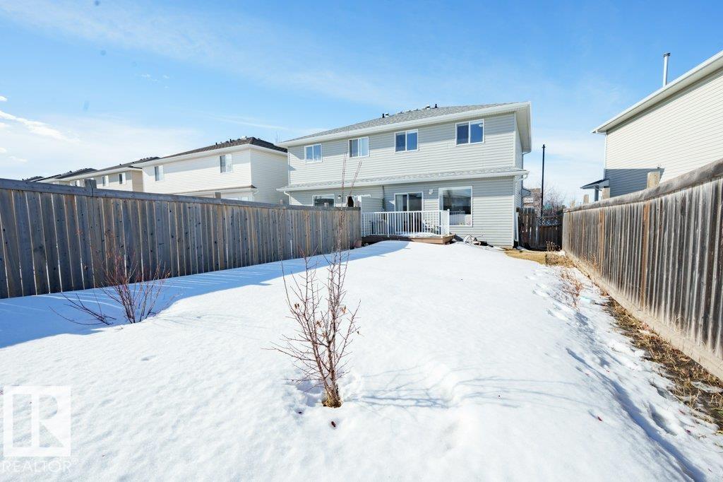 Welcome to Silver Berry! This stunning half-duplex offers over 1,675 sq. ft. of fully finished living space w/ 3 spacious bedrooms & 3 bathrooms! Step inside to a spacious foyer that leads into a bright open-concept main floor featuring a stylish living room w/ contemporary fireplace & picture windows overlooking the oversized backyard and deck accessible through the dining area! The chef-inspired kitchen features an island/breakfast nook & sleek modern cabinetry for tons of storage space! A 2 pc-bath completes the main floor! Upstairs offers 3 spacious bedrooms. A common 4 pc bath completes this functional upper floor! The FULLY FINISHED BASEMENT features a spacious REC ROOM or convert into a family room or personalized gym! A 2pc bathroom offers convenience! BRAND NEW DISHWASHER (2025), Newer Washer/Dryer (2020). Newer Laminate Flooring throughout. Located close to schools, shopping, public transportation, parks & playgrounds, this home truly offers comfort, convenience & long-term value!