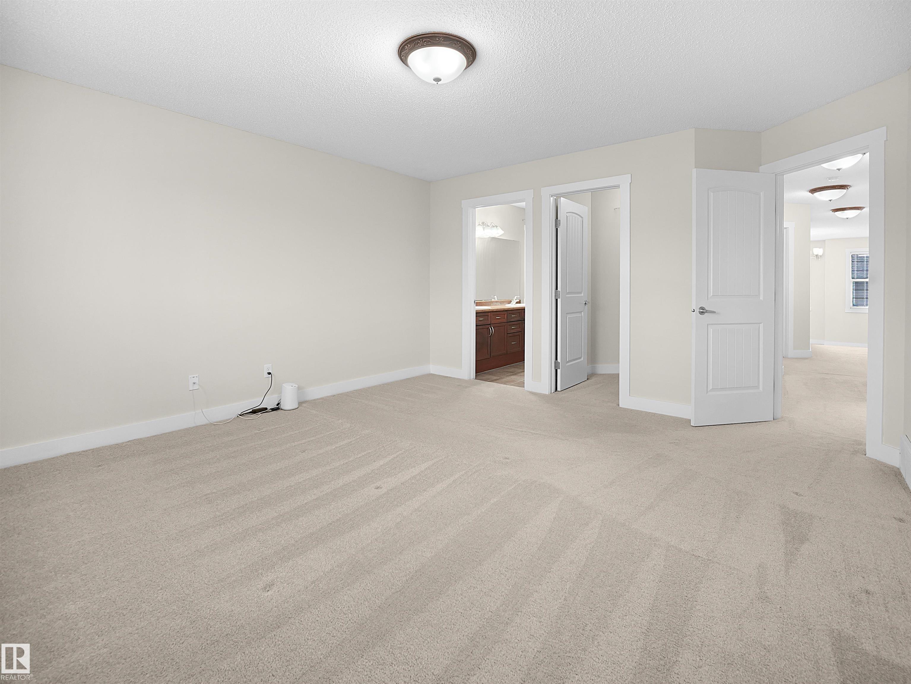 BACKS ONTO WALKING TRAIL! Walking distance to Freson Bros, Restaurants, Banks and more... Outstanding 2-storey on a quiet street in South Terwillegar OFFERING OVER 2,800 SQ FT OF FULLY FIN LIVING space. Bright open-concept layout w/ 17' ceilings at front entry, SPACIOUS GREAT RM, large dining nook & well-designed kitchen. Upper lvl features 3 generous bdrms, LARGE BONUS RM OVER SIZED GARAGE & PRIMARY SUITE W/ 5-PC ENSUITE. Main floor with hardwood/tile, Iron railings. FULLY FIN BSMT offers rec room, 4th bdrm & 3-pc bath w/ custom walk-in shower. UPGRADES: Carpet (2022), HWT (2018), Paint (2025), Some Newer Light Fixtures (2025), Fridge (2025), Dryer (2025), 3 tub restorations (2025), Blinds (2025) Exterior: New Garage Door (2025), Fence (2022). WEST-FACING YARD BACKING WALKWAY, FULLY LANDSCAPED W/ LARGE DECK & STORAGE. Close to schools, shopping, transit, rec centre & quick access to Whitemud Drive & Anthony Henday Drive.