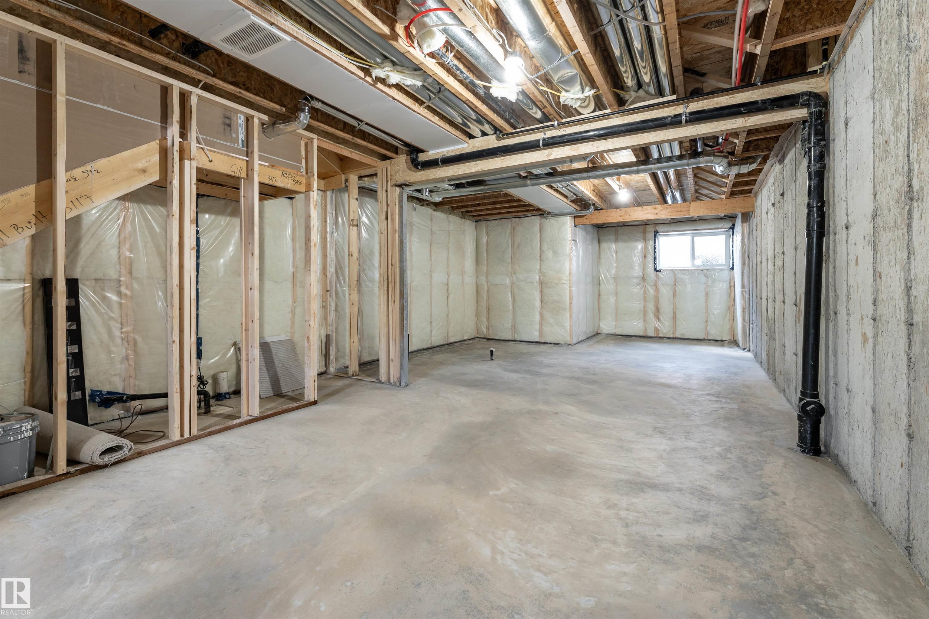 Modern design meets everyday comfort in this 1,700 sq ft 2025 built half duplex located in the sought after community of Starling. The bright open concept main floor features 9 ft ceilings, wide plank vinyl flooring, and a striking floor to ceiling tiled electric fireplace. The contemporary kitchen offers white cabinetry with warm wood accents, a large island, and sleek black fixtures, ideal for entertaining. Upstairs includes three bedrooms, a spacious primary with ensuite and walk in closet, plus convenient upper floor laundry. The unfinished basement with a separate side entrance provides excellent future potential. Complete with a double detached garage and close to parks, ponds, walking trails, schools, shopping, and quick access to Anthony Henday and Yellowhead.