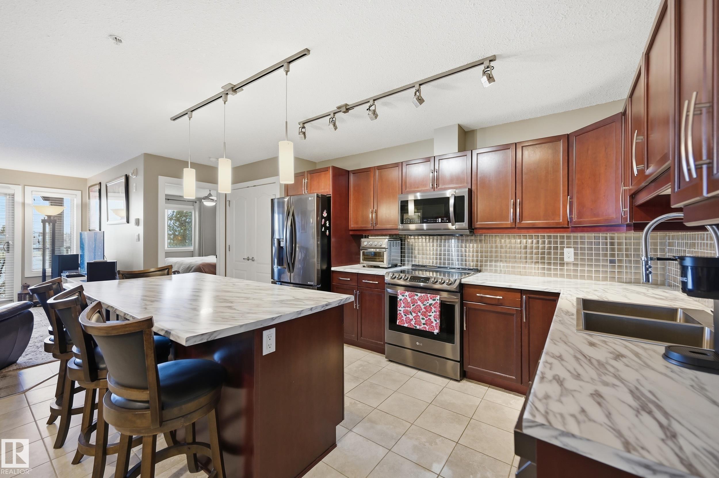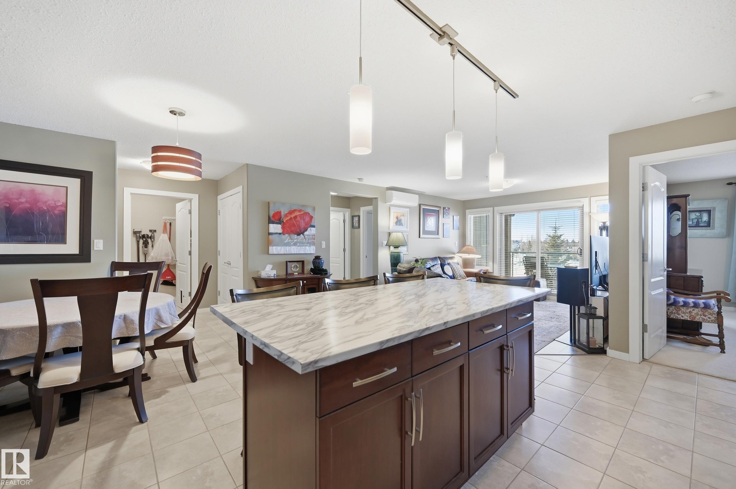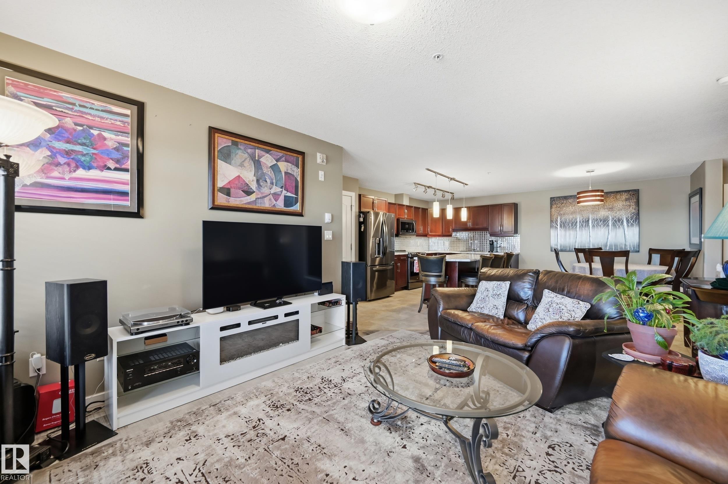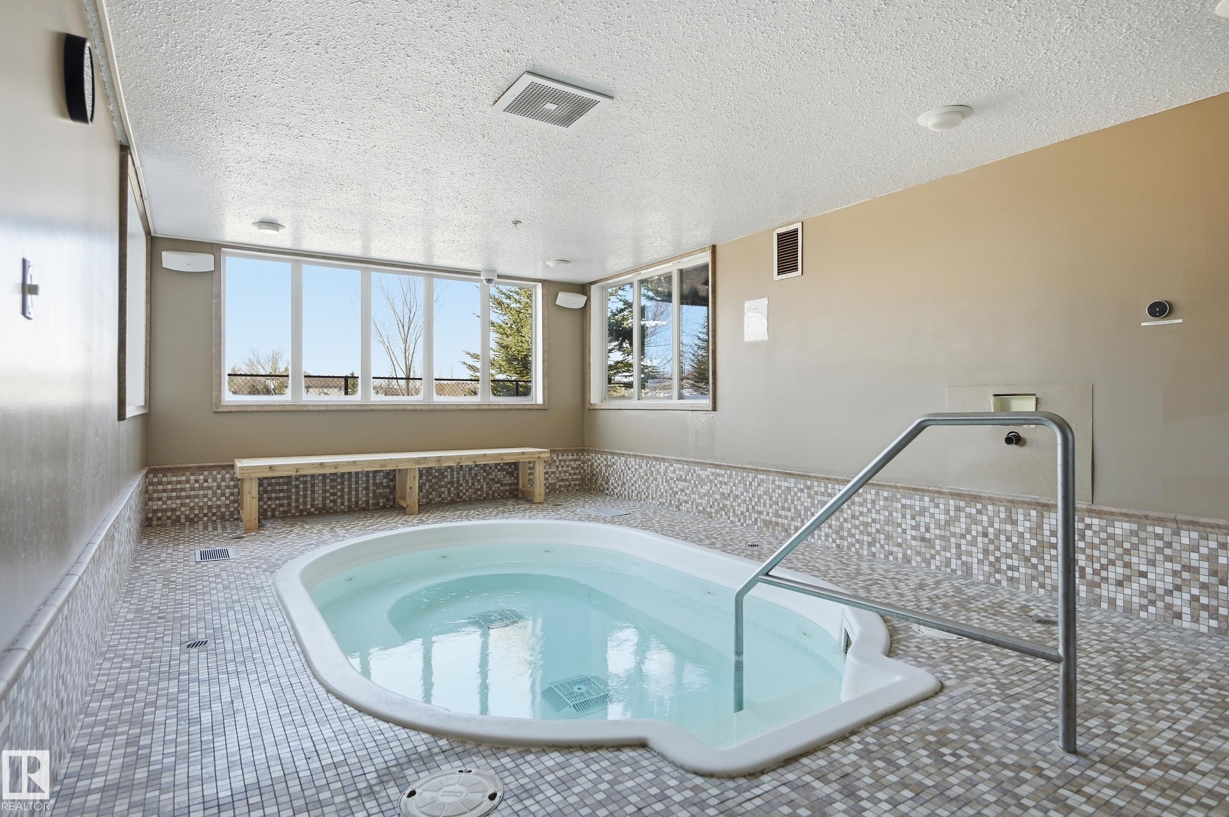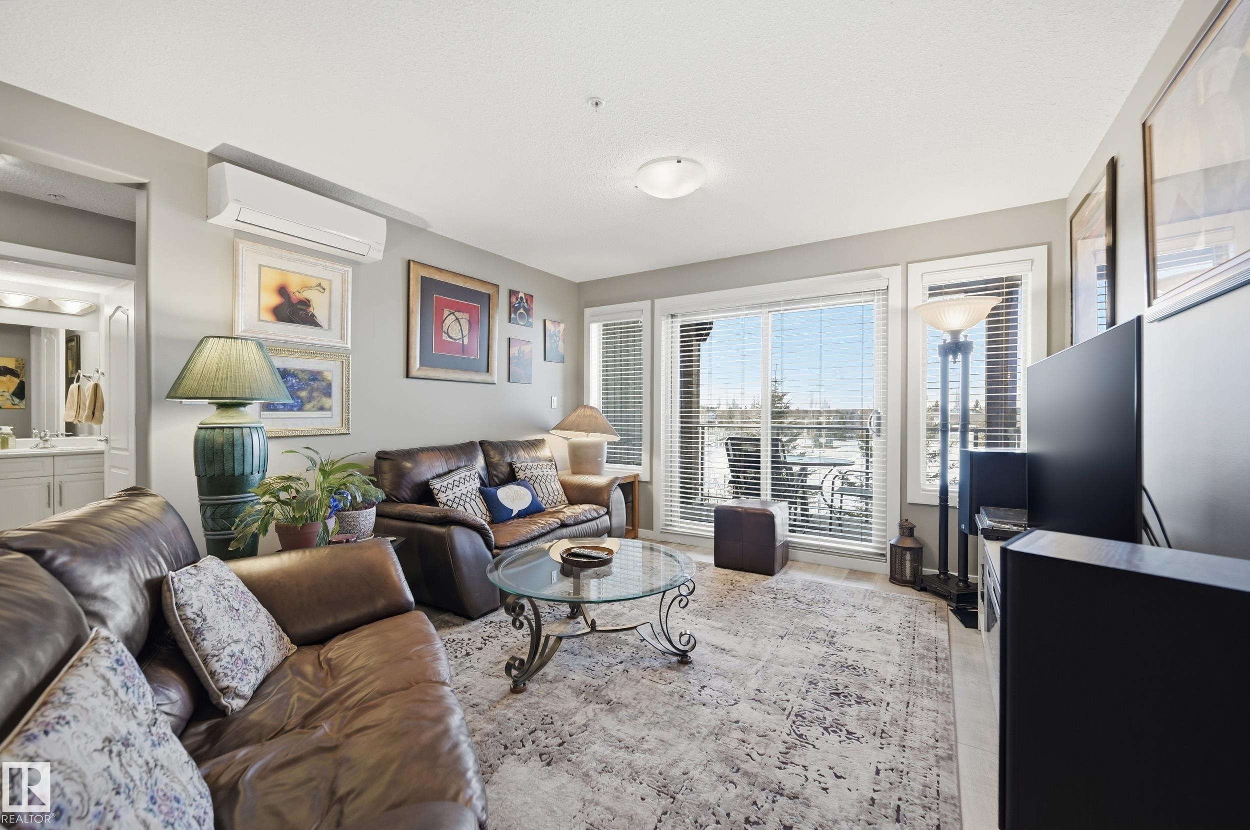 Welcome to the Lodge at Lewis Estates. This two bed, two bath, 1085 sq ft beauty is one of the finest condos,in the one of the best buildings in Edmonton's West end. The list of building amenities is lengthy. Titled underground parking w/storage cage and a car wash. Social room with a full kitchen, pool table and games area. A theatre room if want to host a group for the big game. A fitness centre with hot tub and steam room. The unit itself is gorgeous, located conveniently close to the elevator with a west facing view overlooking a park and greenspace. In floor heating and in unit A/C. Huge island kitchen with stainless steel appliances and two large bedrooms and lots of storage. Very well managed building and perfectly located close to shops, golf, the Henday, the Whitemud and WEM. This unit won't last long.