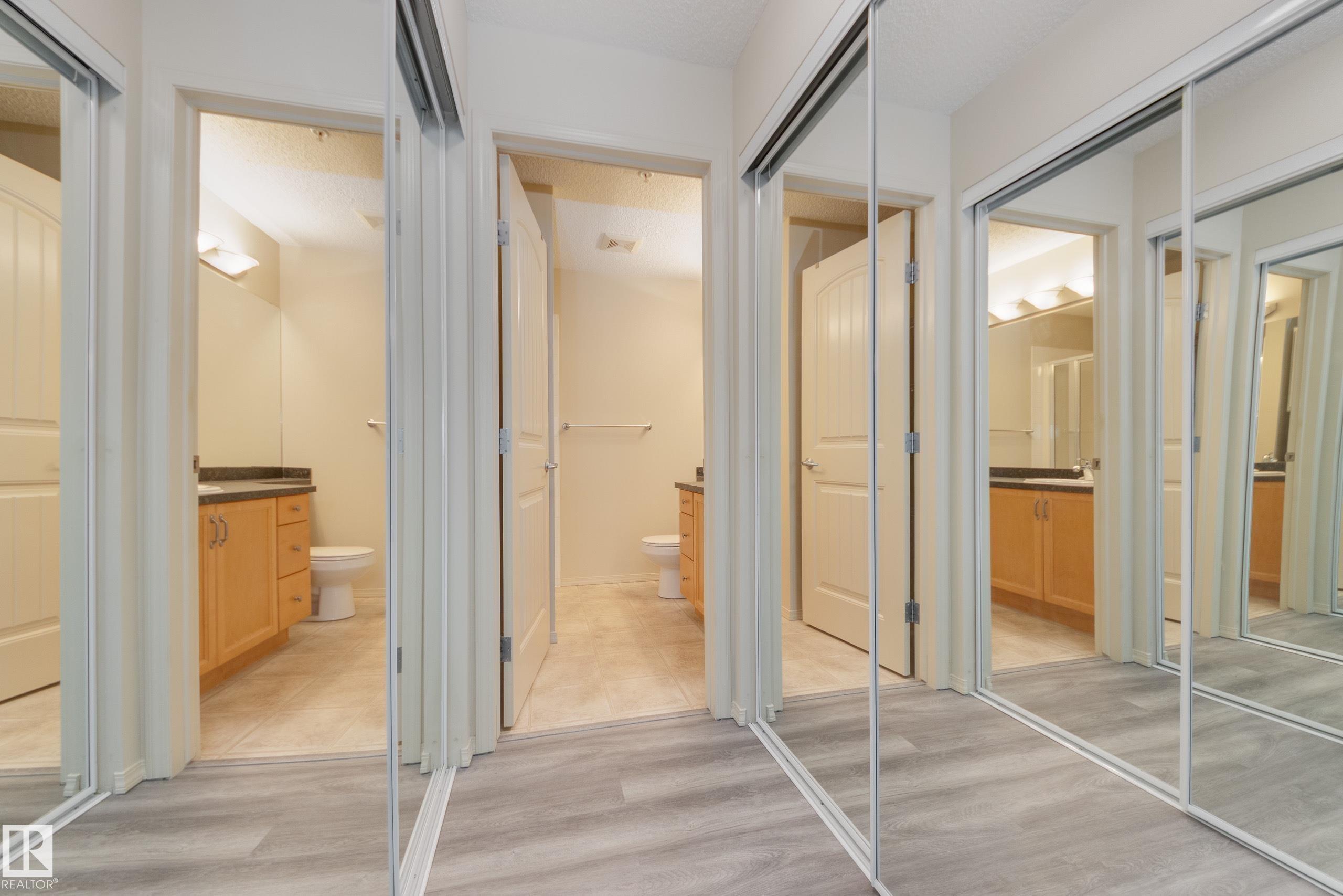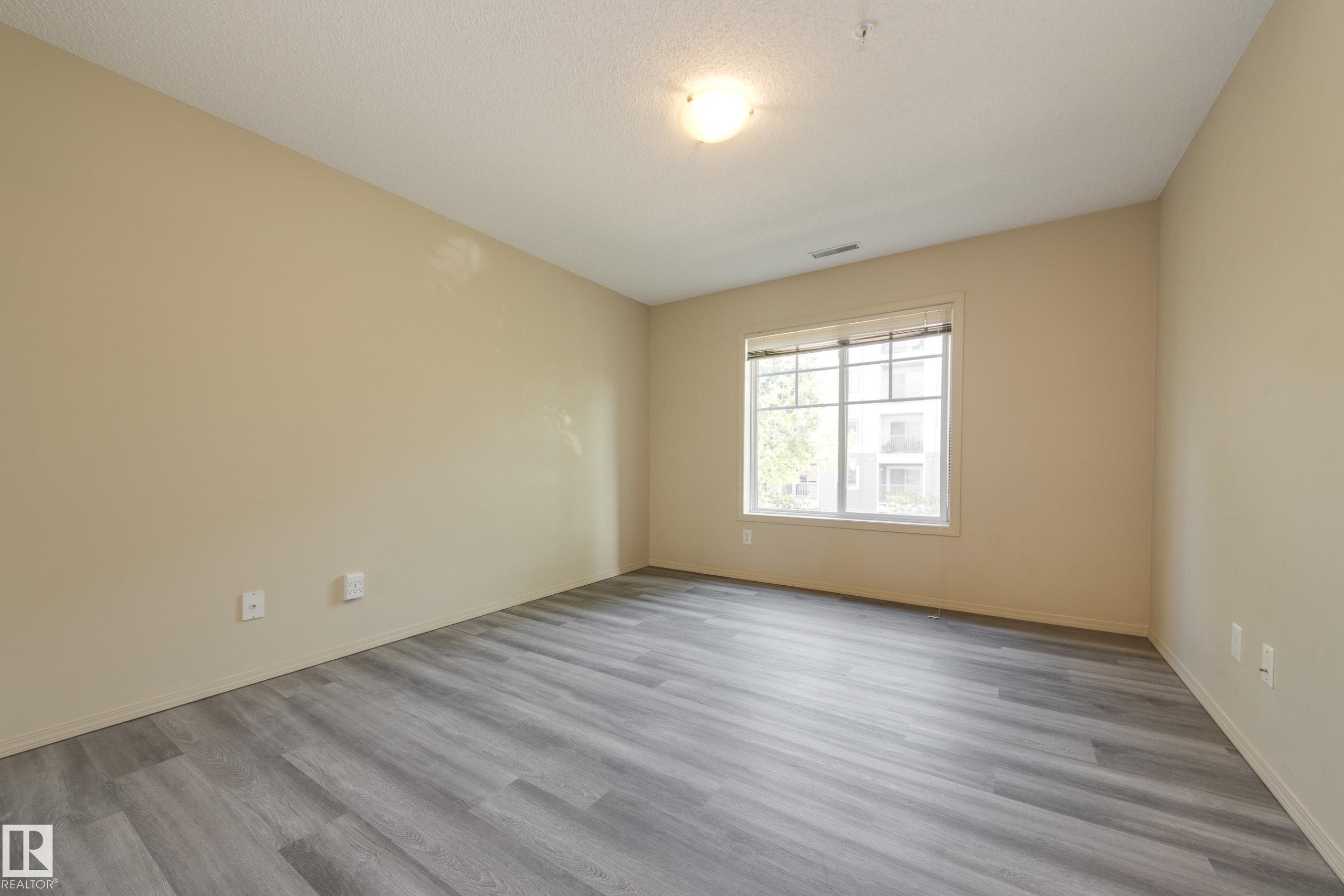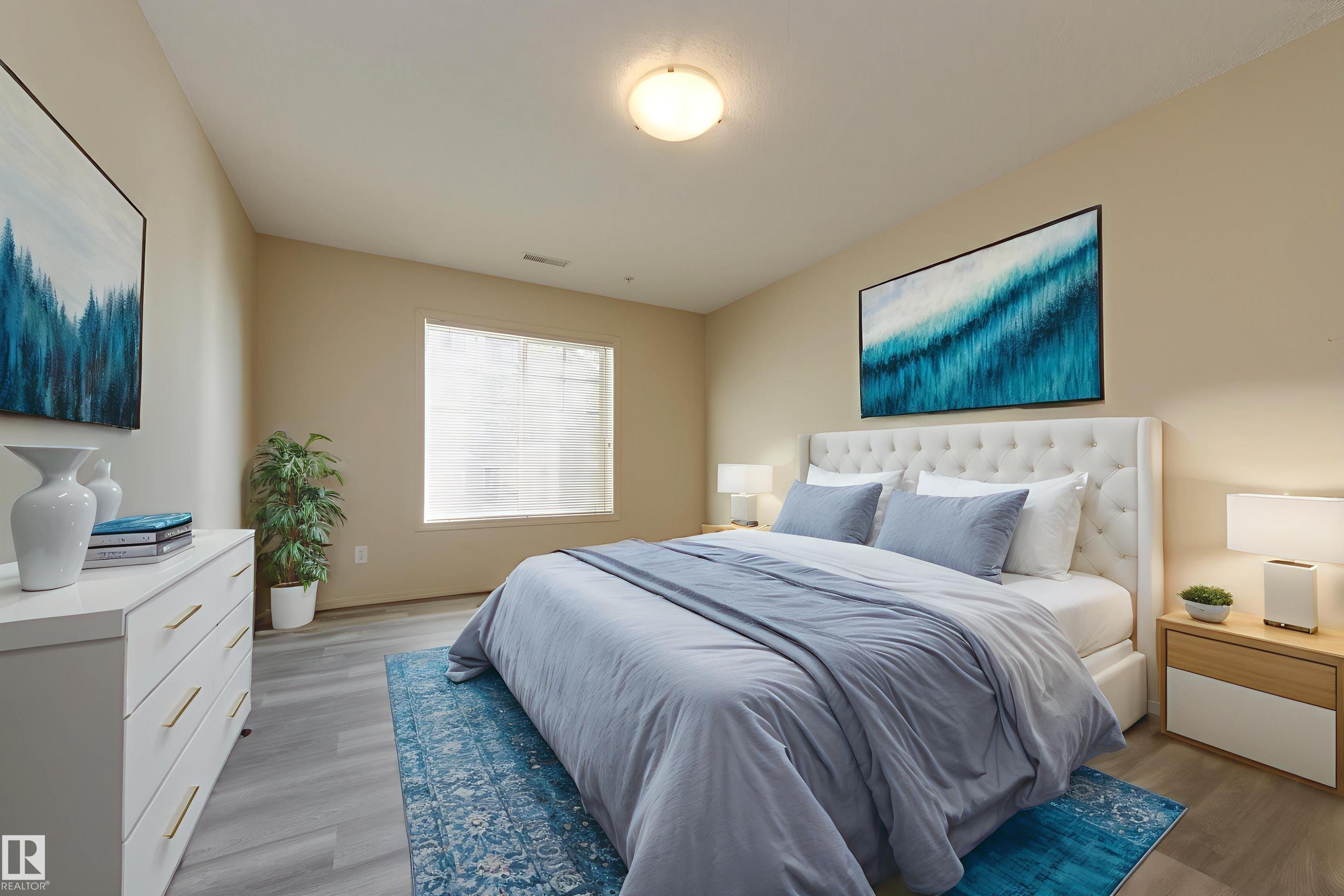 Welcome to this second floor 2 bedroom, 2 bath condo that the perfect blend of comfort and convenience. The spacious primary suite features a walkthrough closet to the 3-piece ensuite, while the second bedroom is ideally located next to a full bath--perfect for guests or roommates. The kitchen boasts ample cabinetry, a functional island with eating bar, and sleek black appliances. Enjoy the open-concept layout that flows into a bright living room with brand new vinyl plank flooring throughout, a cozy corner gas fireplace, and patio doors leading to a east-facing balcony ideal for morning light. This unit is complete with in-suite laundry and a titled underground parking stall with a large storage cage. Residents also enjoy access to an Exercise Room and Social Room. Located directly across from Terra Losa Shopping Centre, you'll love the easy access to shopping, dining, public transit, and everyday amenities, and a semi-private lake nearby!