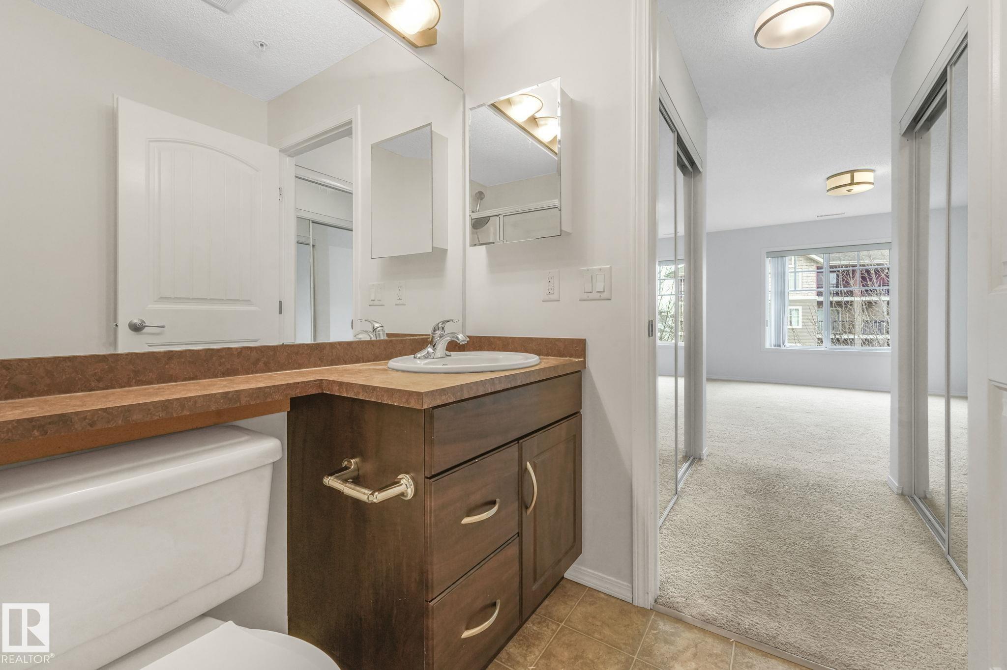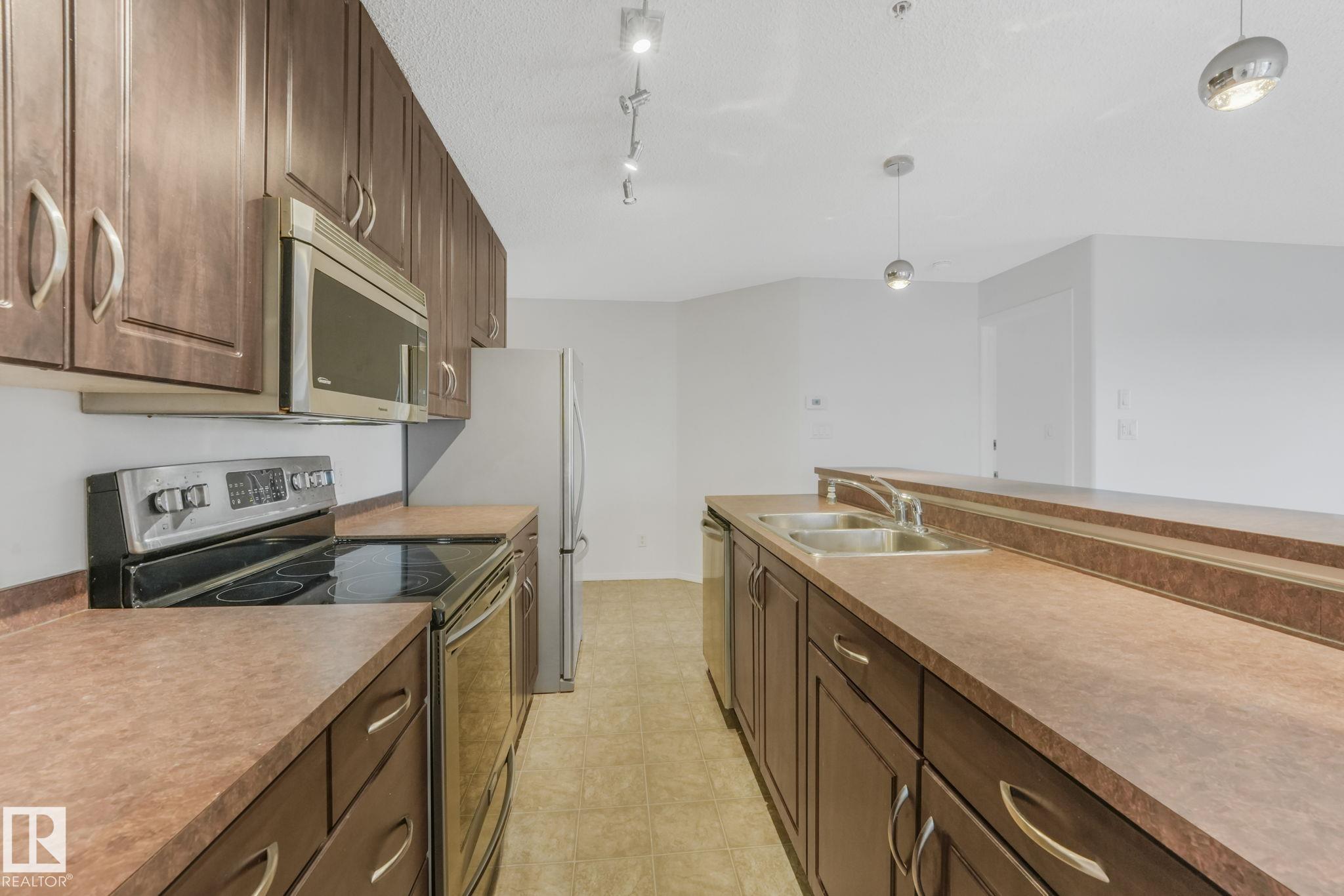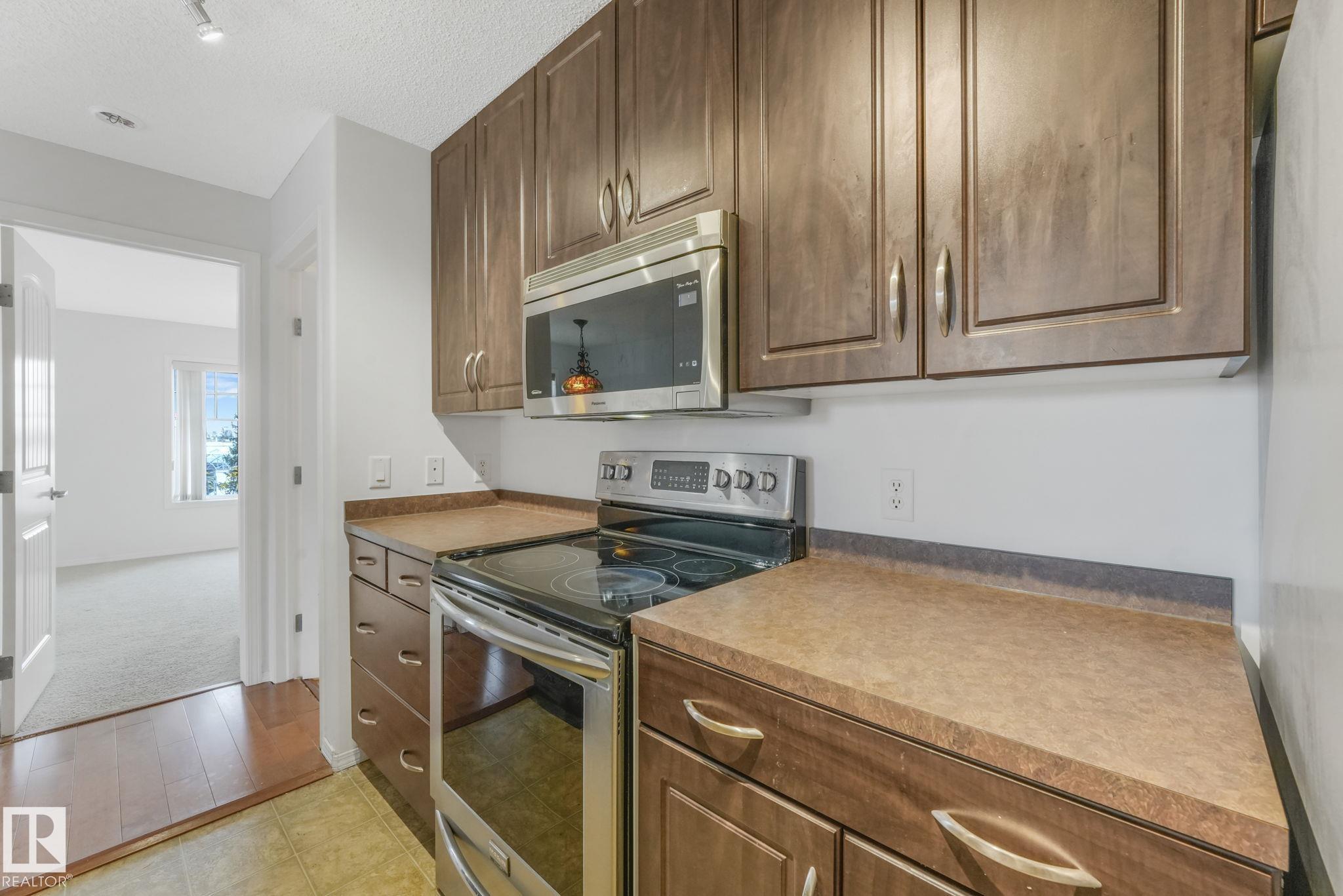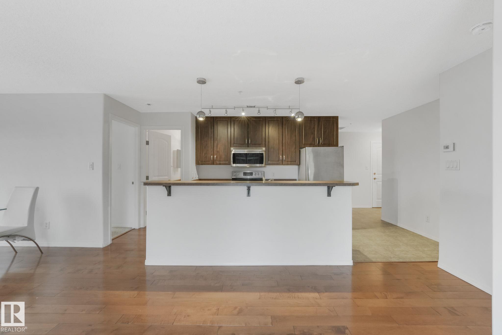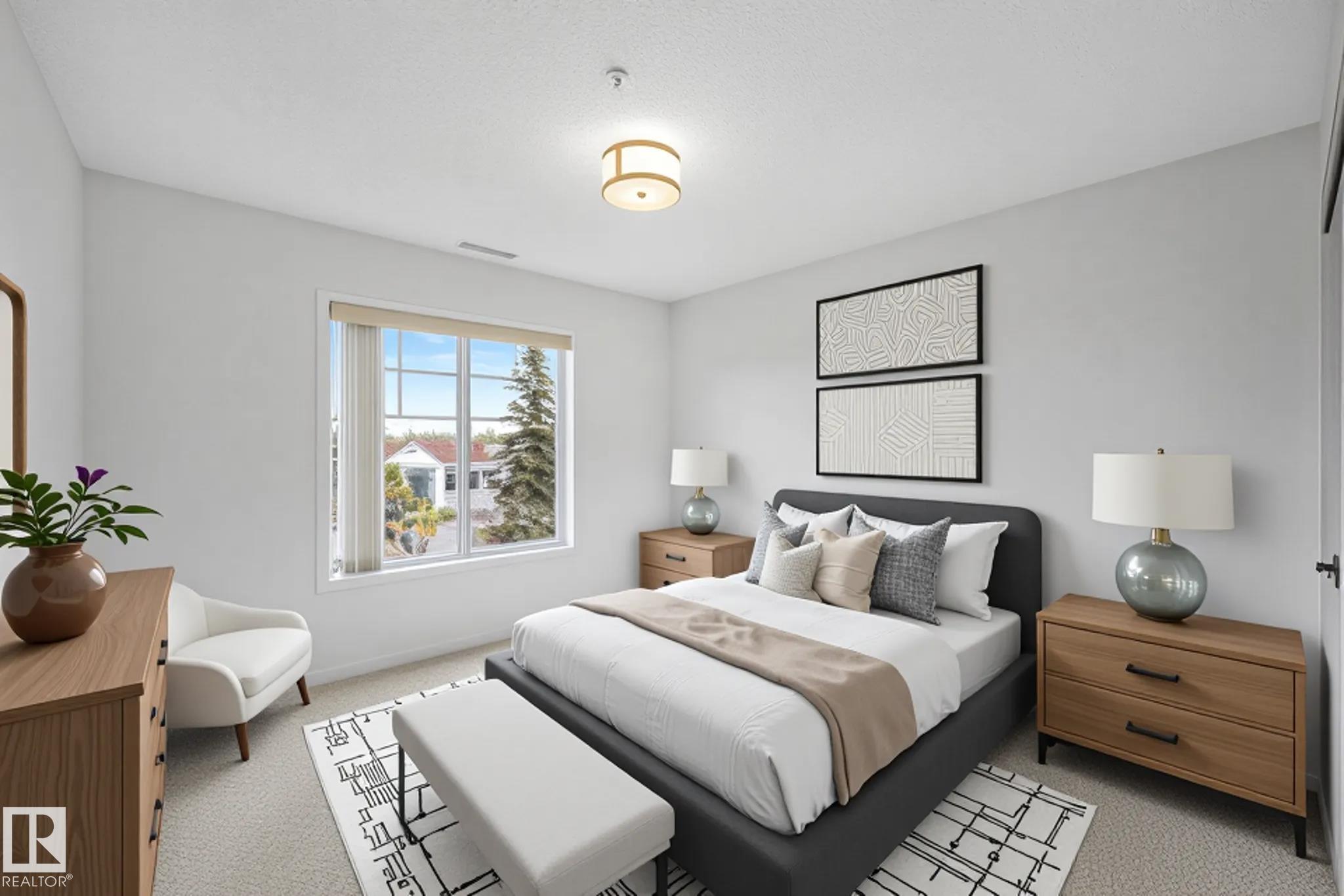 Don't miss this renovated 950 sq. ft. corner unit in The Marquee at Terra Losa! This bright and spacious 2-bedroom, 2-bathroom home features upgraded finishes, a functional open layout, in-suite laundry, central A/C, and a Jacuzzi tub. Enjoy two parking stalls--one heated underground (#76) and one surface stall (#191)--plus a northwest-facing wraparound balcony with a BBQ gas line. Conveniently located steps from shopping, restaurants, grocery stores, and transit, with West Edmonton Mall and a scenic semi-private lake nearby. Building amenities include an exercise room and media room. This unit offers comfort, convenience, and an unbeatable location!
