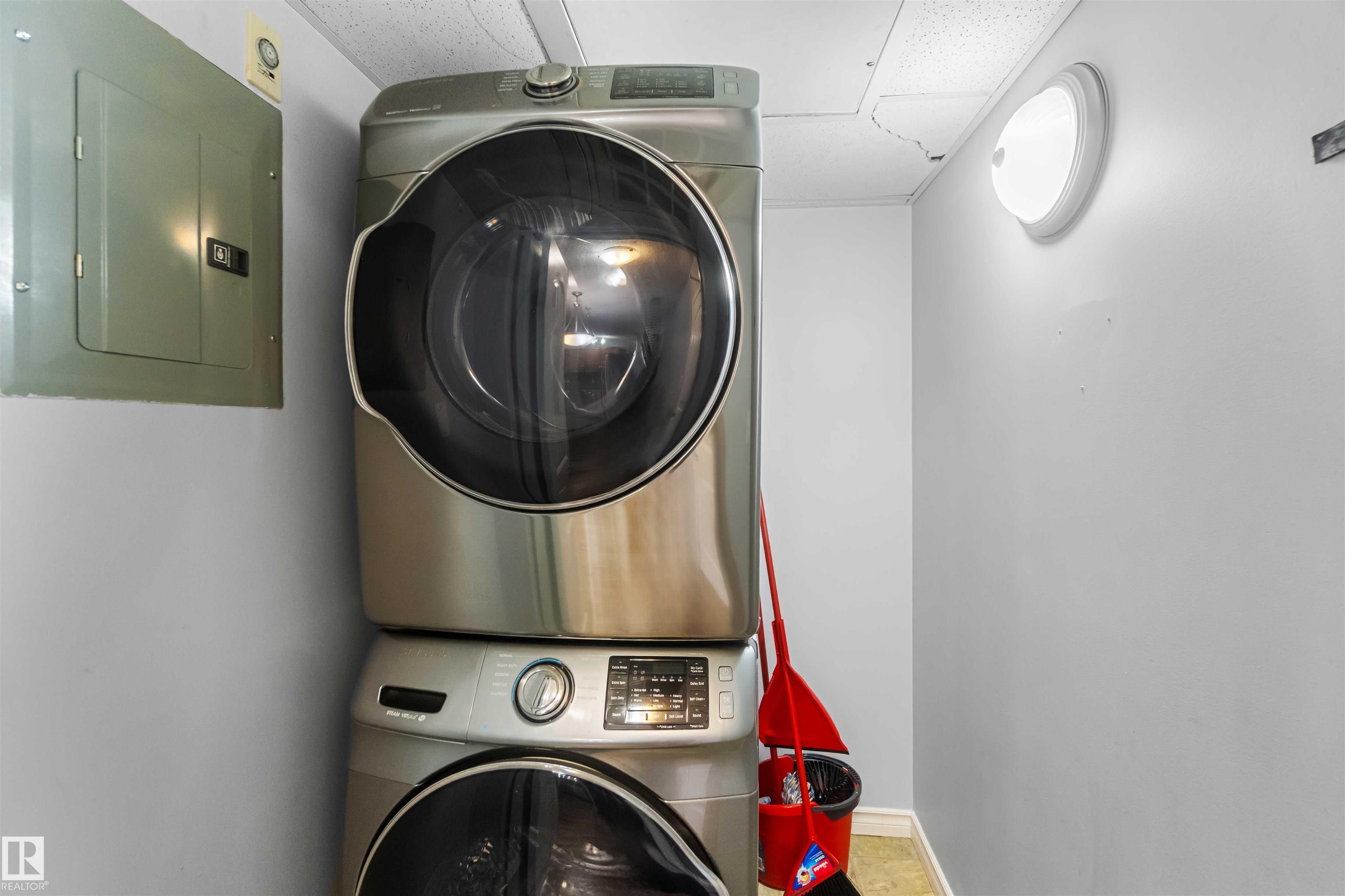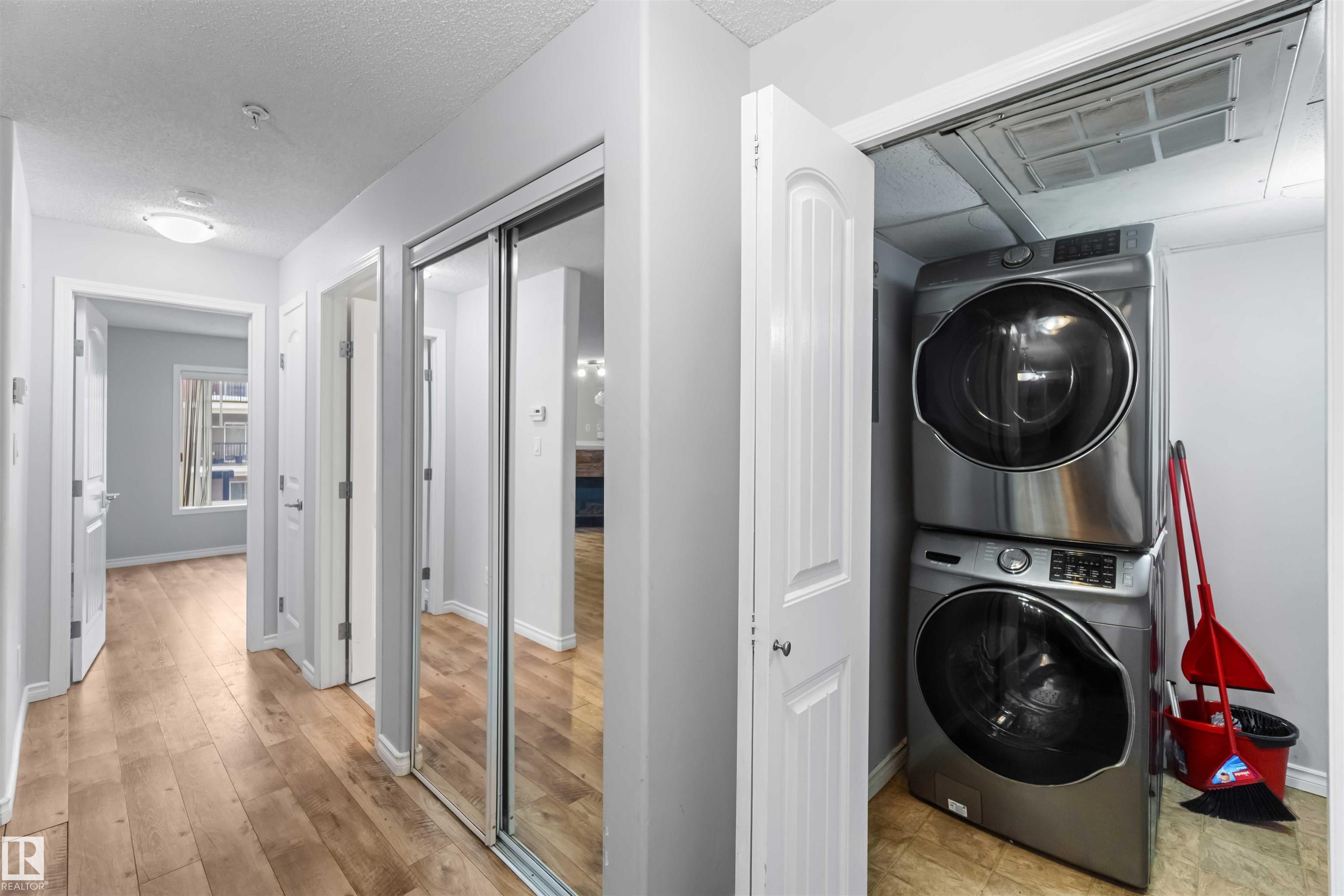 Welcome to The Marquee at Terra Losa, a highly regarded and well-maintained building in one of Edmonton's most convenient locations. This spacious 3rd-floor condo offers an open and functional layout featuring two large bedrooms and two full bathrooms, ideal for professionals, couples, or downsizers. The home is designed for comfort with hardwood and tile flooring, a gas fireplace, and a brand new air conditioning and a new dishwasher wash recently replaced. The kitchen and living area flow seamlessly together, creating a warm and inviting space. A separate in-suite laundry room with high-end washer and dryer adds convenience. The unit has been well maintained and professionally cleaned, making it move-in ready. Enjoy the added benefits of heated underground parking, a social room, exercise facilities, and a hobby/workshop area. Utilities included are heat, water, and natural gas for the fireplace and BBQ hookup (electricity, internet, and cable extra).